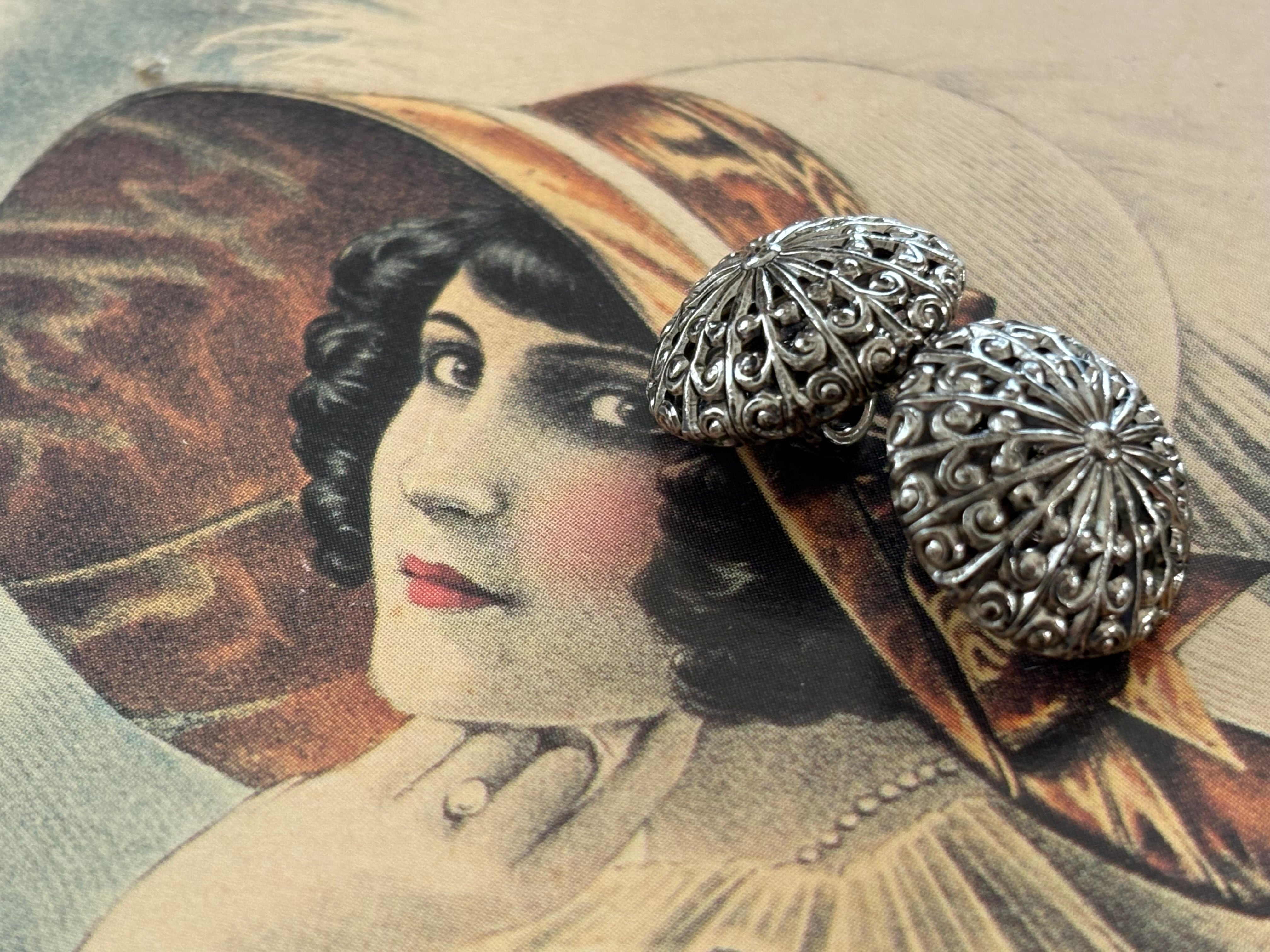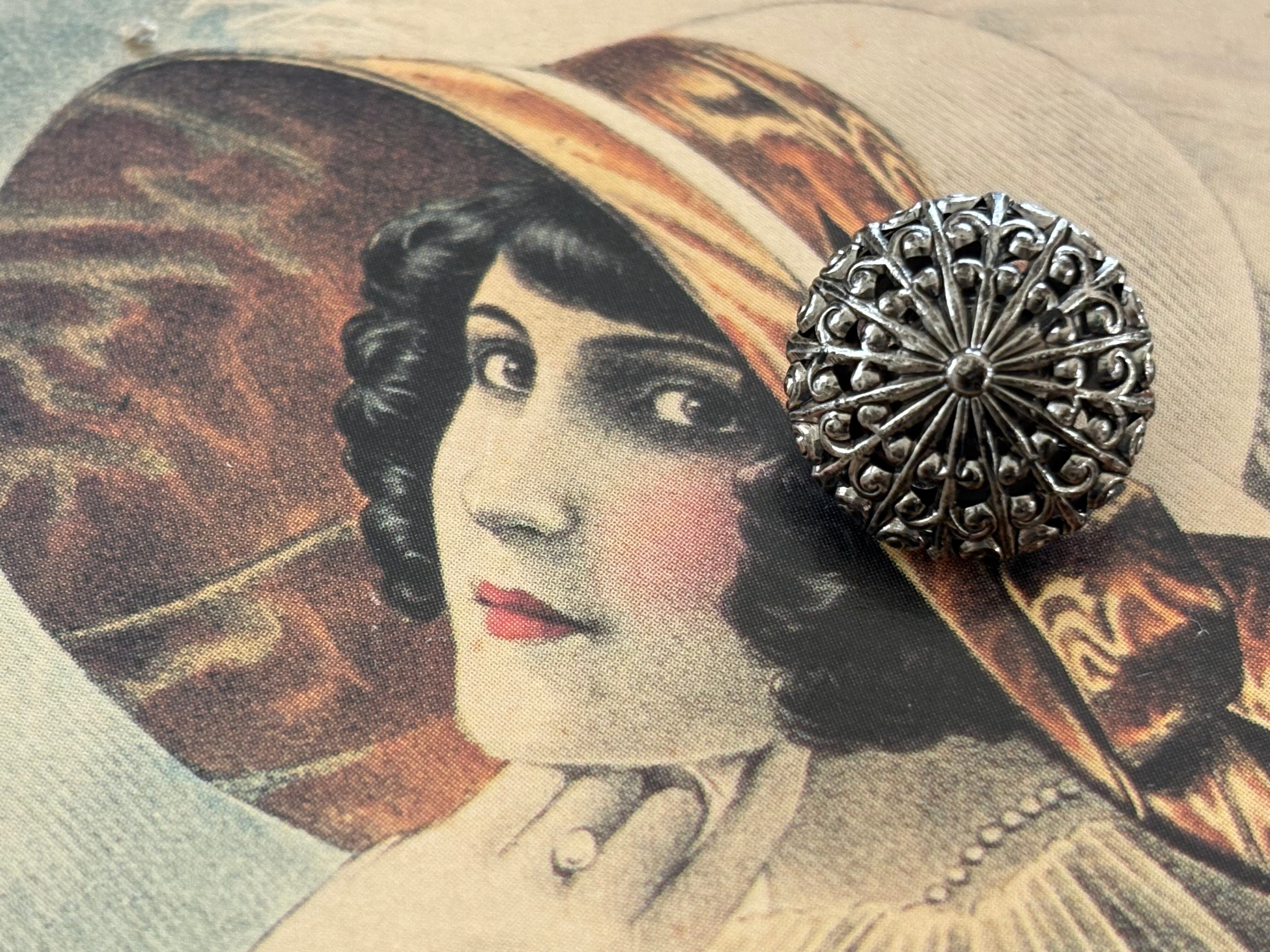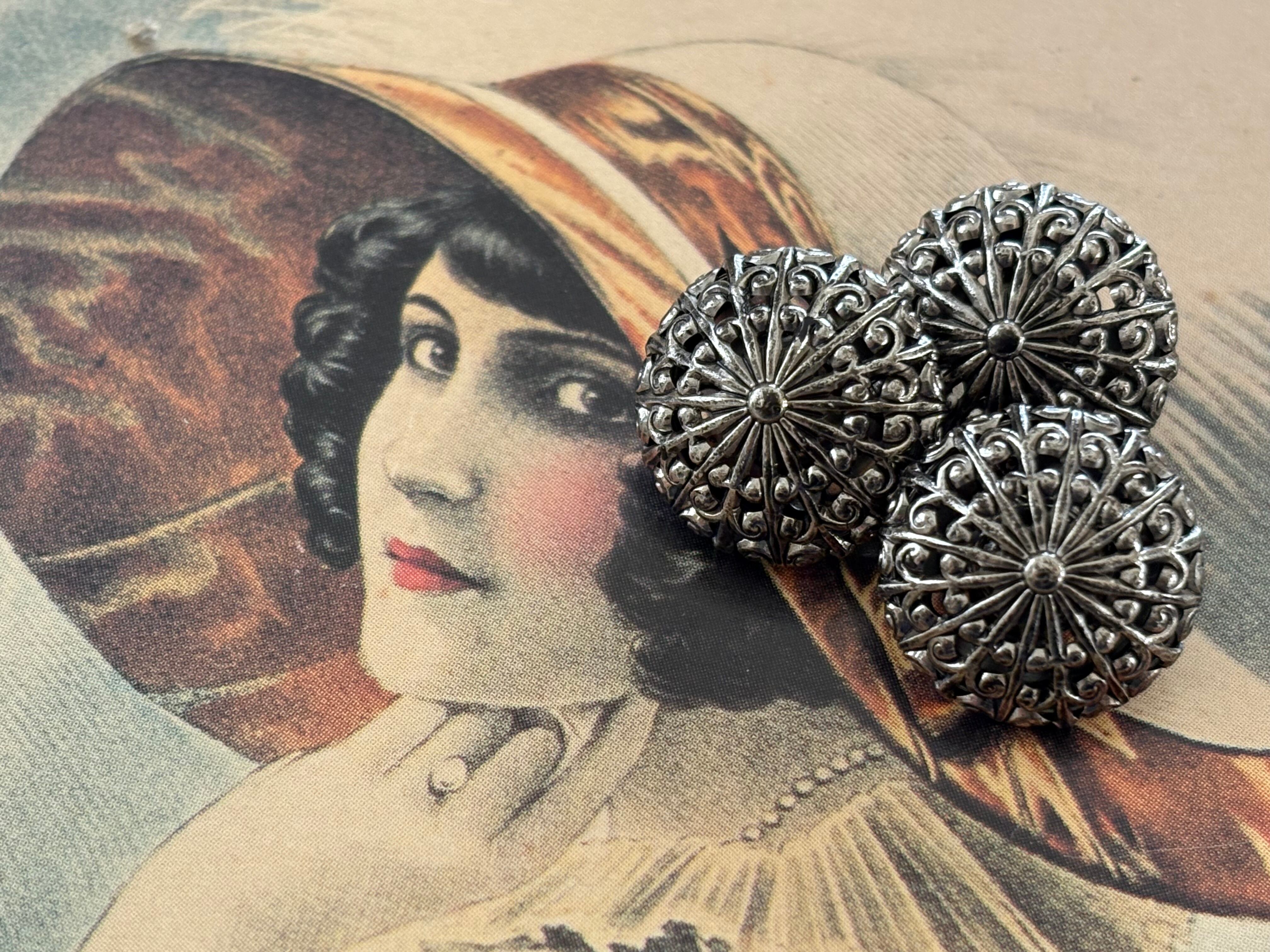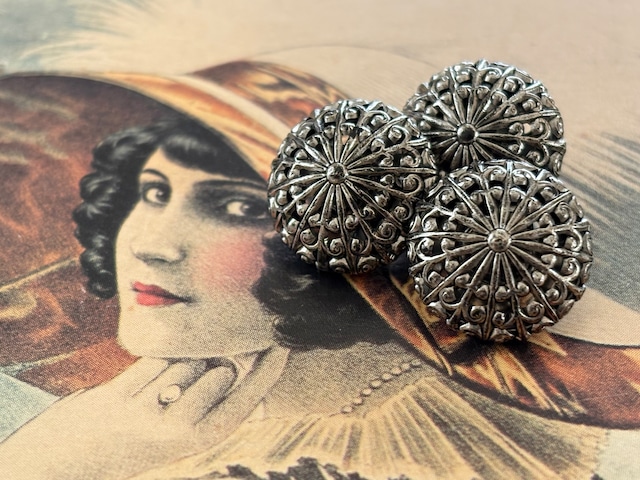 15mm Japanese ヴィンテージボタン ドーム型 メタルボタン 透かし シルバー アクセサリーパーツ コレクション
