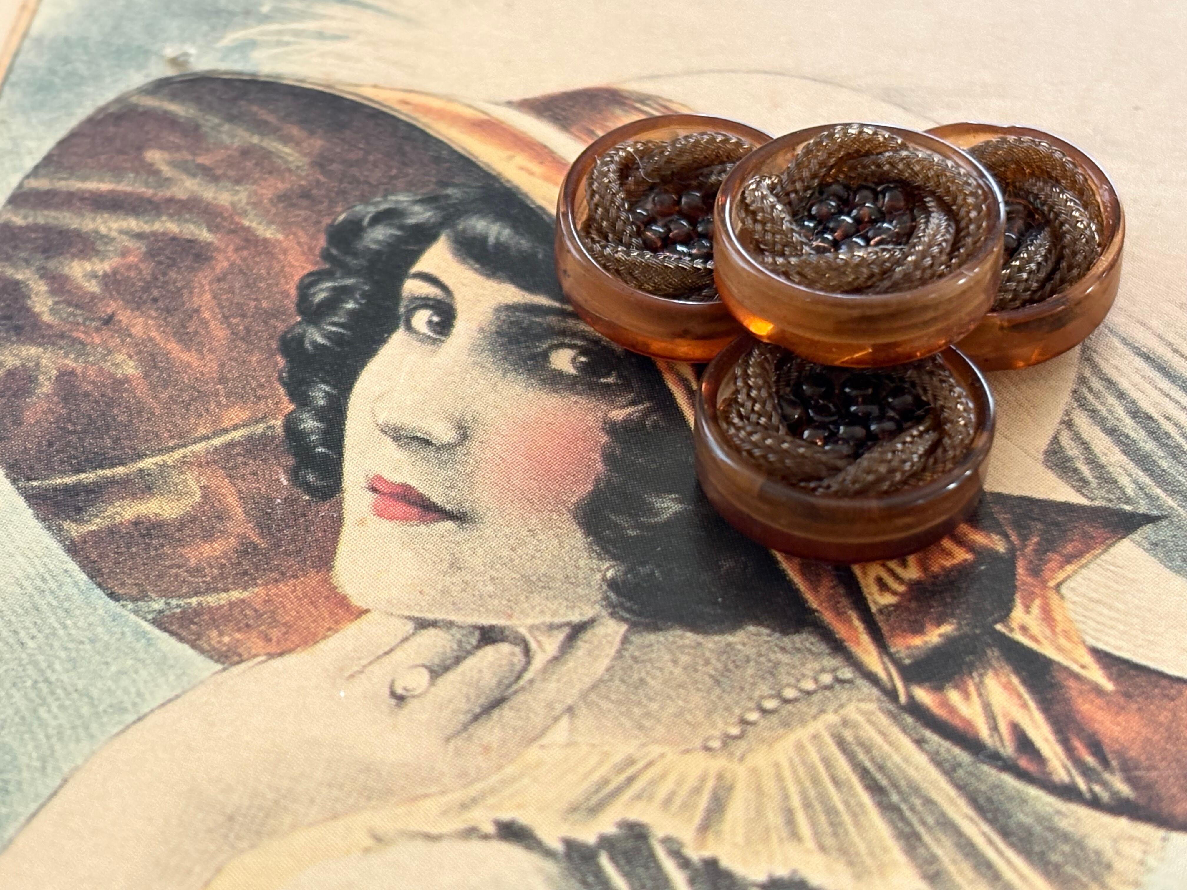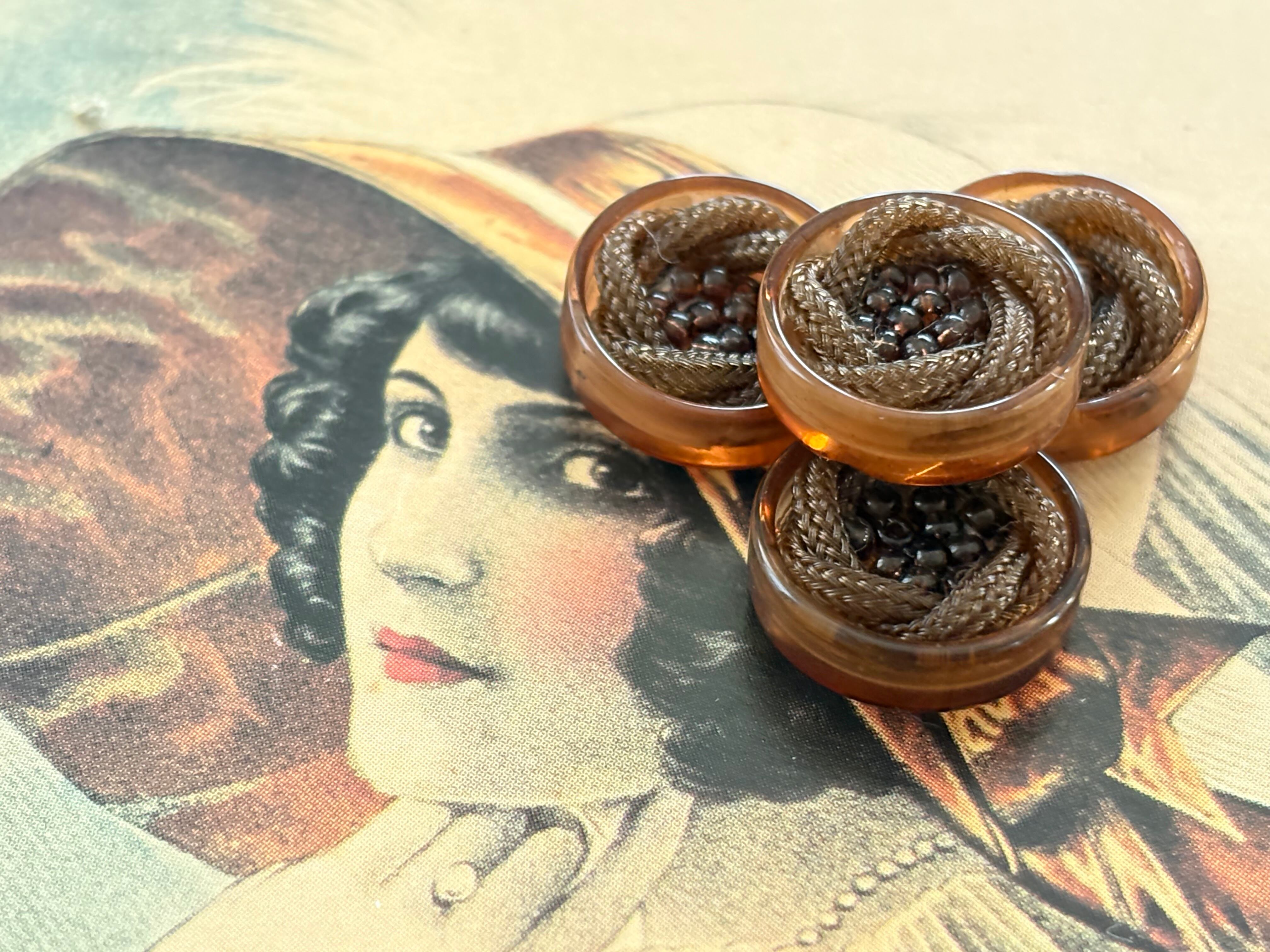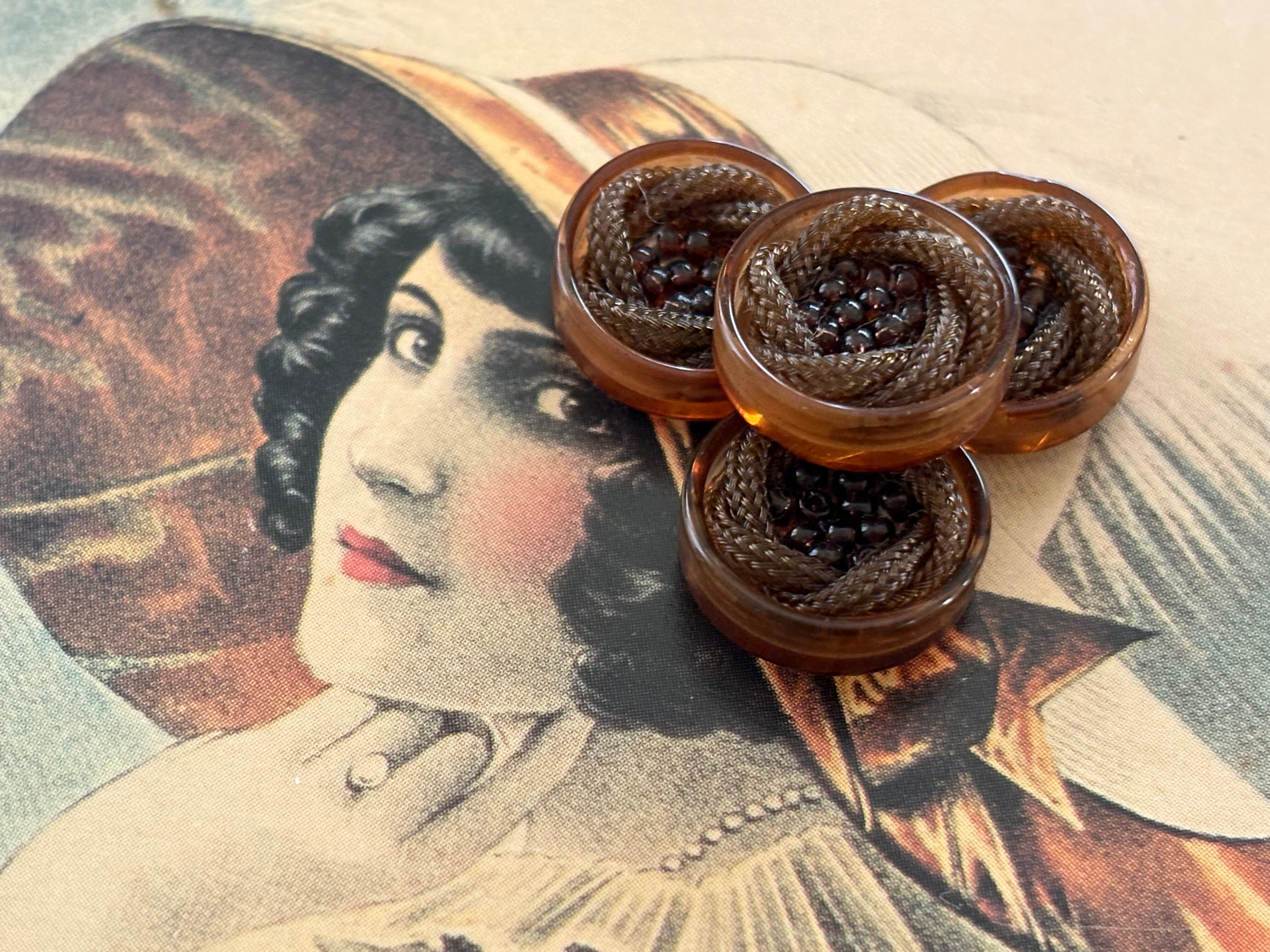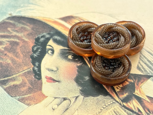14mm Japanese ヴィンテージボタン コードボタン ビーズ ブラウン アクセサリーパーツ 装飾材 カルトナージュ