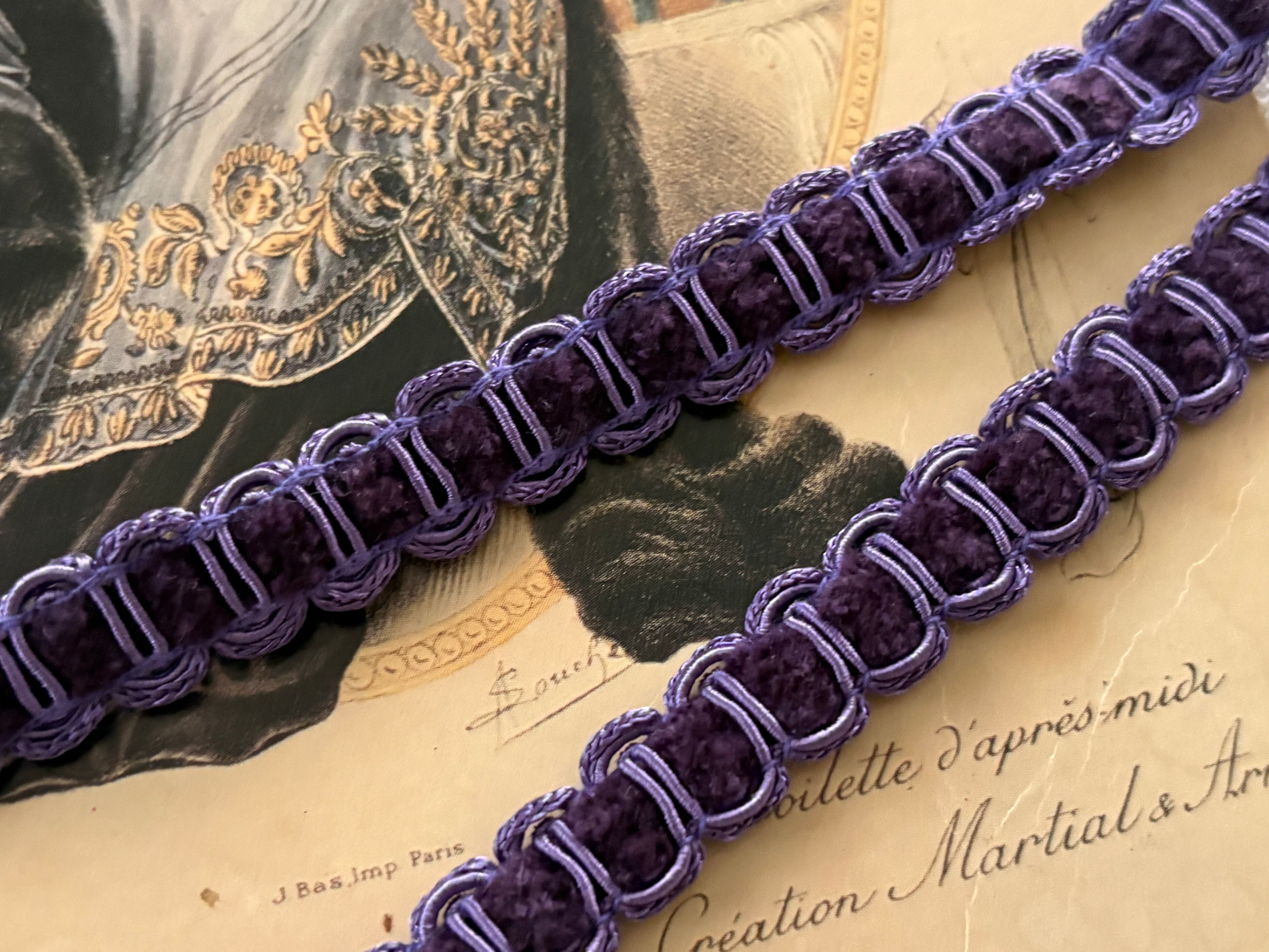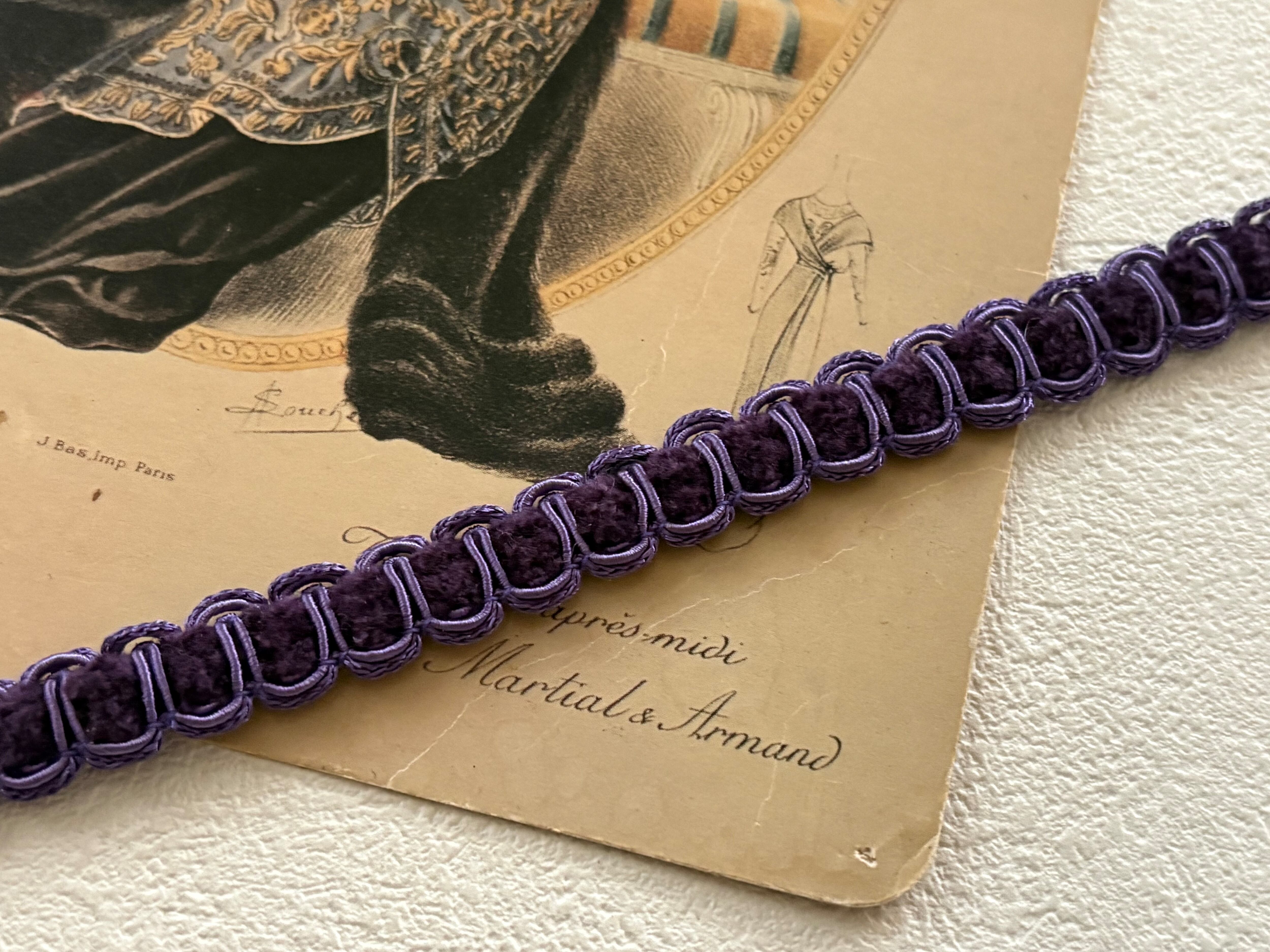 フランスVintage カットブレード 113cm パープル 12mm ベルベット カルトナージュ デコレーション材
