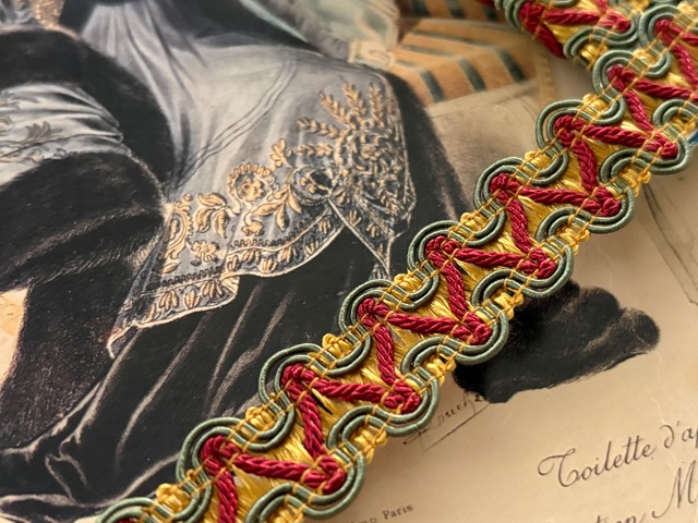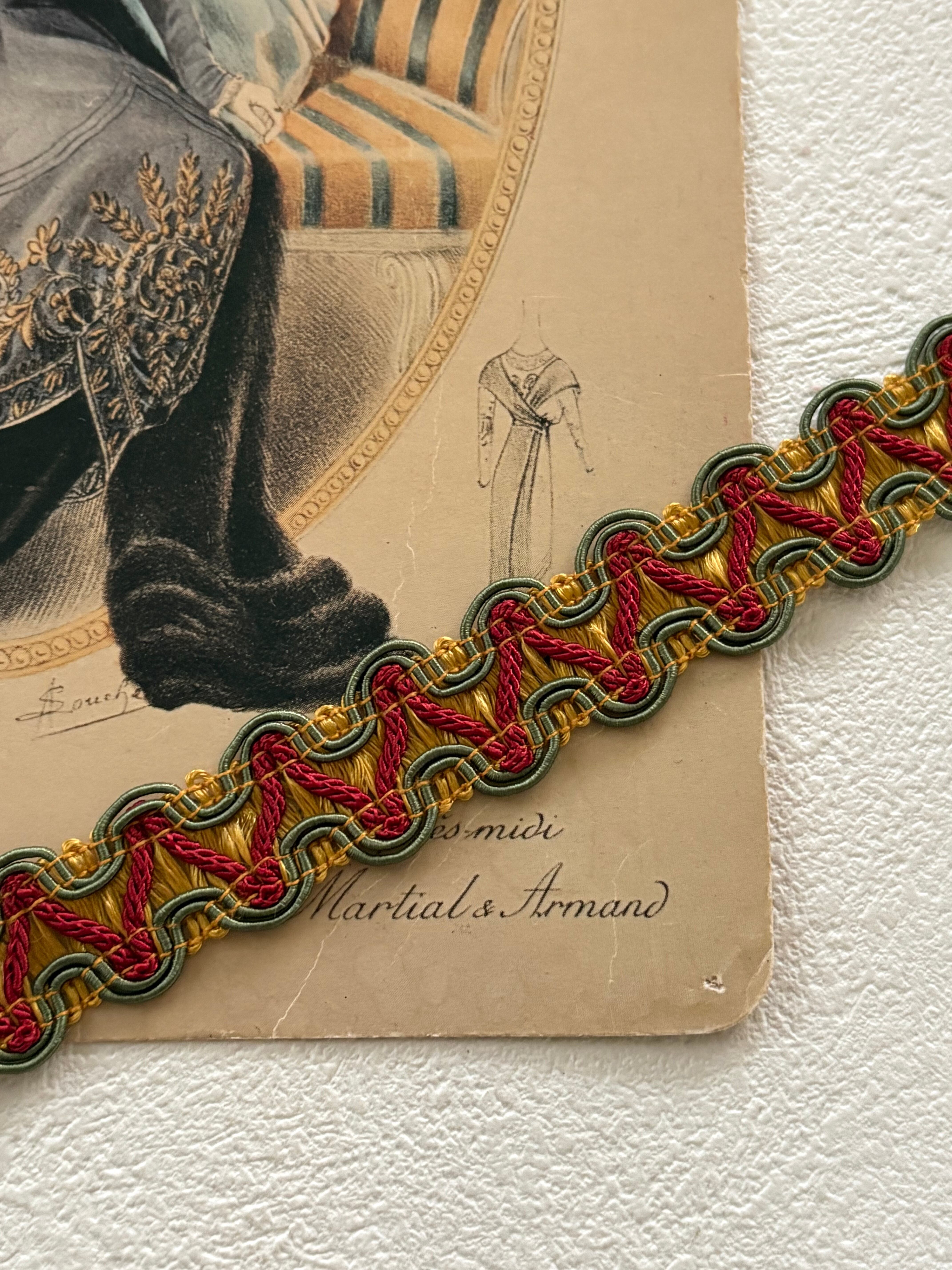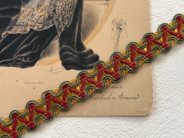 輸入デザインブレード フランス マスタードイエロー×カーキ×レッド 18mm 50cm/カット単位 カルトナージュ デコレーション材