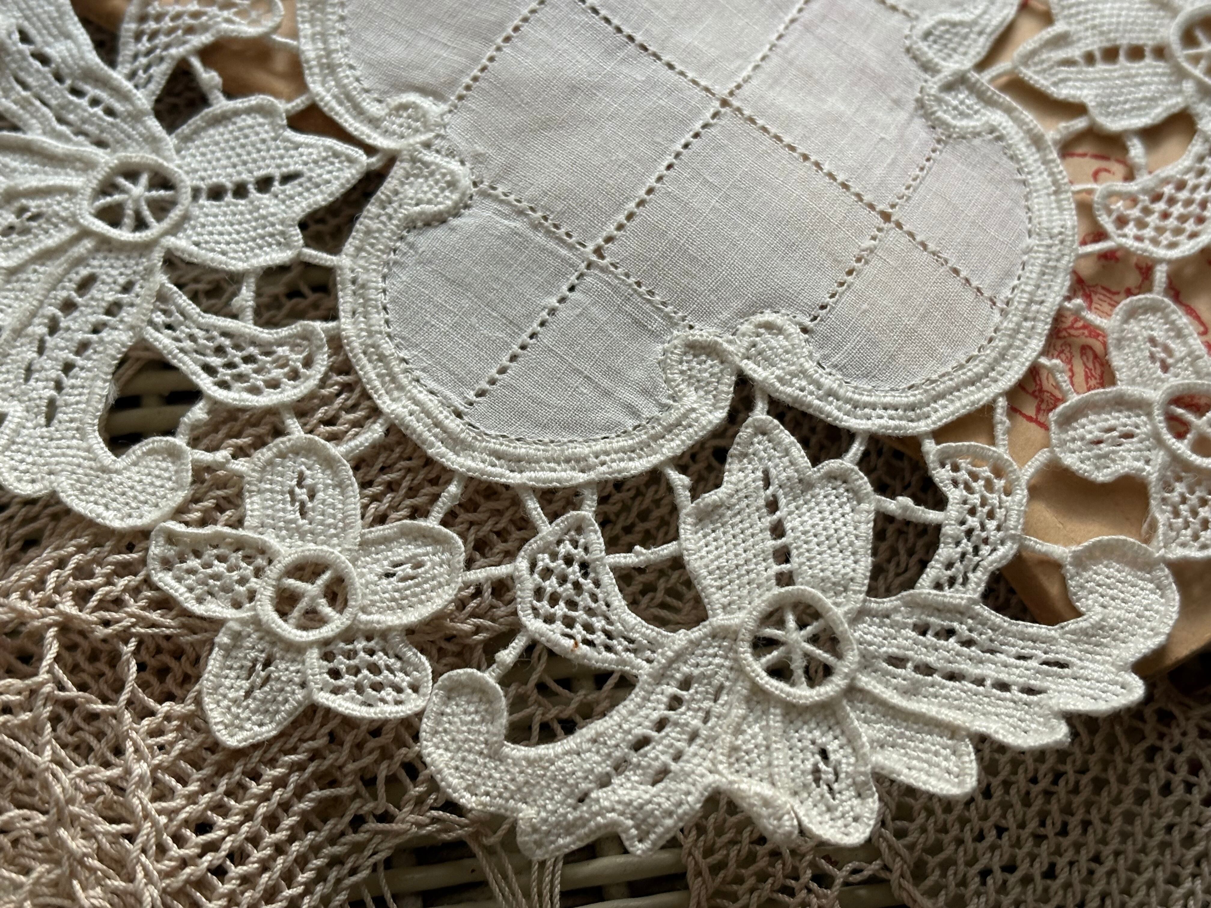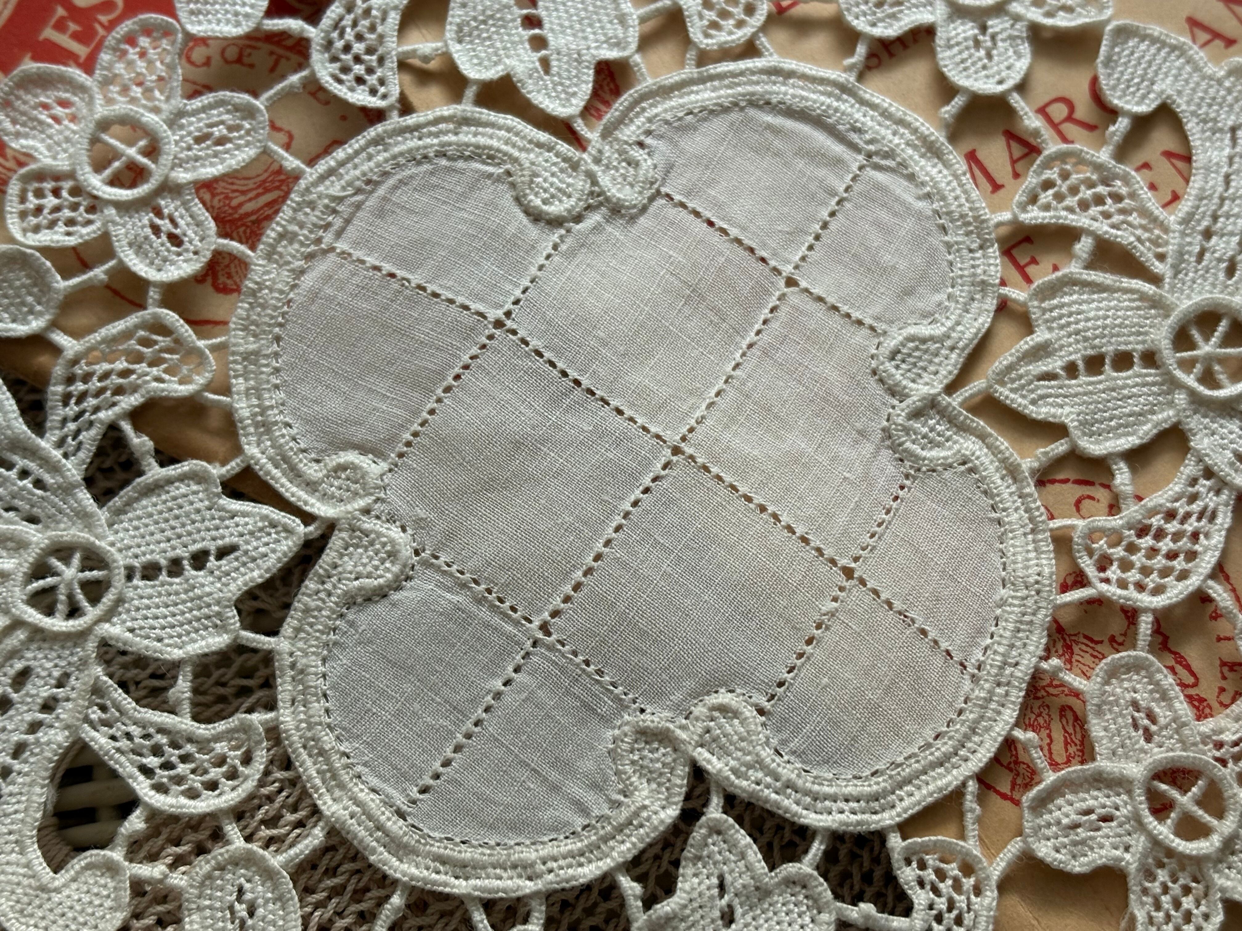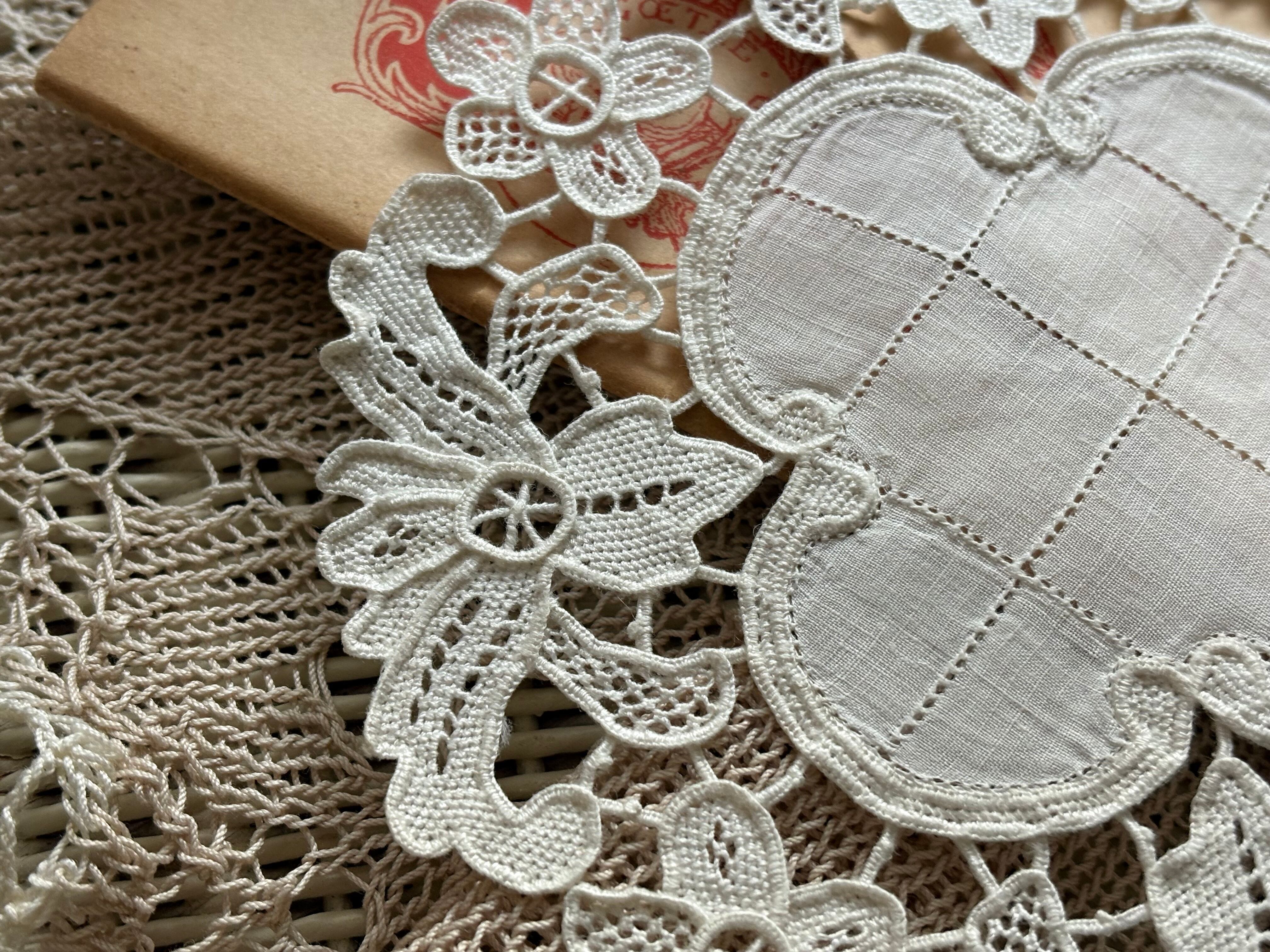 コットン地にクロッシェレースがあしらわれた美しく可愛いドイリーです。