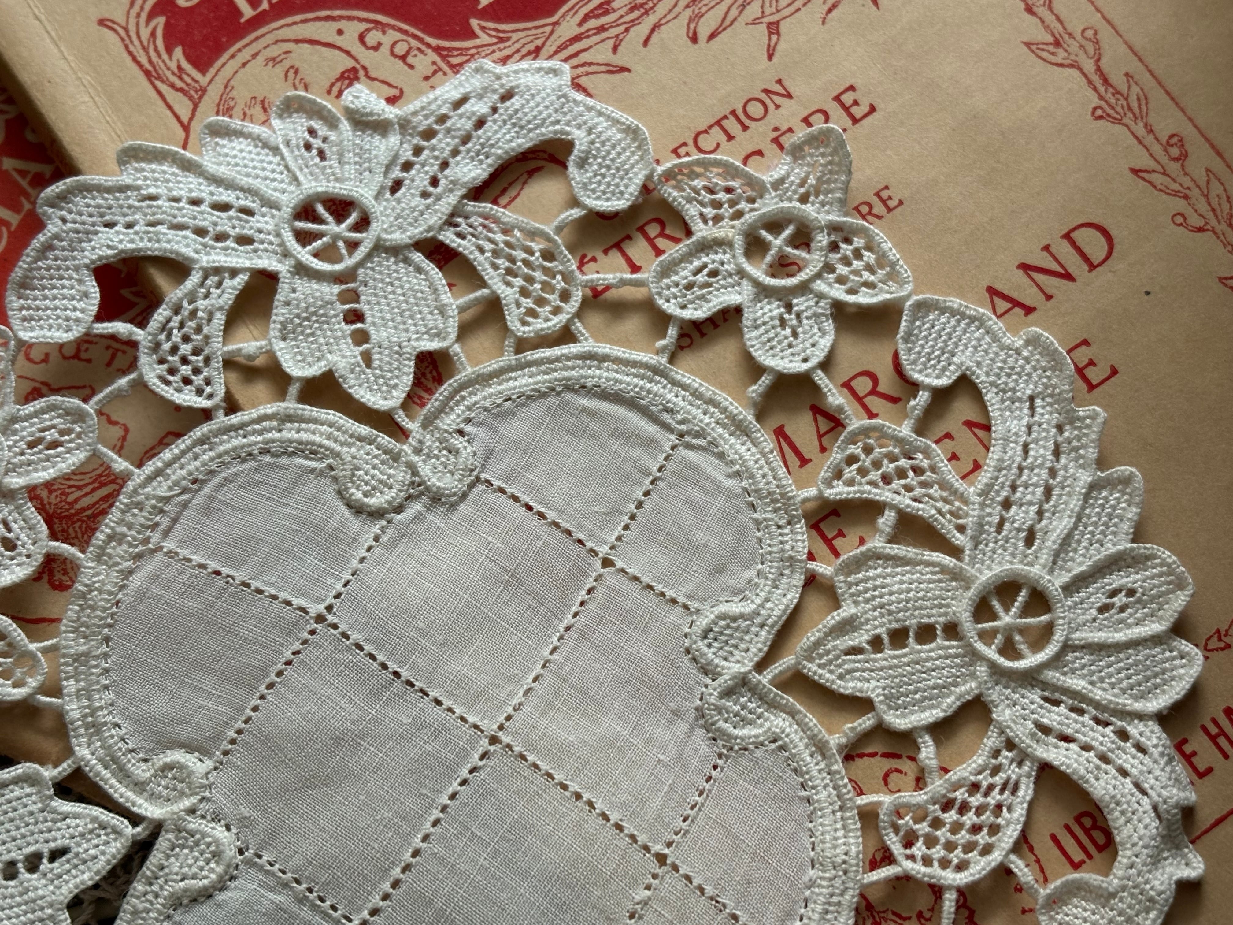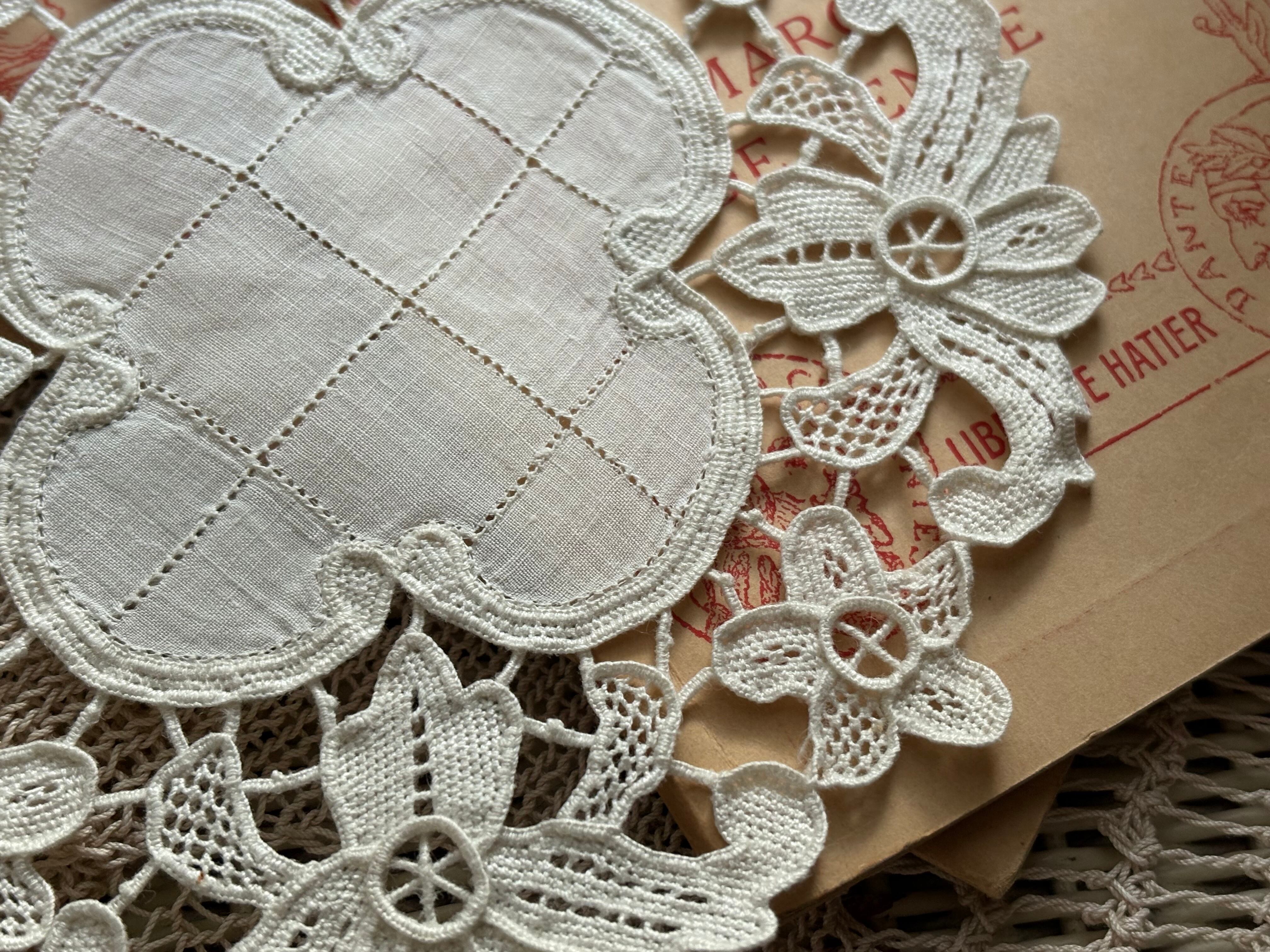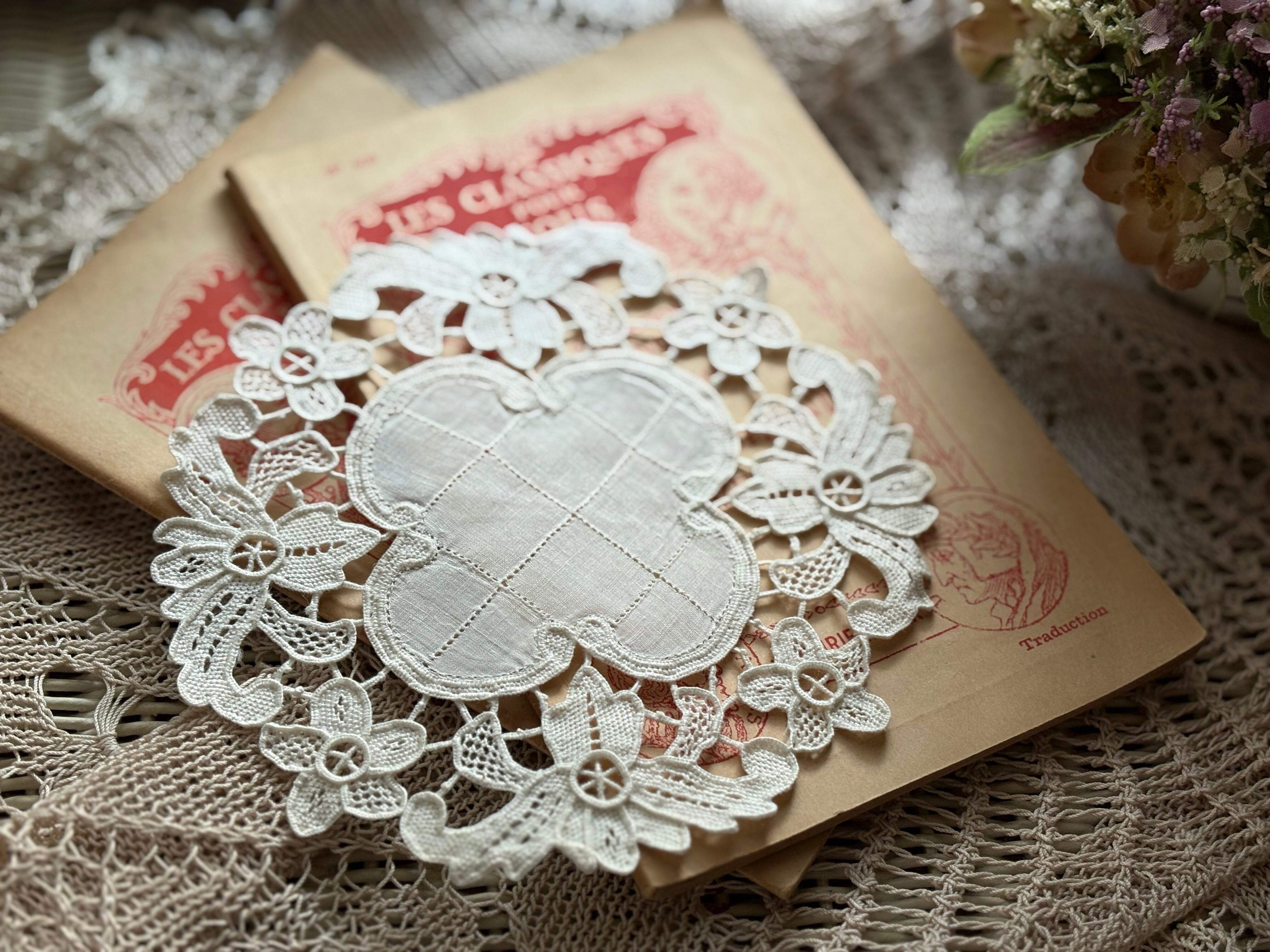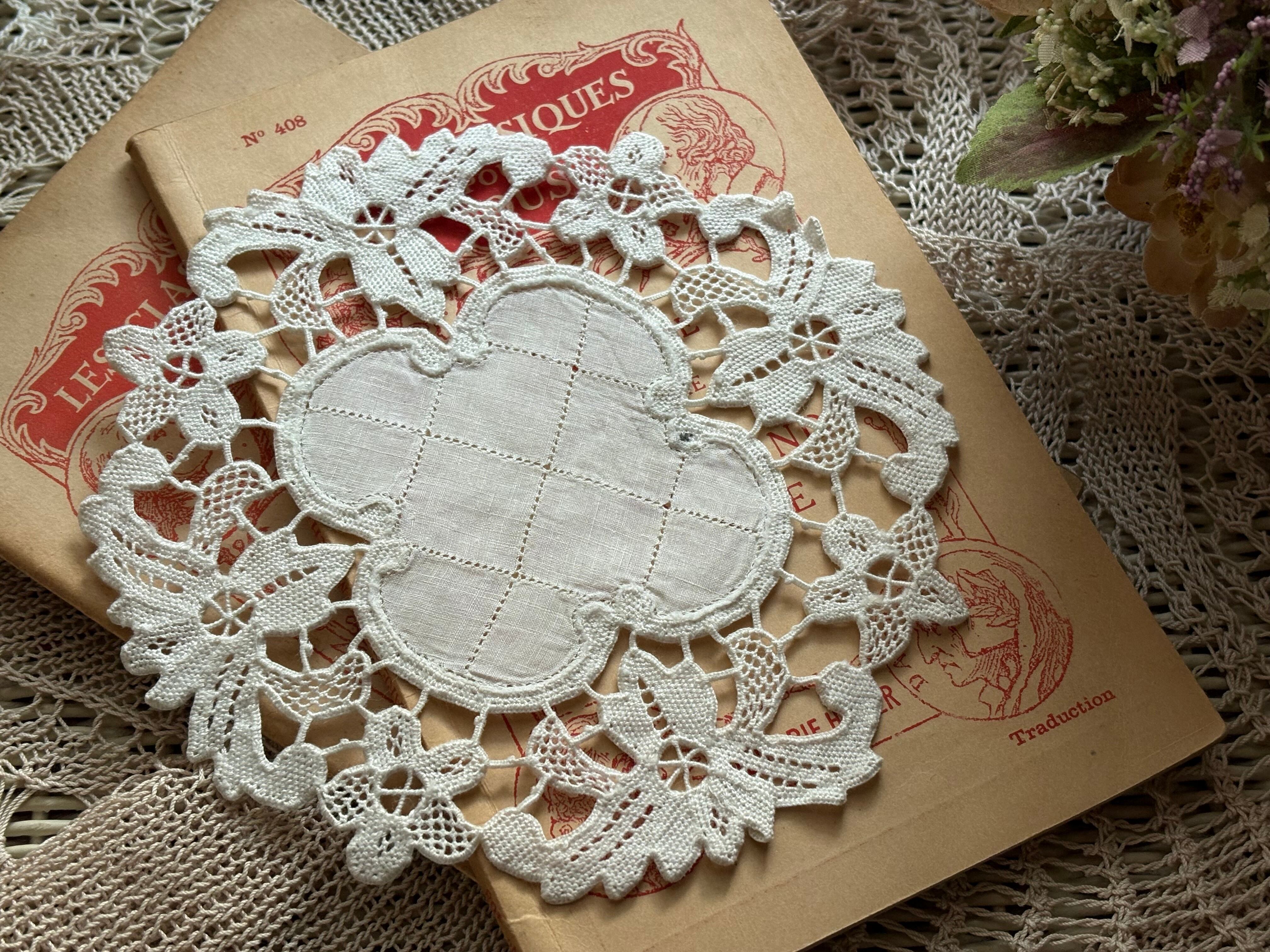 フランスVintage ドイリー 14.4cm カットワーク 敷物 インテリア ハンドメイド素材 フラワー