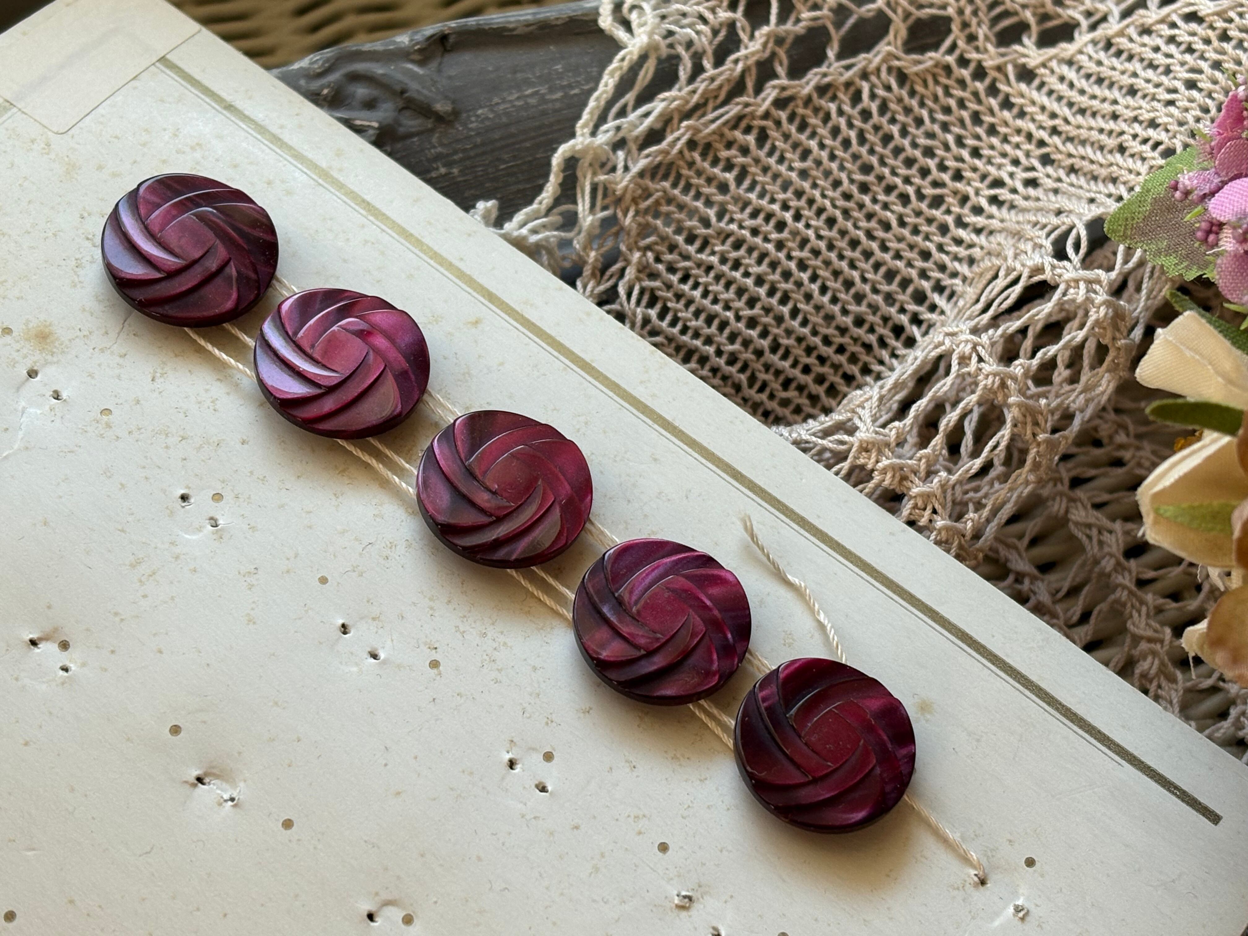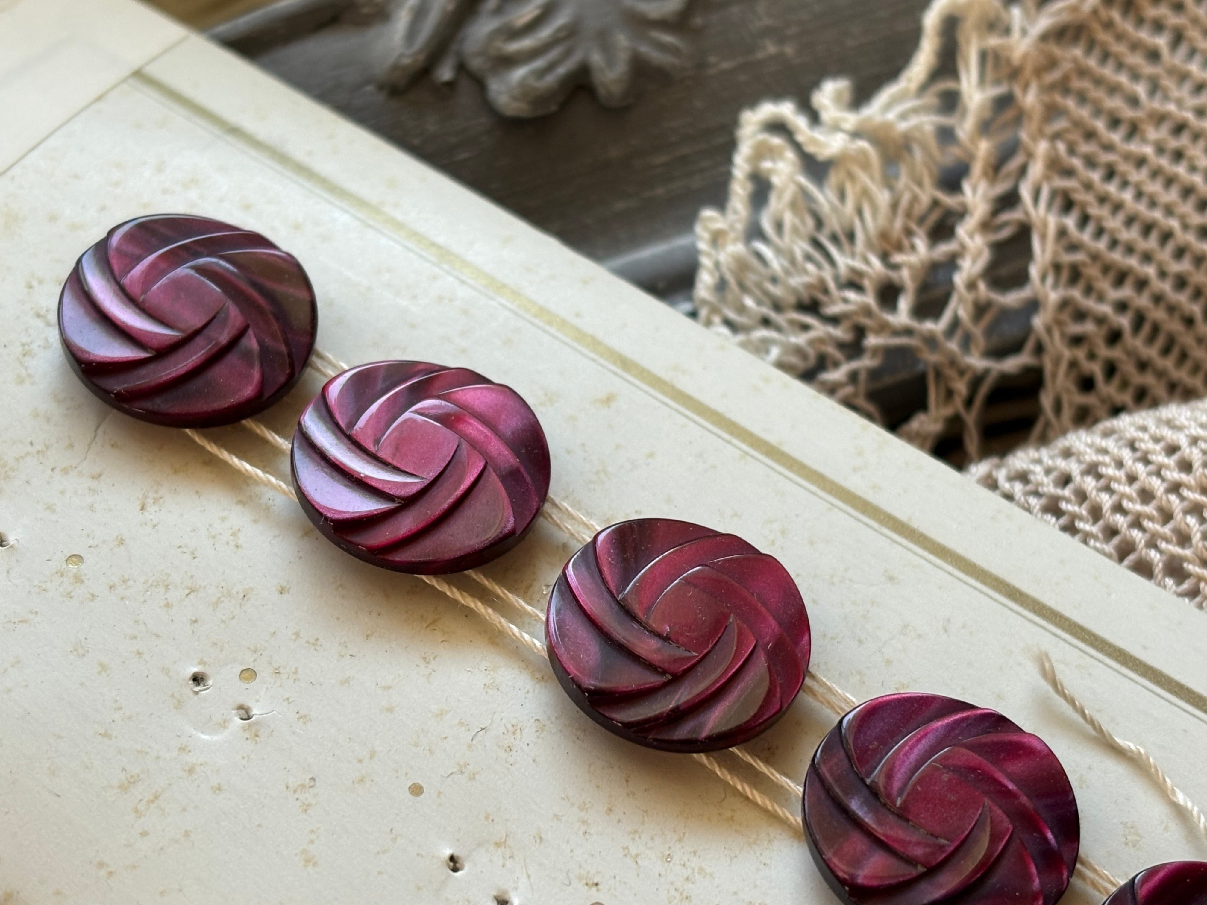17mm フランスVintage ヴィンテージボタン Rose ワインレッド プラスチック アクセサリーパーツ デコレーション材