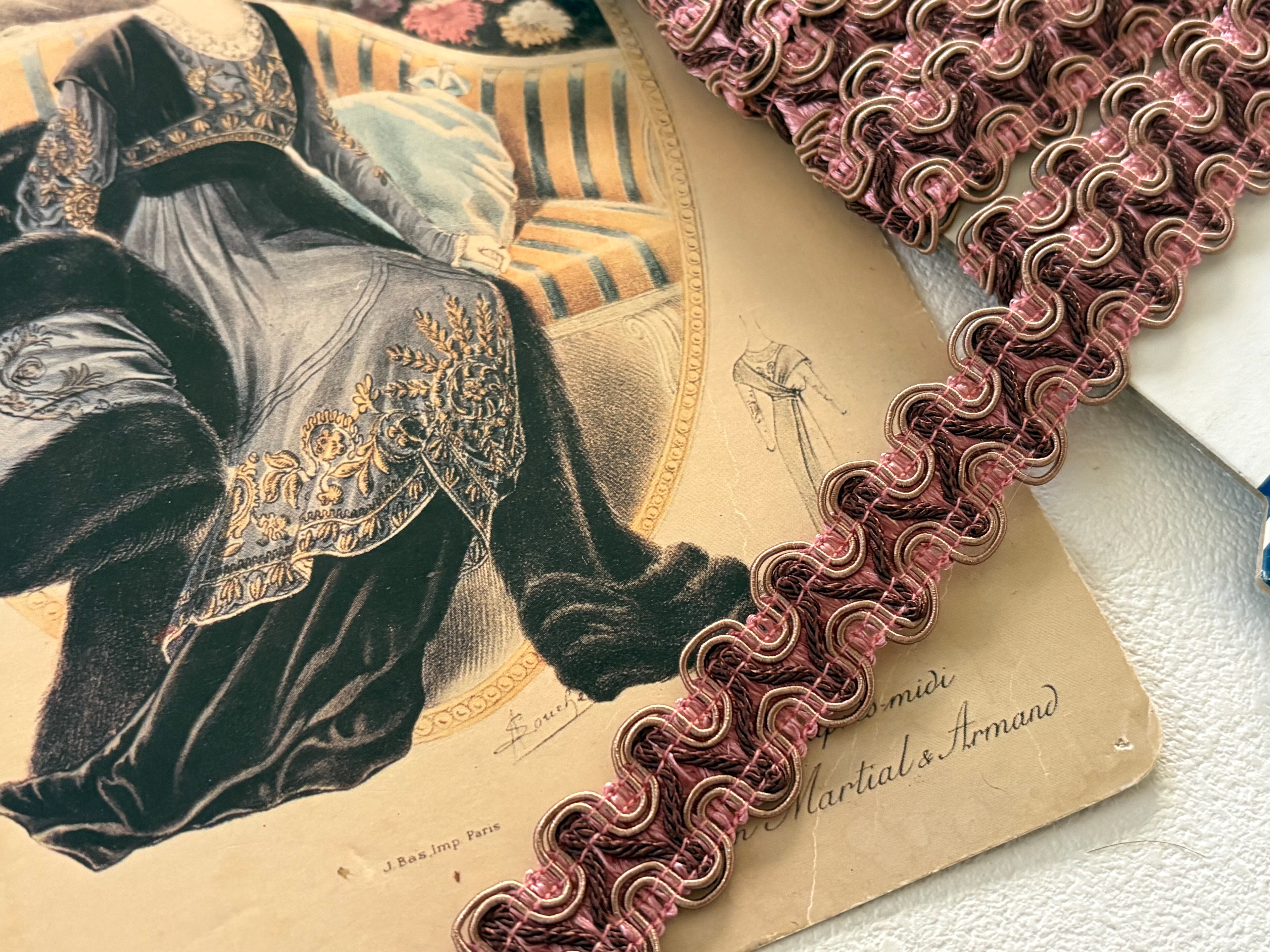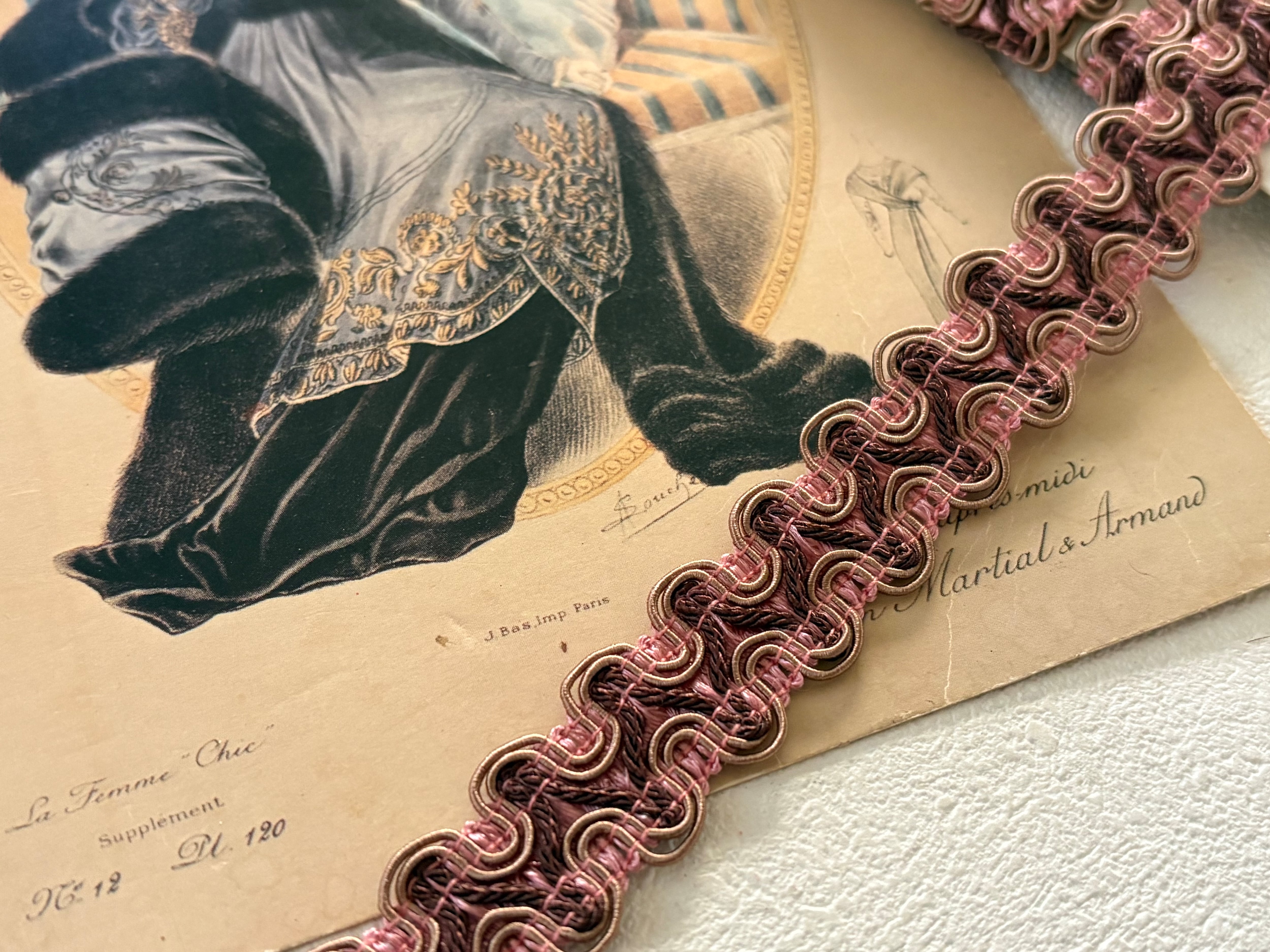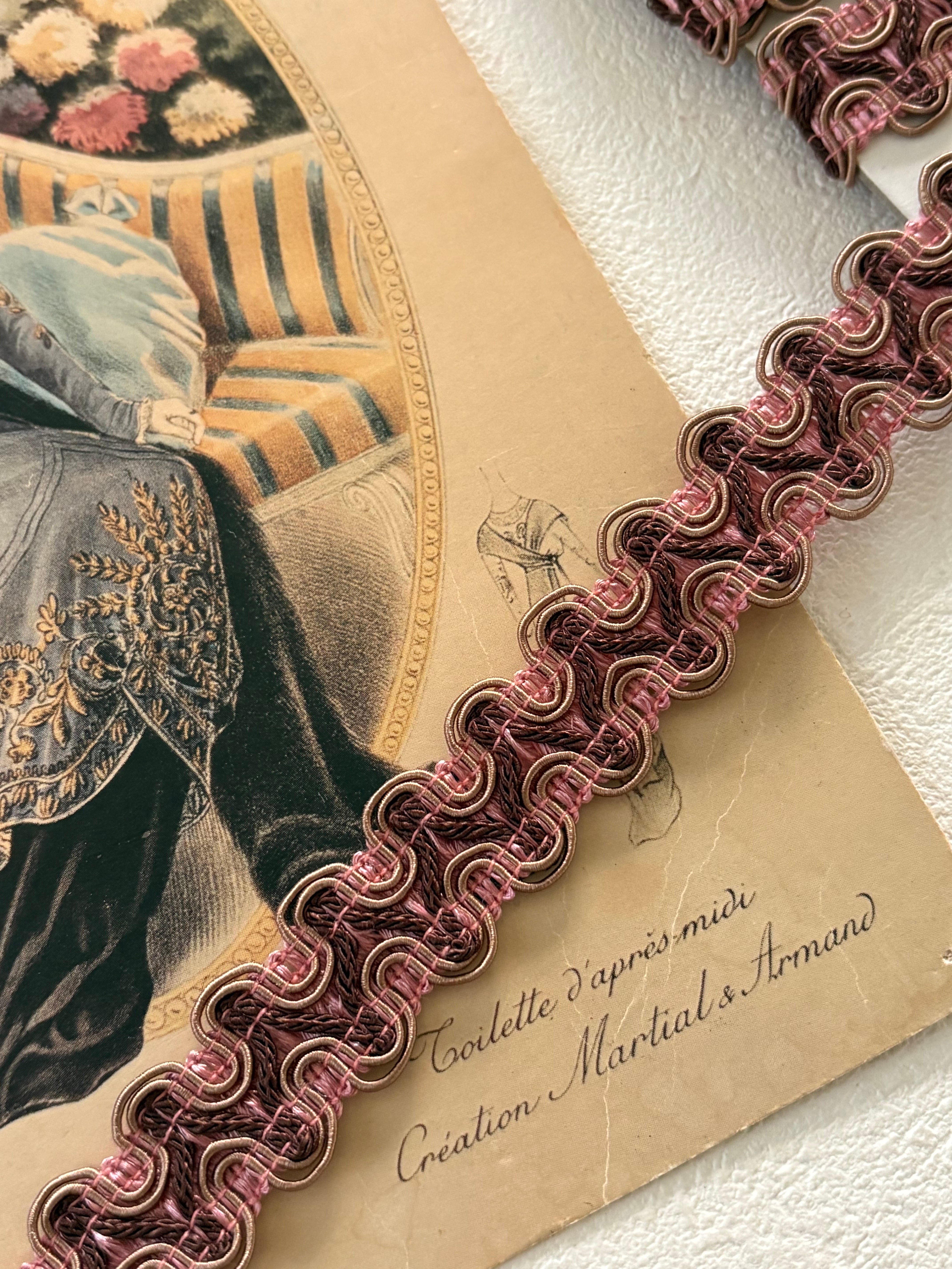 輸入デザインブレード フランス ピンク×ワインレッド 18mm 50cm/カット単位 カルトナージュ デコレーション材
