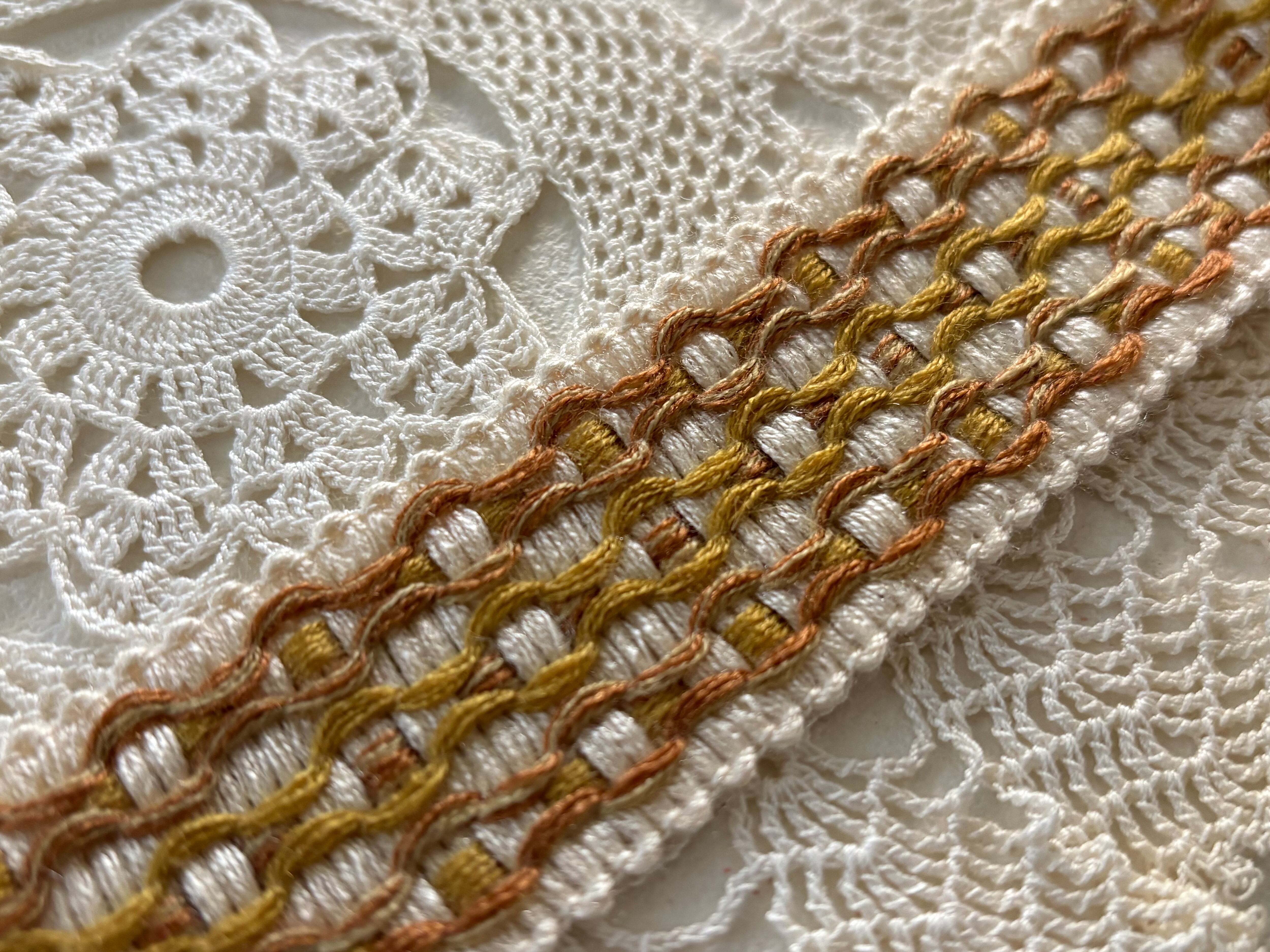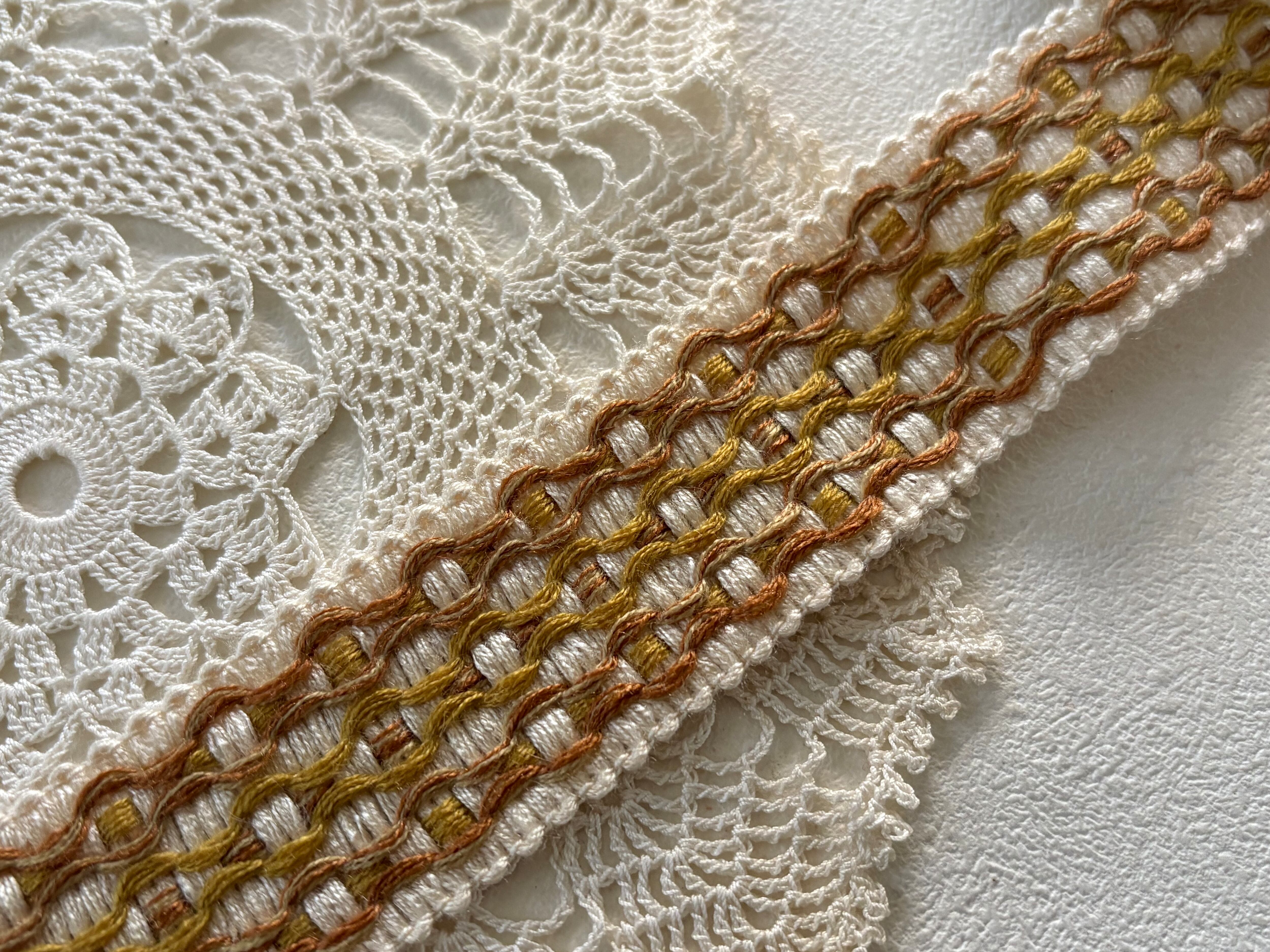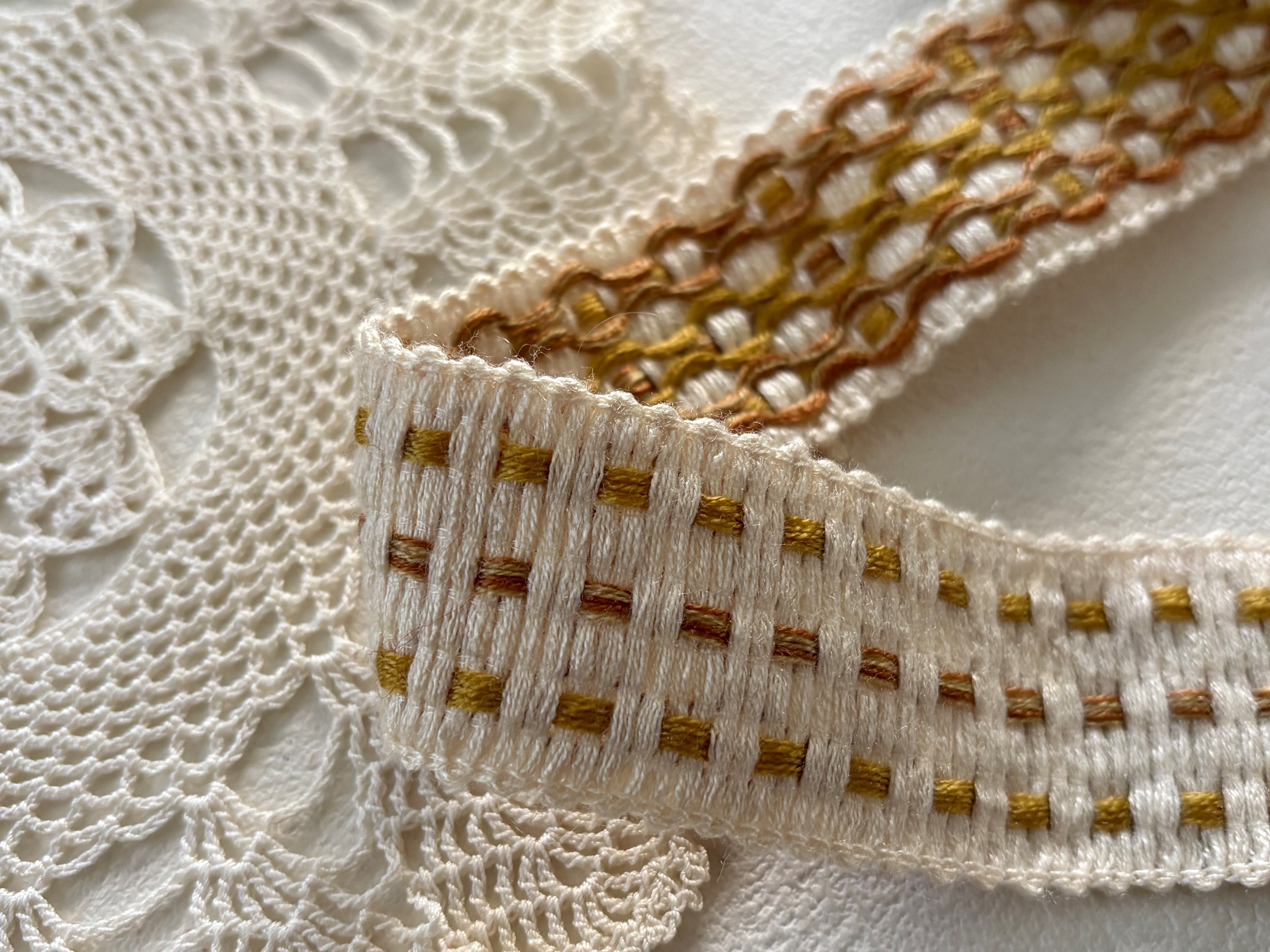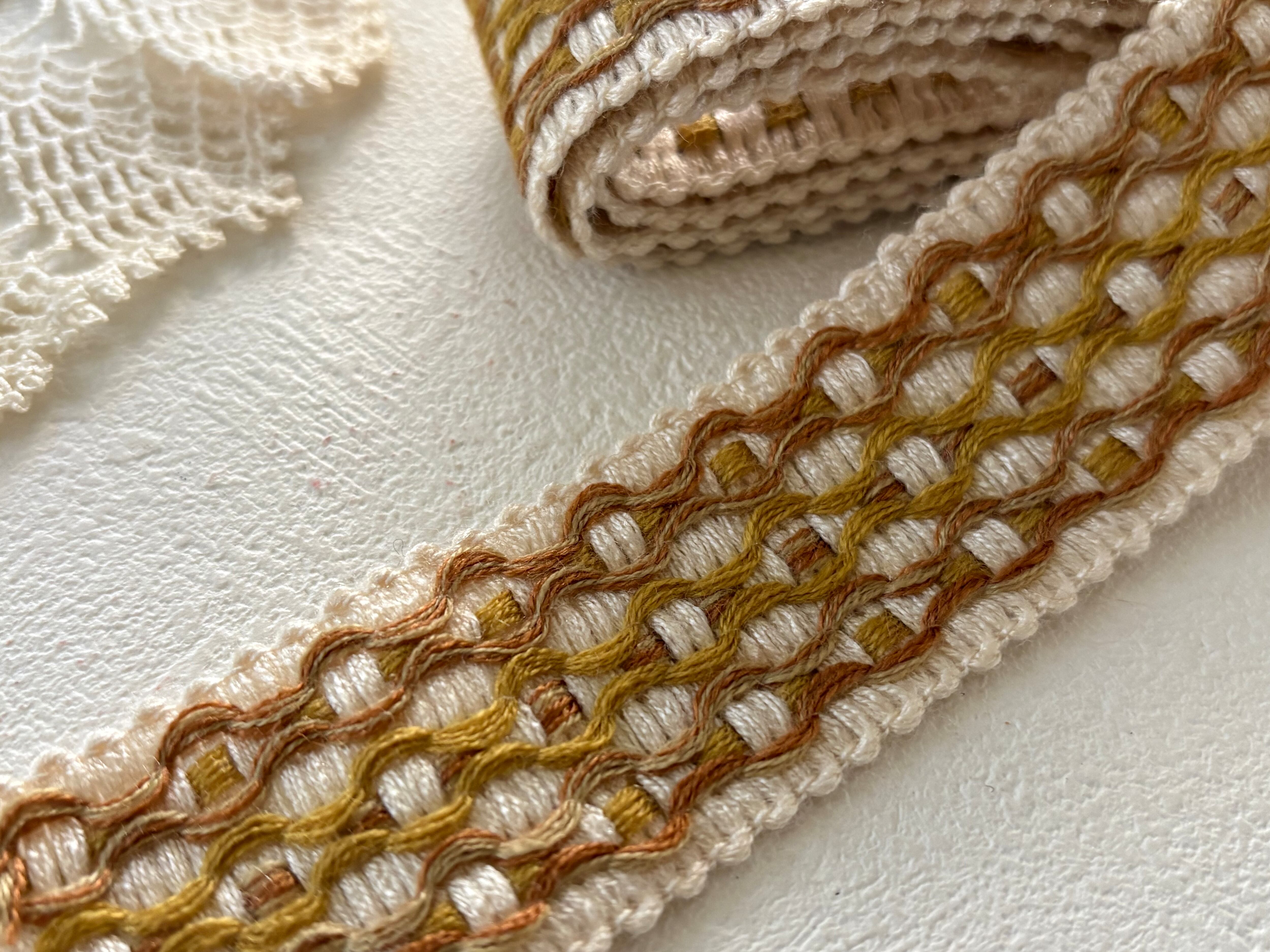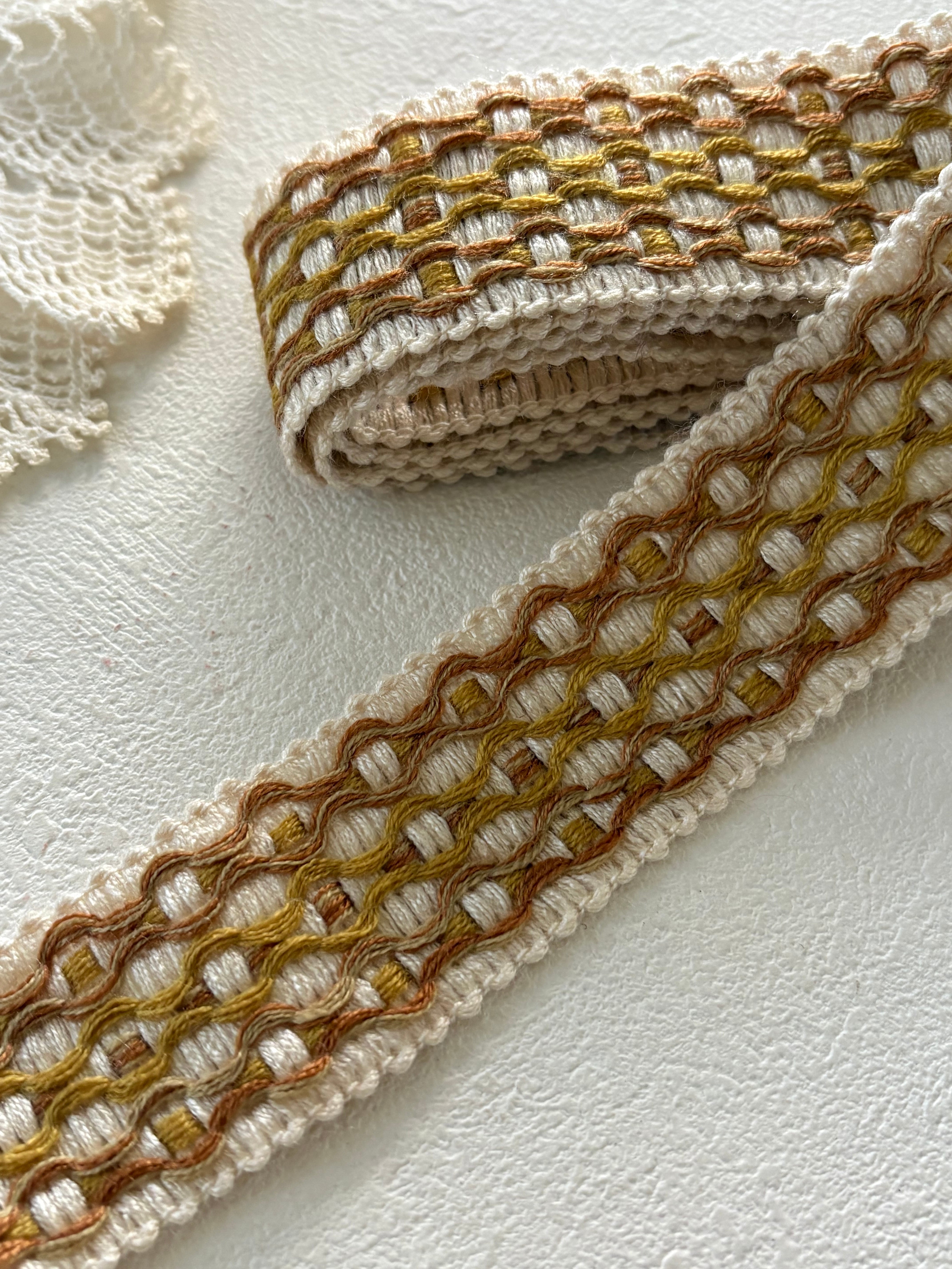 フランスVintage カットブレード 幅35mm 120cmカット アイボリー×イエローゴールド他 織模様 カルトナージュ デコレーション材