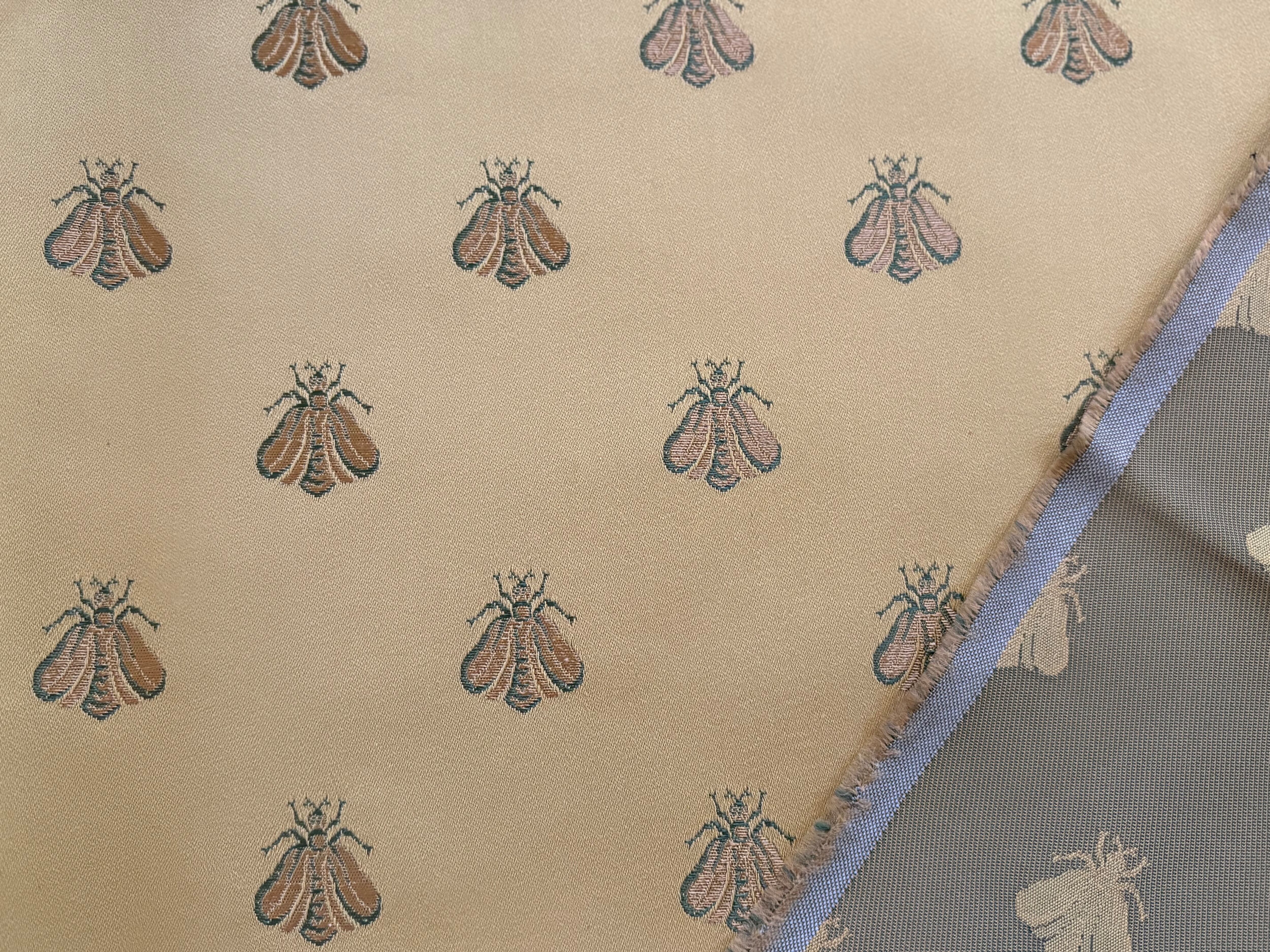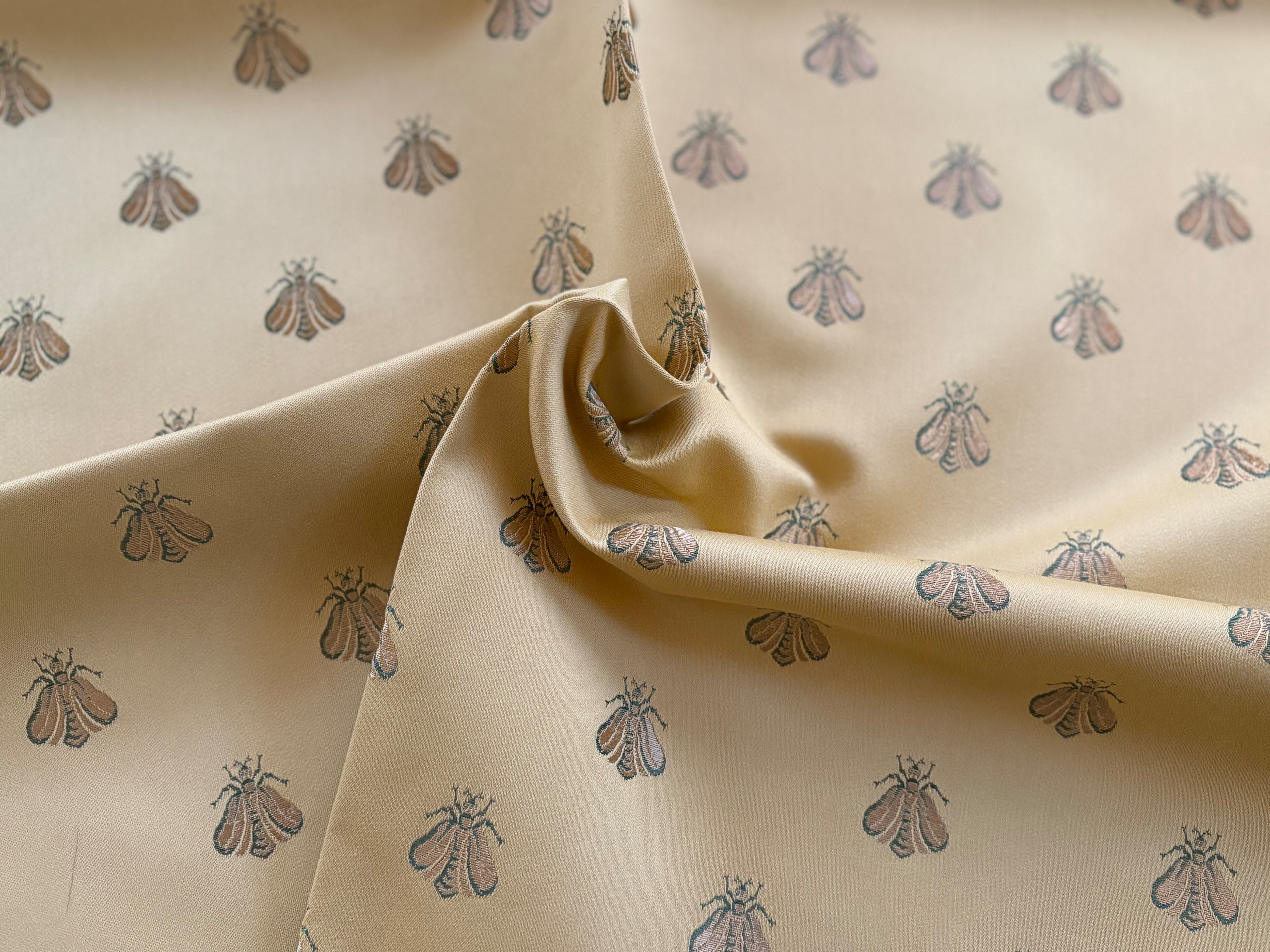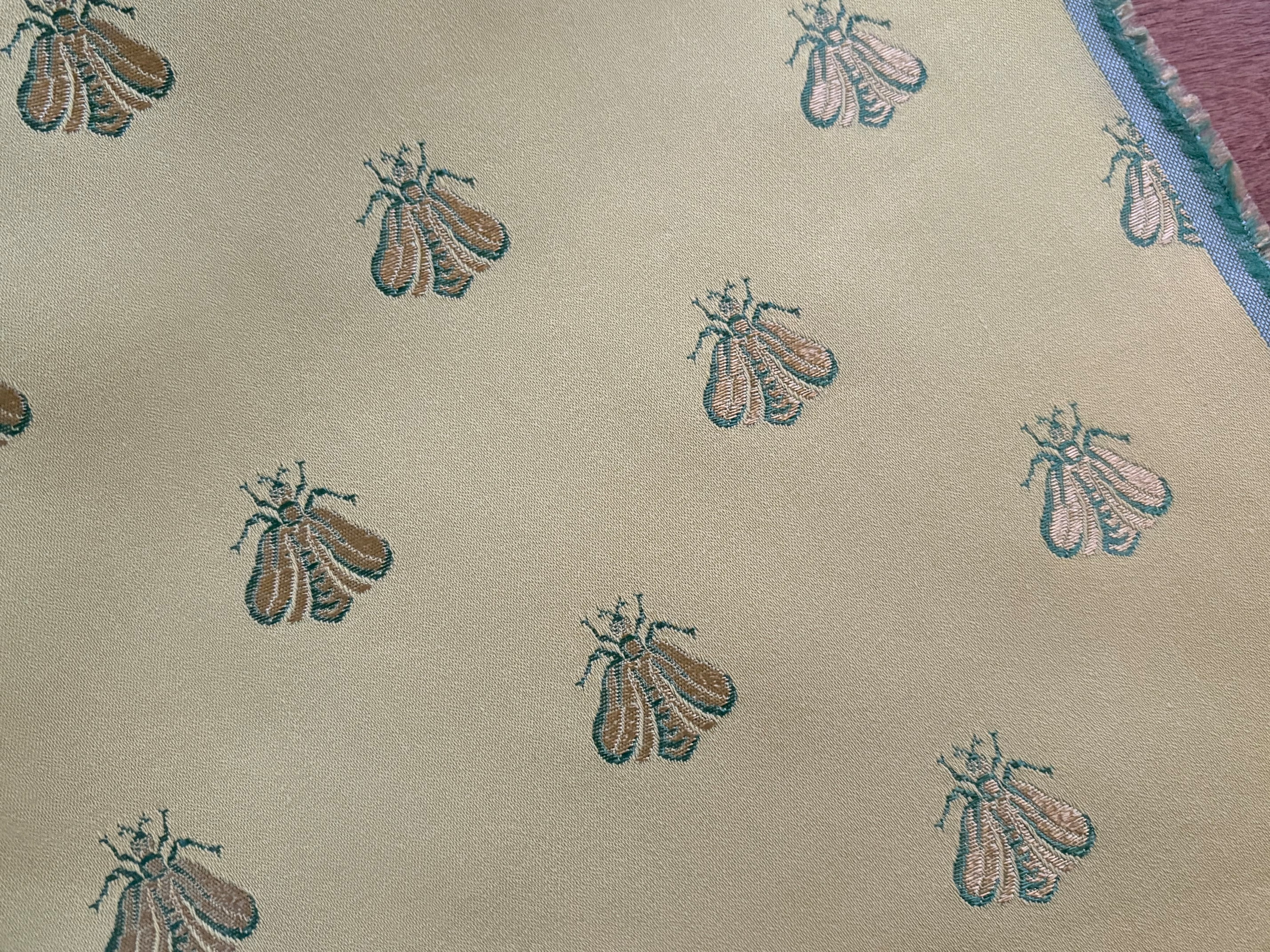 フランス インテリアファブリック アベイユ 蜜蜂 イエローゴールド×ゴールド カルトナージュ スツール インテリア茶箱