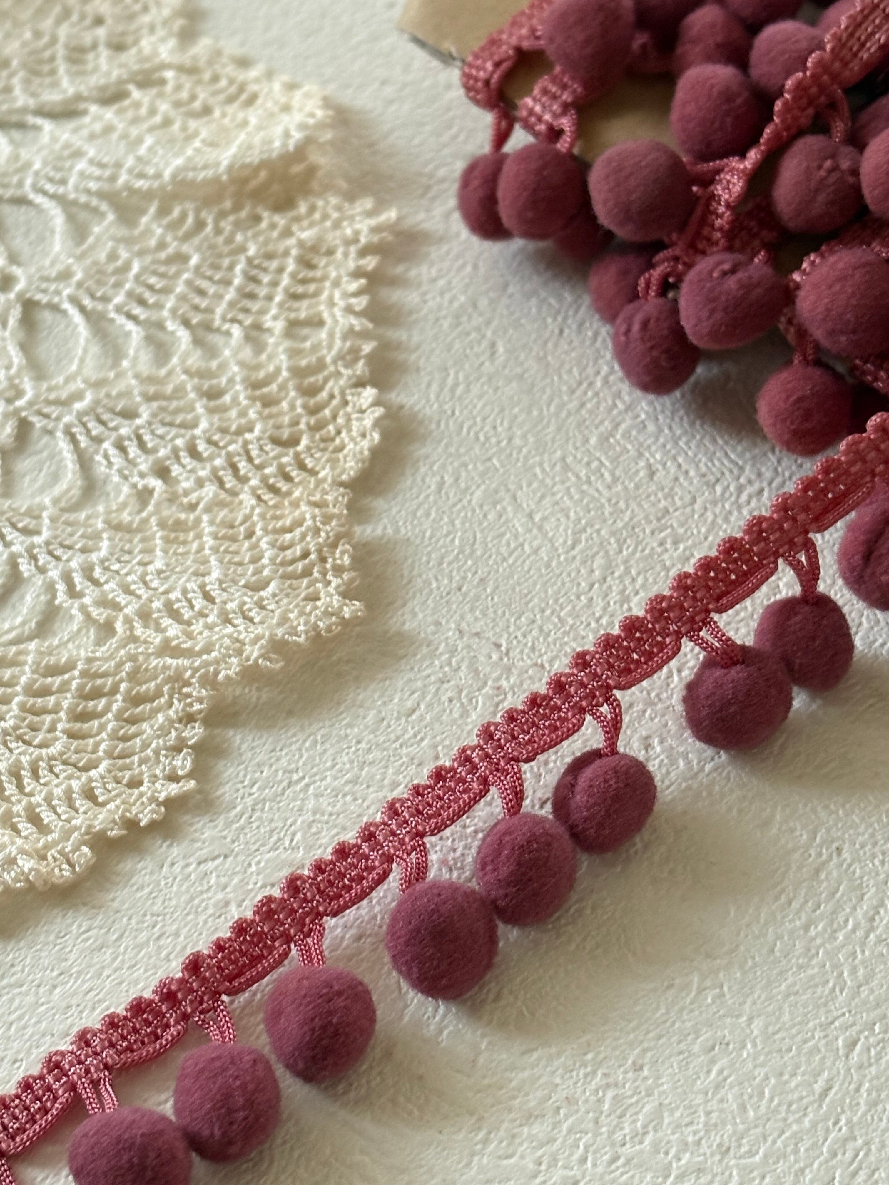 フランス 輸入デザインタッセルブレード ポンポンブレード 50cm/カット 全長 20mm ピンク系 カルトナージュ スツール デコレーシ