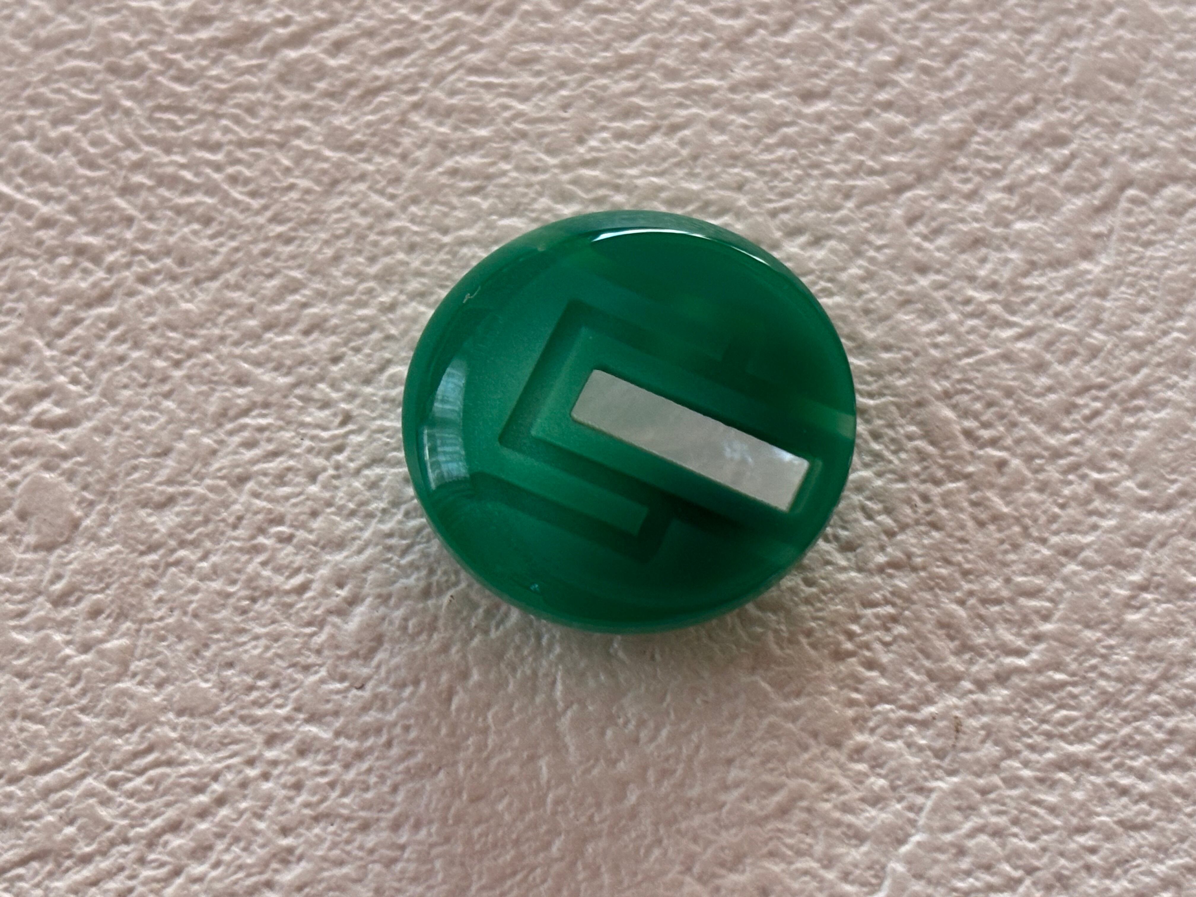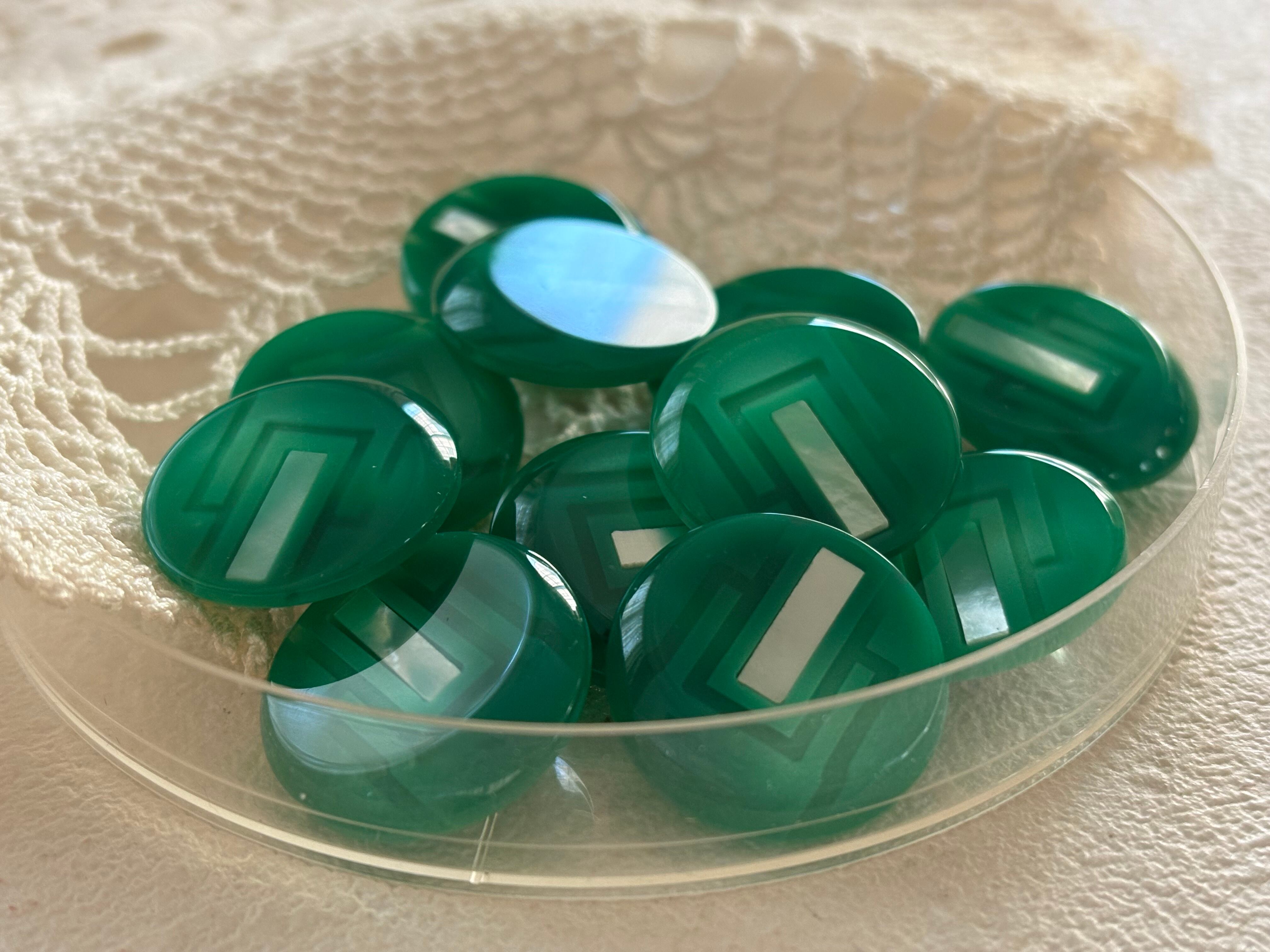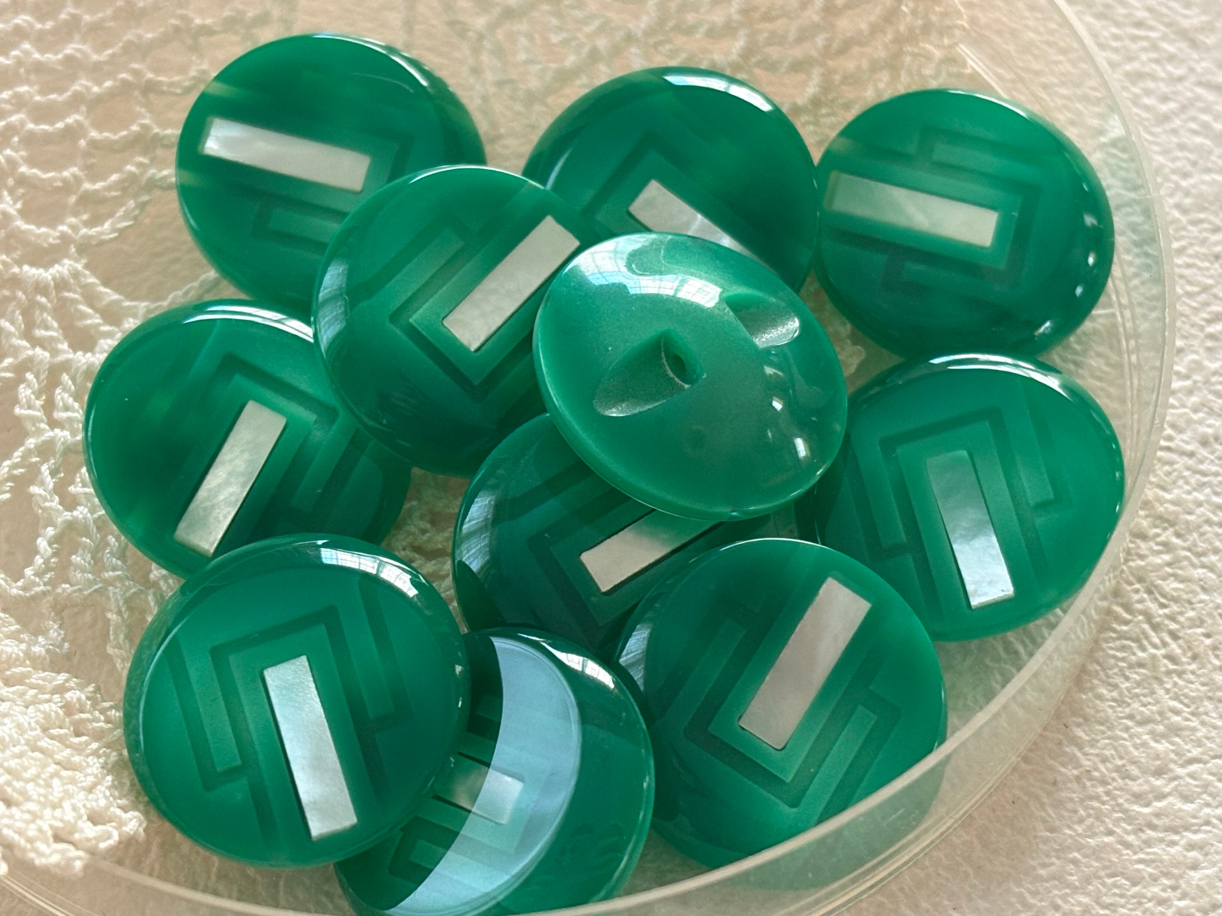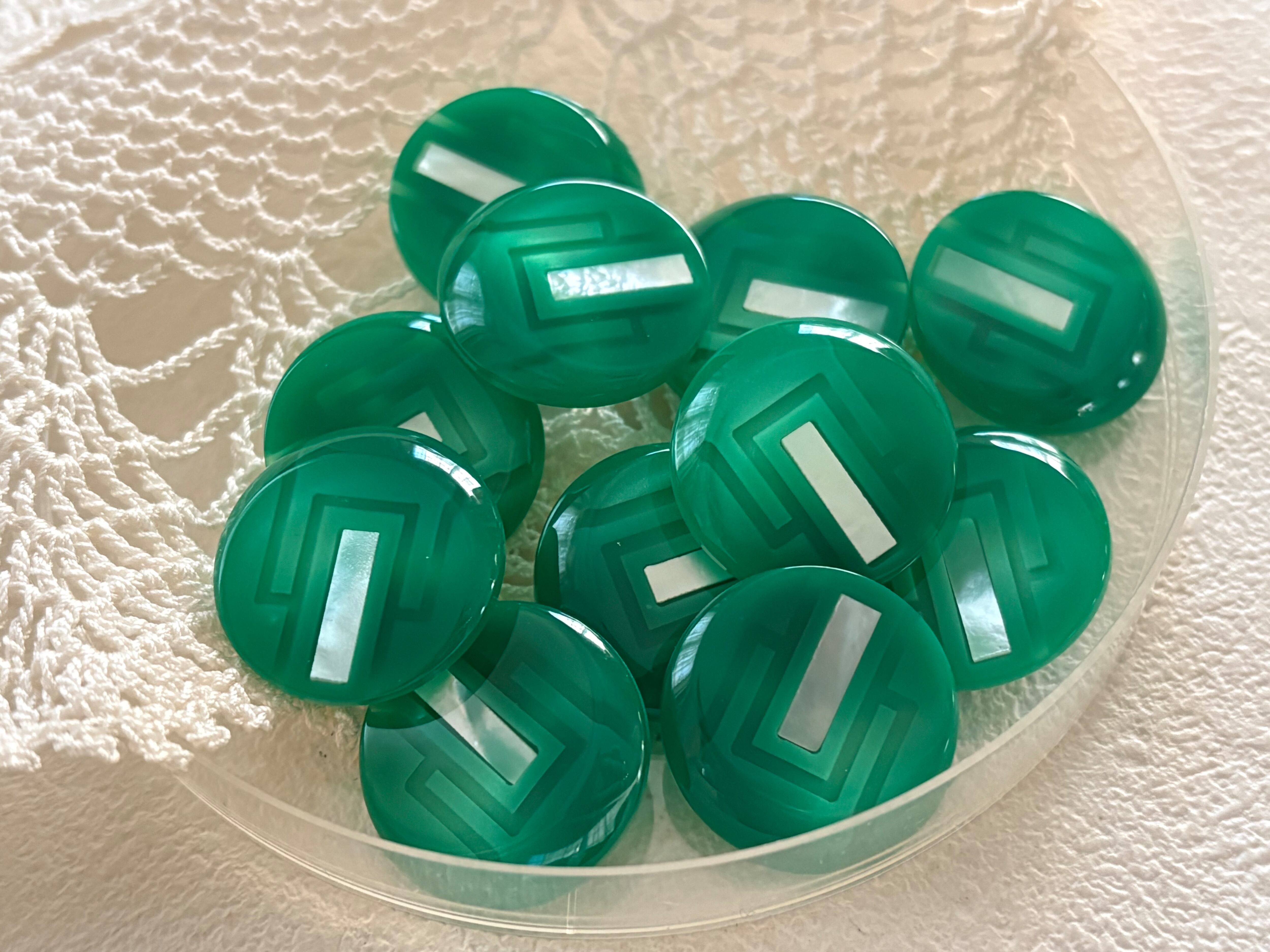 艶やかで発色の良いグリーンの樹脂ボタン。