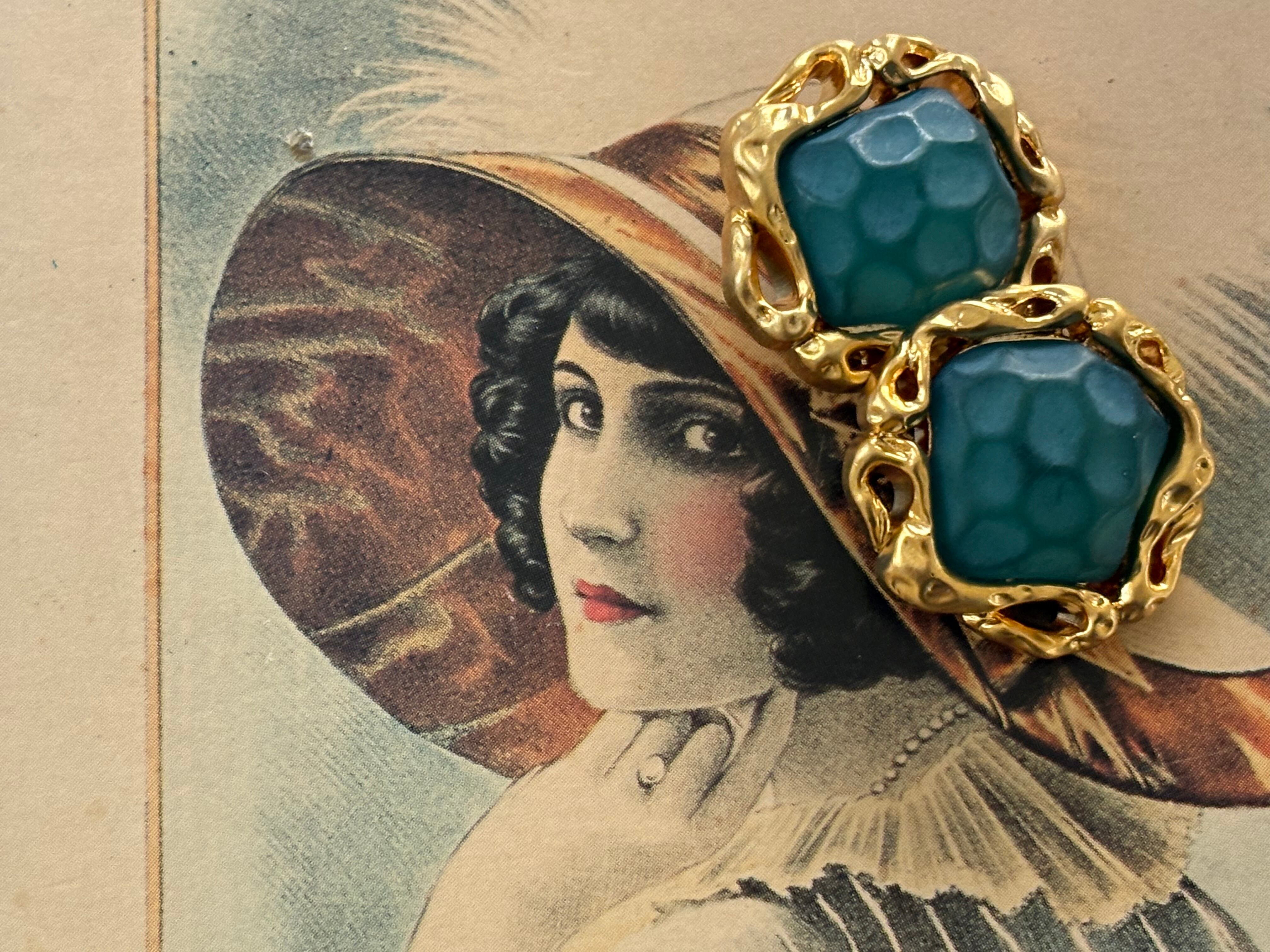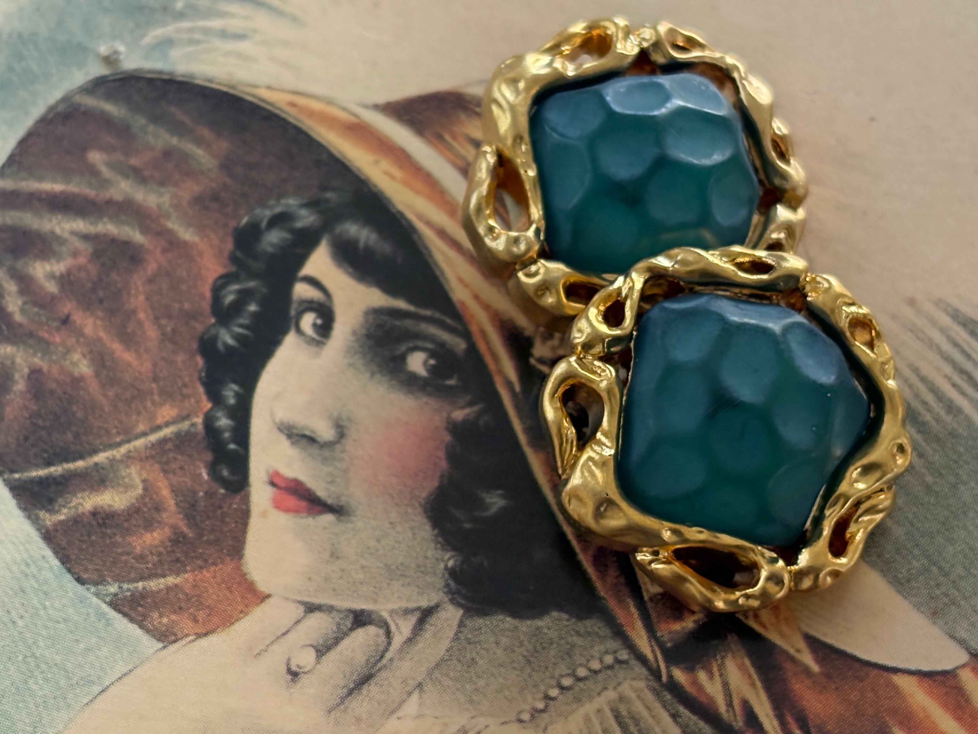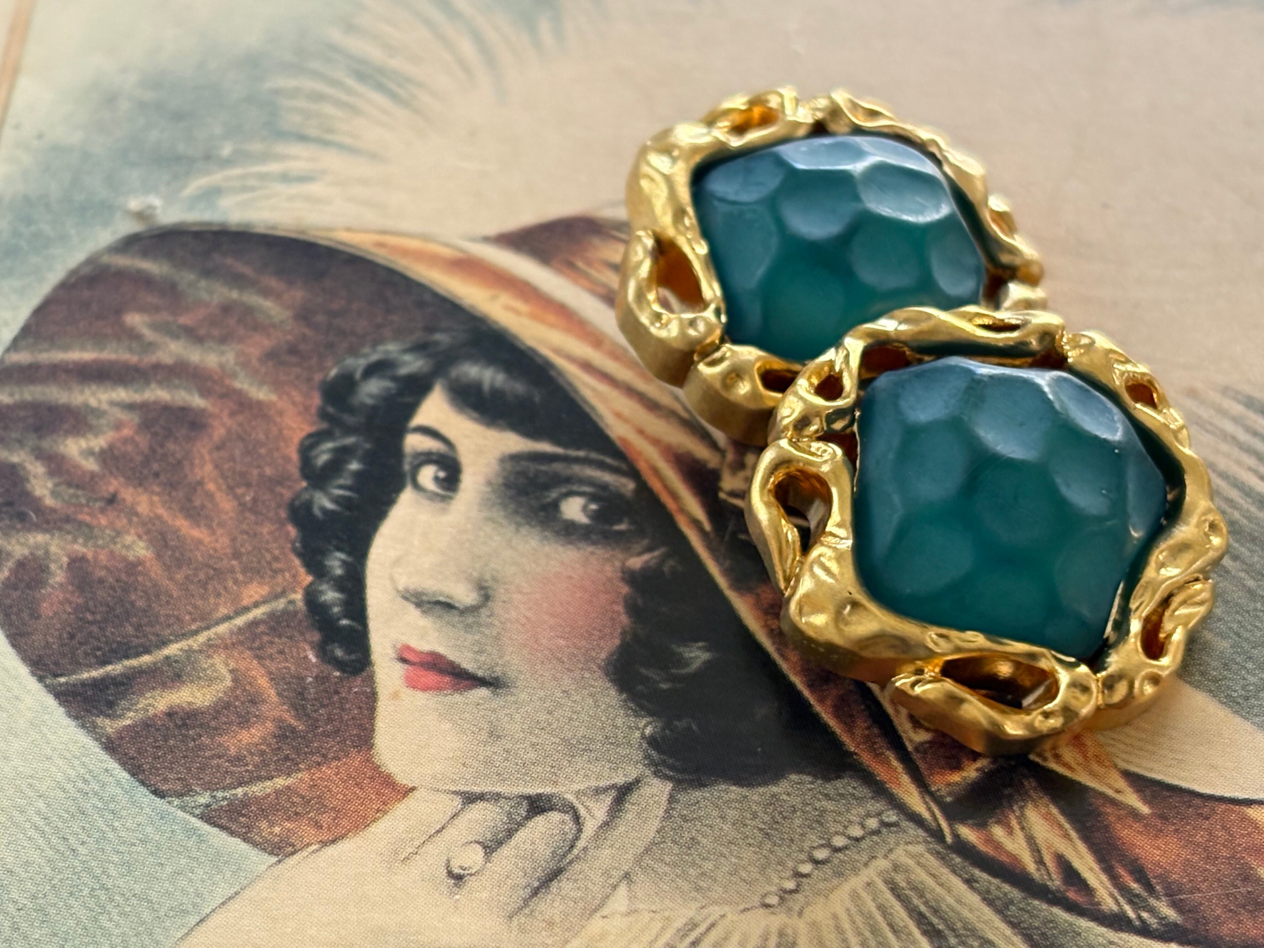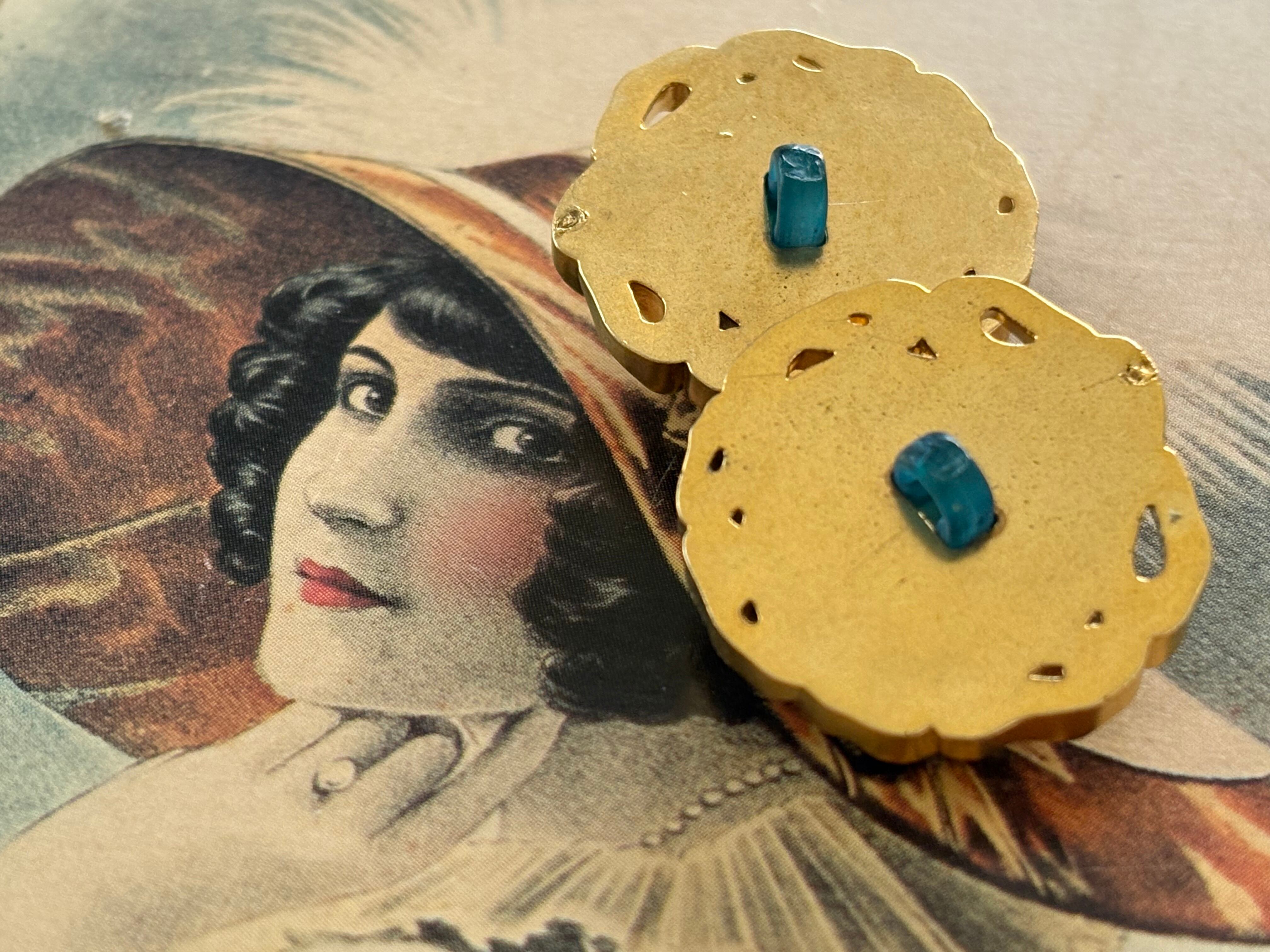 23mm Japaneseヴィンテージボタン カボション ゴールド×グリーン 透かし台座 アクセサリーパーツ 装飾材 カルトナージュ