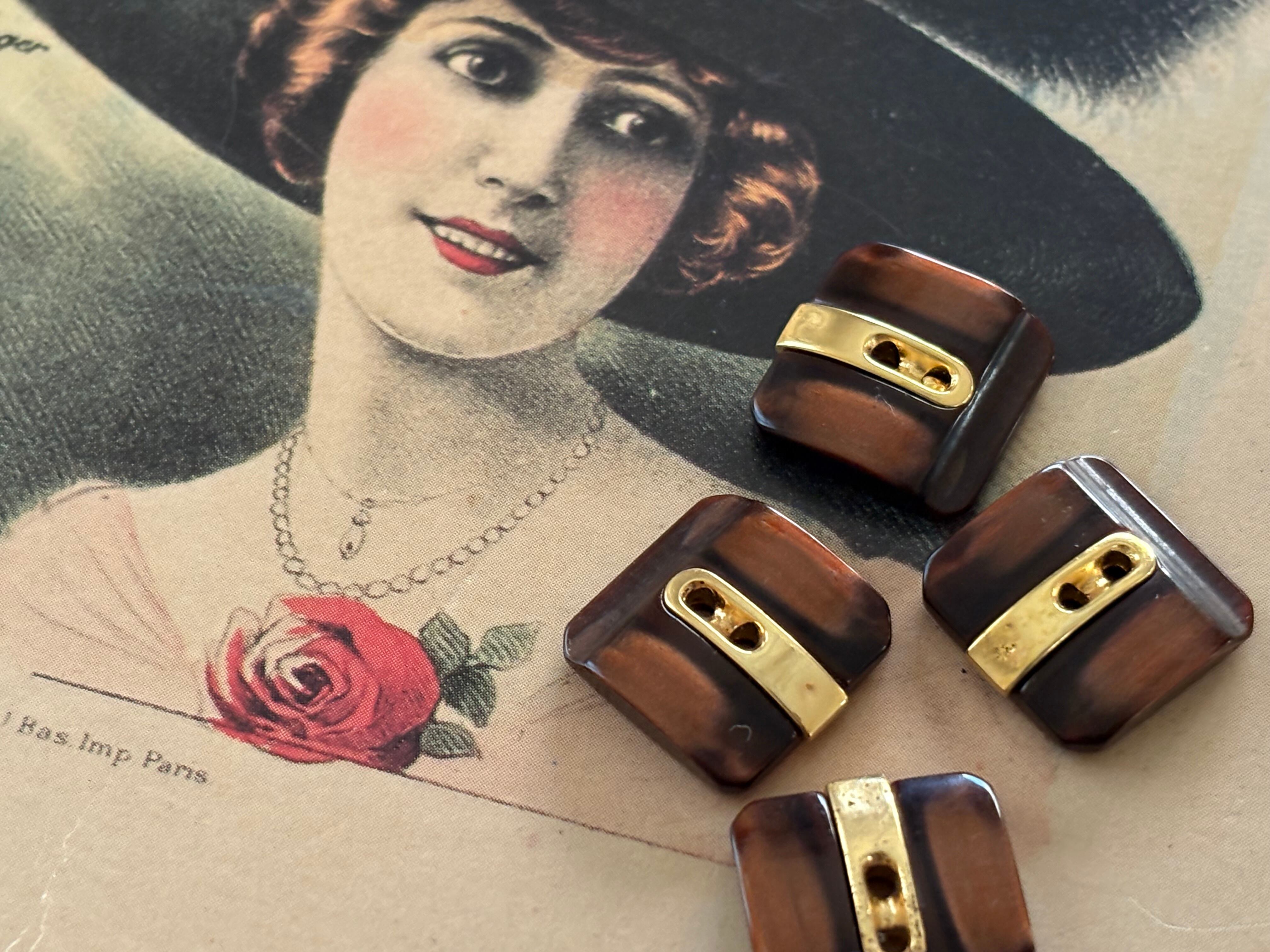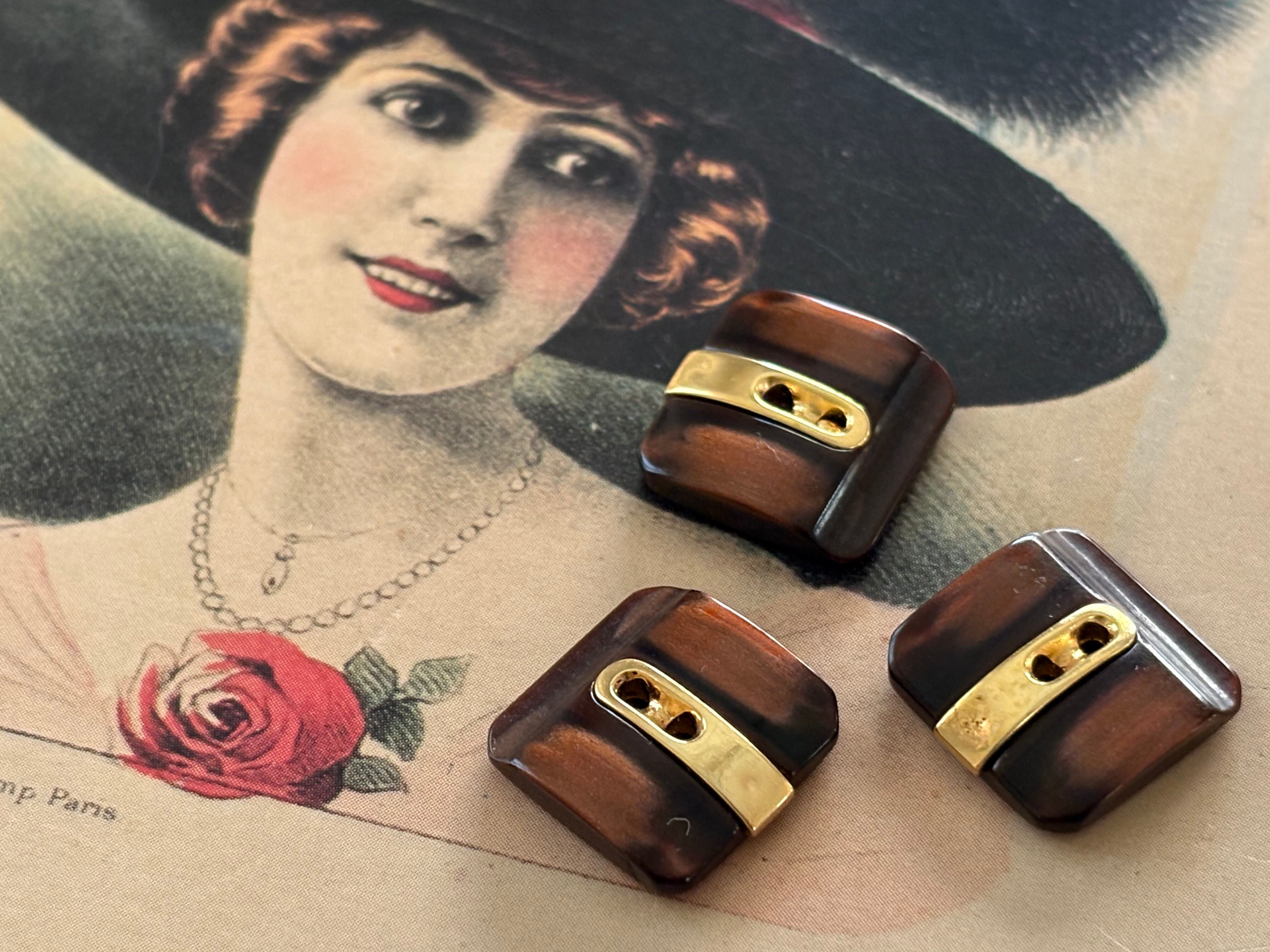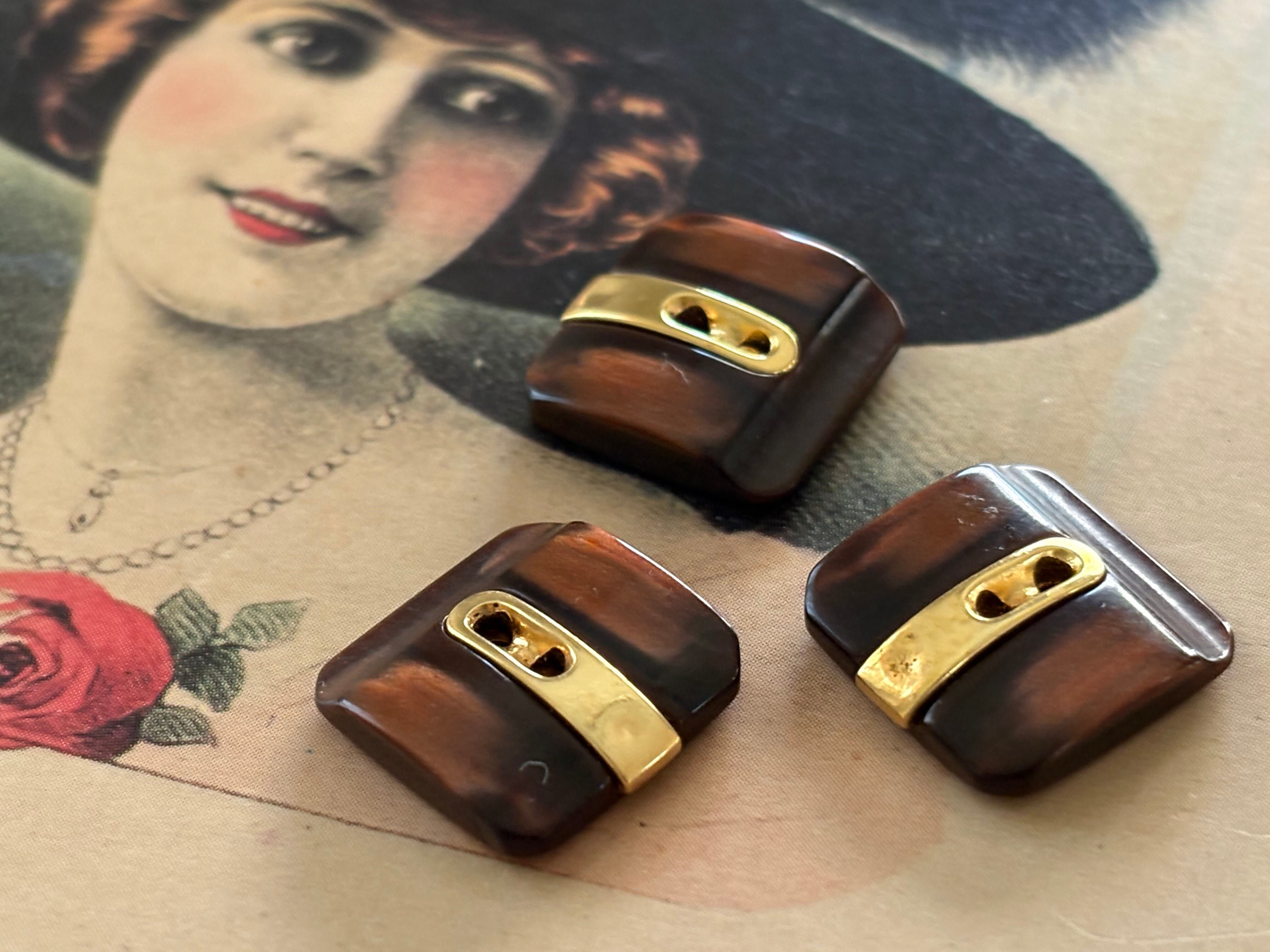 15mm Japanese ヴィンテージボタン ブラウン×ゴールド レトロ アクセサリーパーツ 装飾材 カルトナージュ