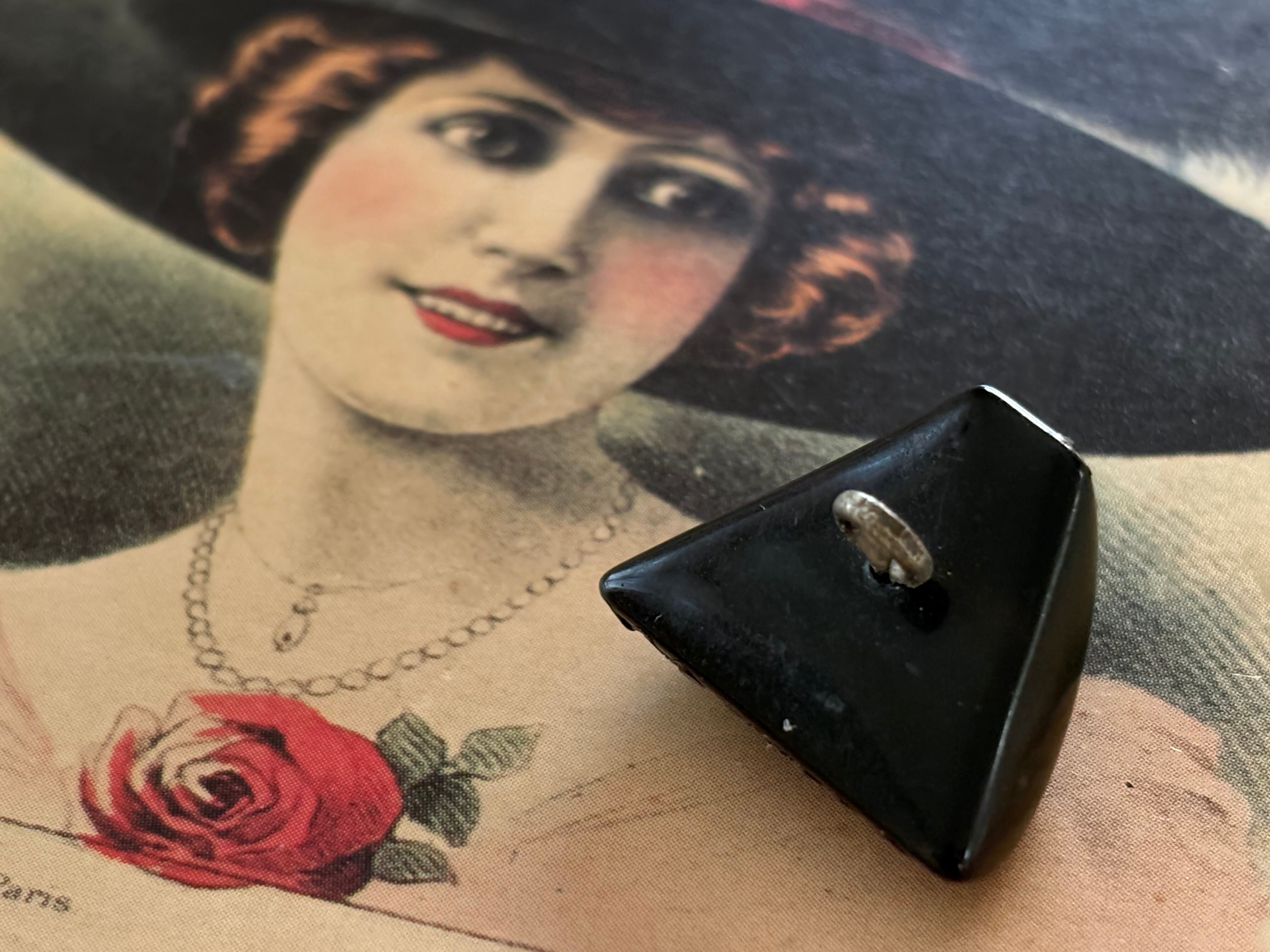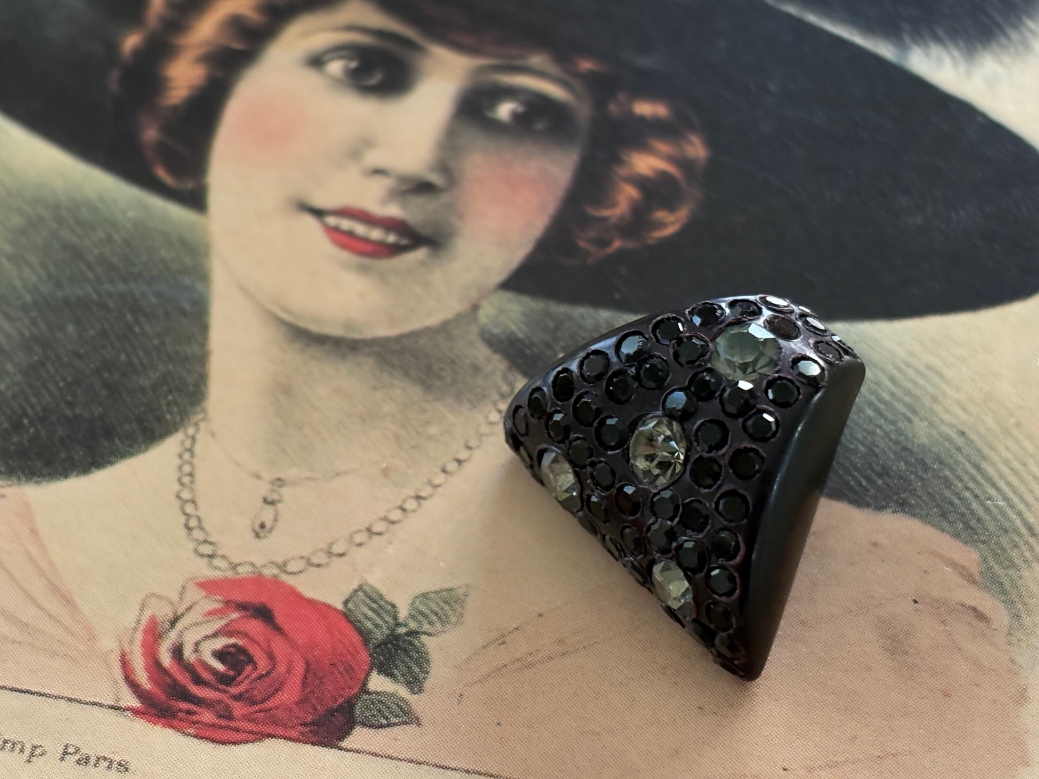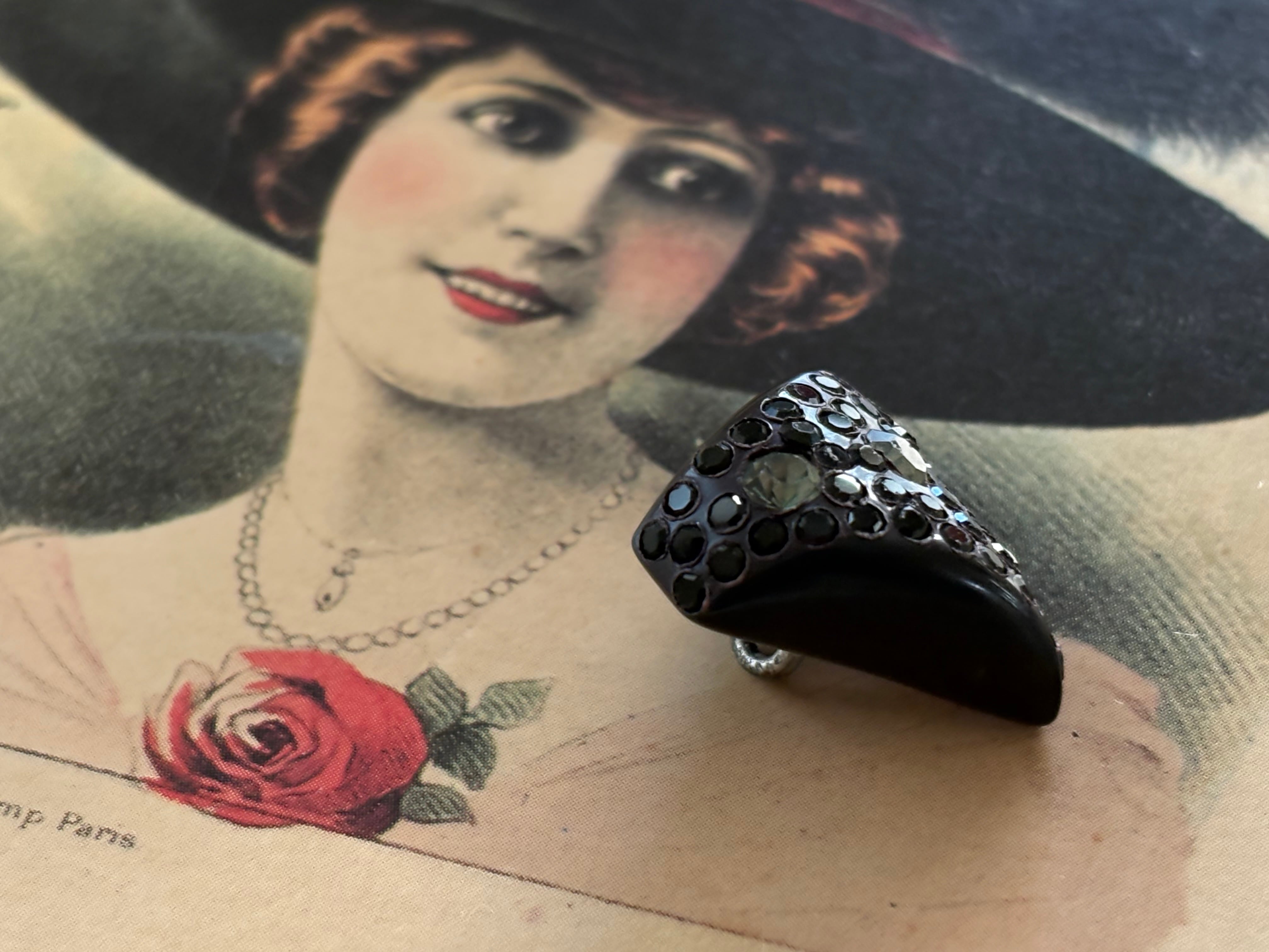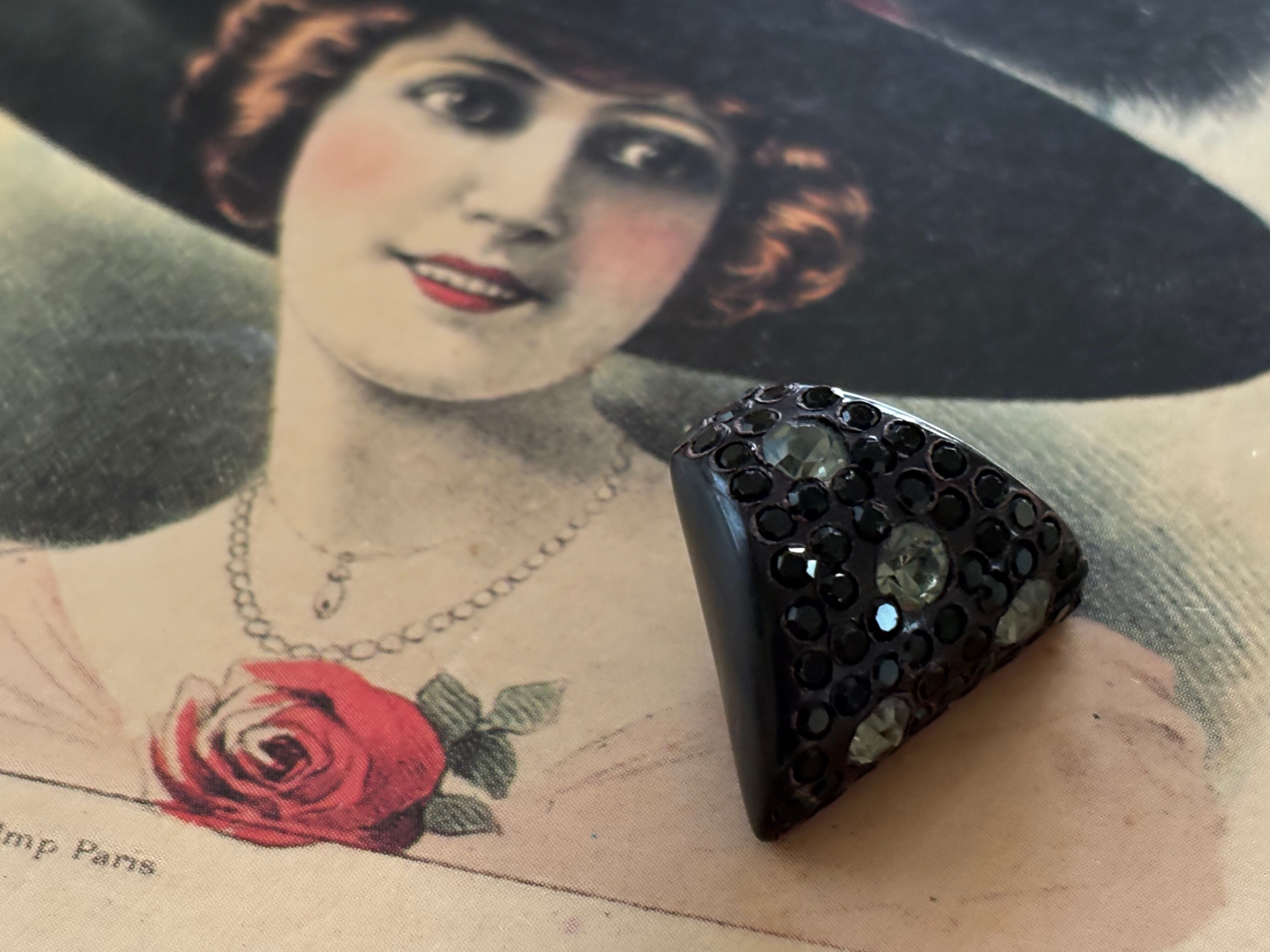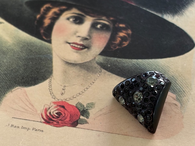 17×21mm Japanese ヴィンテージボタン ストーン ブラックドーム型 アクセサリーパーツ 装飾材 カルトナージュ