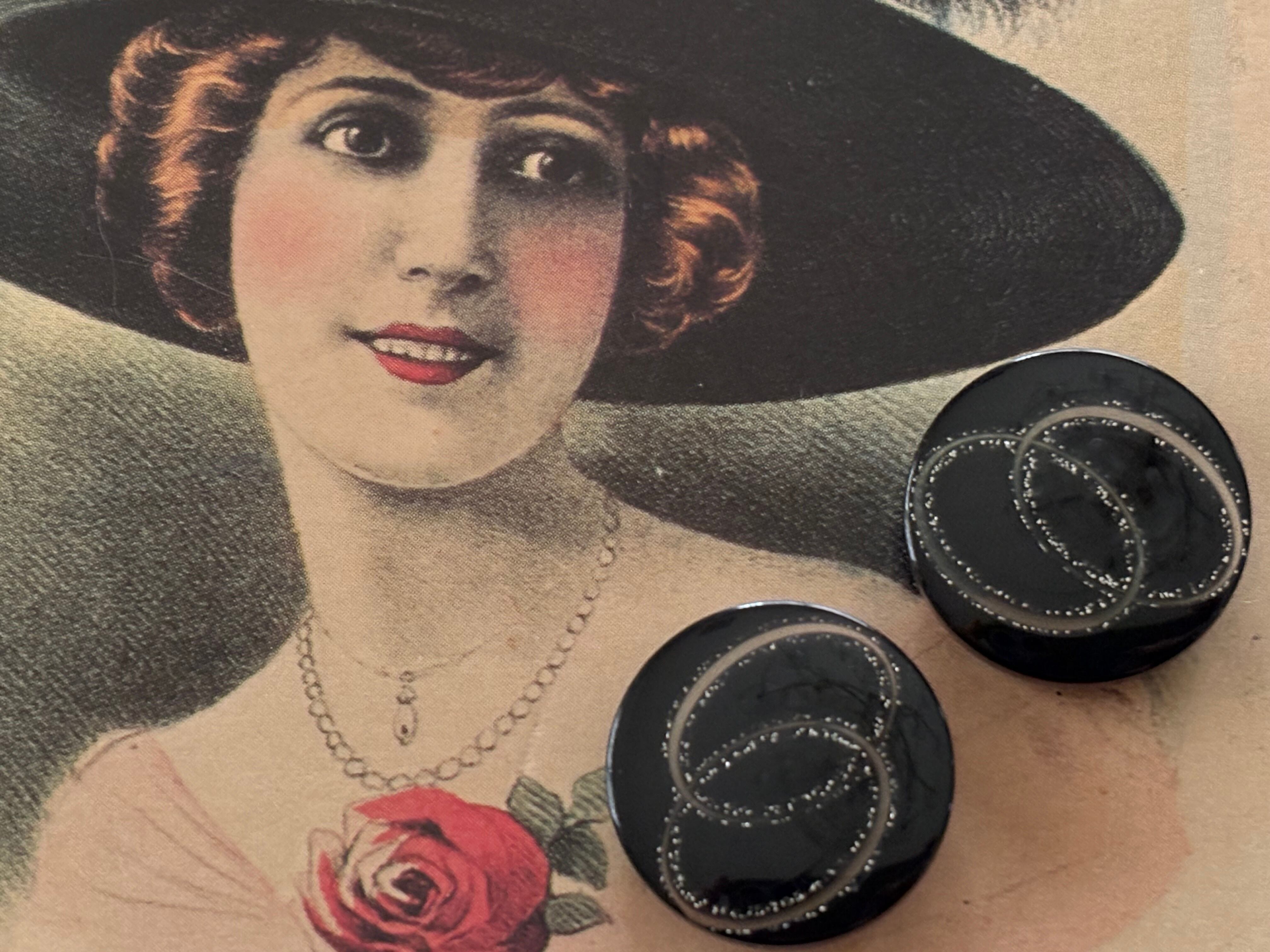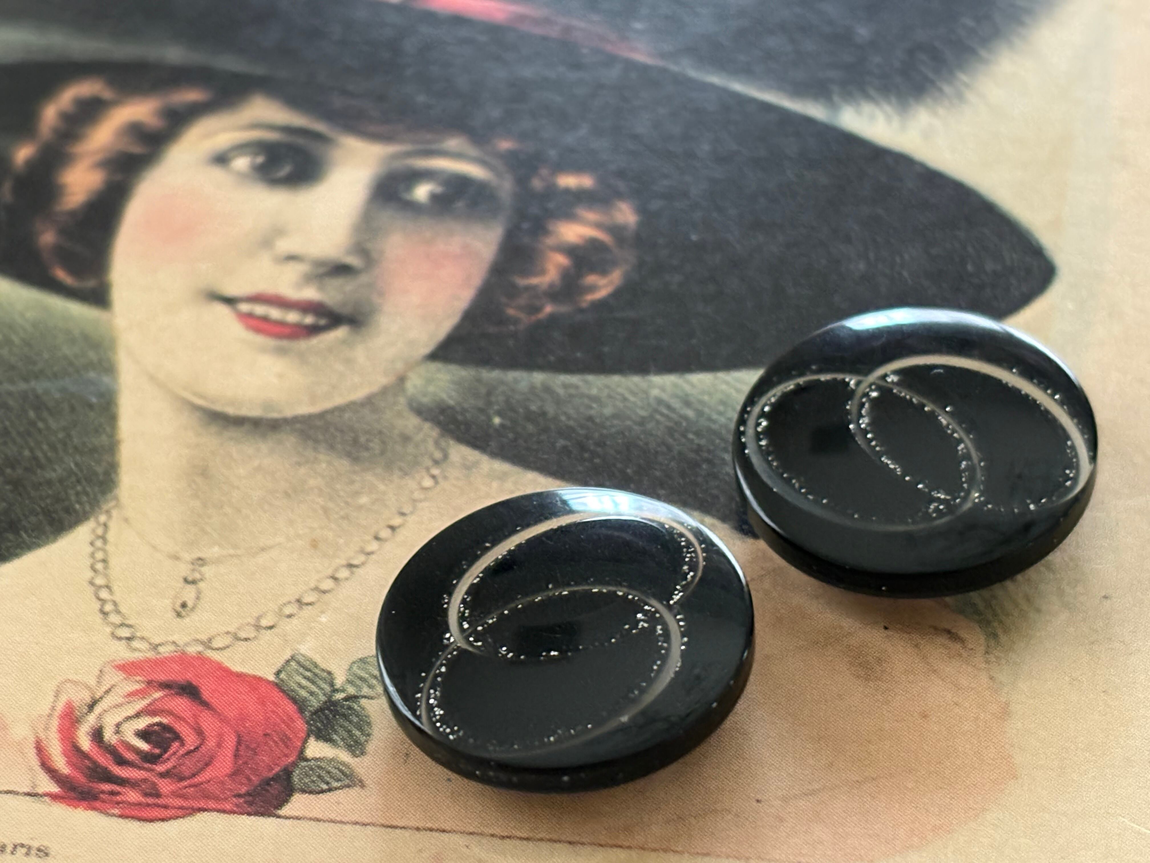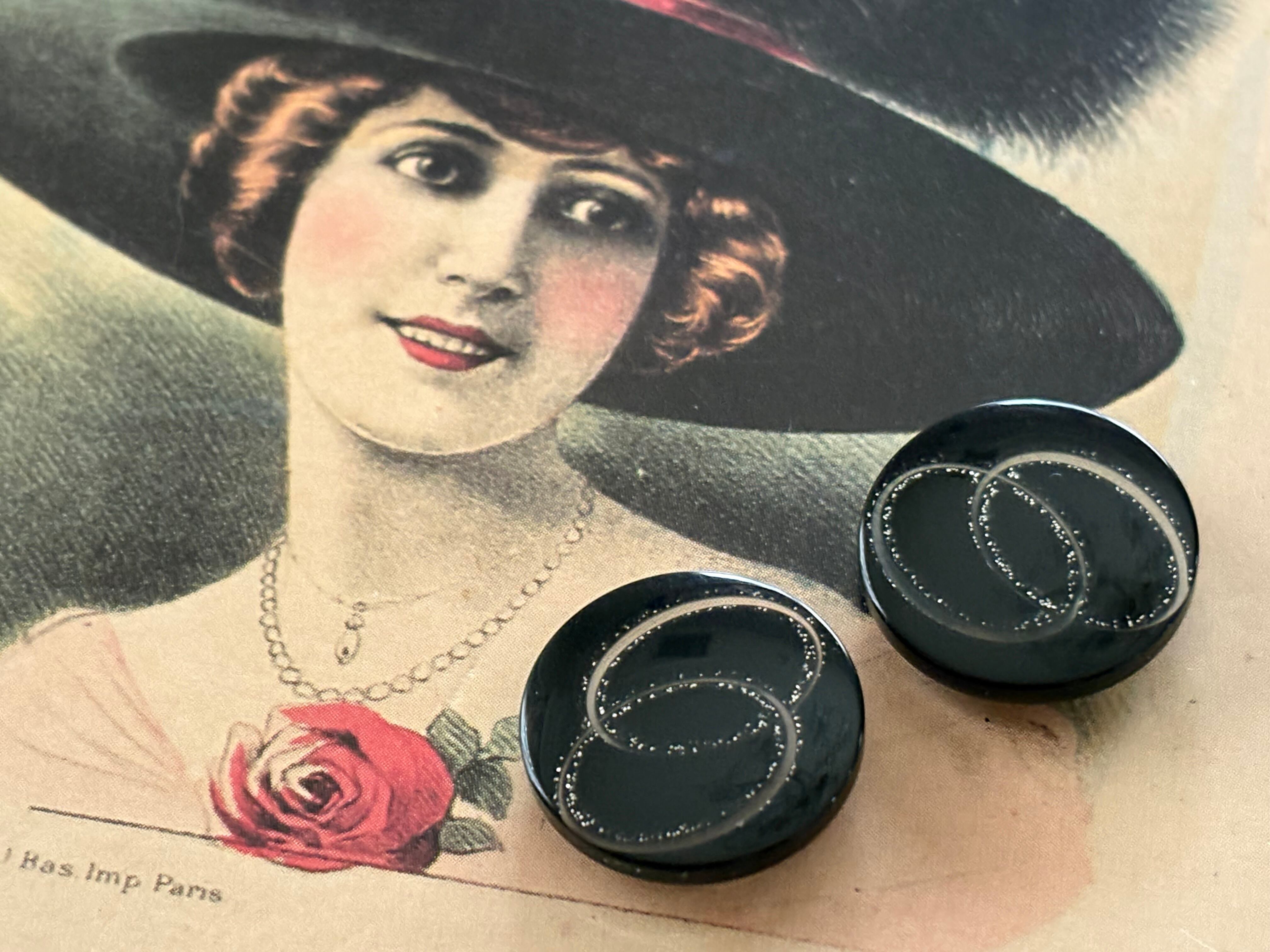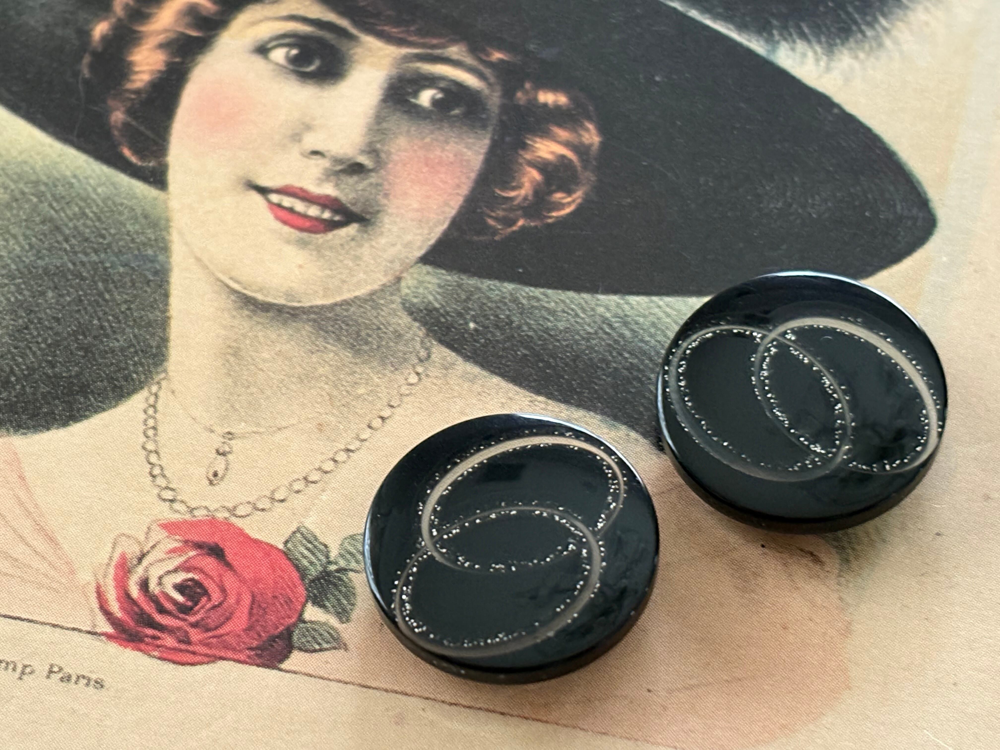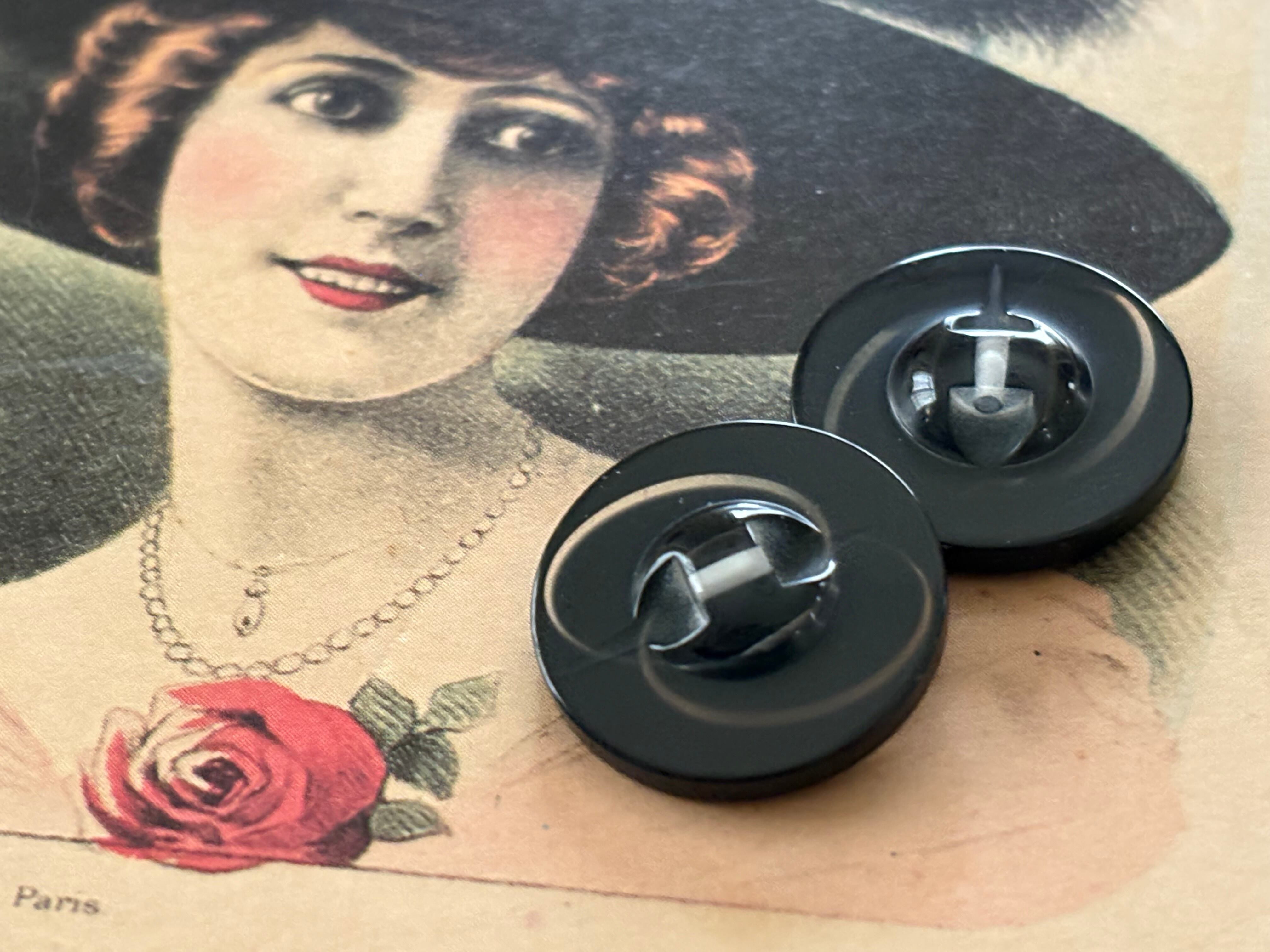 20mm Japanese ヴィンテージボタン ブラック×シルバー 樹脂ボタン レトロ アクセサリーパーツ 装飾材 カルトナージュ