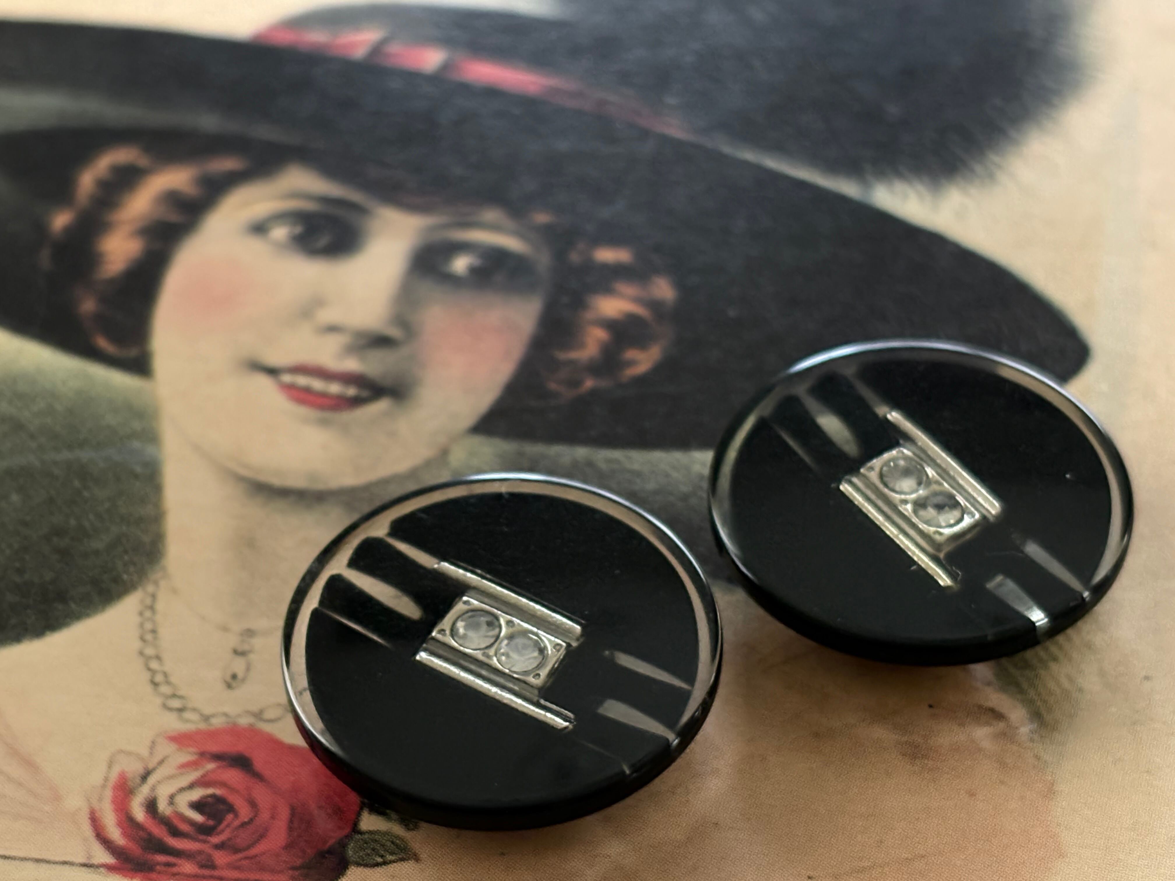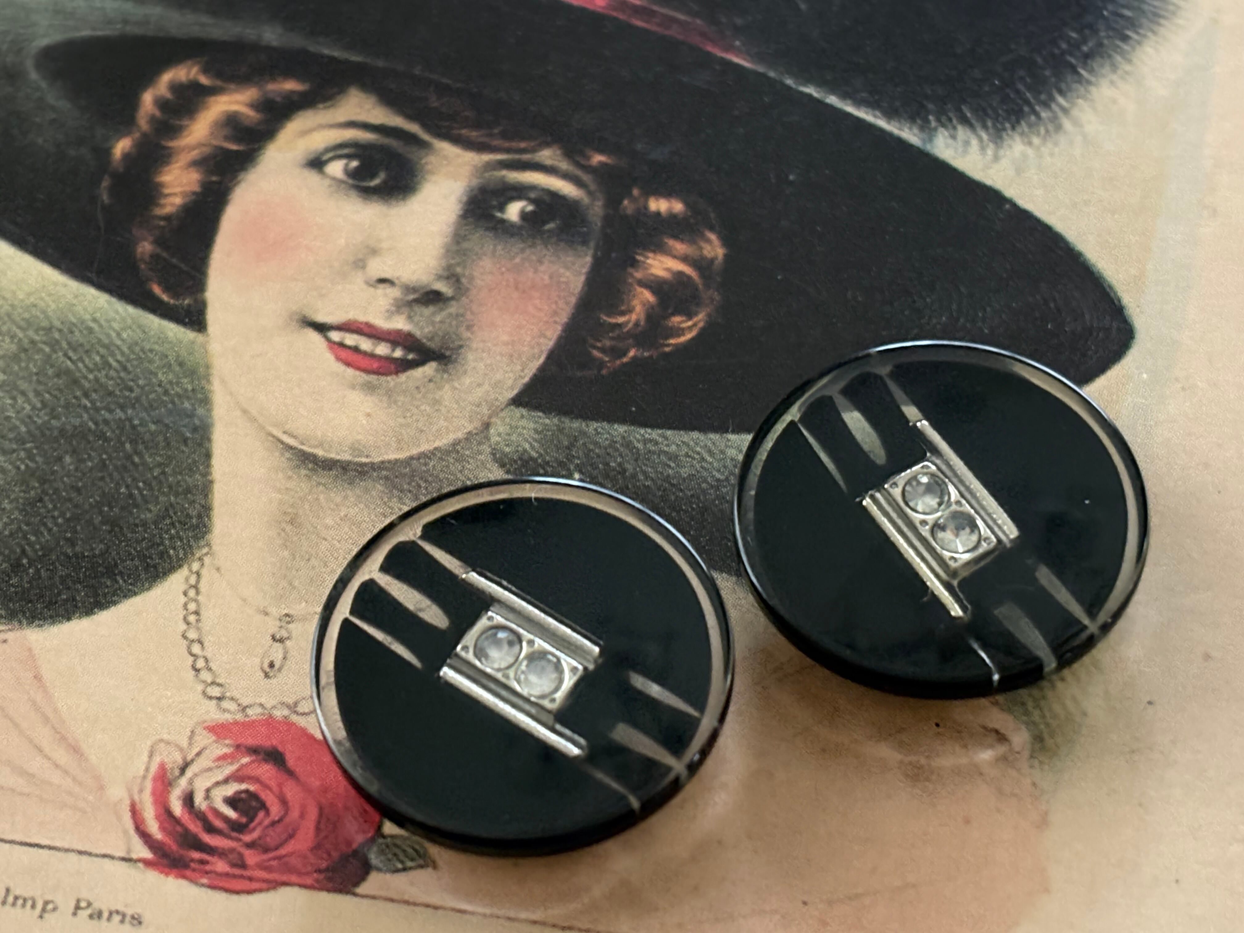 23mm Japanese Vintage ボタン ストーン ブラック×クリア レトロ アクセサリーパーツ カルトナージュ デコレーション