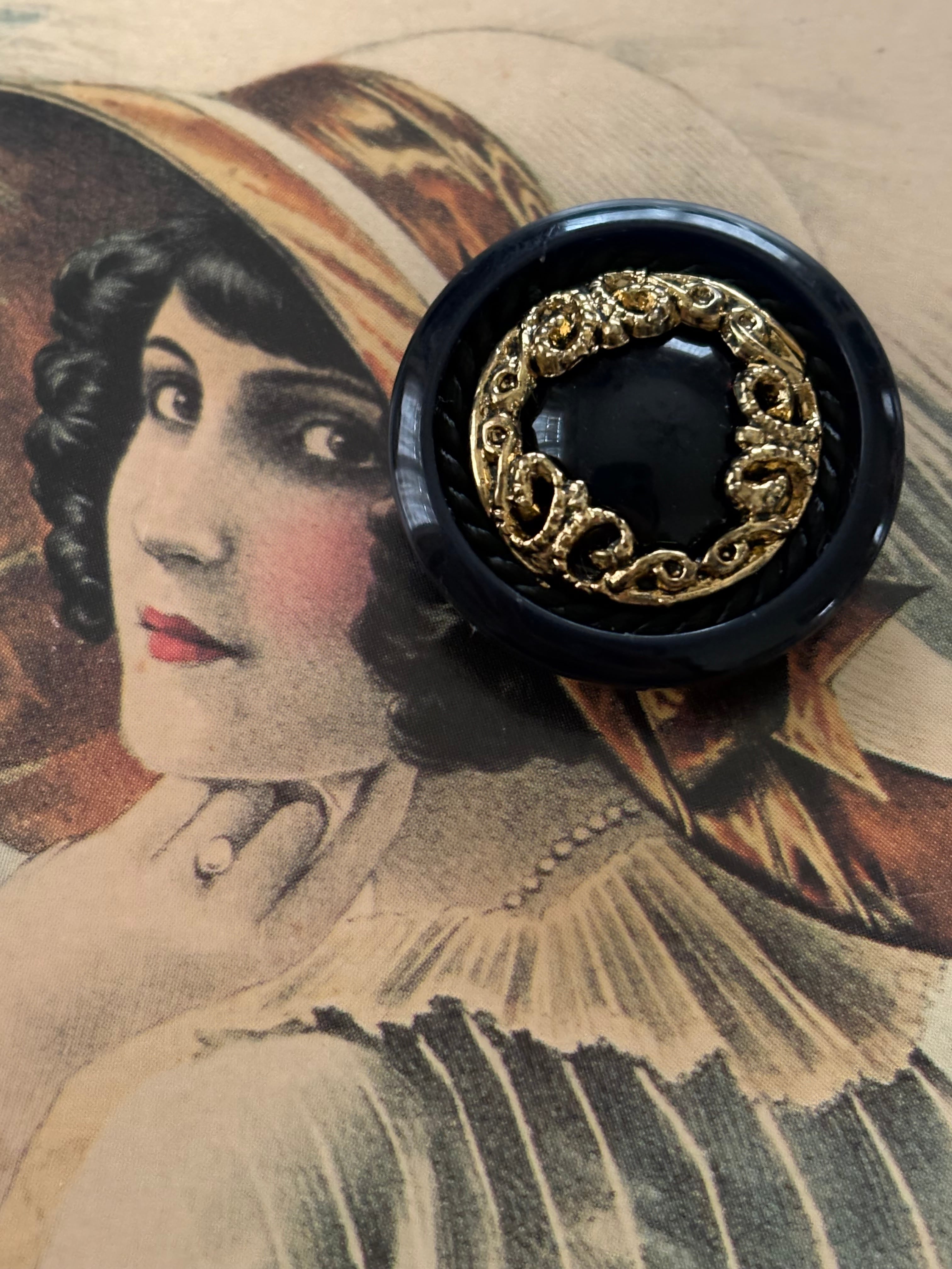 24mm Japanese Vintage ヴィンテージボタン プラスチック ブラック×ゴールド アクセサリーパーツ コレクション
