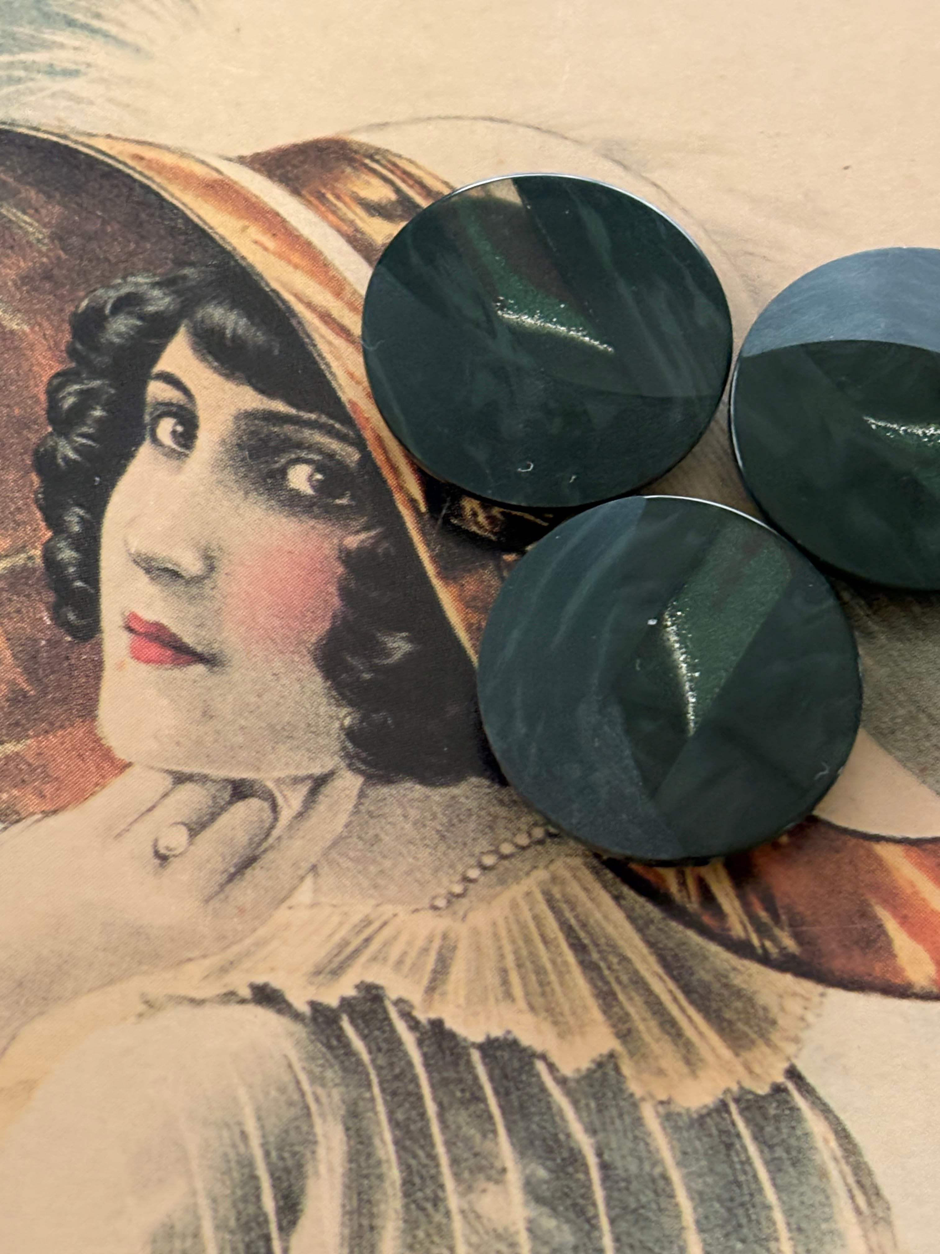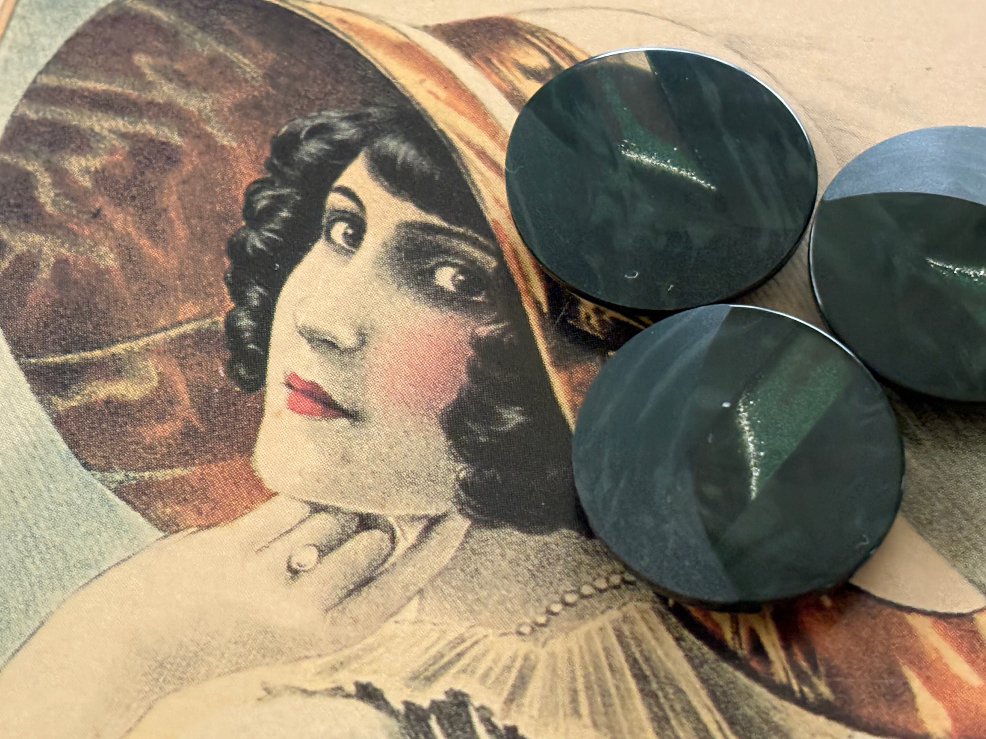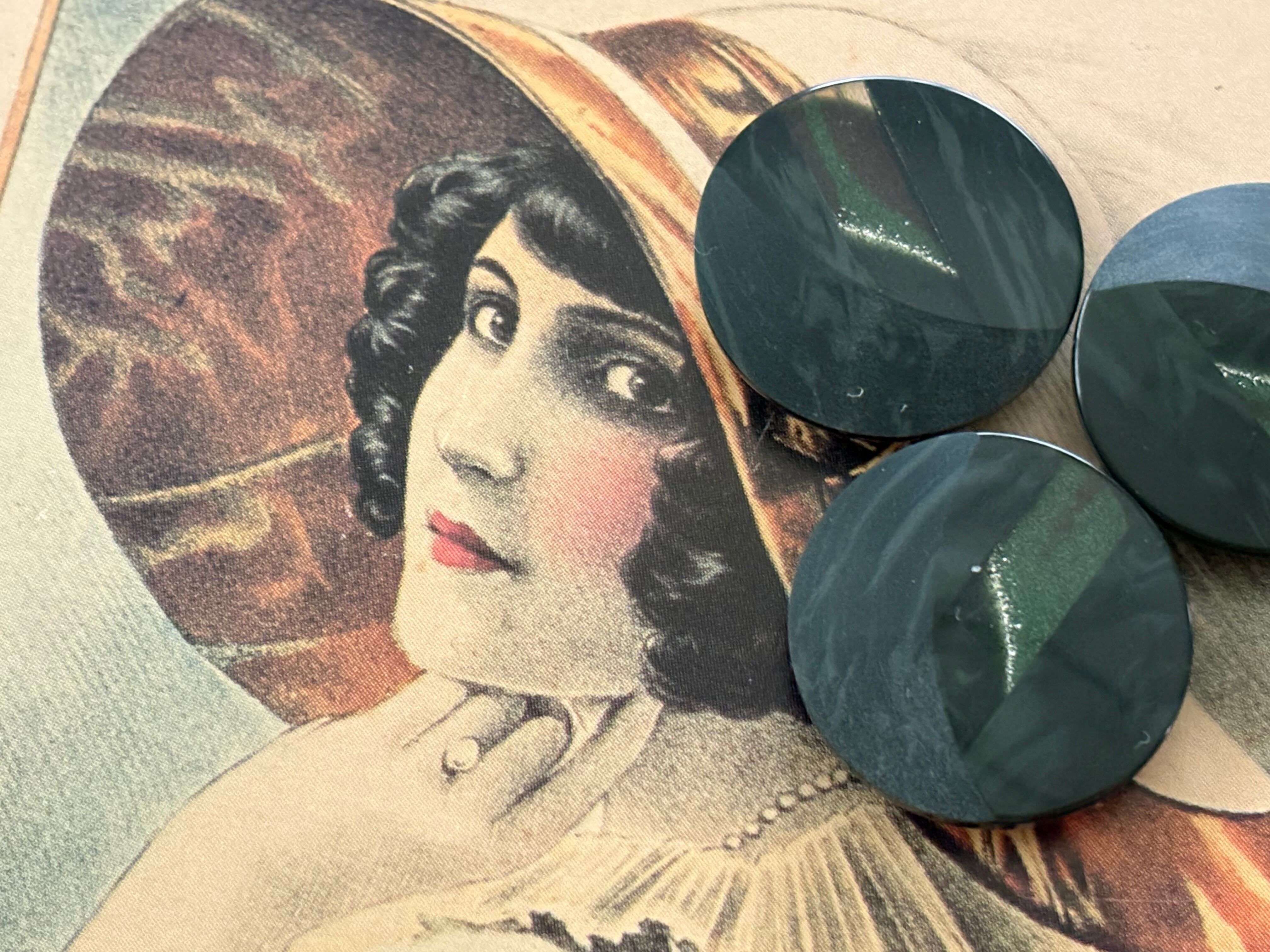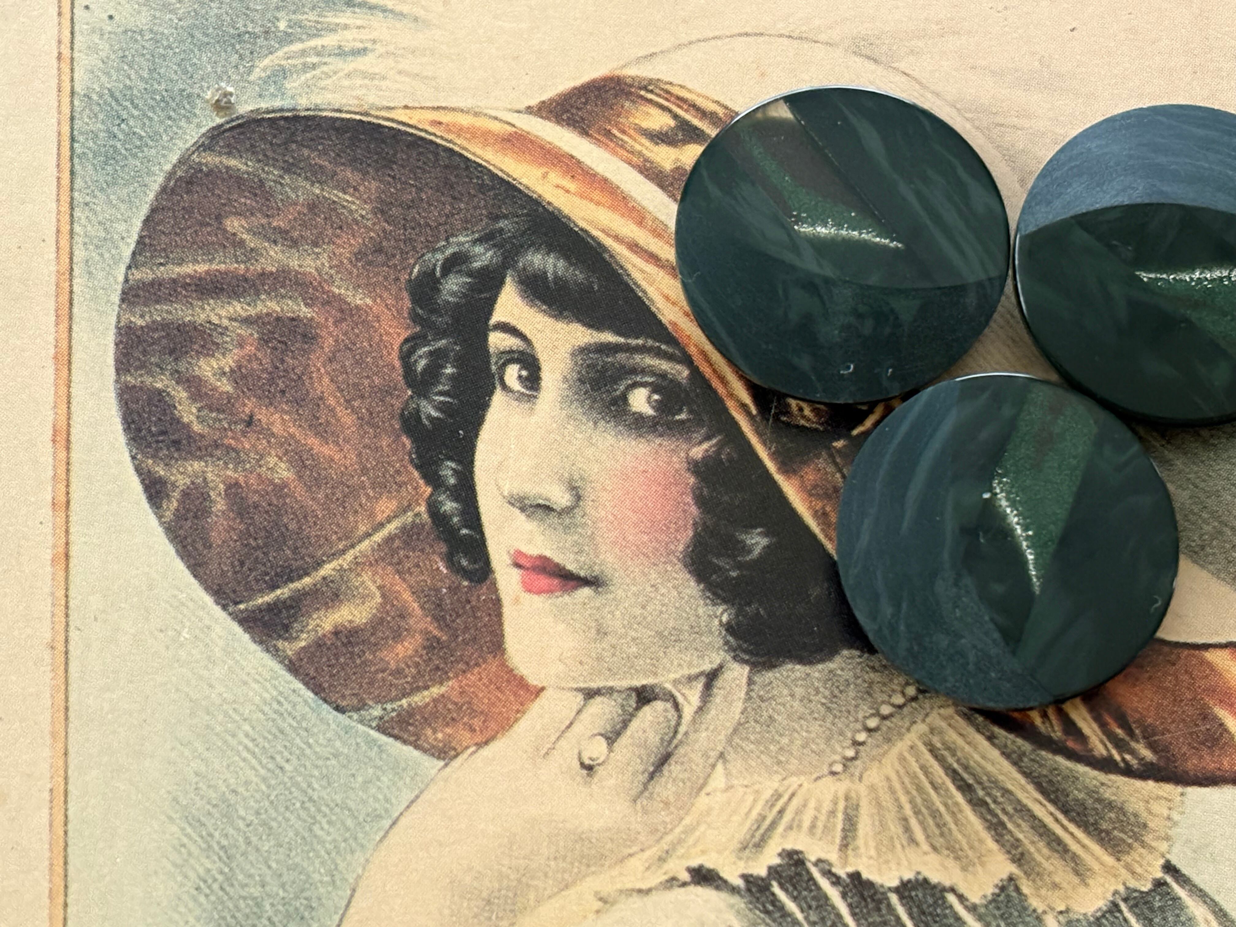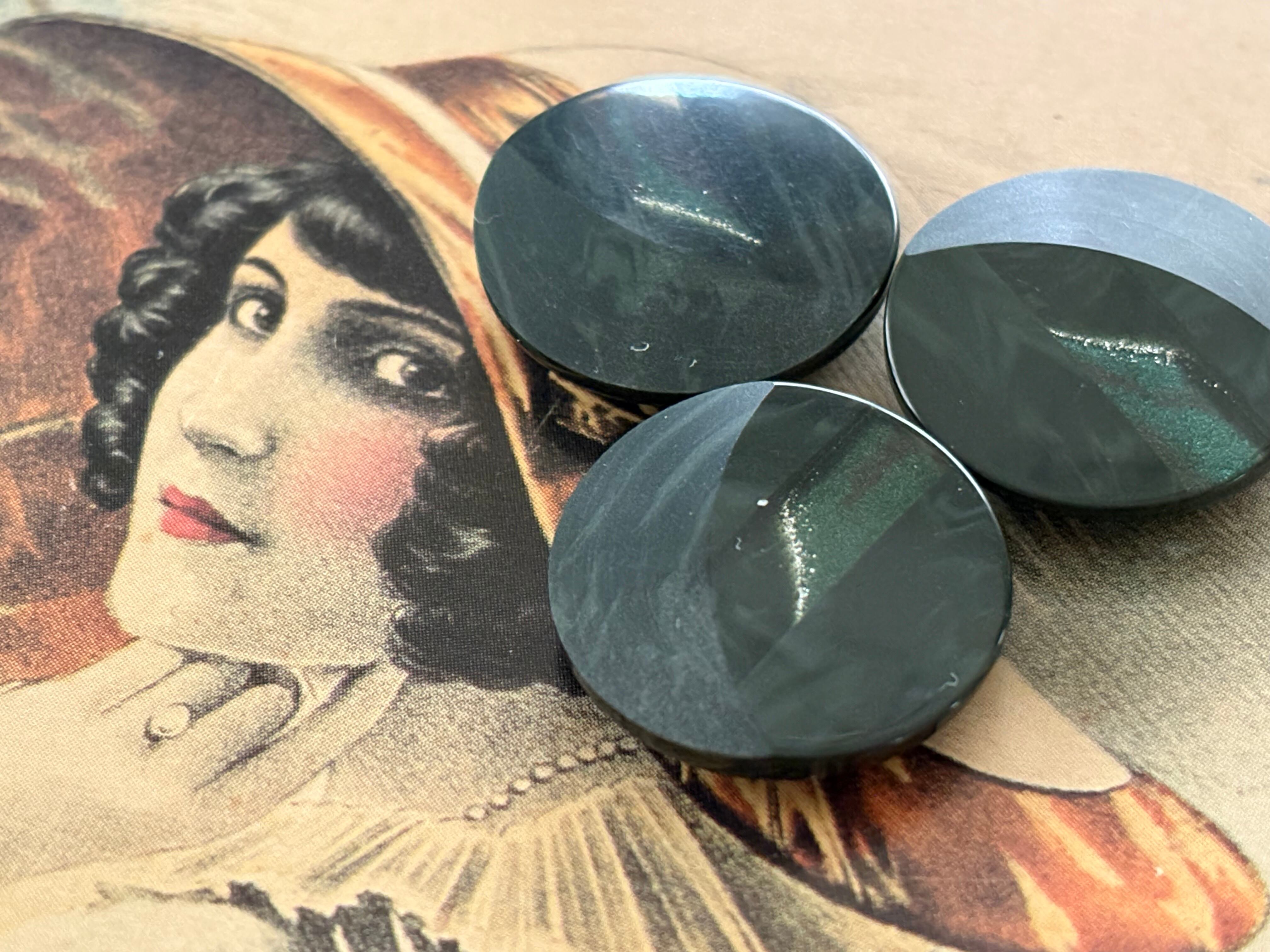20mm Japanese ヴィンテージボタン ダークグリーン 深緑 マーブル調 樹脂ボタン グリッター レトロ アクセサリーパーツ 装飾材 カルトナージュ