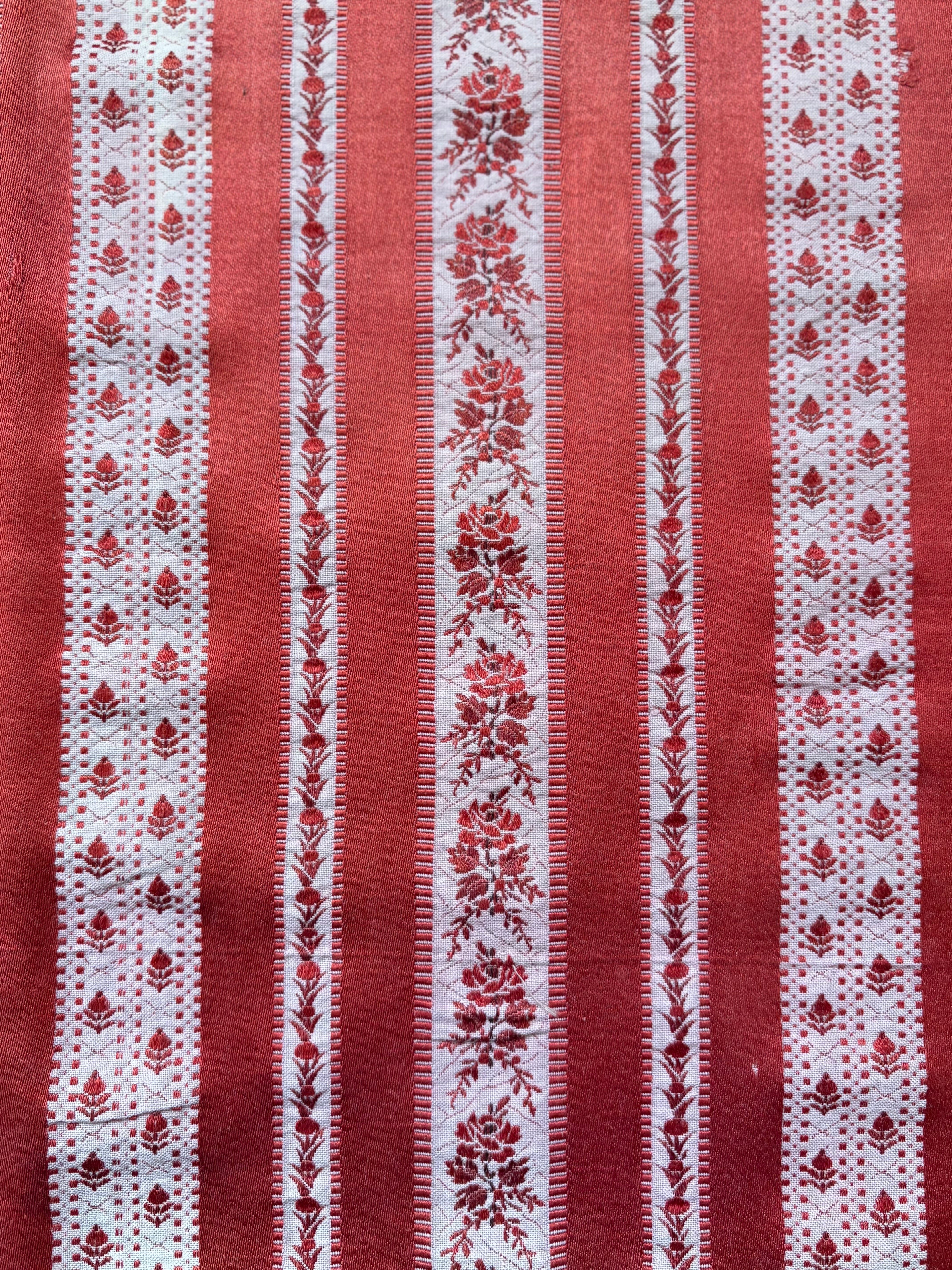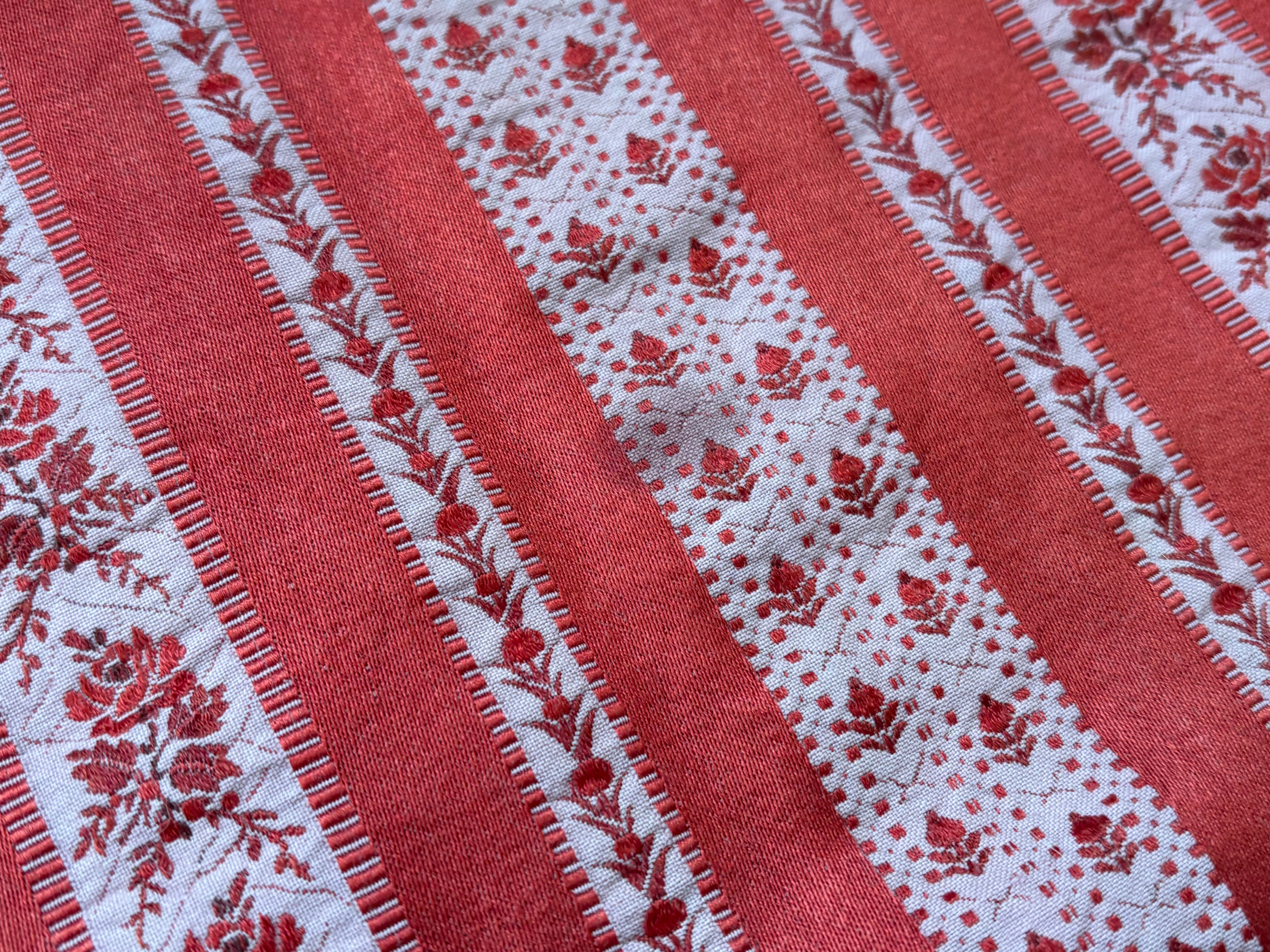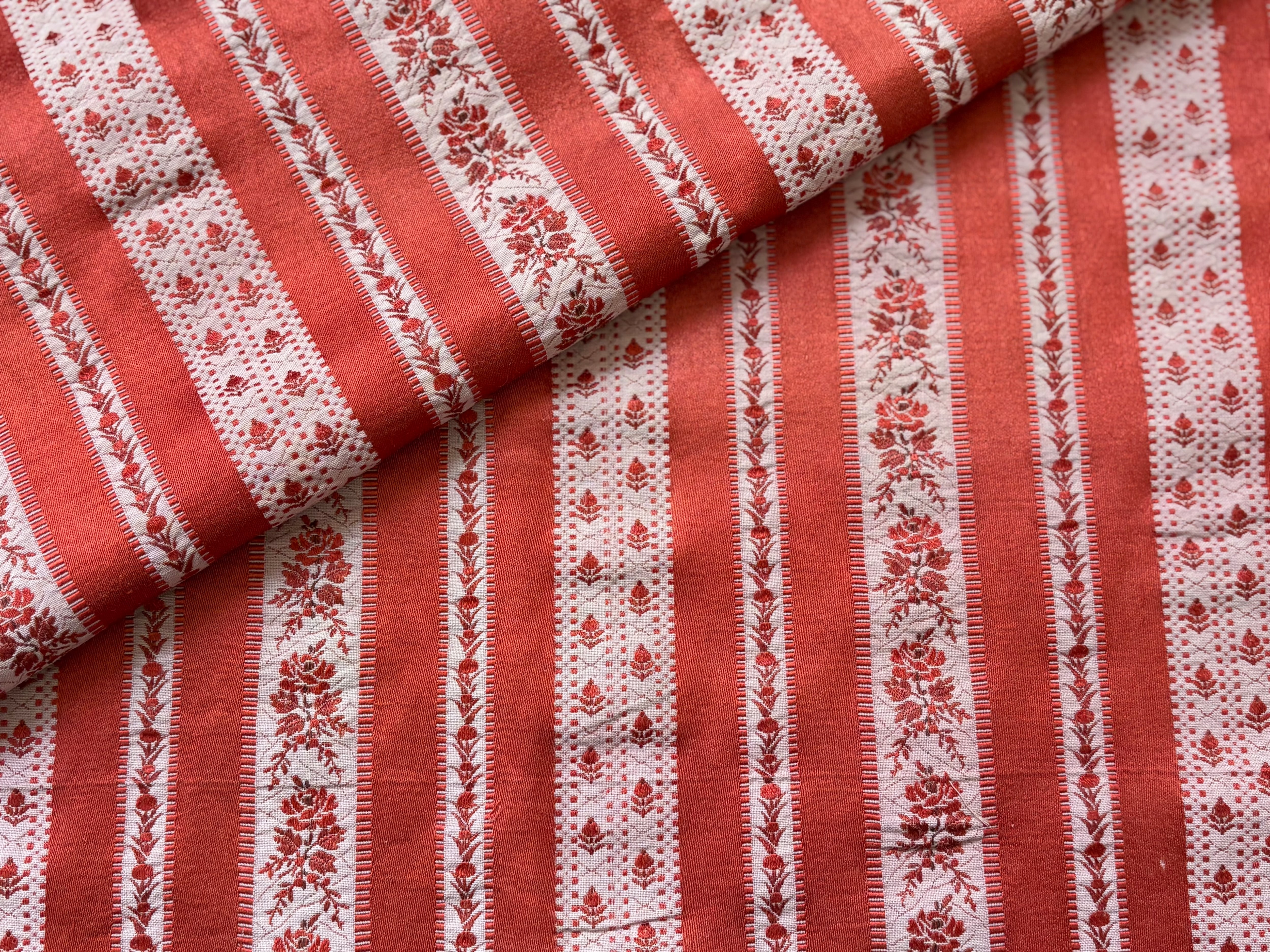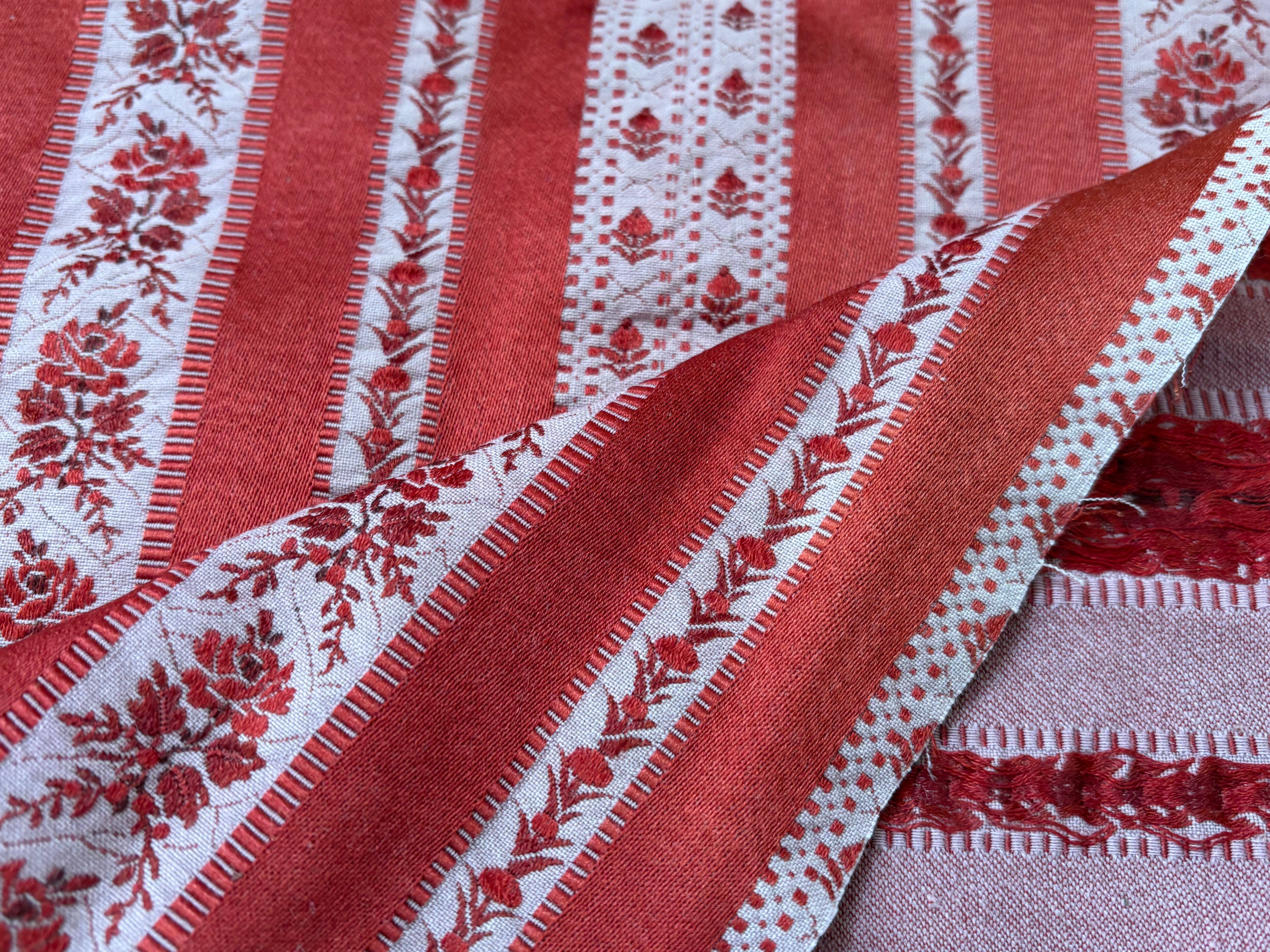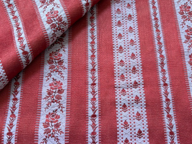 フランス アンティークファブリック 花柄 ストライプ ジャカード レッド 60cm×60cm インテリアファブリック カルトナージュ