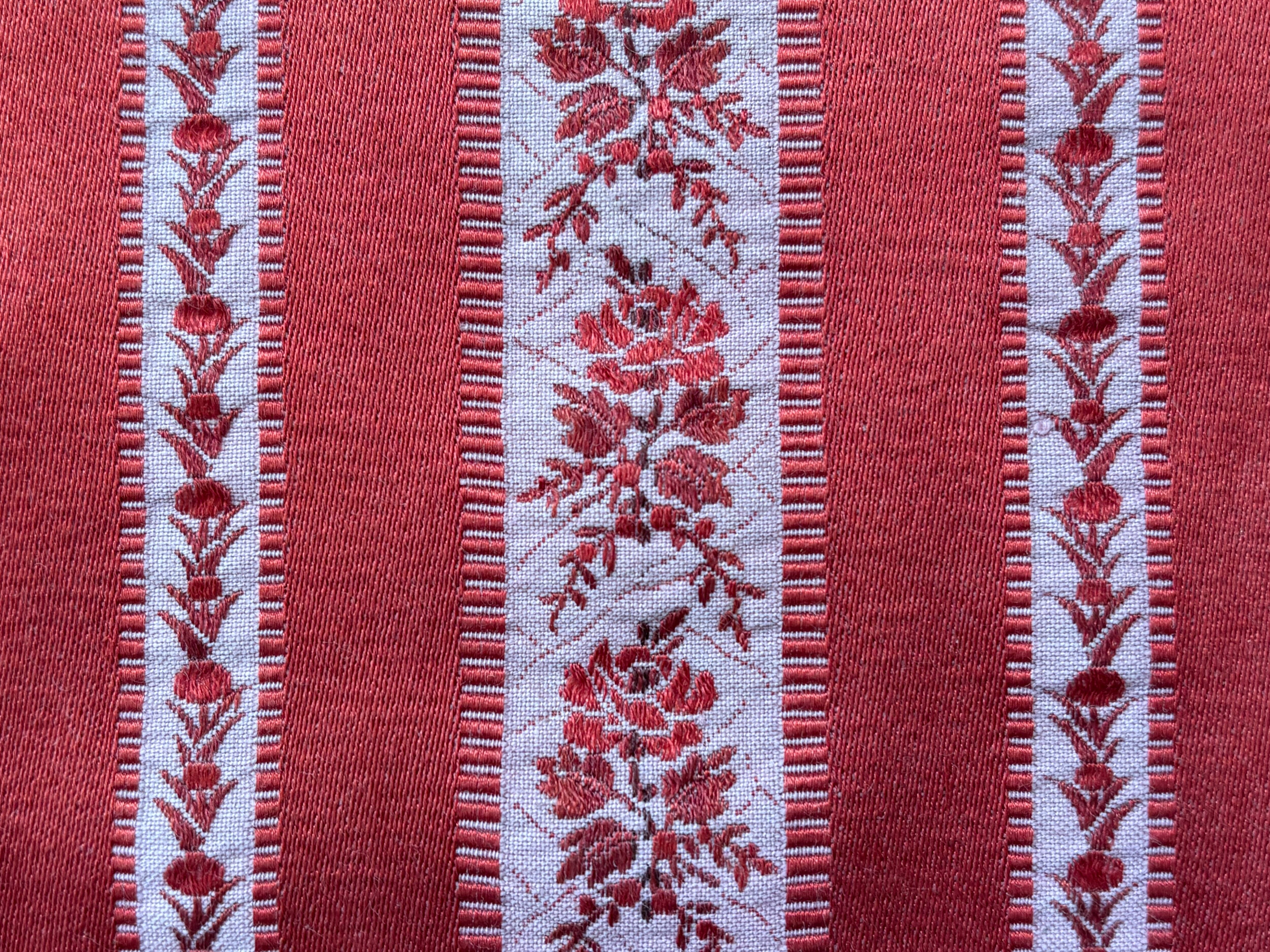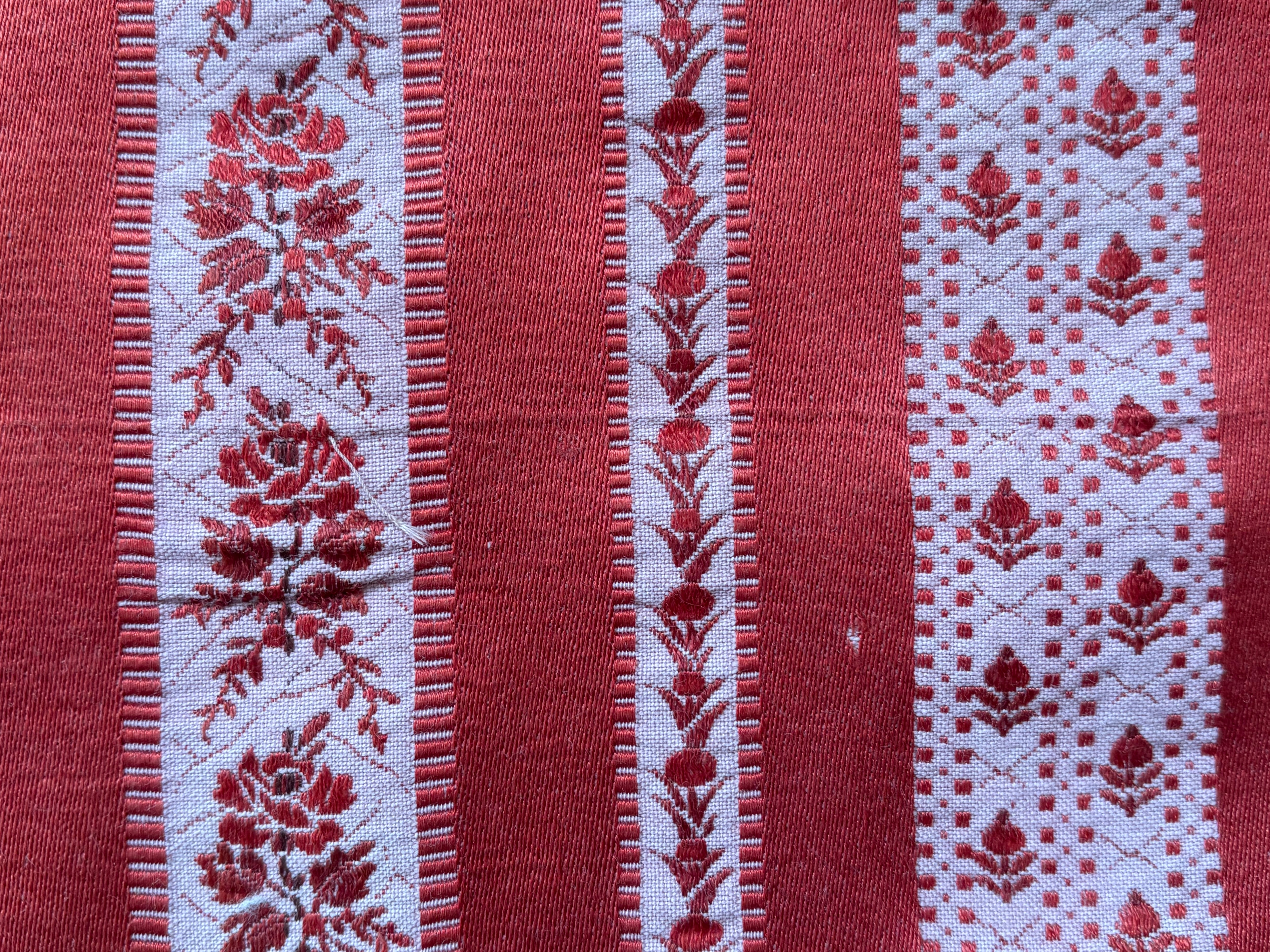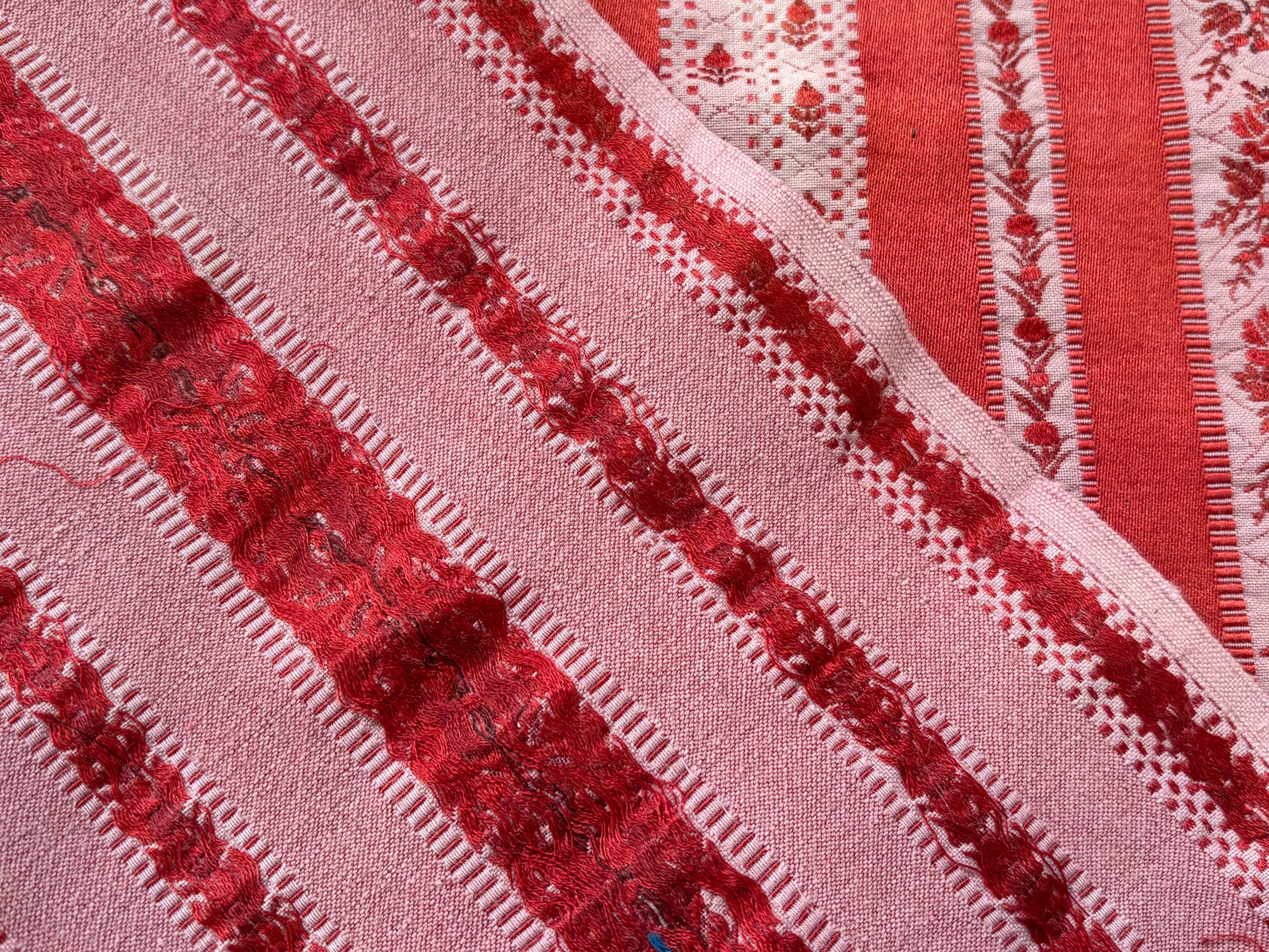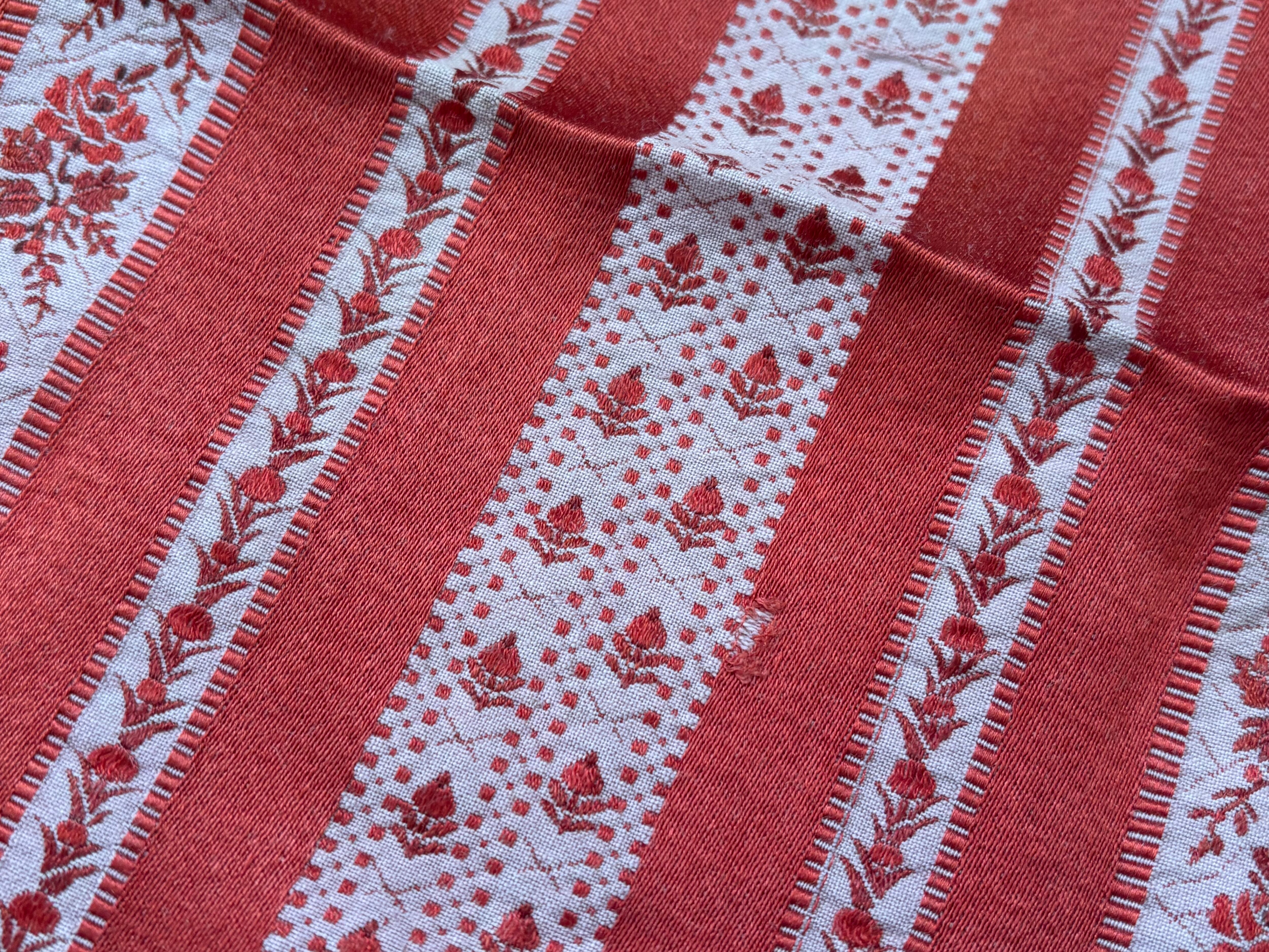 フランス アンティークファブリック 花柄 ストライプ ジャカード レッド 60cm×60cm インテリアファブリック カルトナージュ