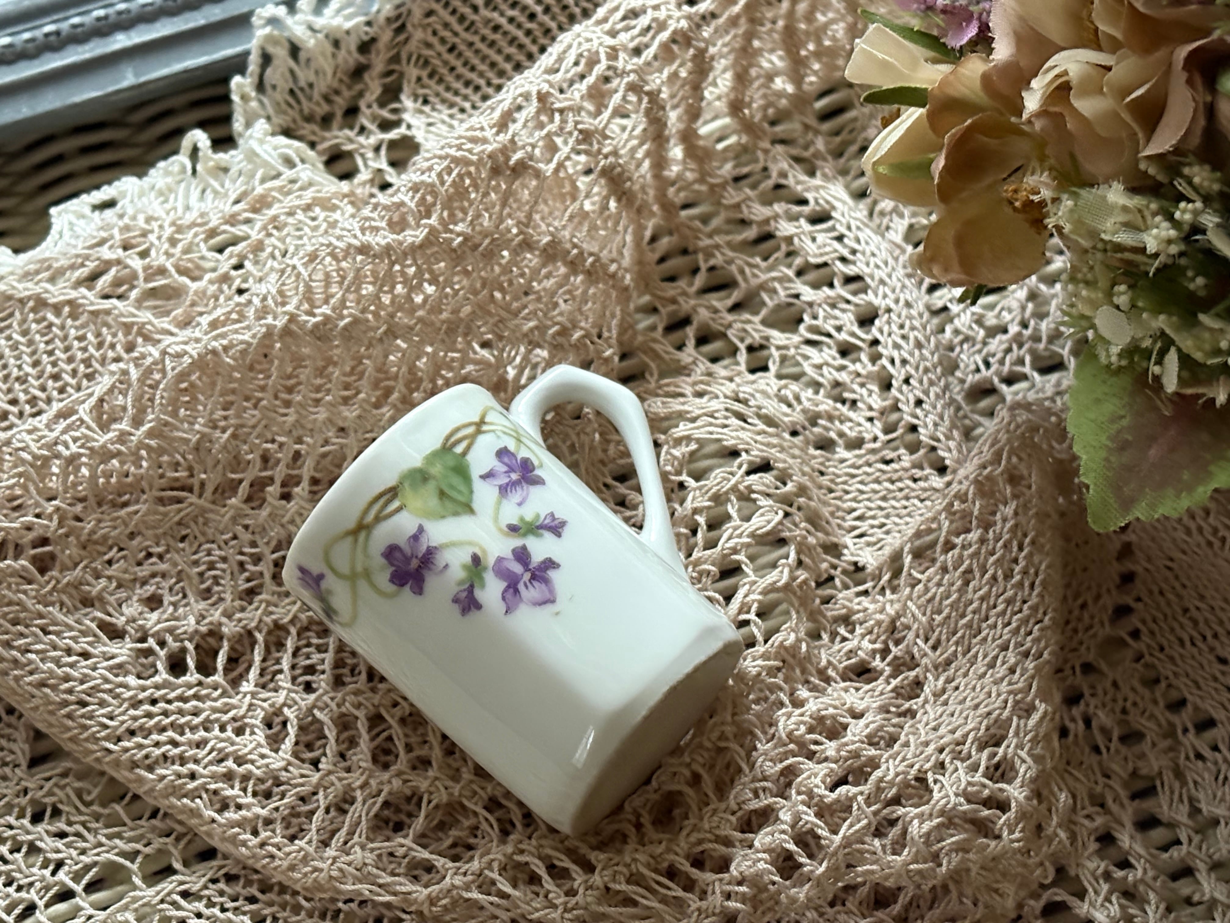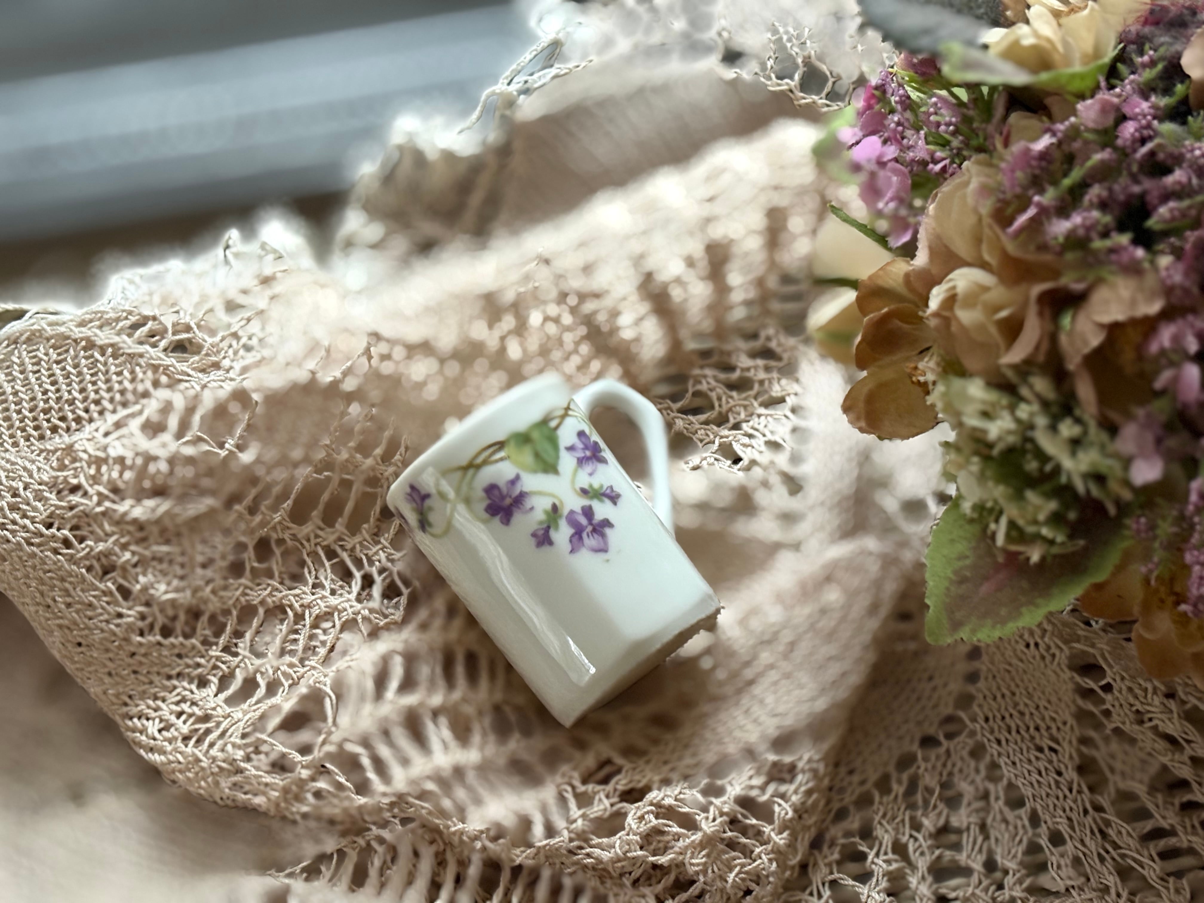 フランス アンティーク すみれ柄 ミニカップ リキュールカップ すみれ violette フラワーベース インテリア 撮影小物 インテリア小物