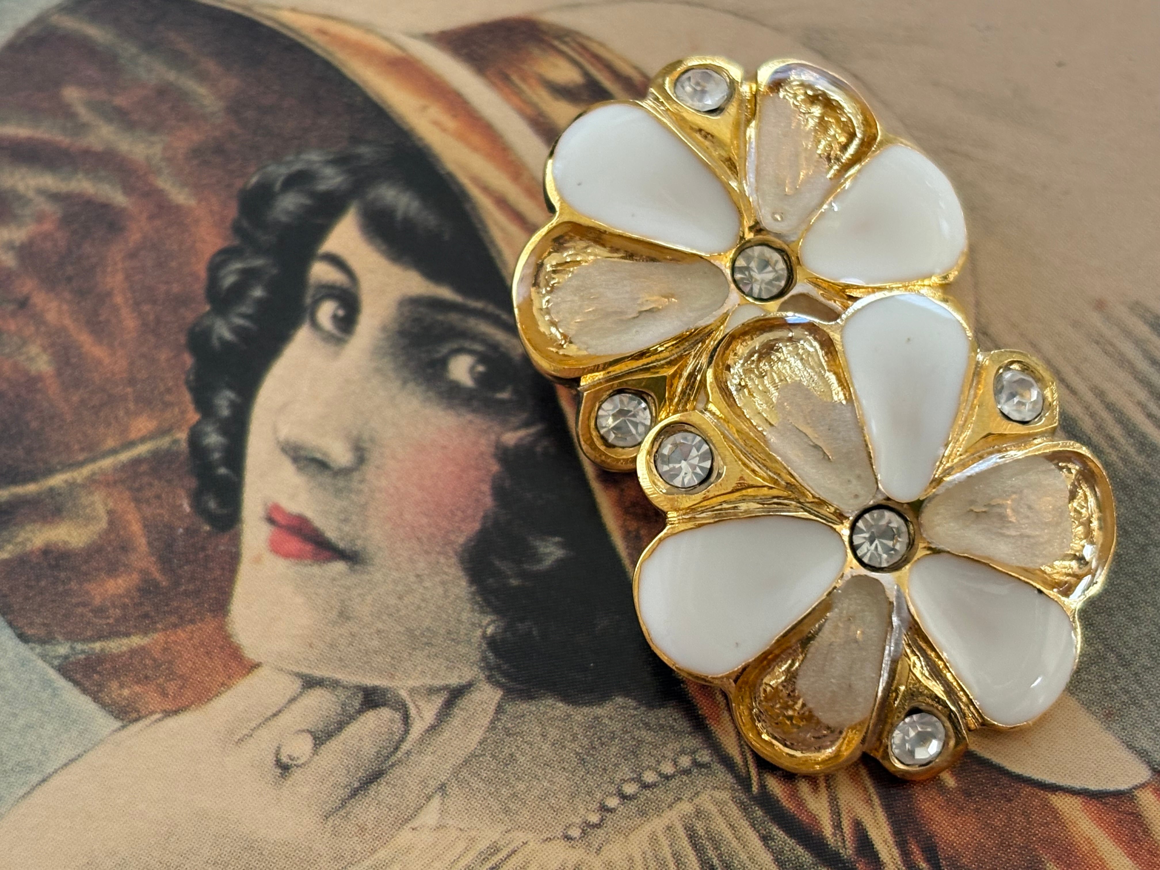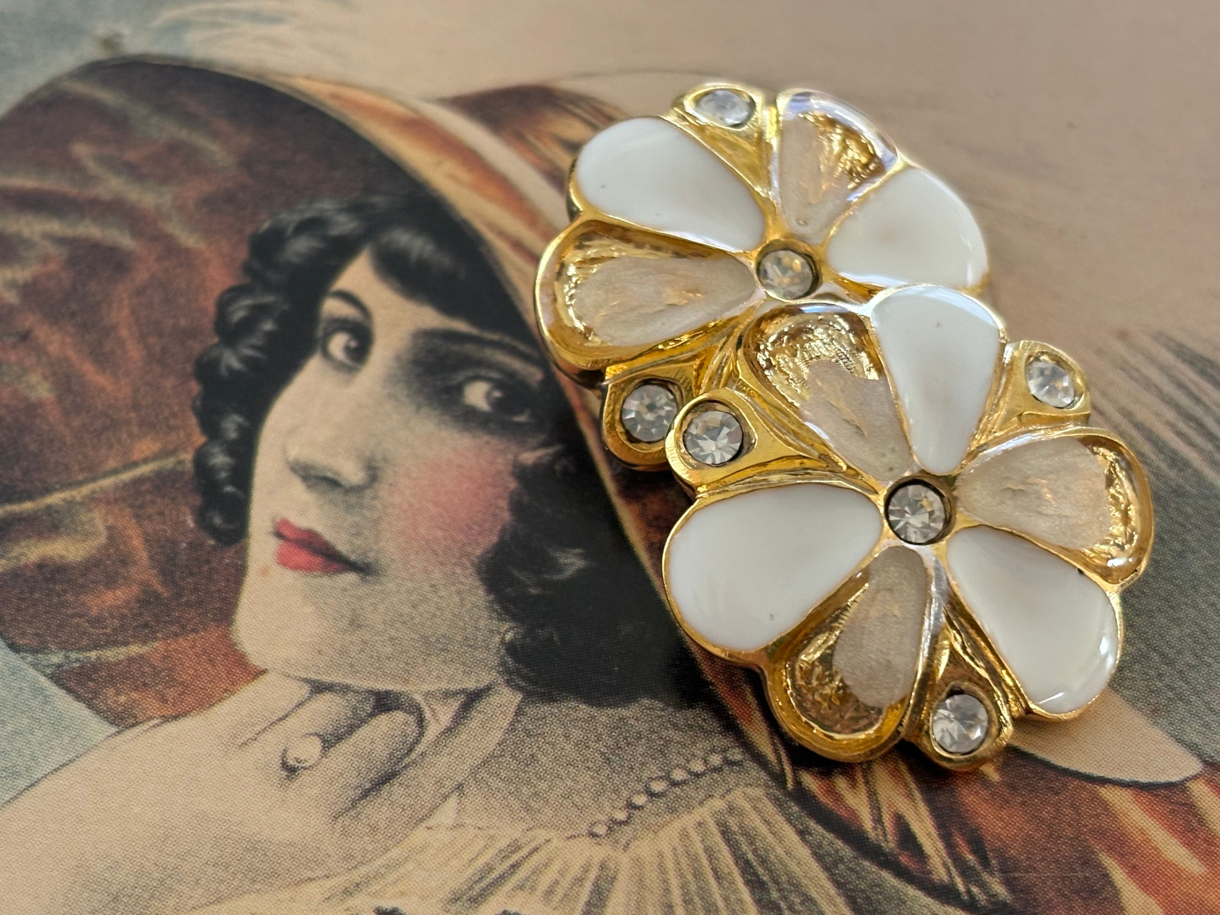 フランスVintageボタン ヴィンテージボタン 24mm ホワイト×ゴールド プラスチック ストーン アクセサリーパーツ デコレーション材