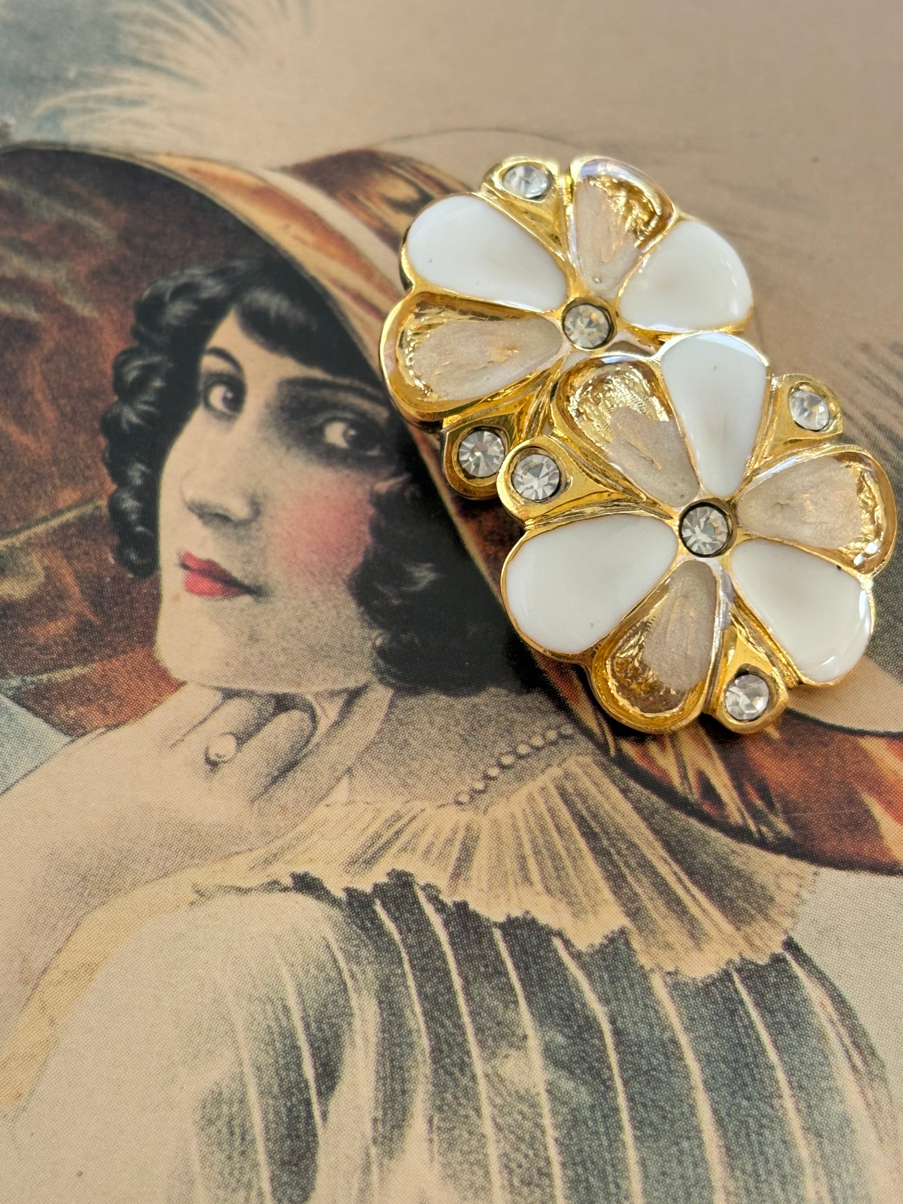 ホワイト×ゴールドカラーのゴージャスエレガントなフラワー型ボタン。