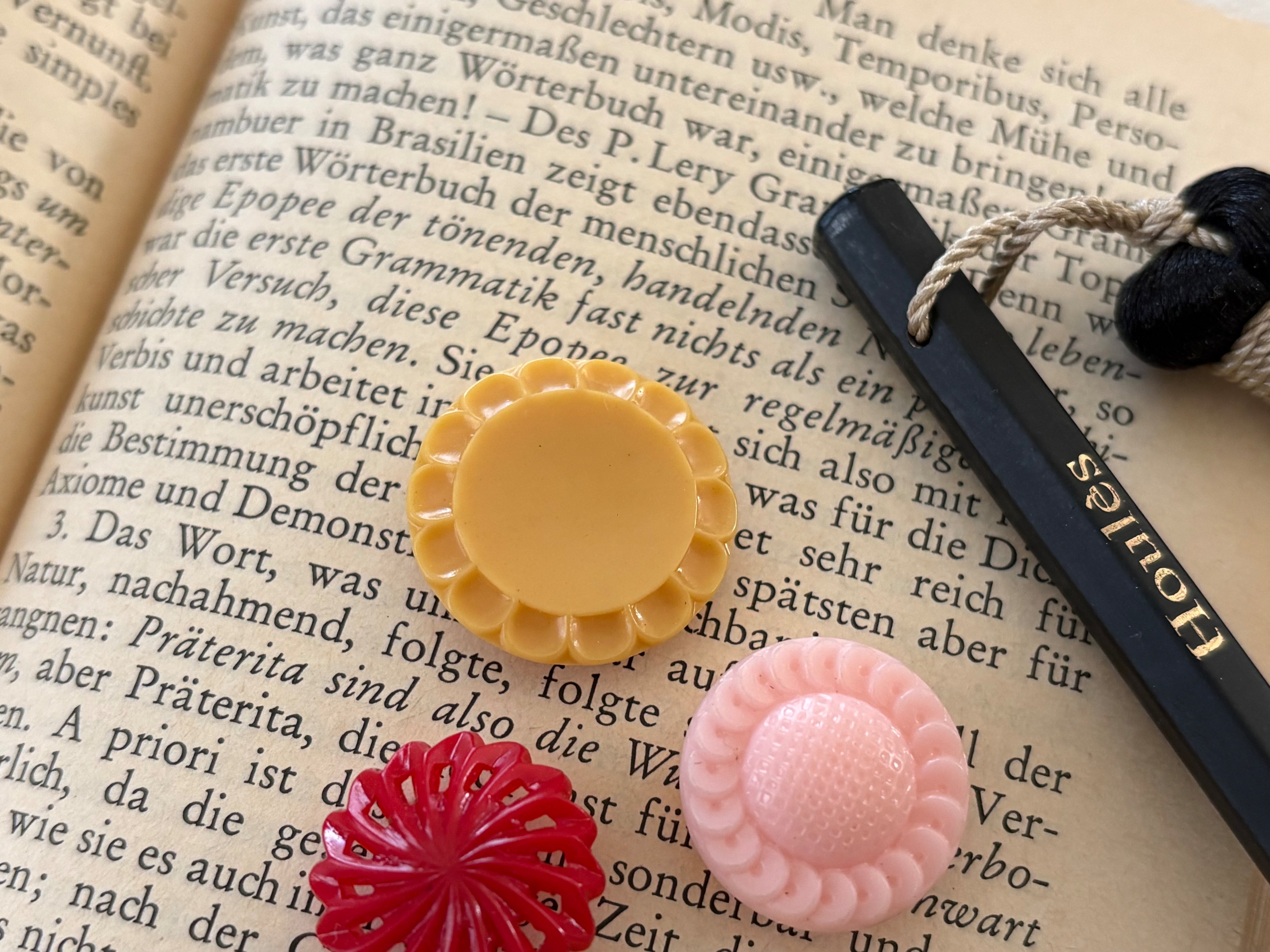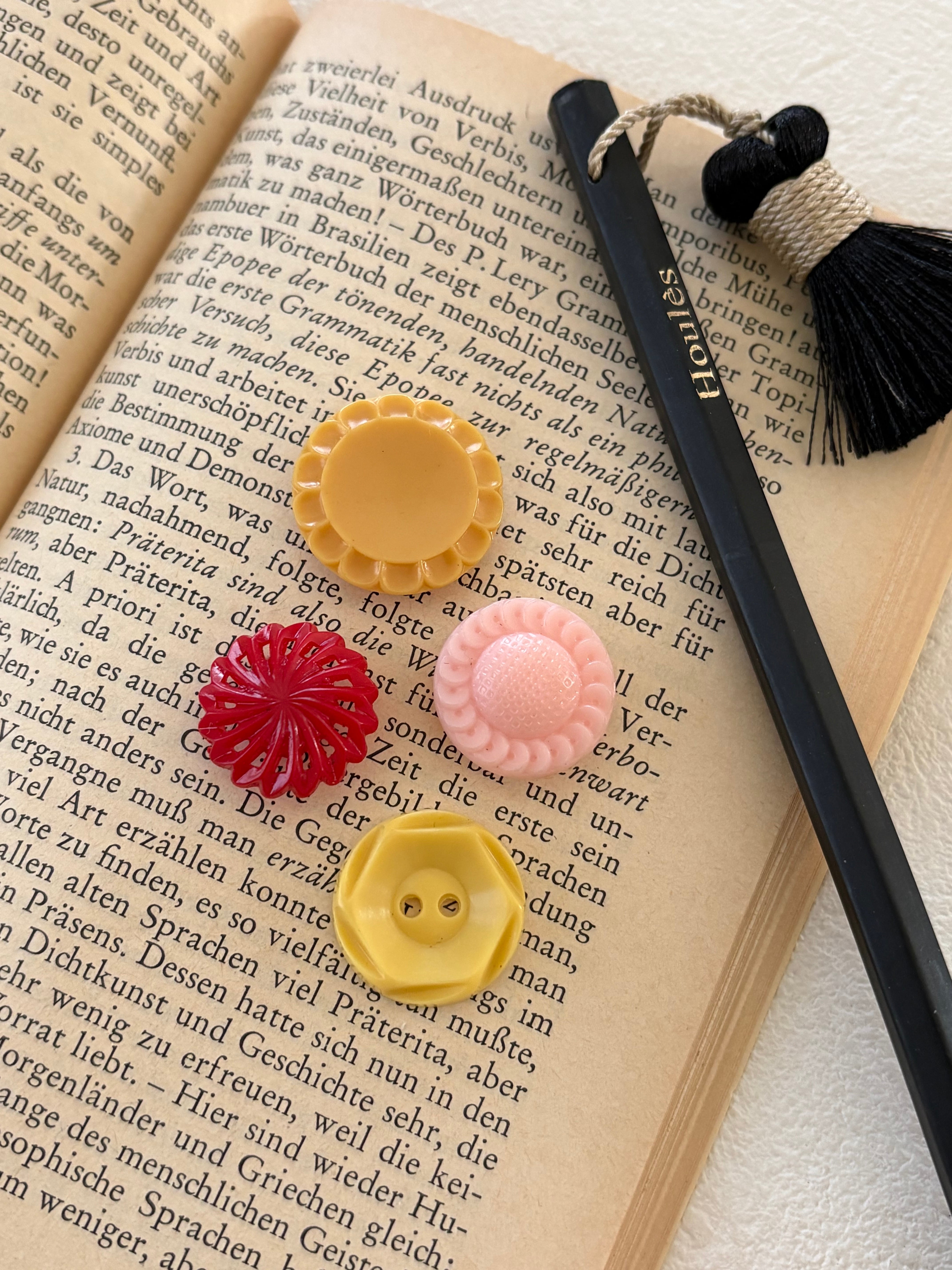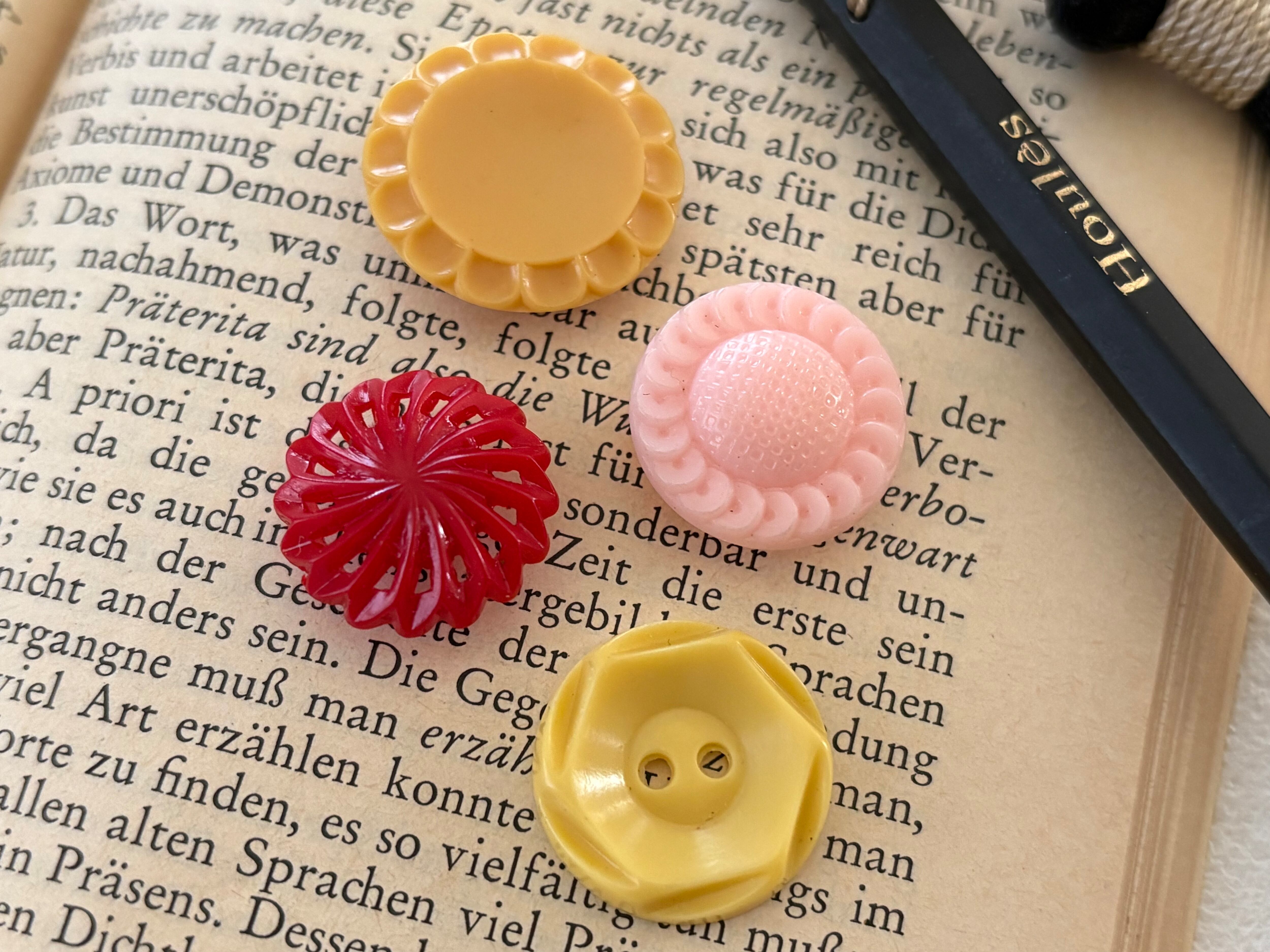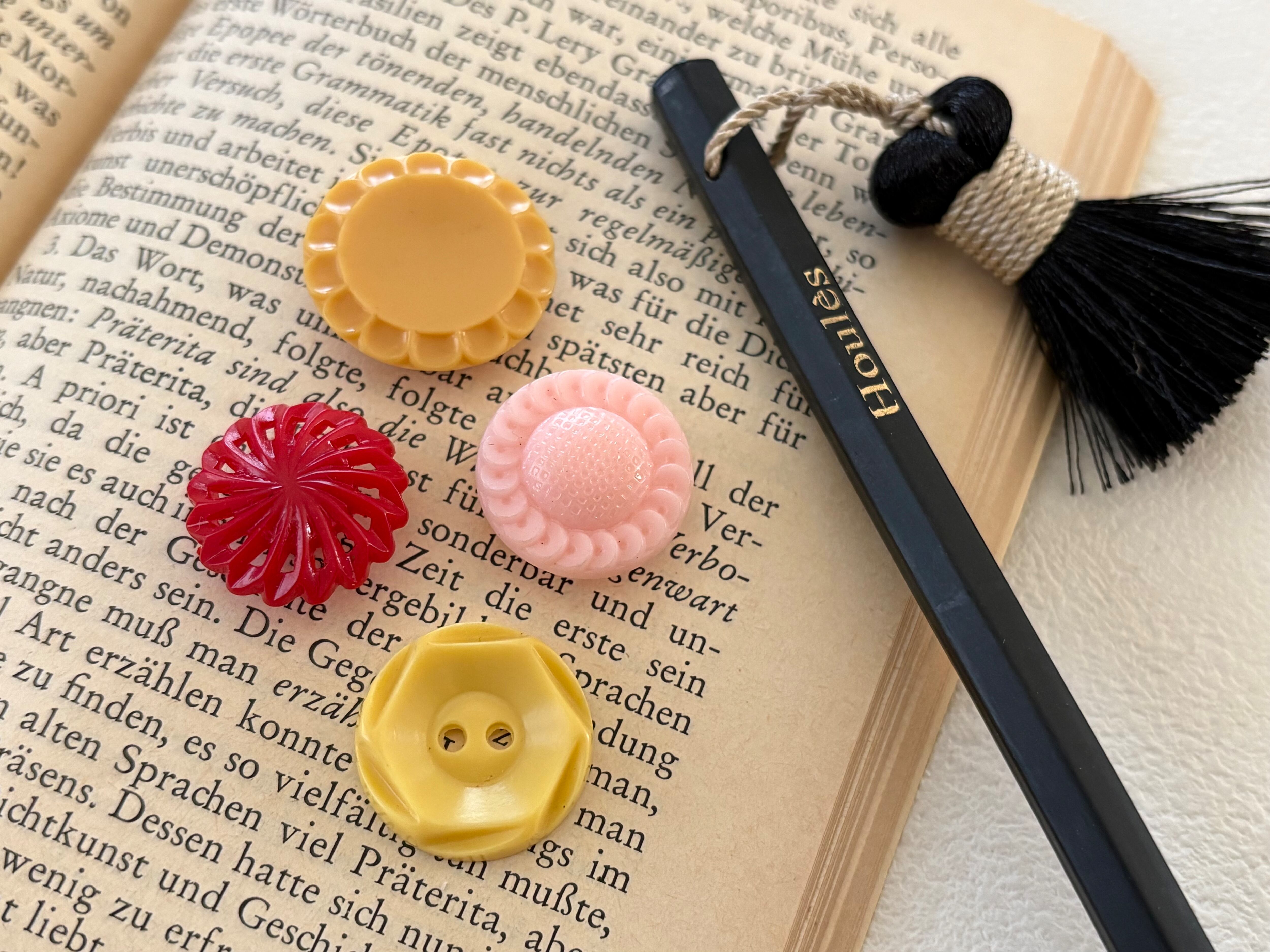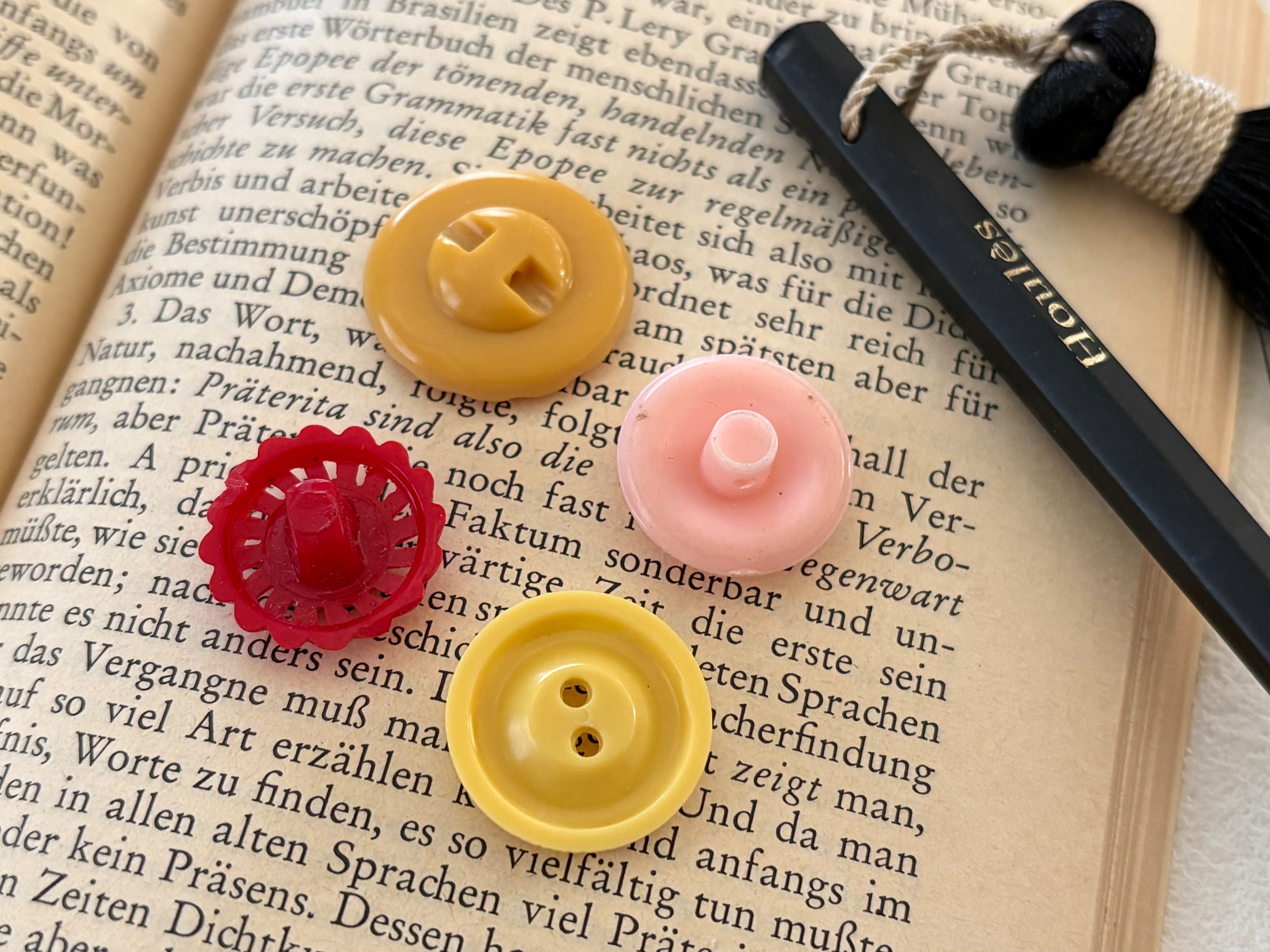 ポップでレトロな風合いが可愛いボタン、4点セットです。