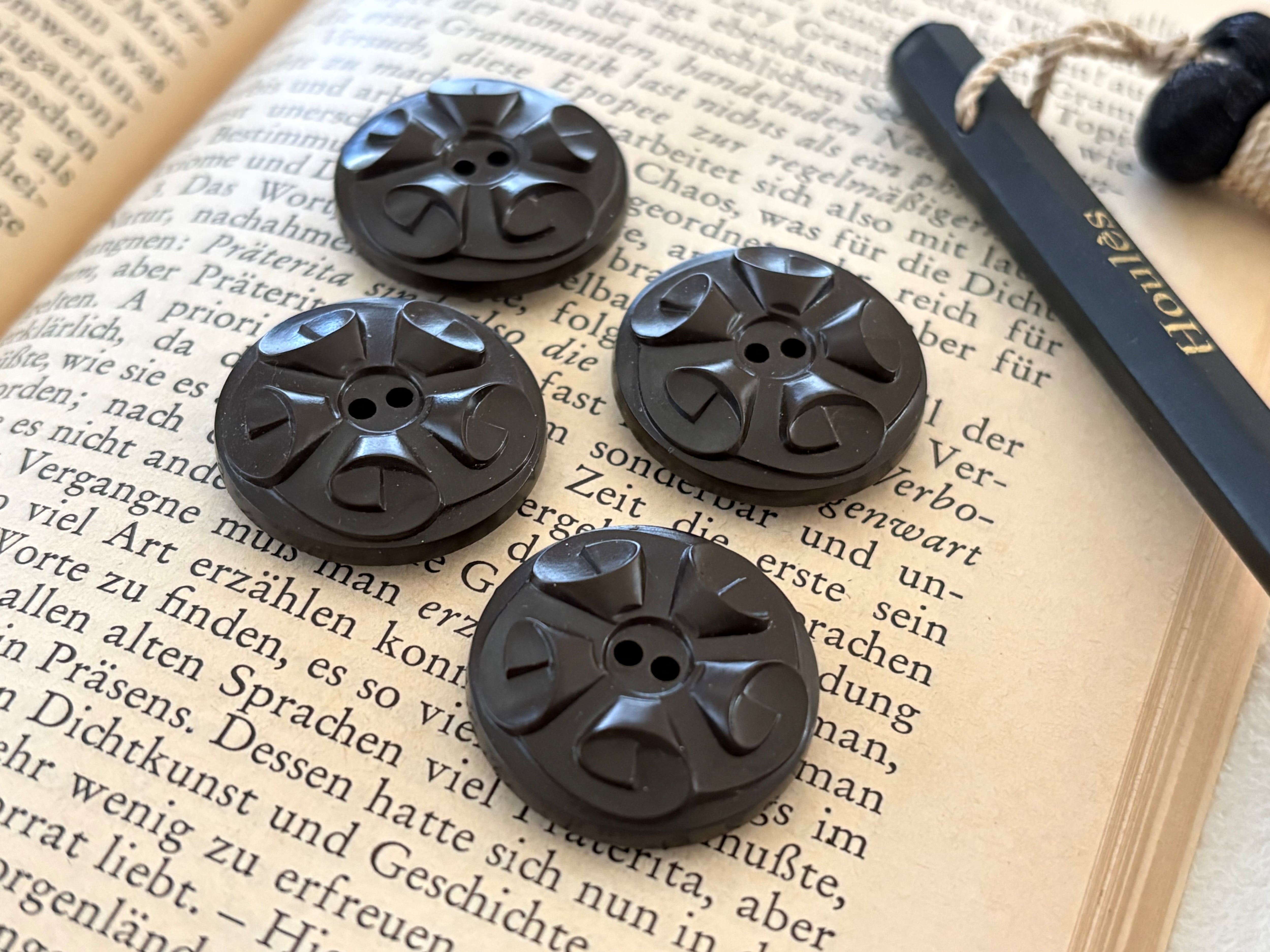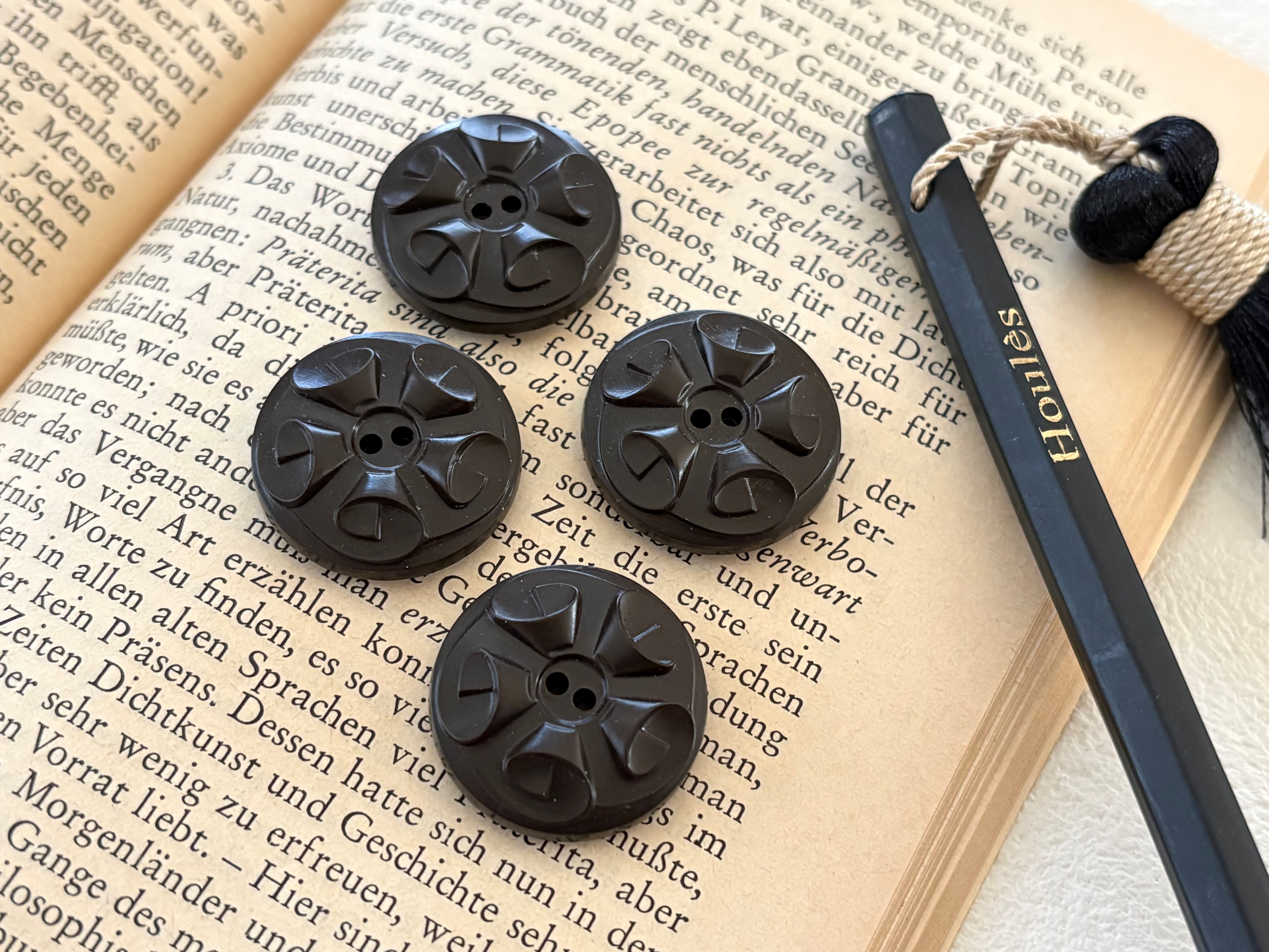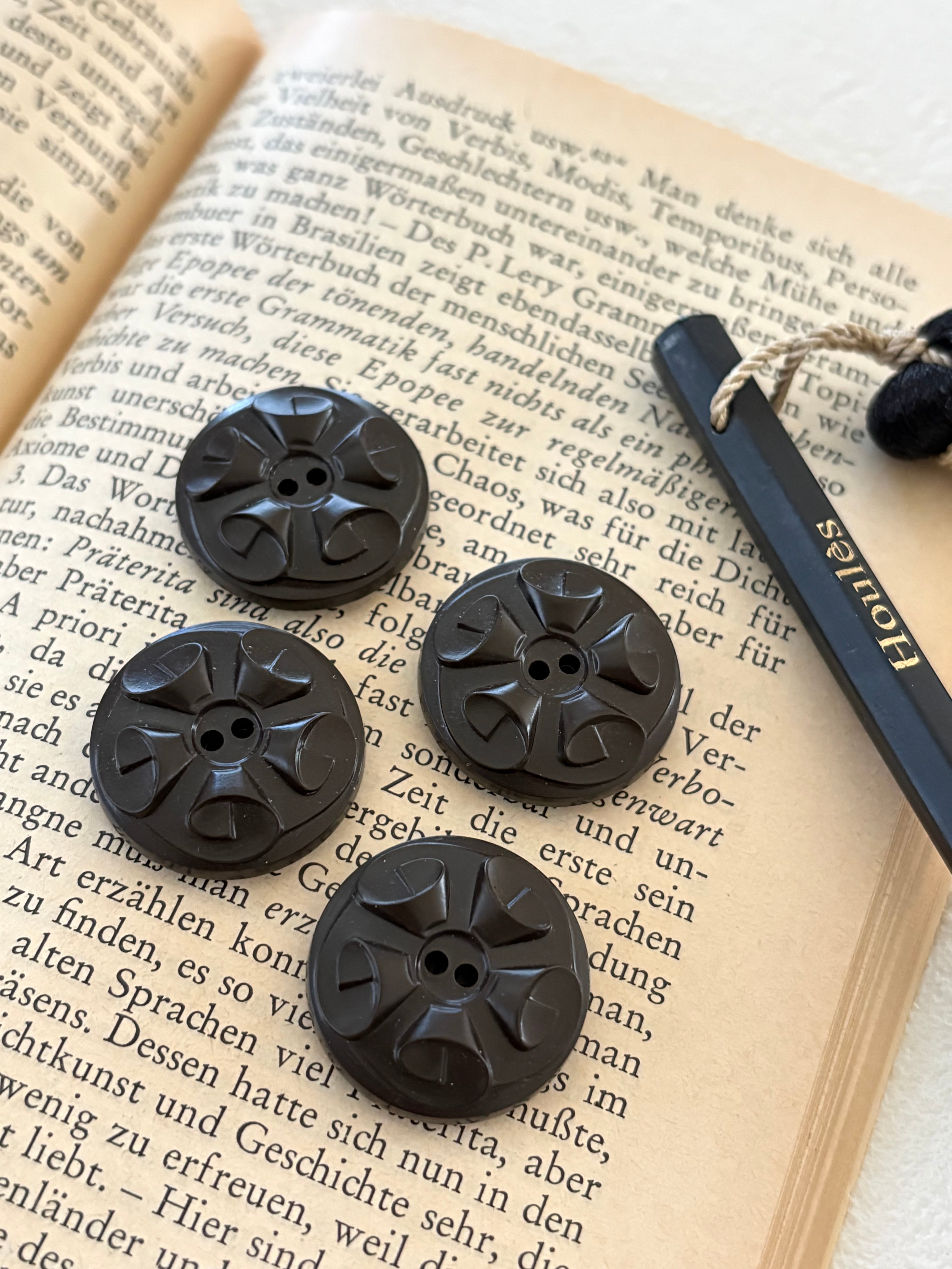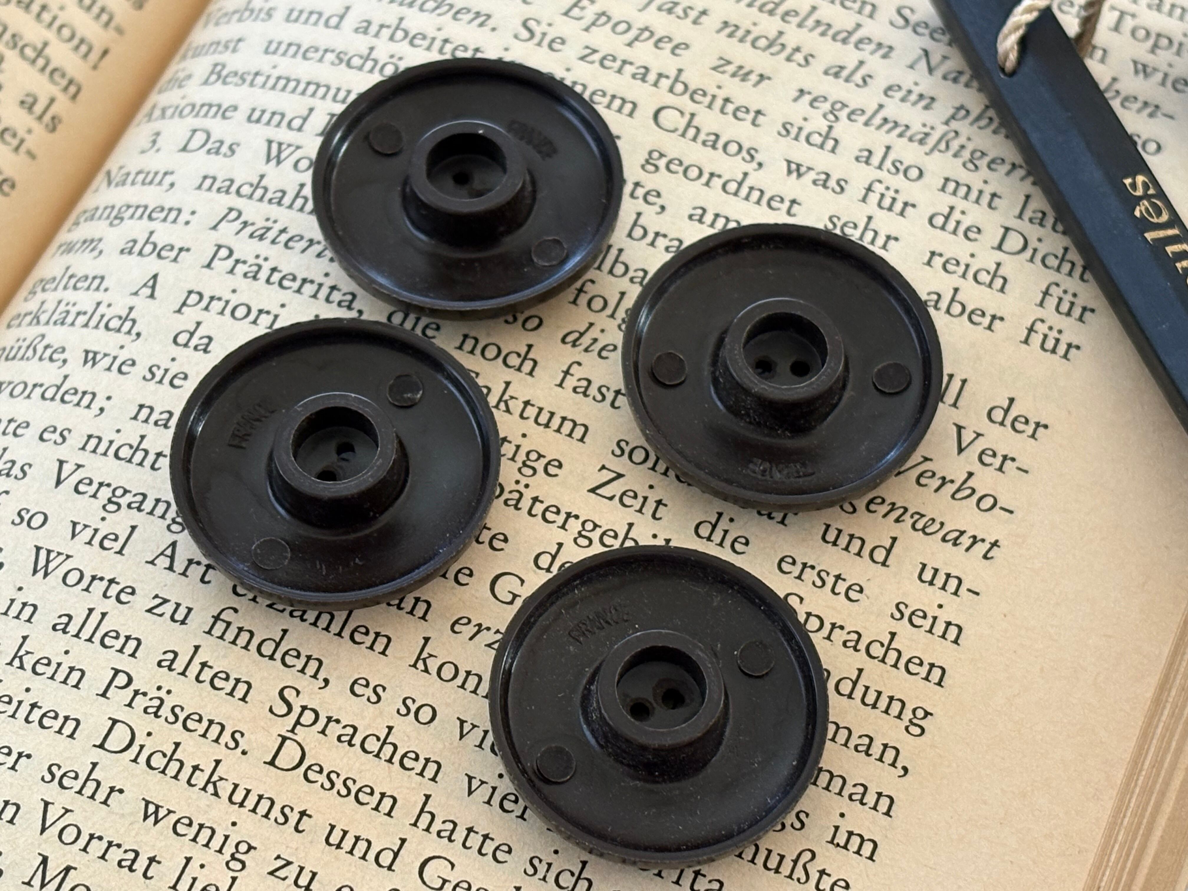 フランス Vintage ヴィンテージボタン 4個セット 22mm プラスチックボタン ブラウン アクセサリーパーツ デコレーション材 カルトナージュ