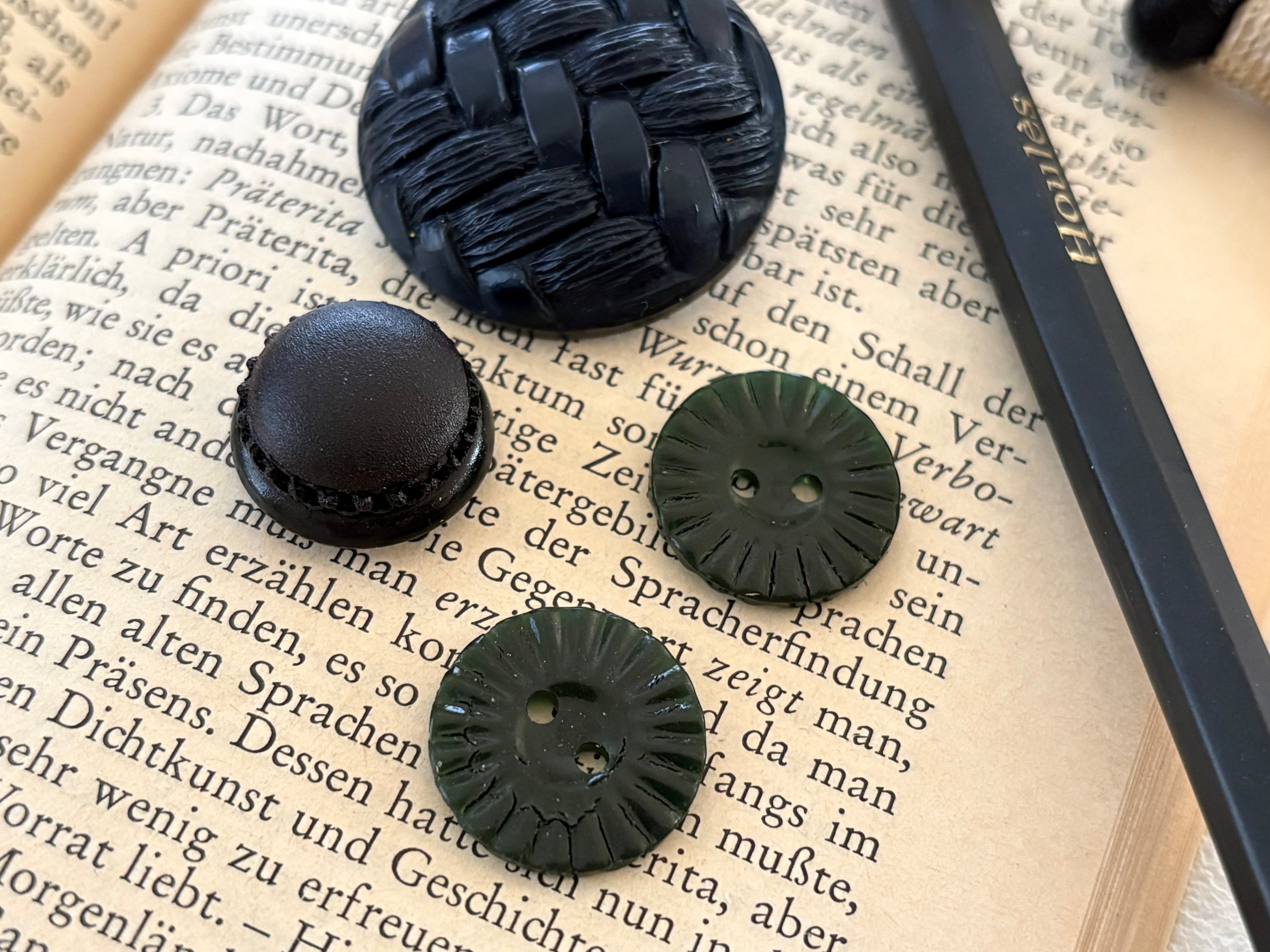 レトロな風合いが可愛いボタン、4点のセットです。