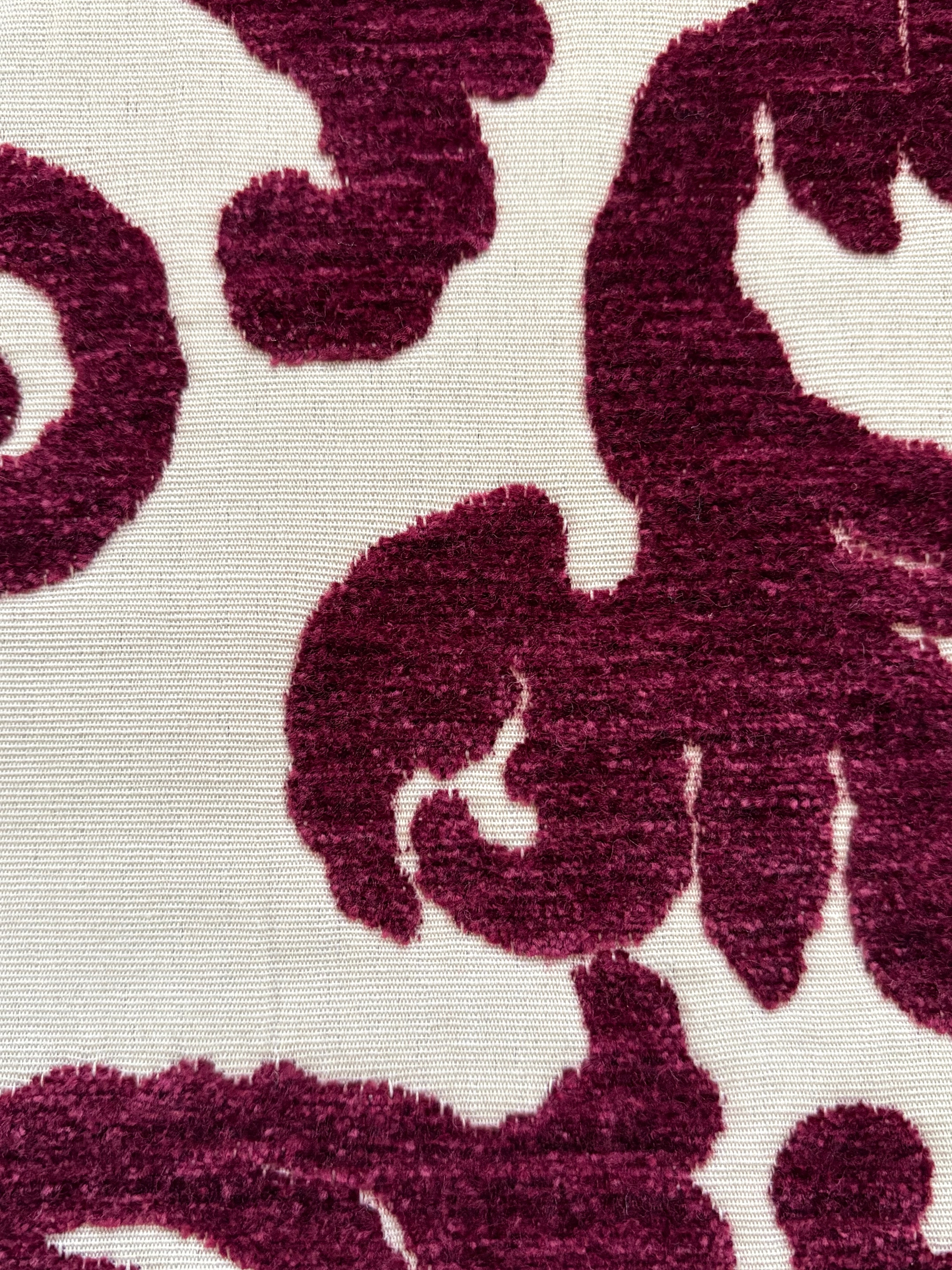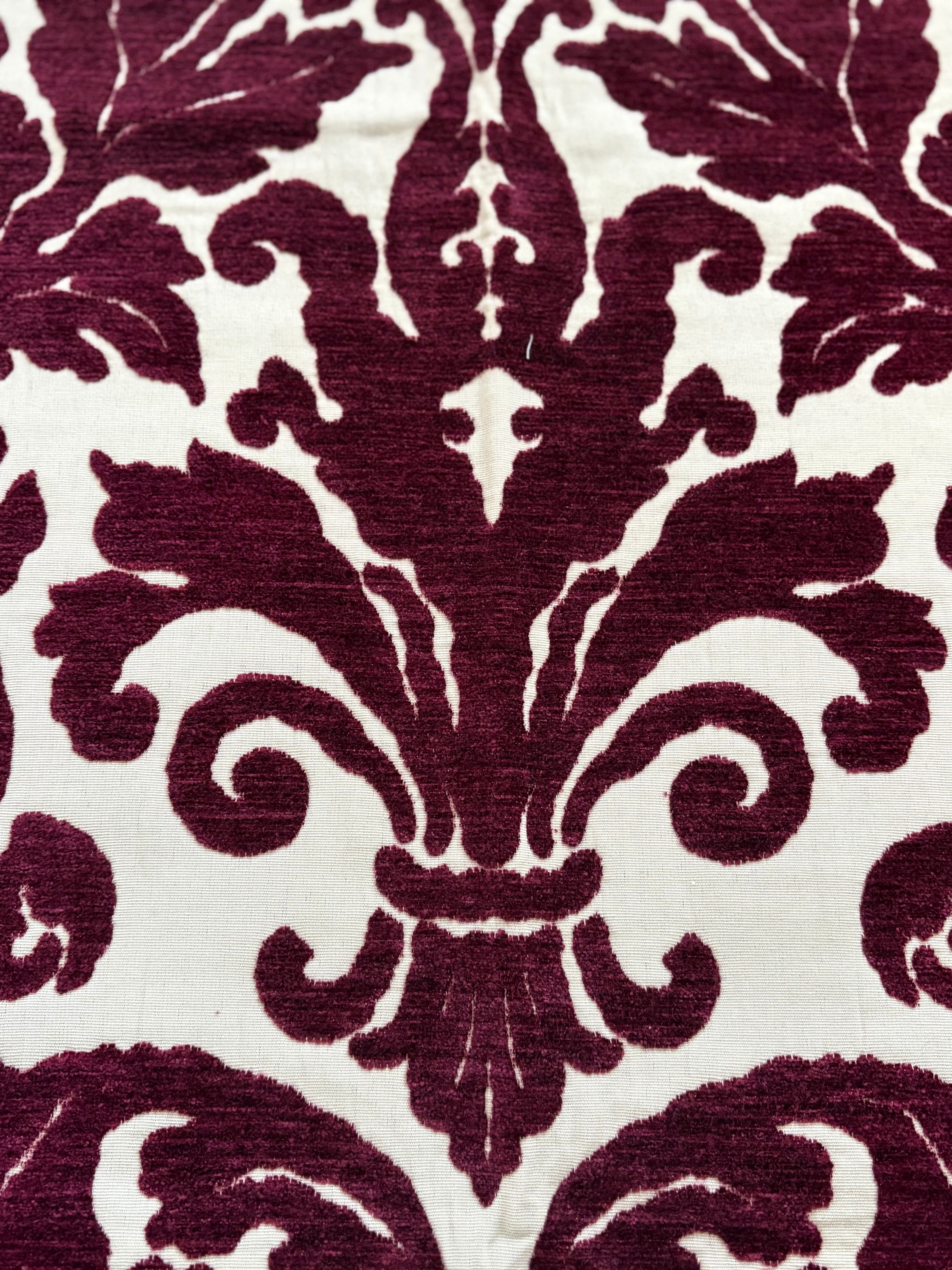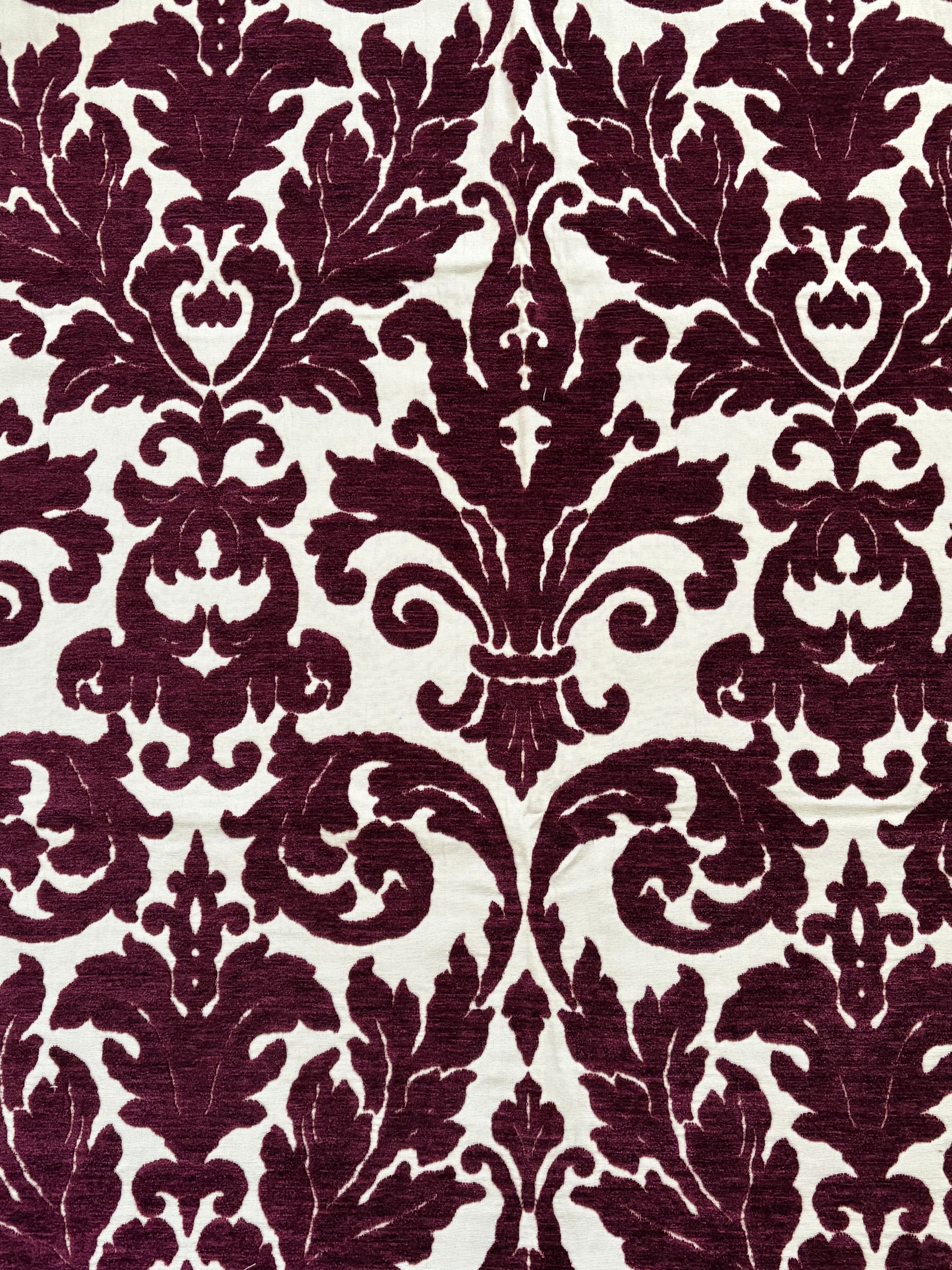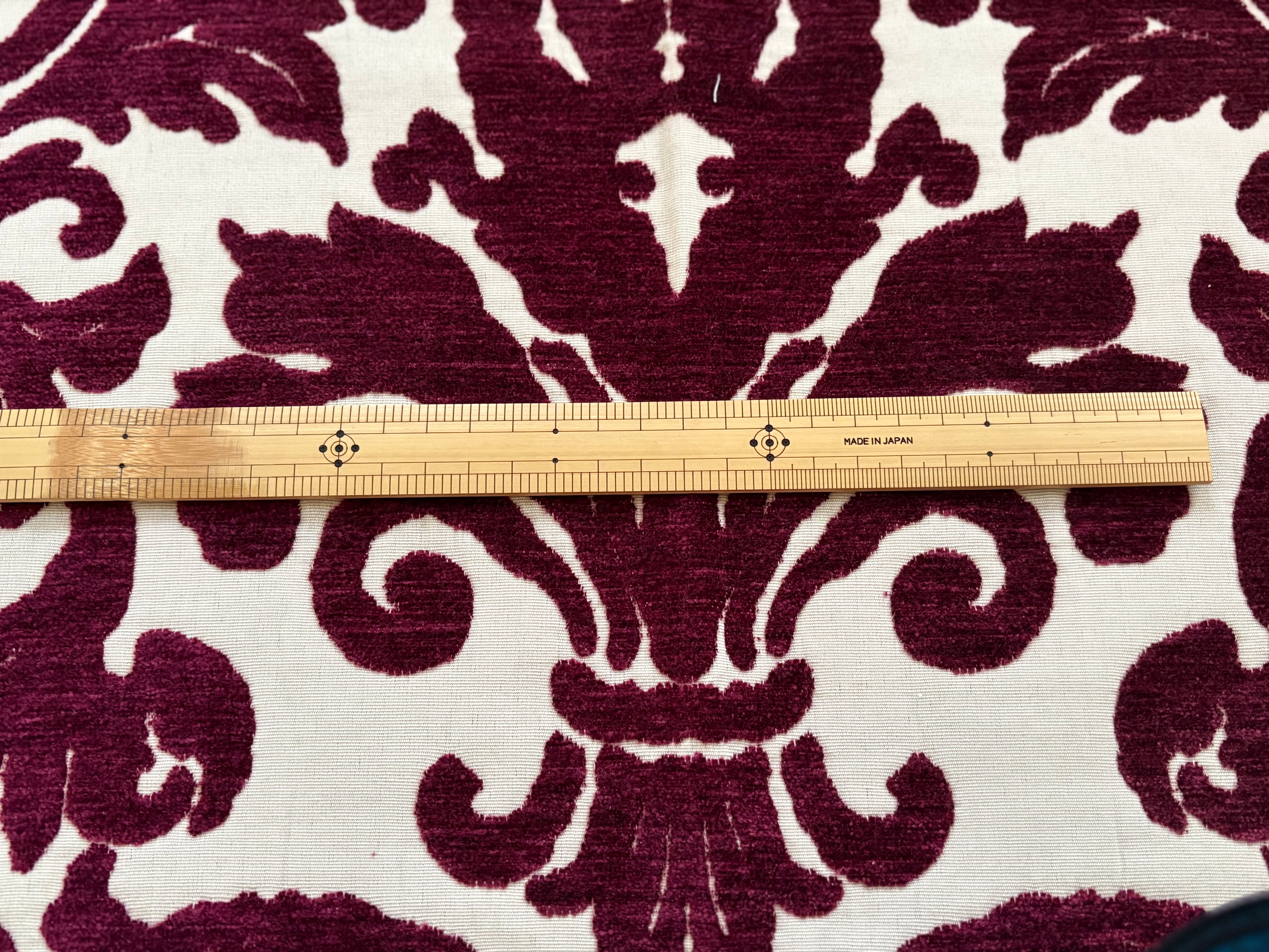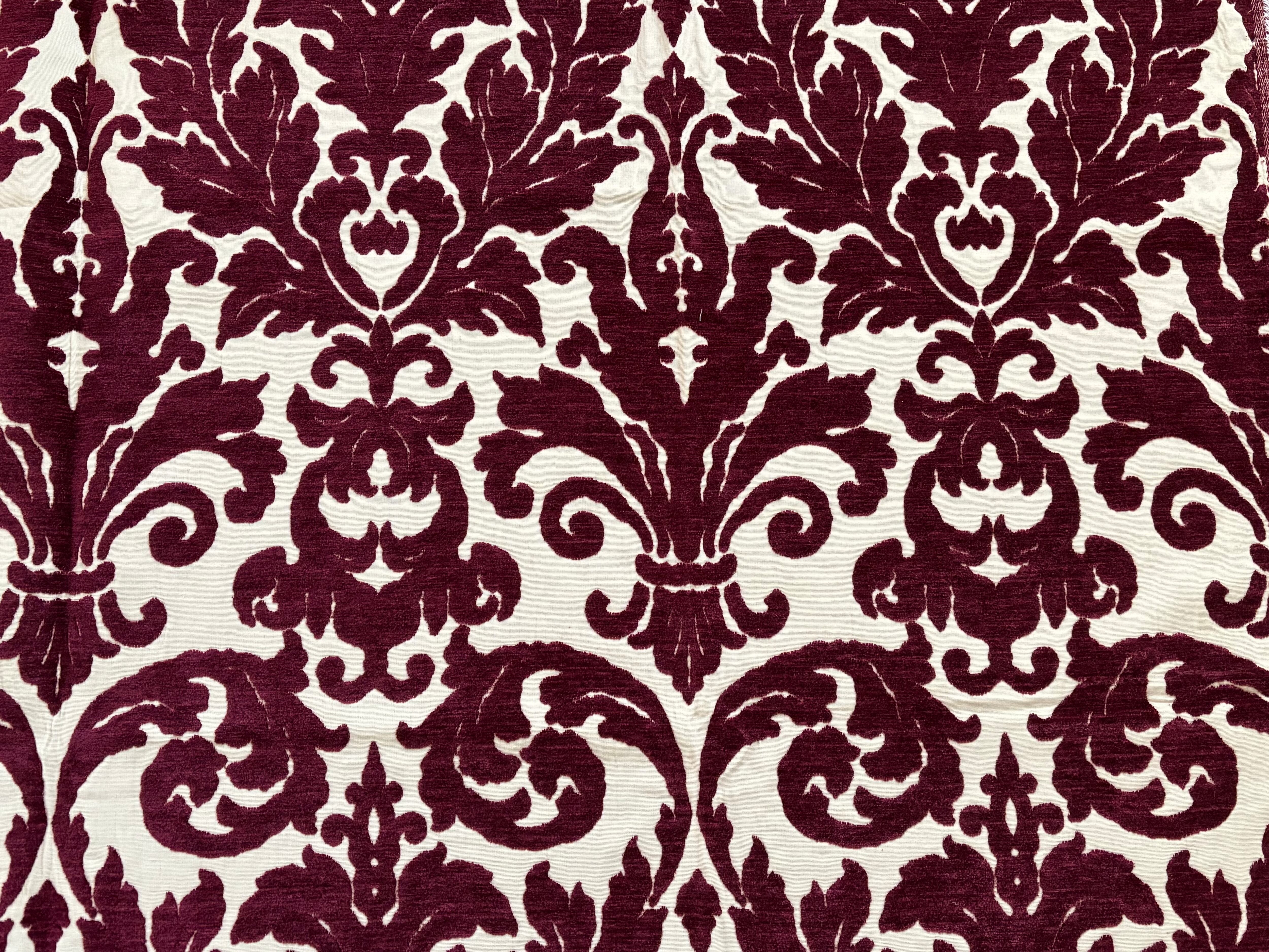 ボルドーカラーのベルベットの大きなダマスクが目をひきます。
