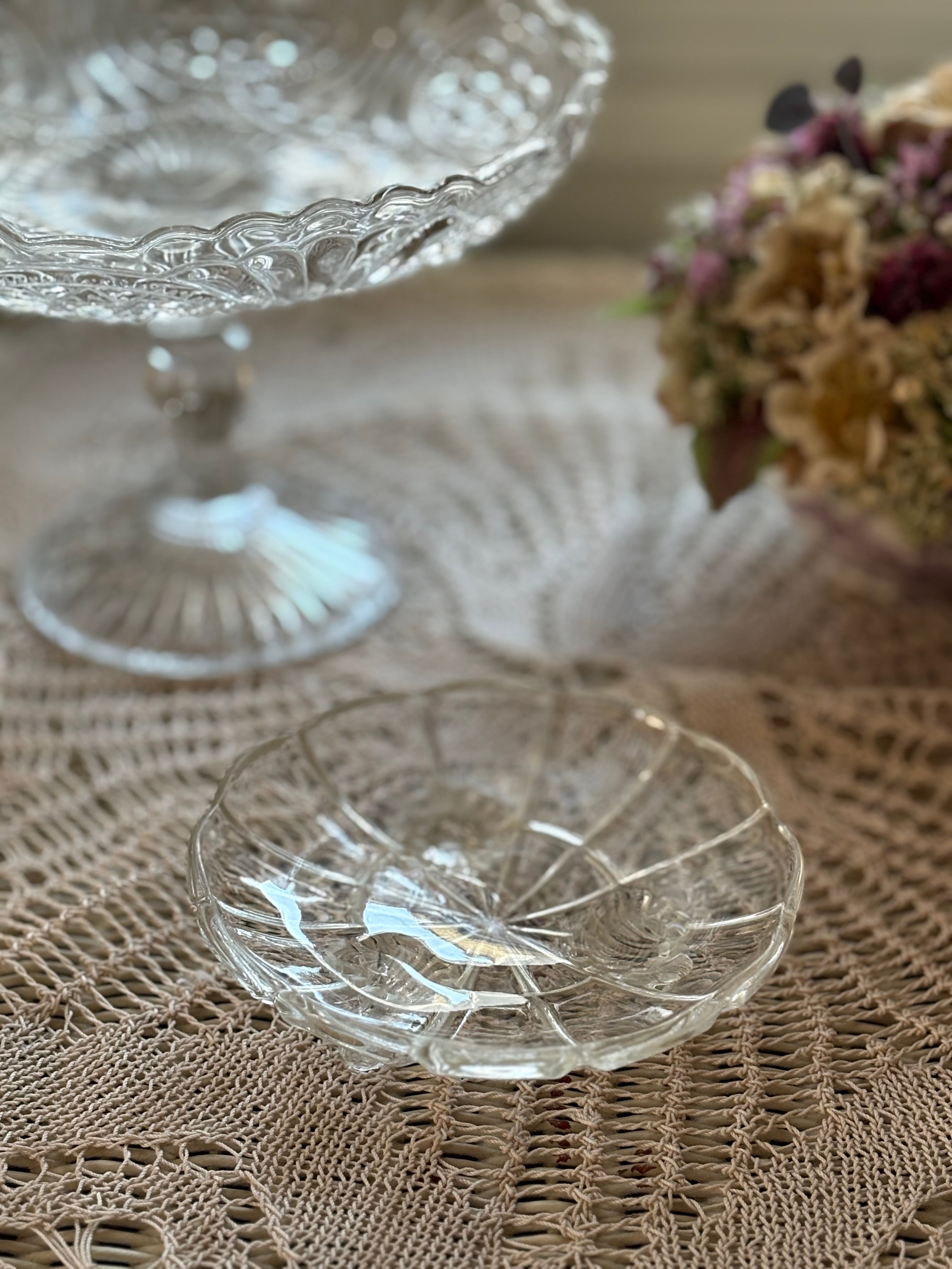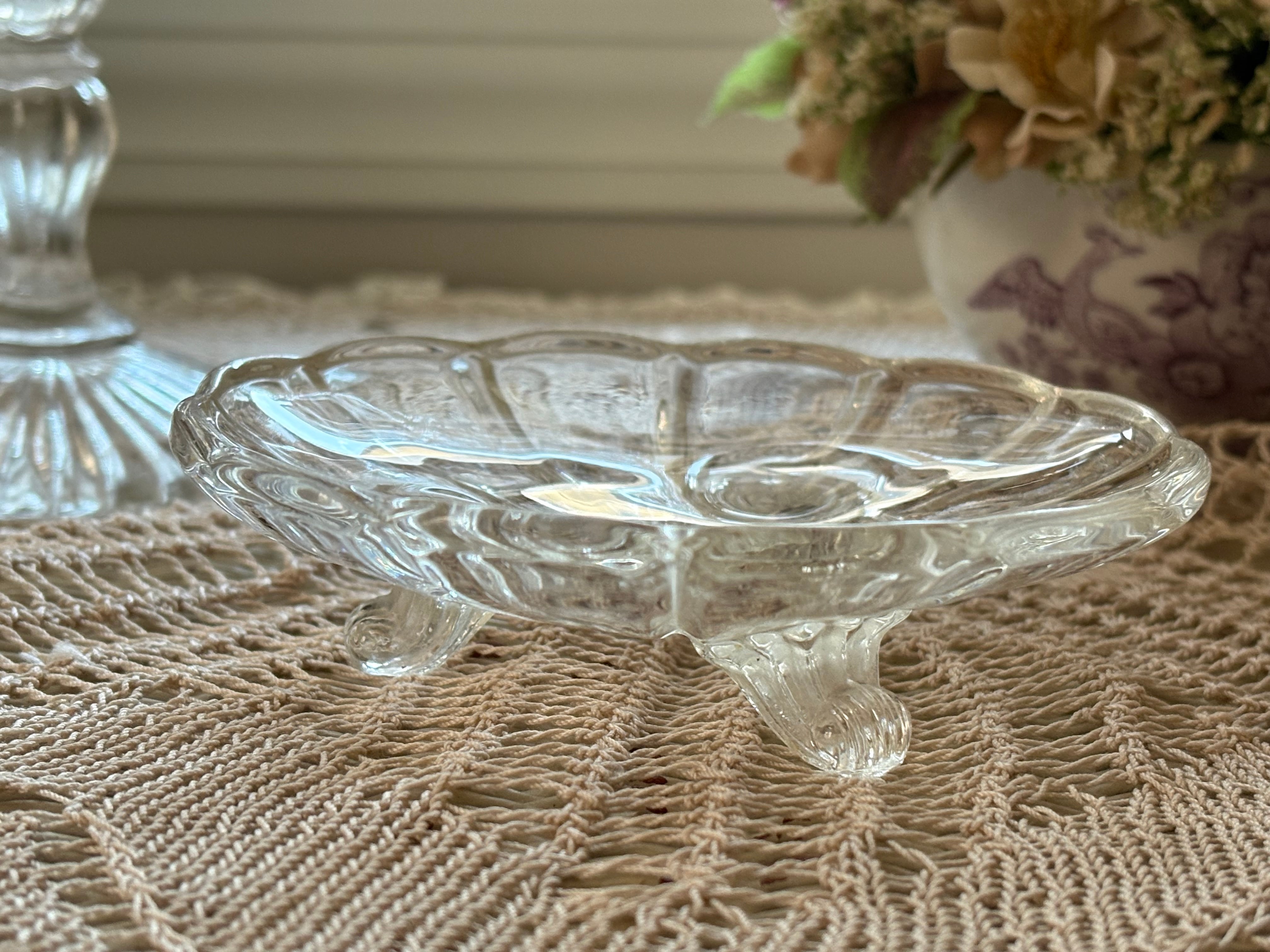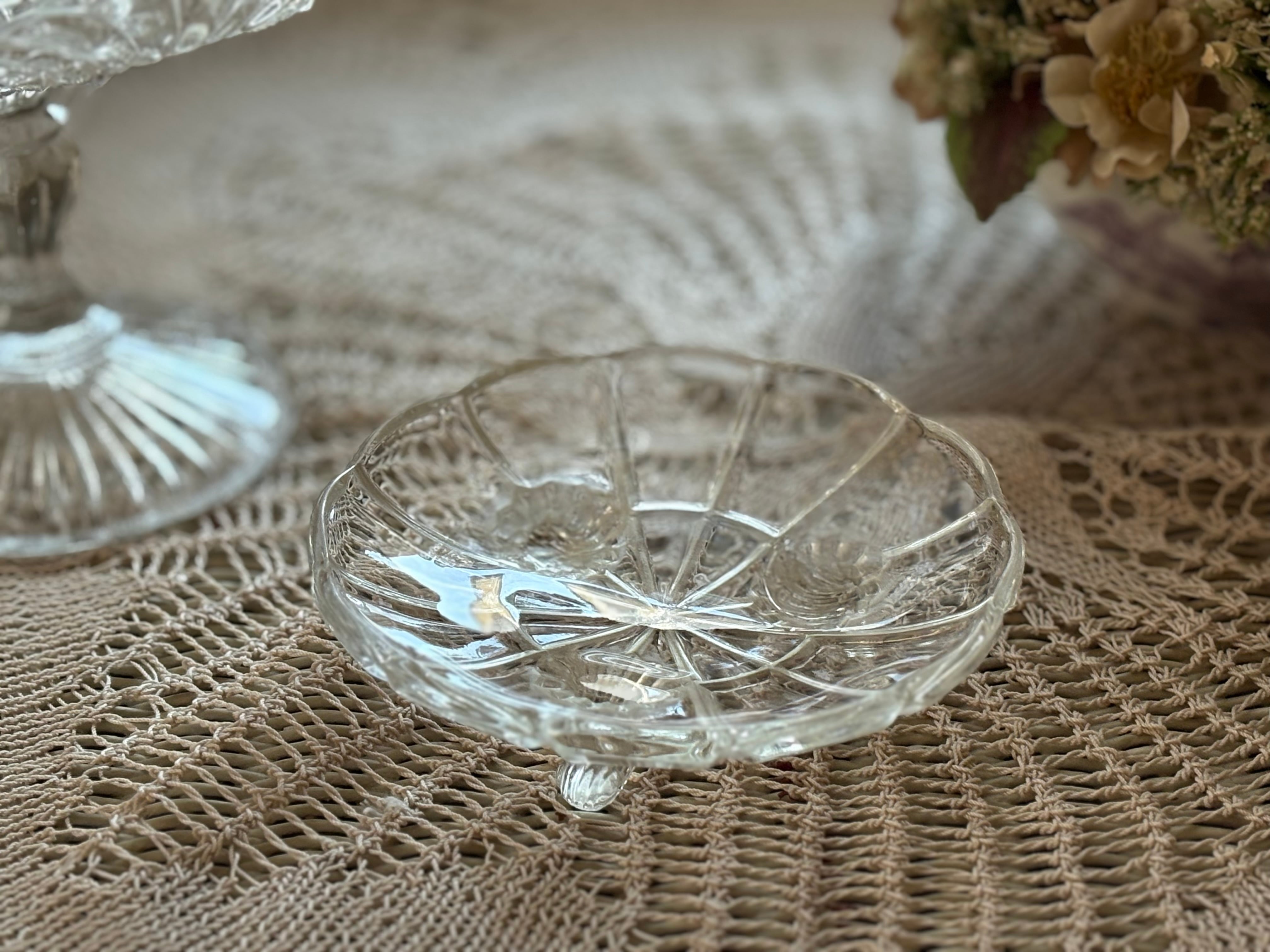 フランス Vintage クリア 小さな三脚ケーキスタンド コンポティエ ガラス 猫足 小物置 インテリア ディスプレイ 店舗什器