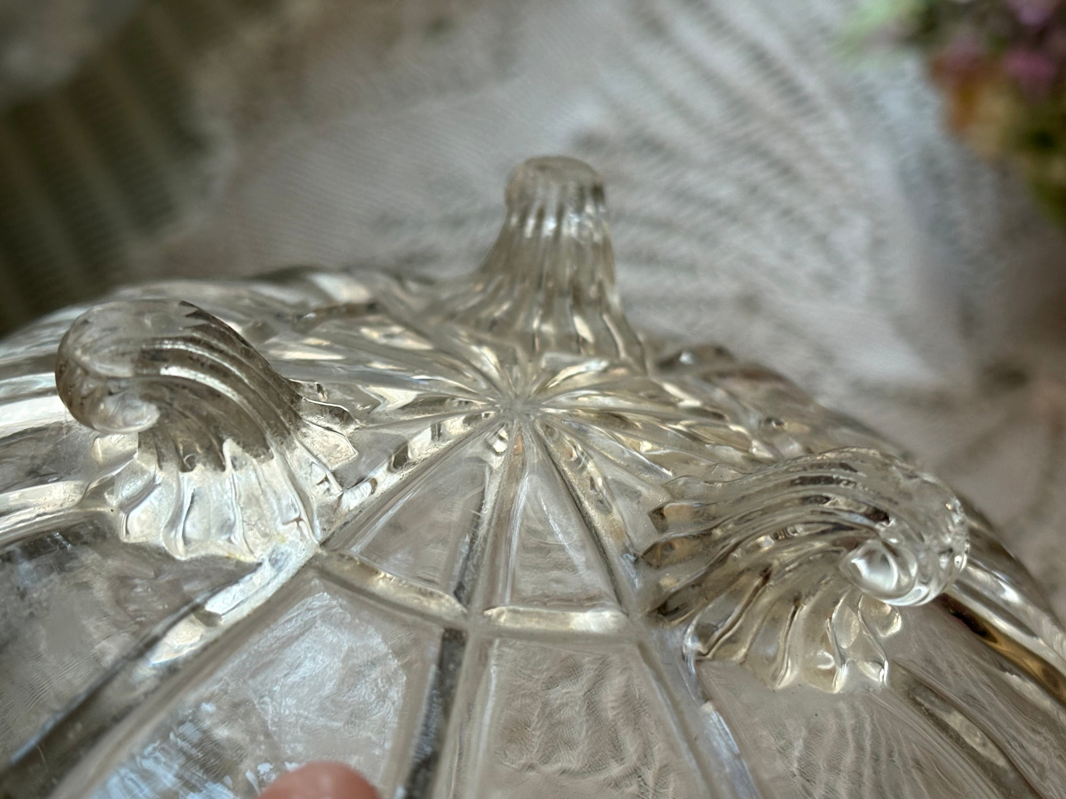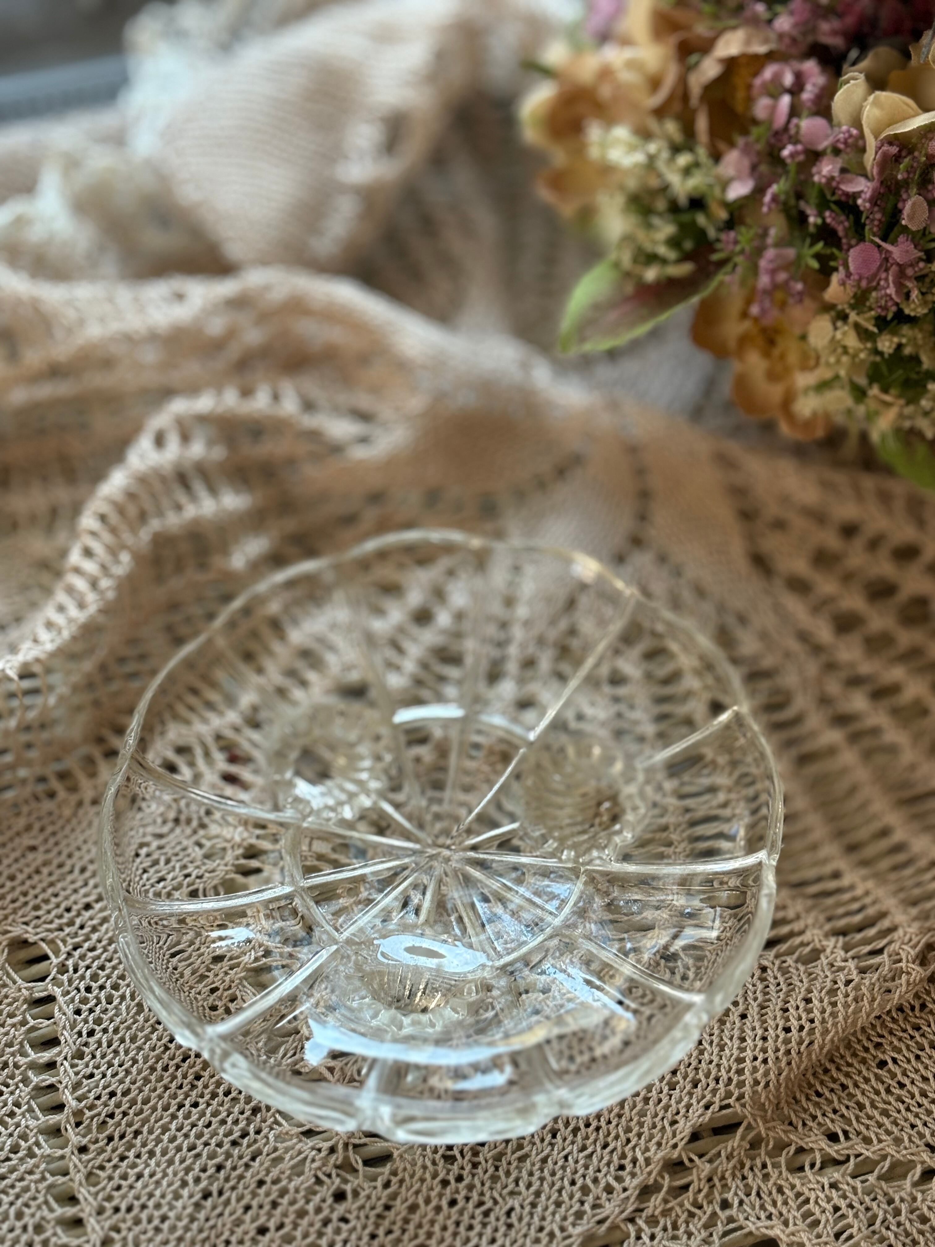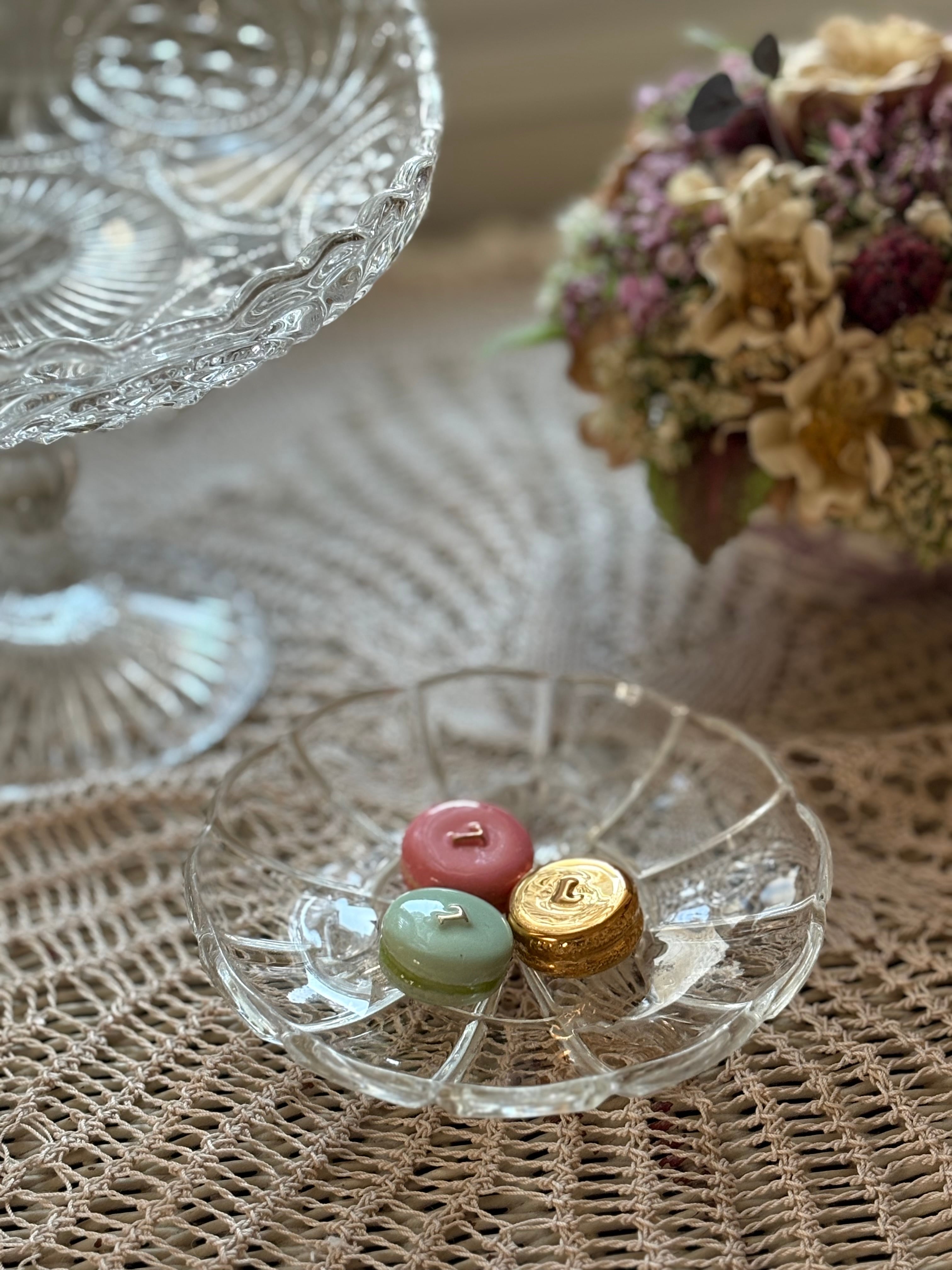 フランス Vintage クリア 小さな三脚ケーキスタンド コンポティエ ガラス 猫足 小物置 インテリア ディスプレイ 店舗什器
