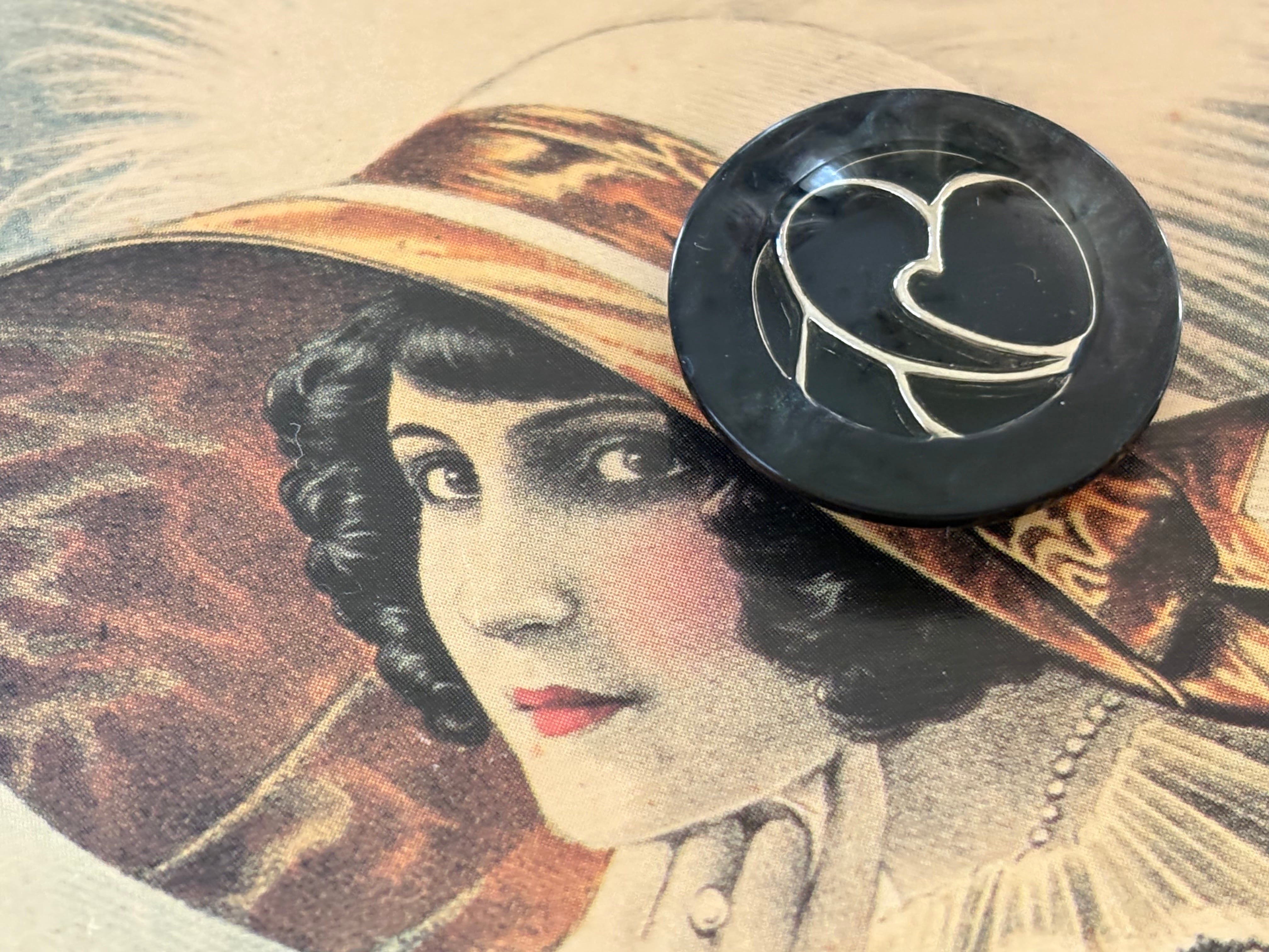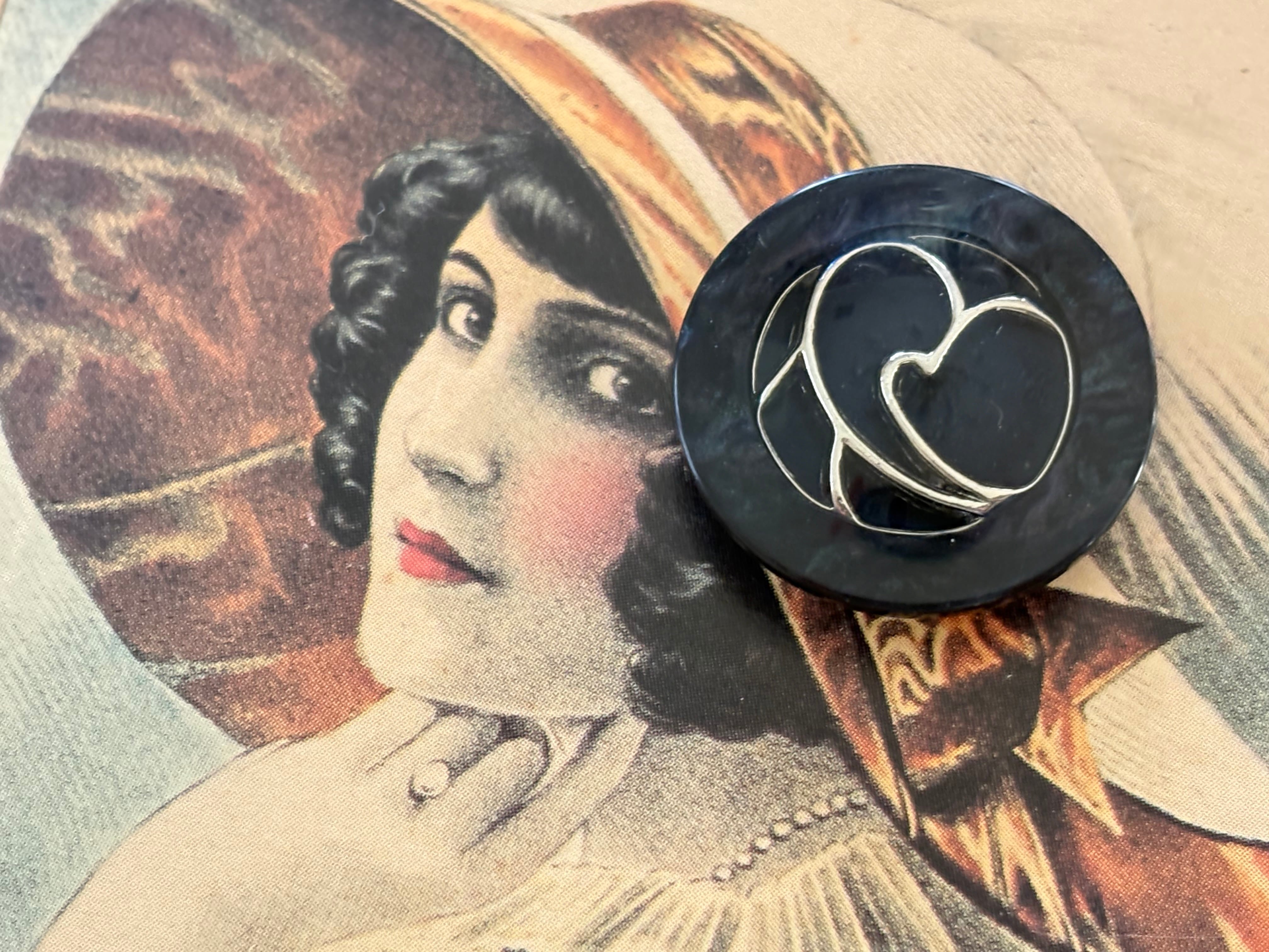 23mm Japanese ヴィンテージボタン ブラック×シルバー マーブル調 樹脂ボタン 昭和レトロ アクセサリーパーツ 装飾材 カルトナージュ