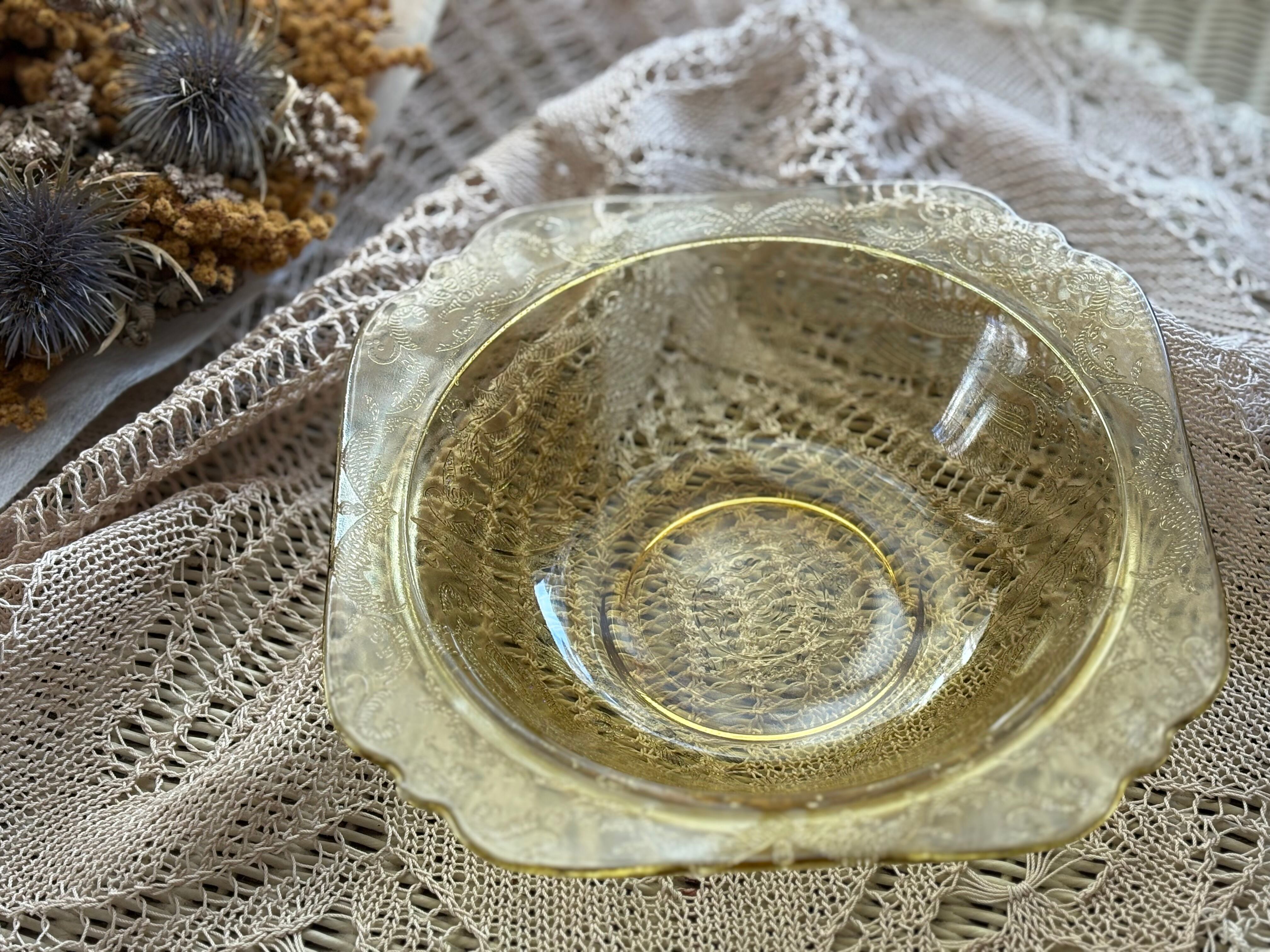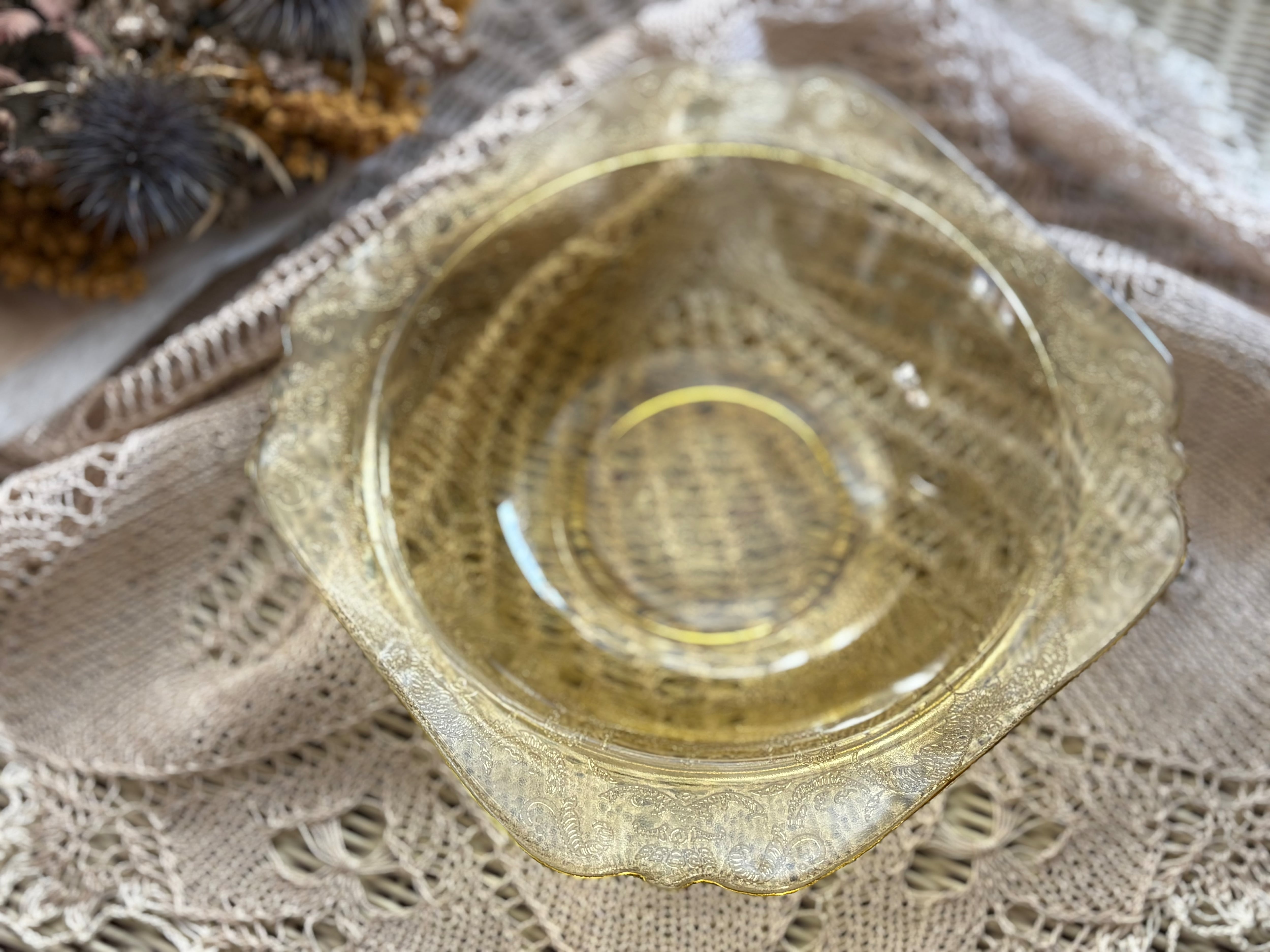 米国Vinatge フェデラルグラス社 マドリッド アンバー ディプレッションガラス 1976年 復刻版 ボウルプレート