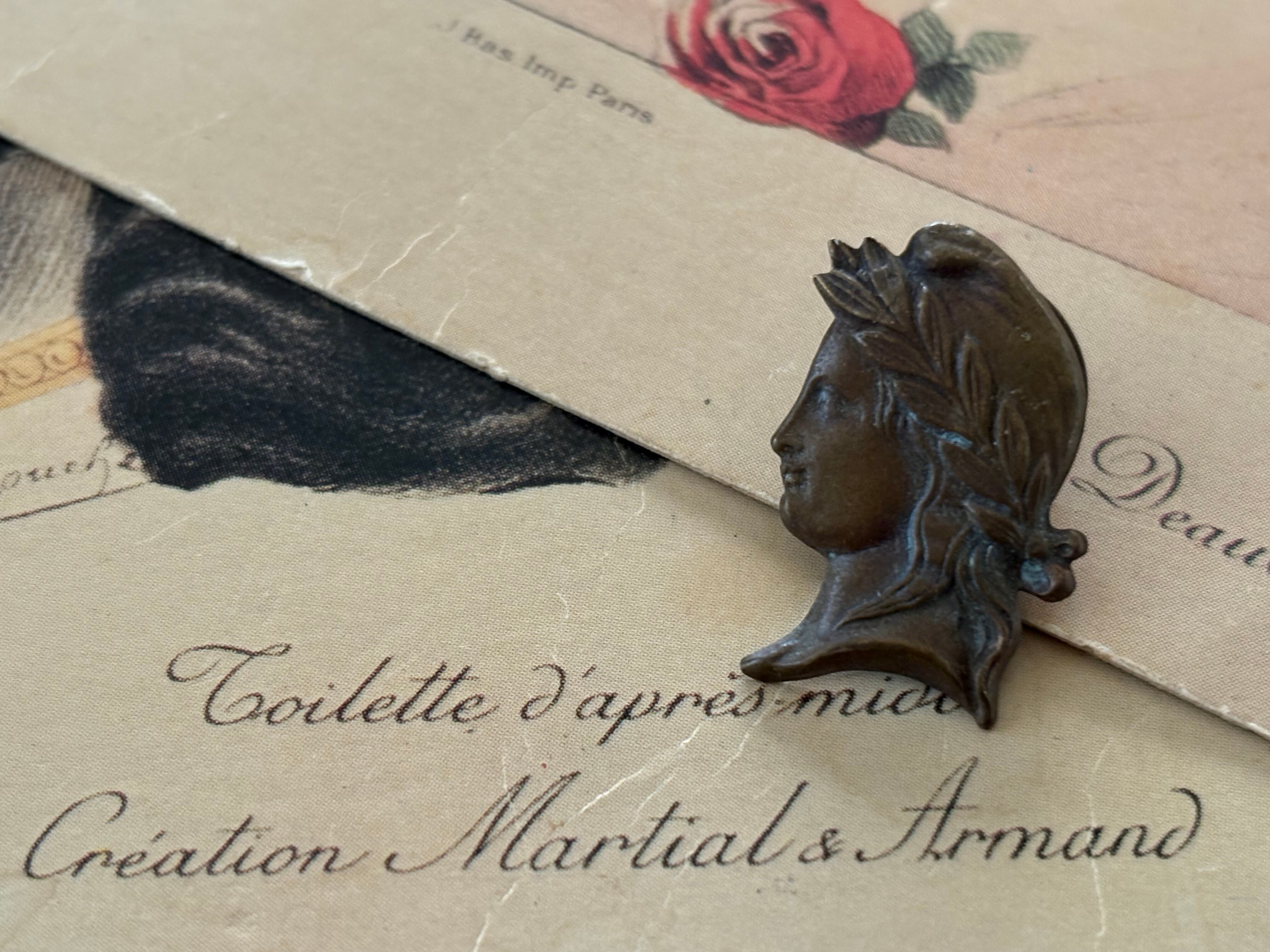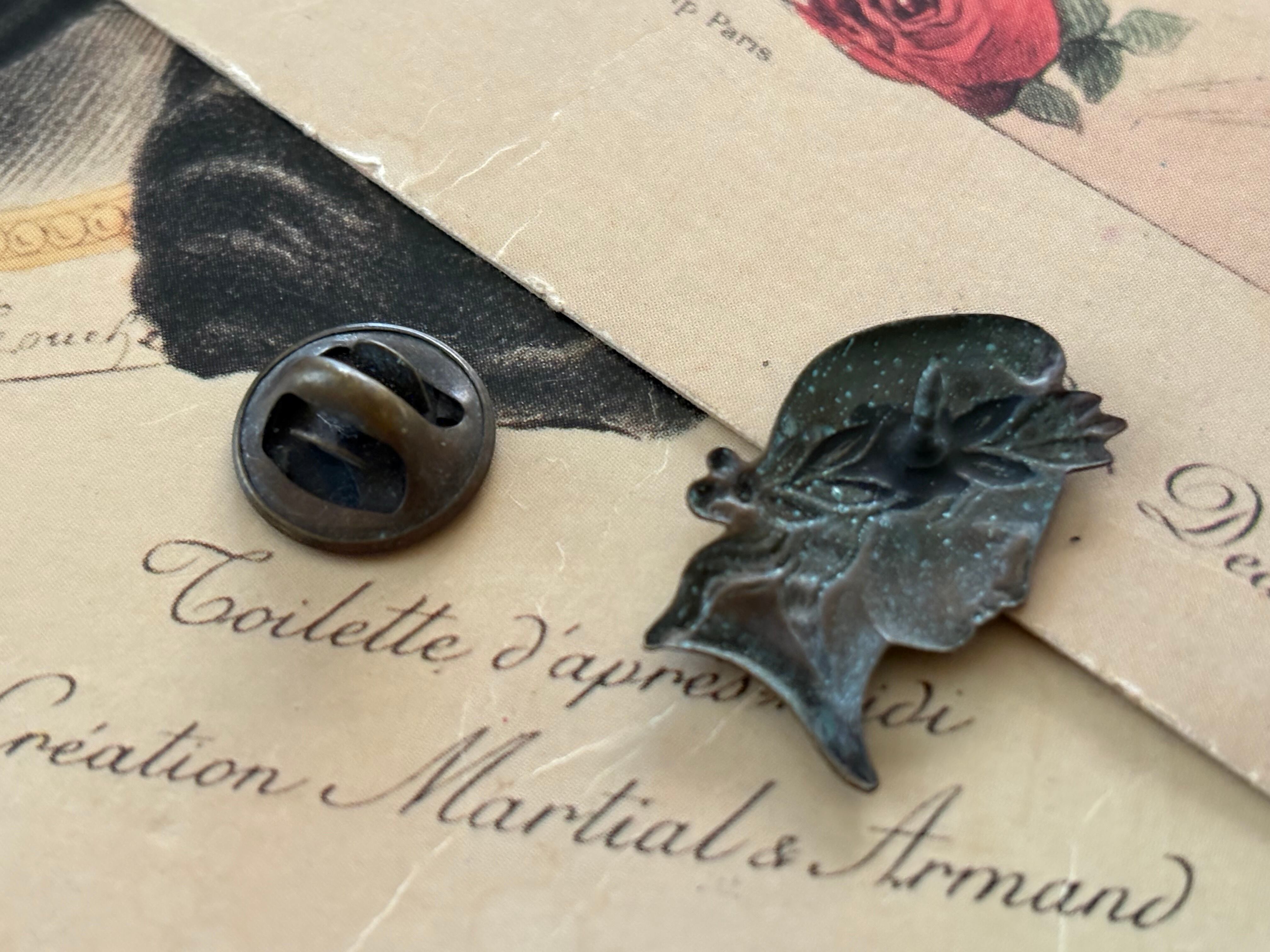 フランスVintage ヴィンテージ 古代ローマ風 クラシカルな横顔のピンバッジ 23mm×15mm 撮影小物 インテリア小物 カルトナージュ
