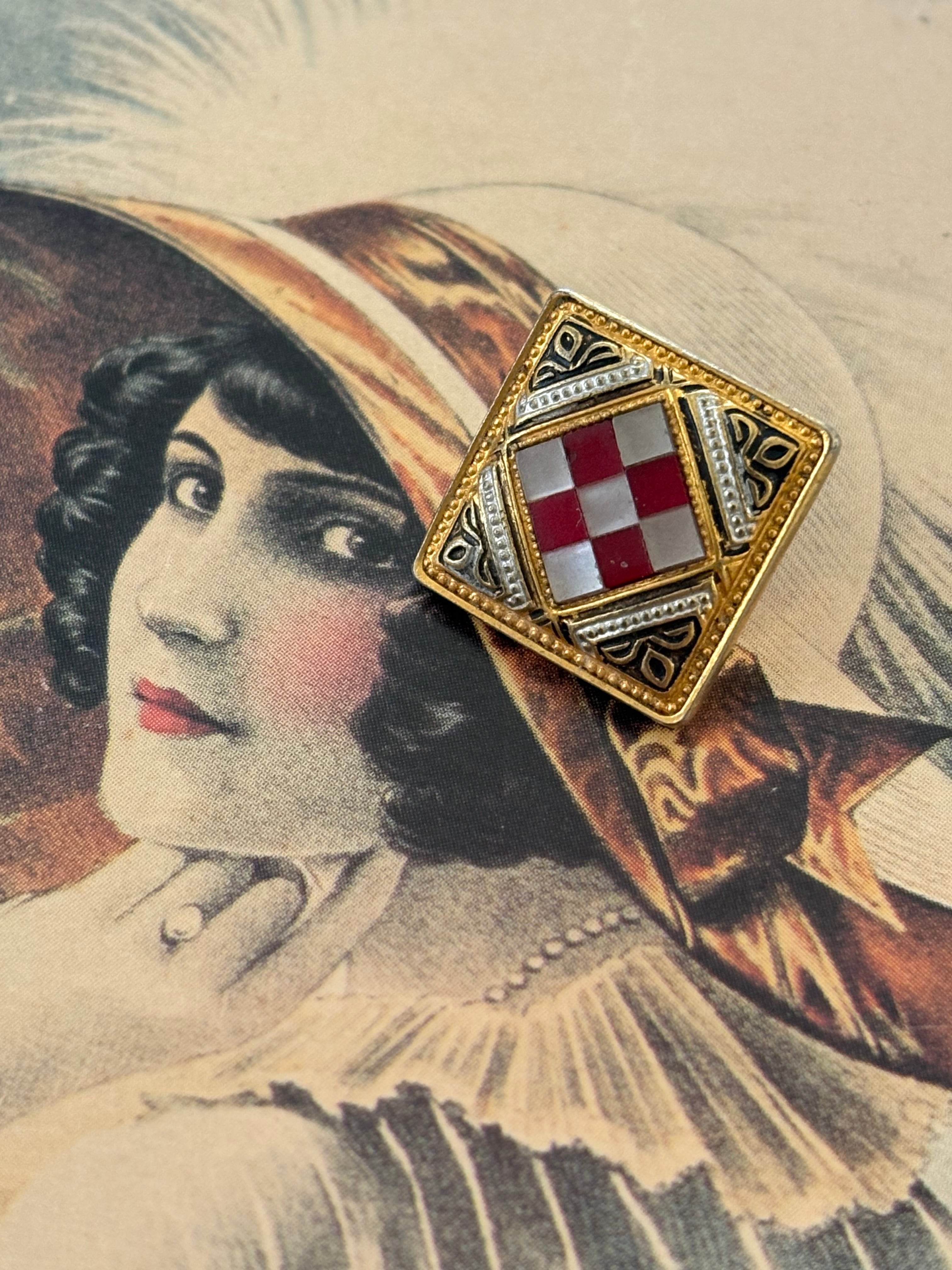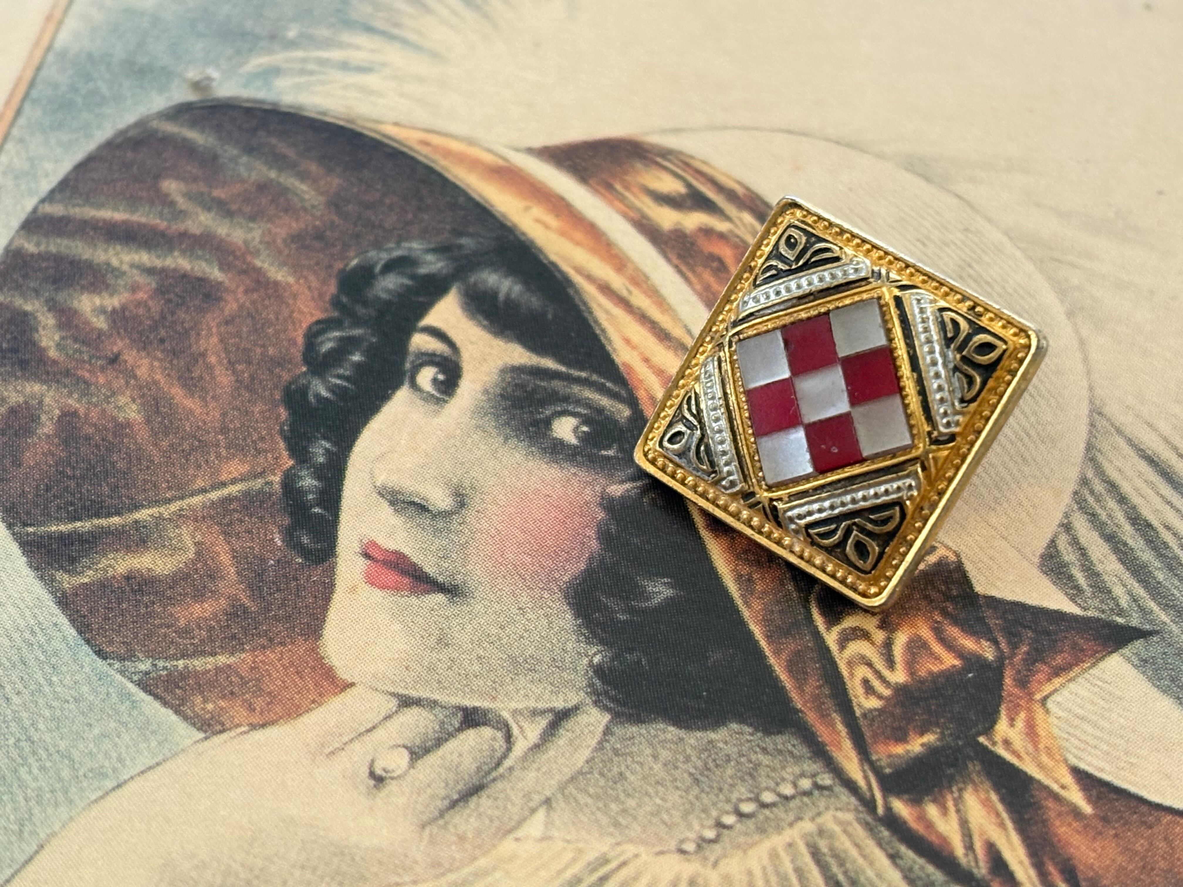 16mm フランス Vintageボタン メタルボタン スクウェアー型 格子 アクセサリーパーツ コレクション