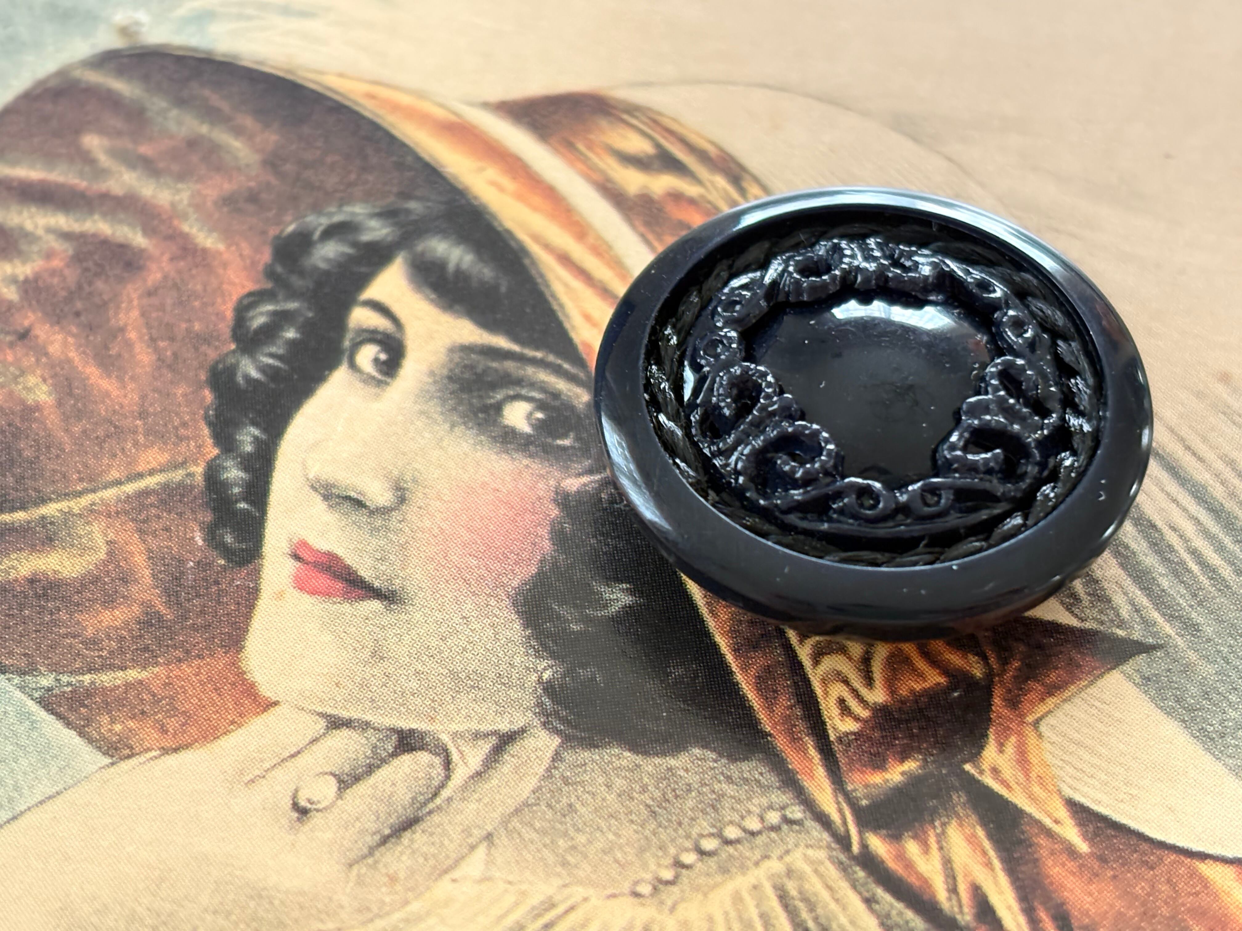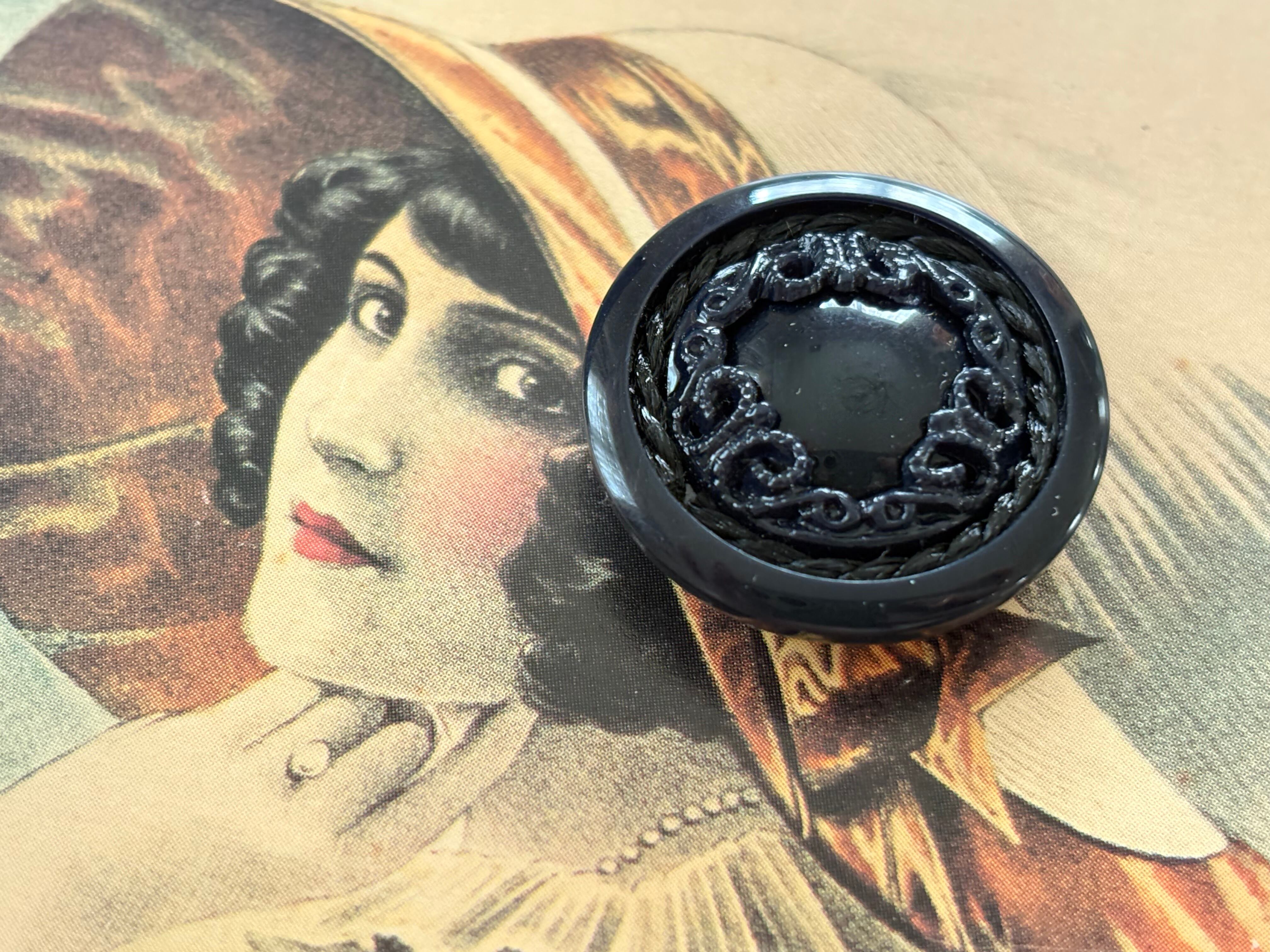 25mm Japanese Vintage ヴィンテージボタン プラスチック ブラック アクセサリーパーツ コレクション