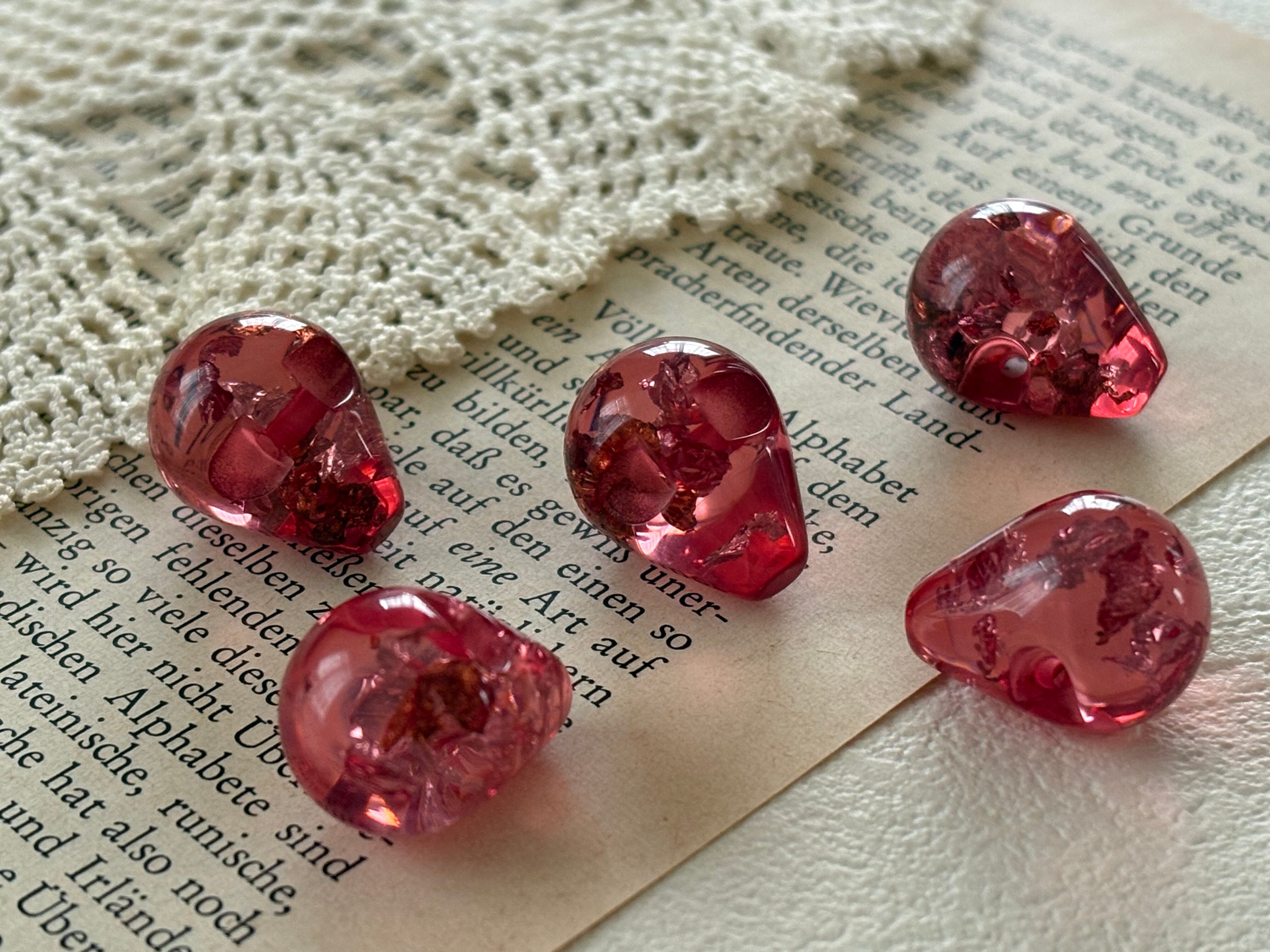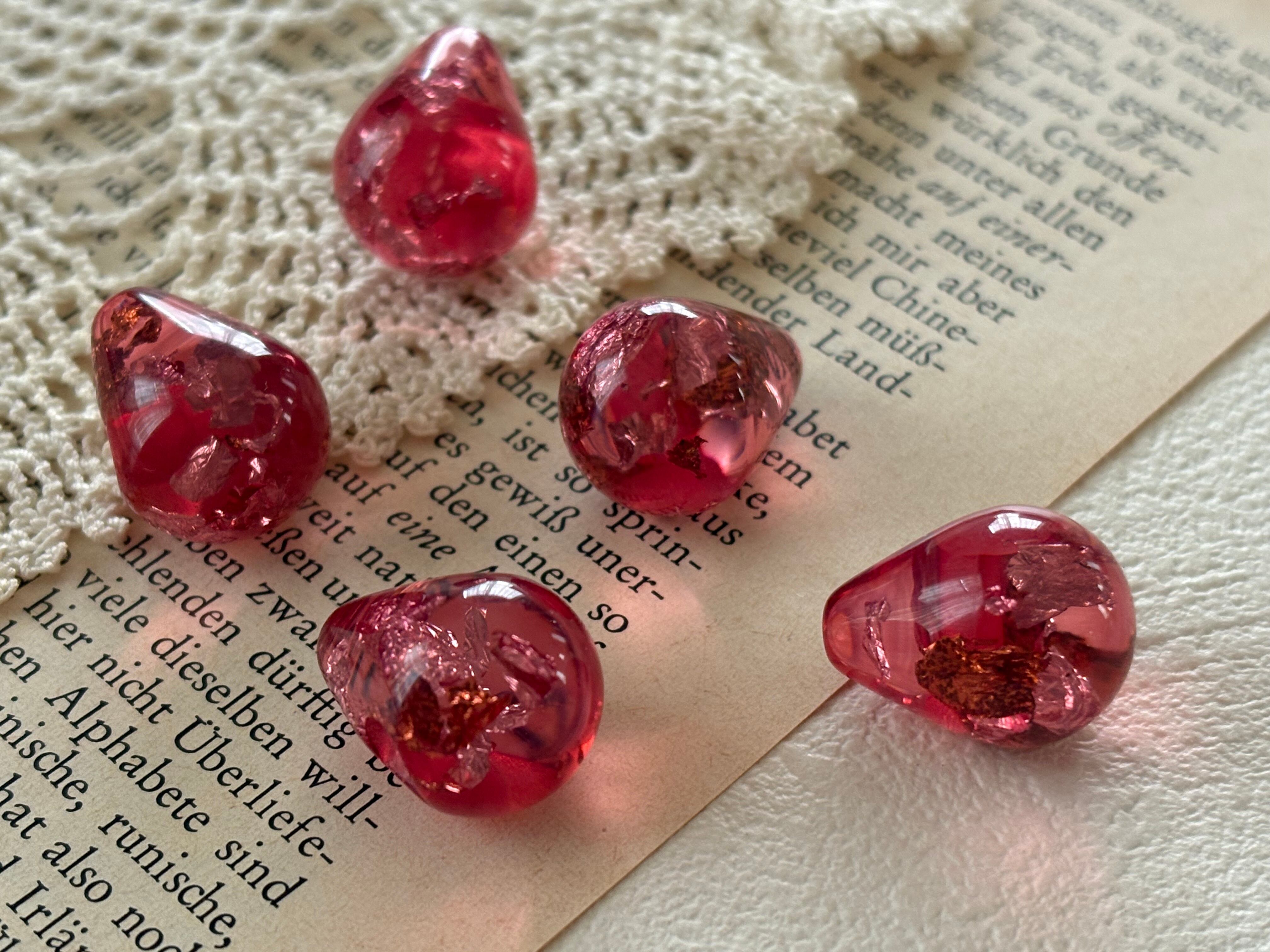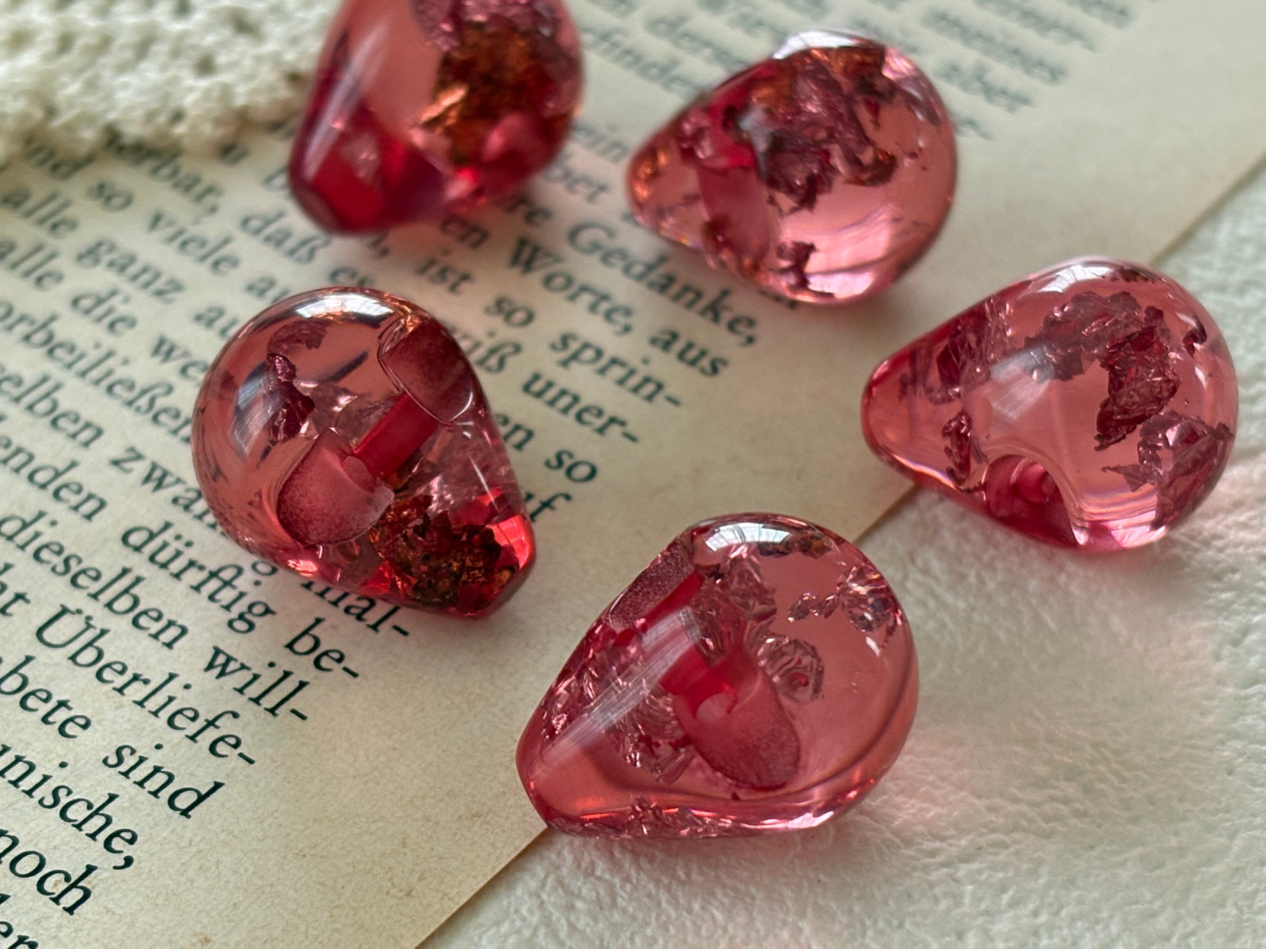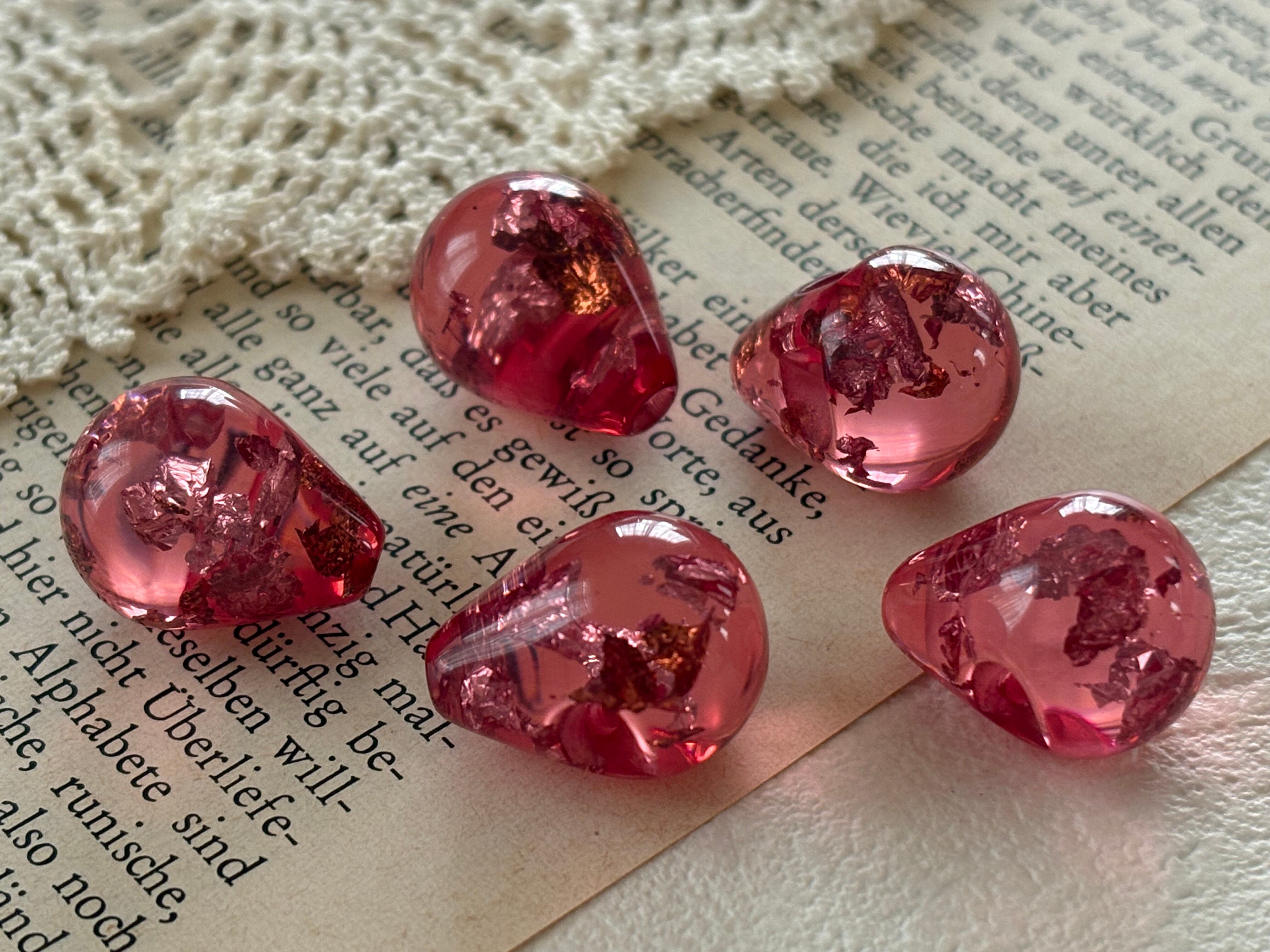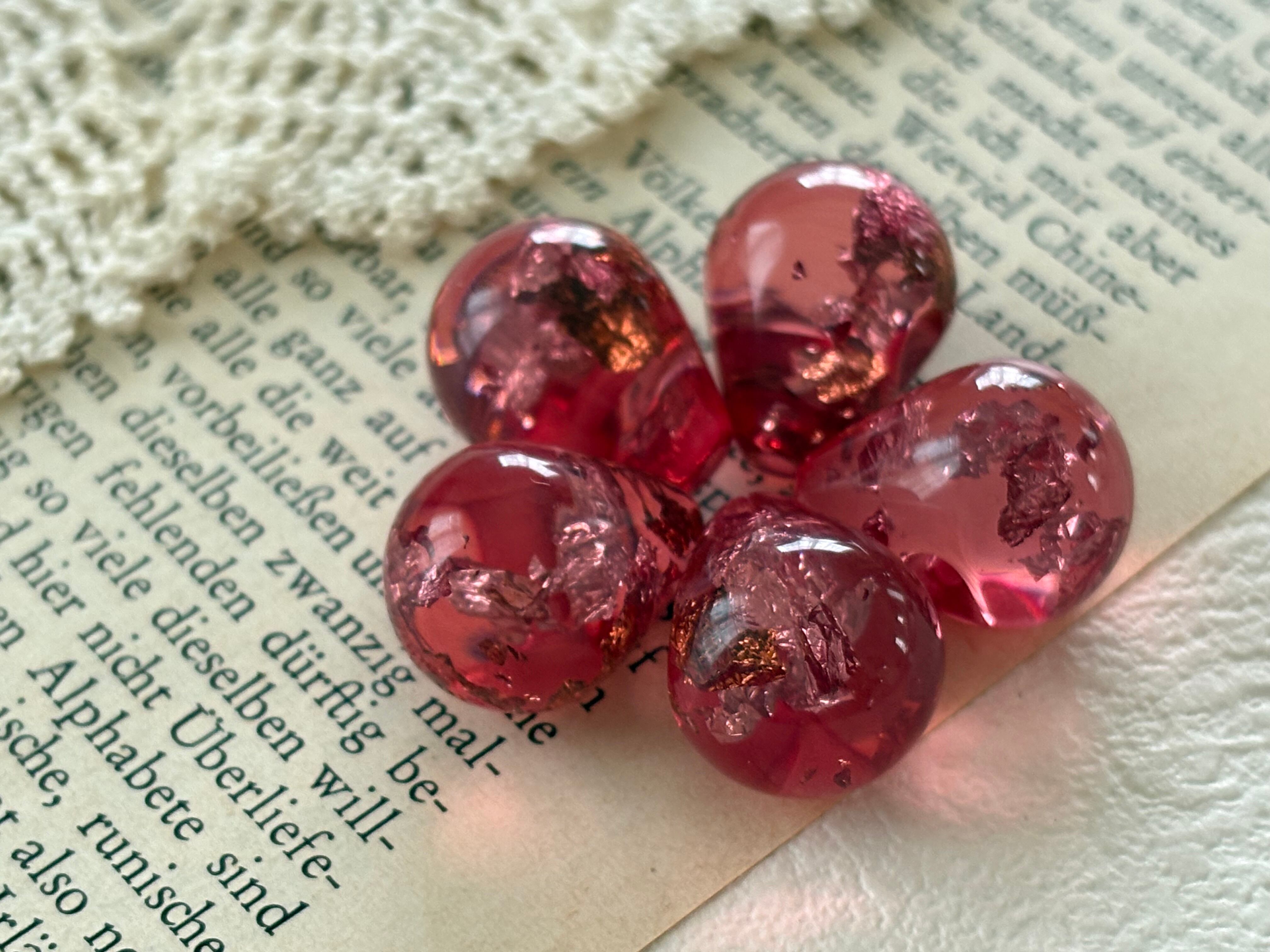17mm×14mm Japanese ヴィンテージボタン ドロップ型 ピンク系 クリア 箔 レトロ アクセサリーパーツ 装飾材 カルトナージュ