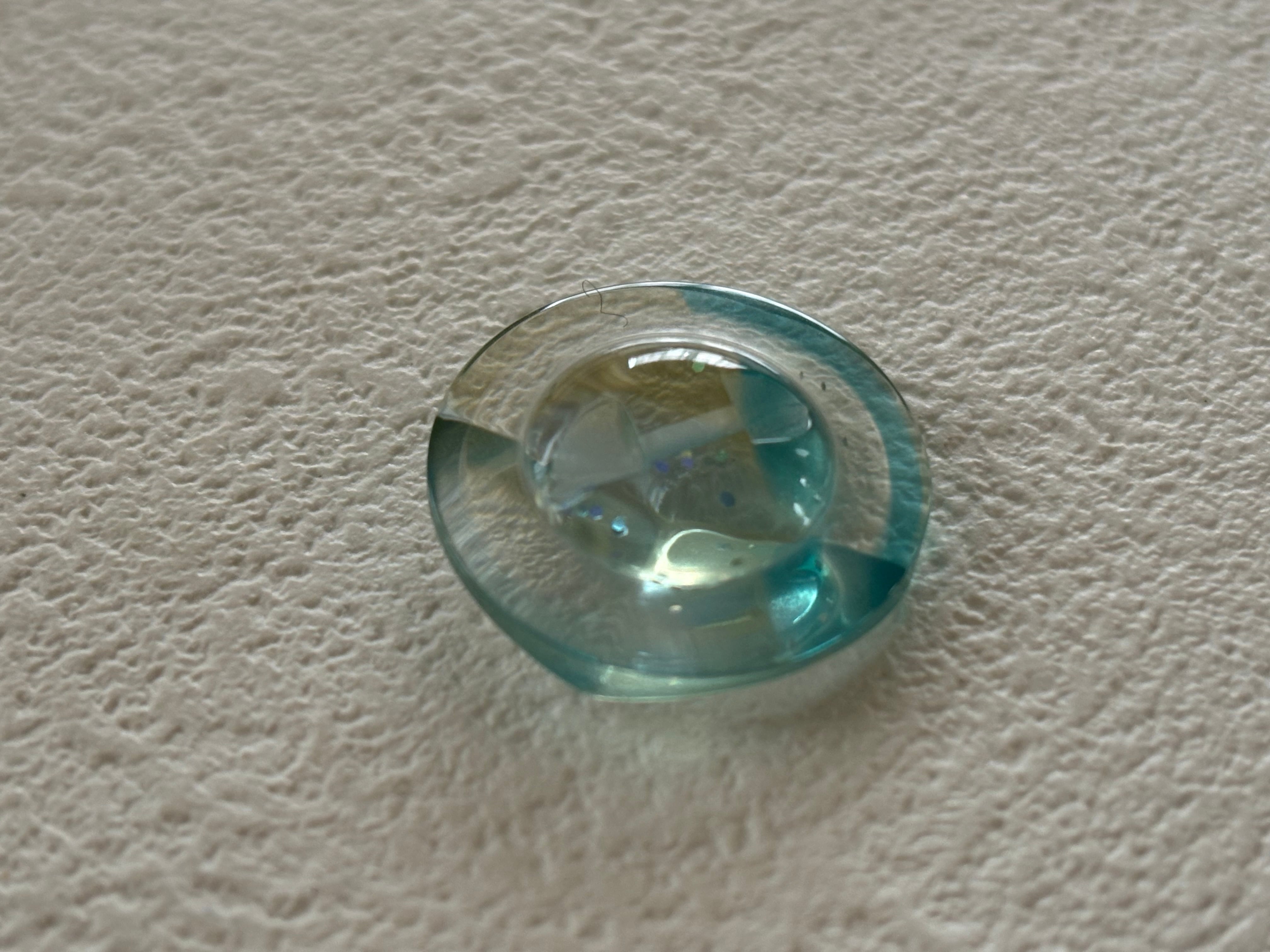 フラットではなく画像のようにカットが施されていますので光に当たるとガラス、氷のように美しく輝きます。