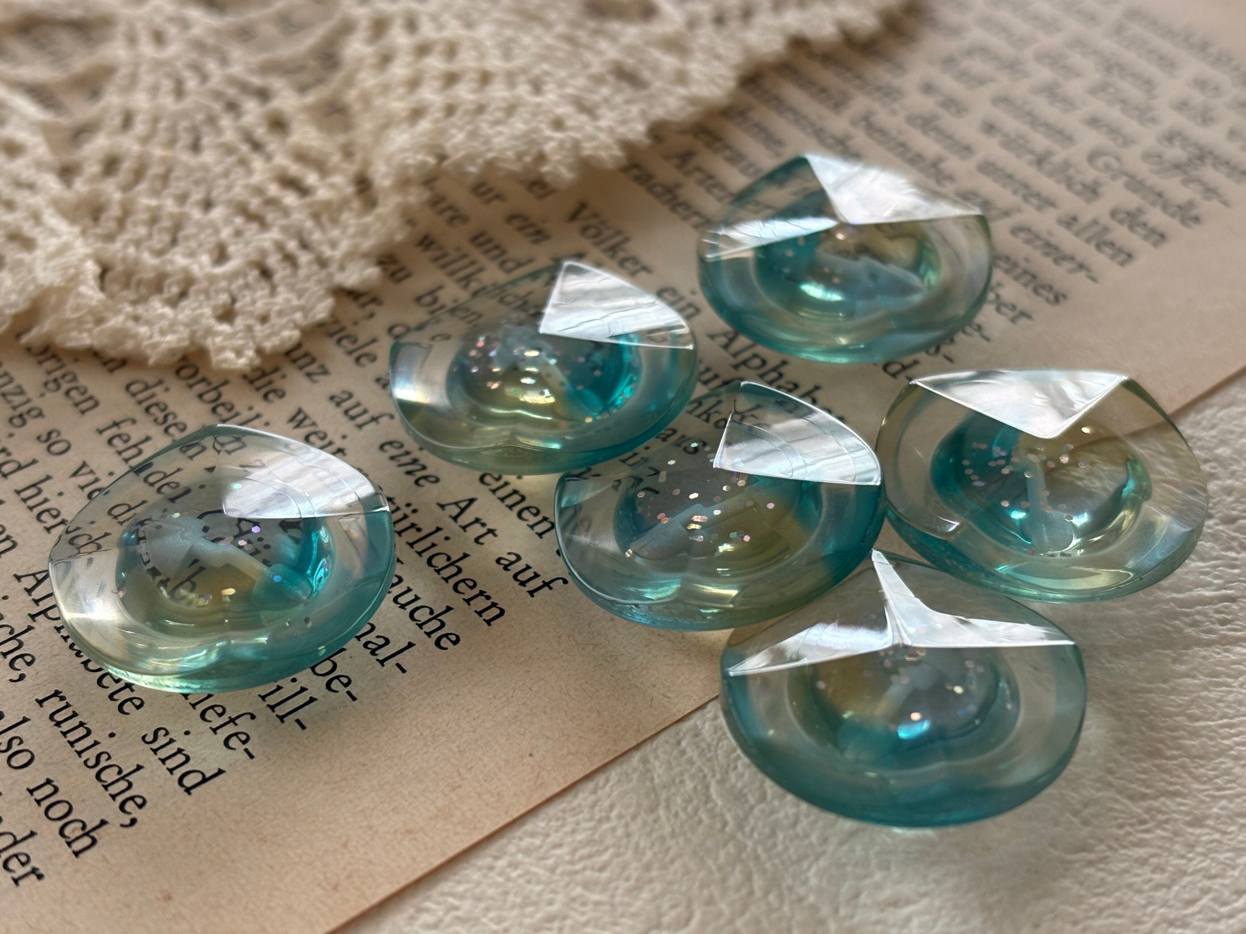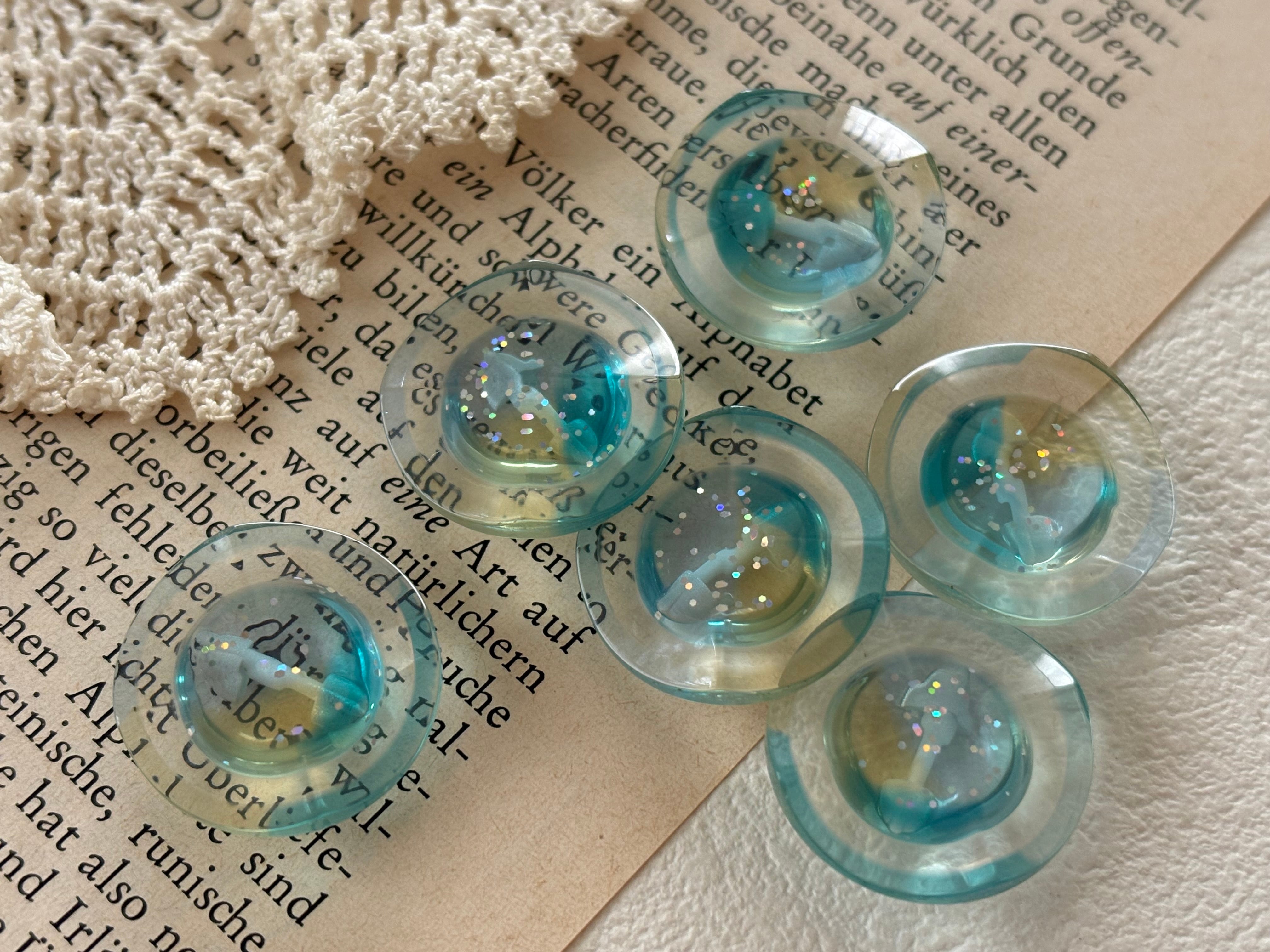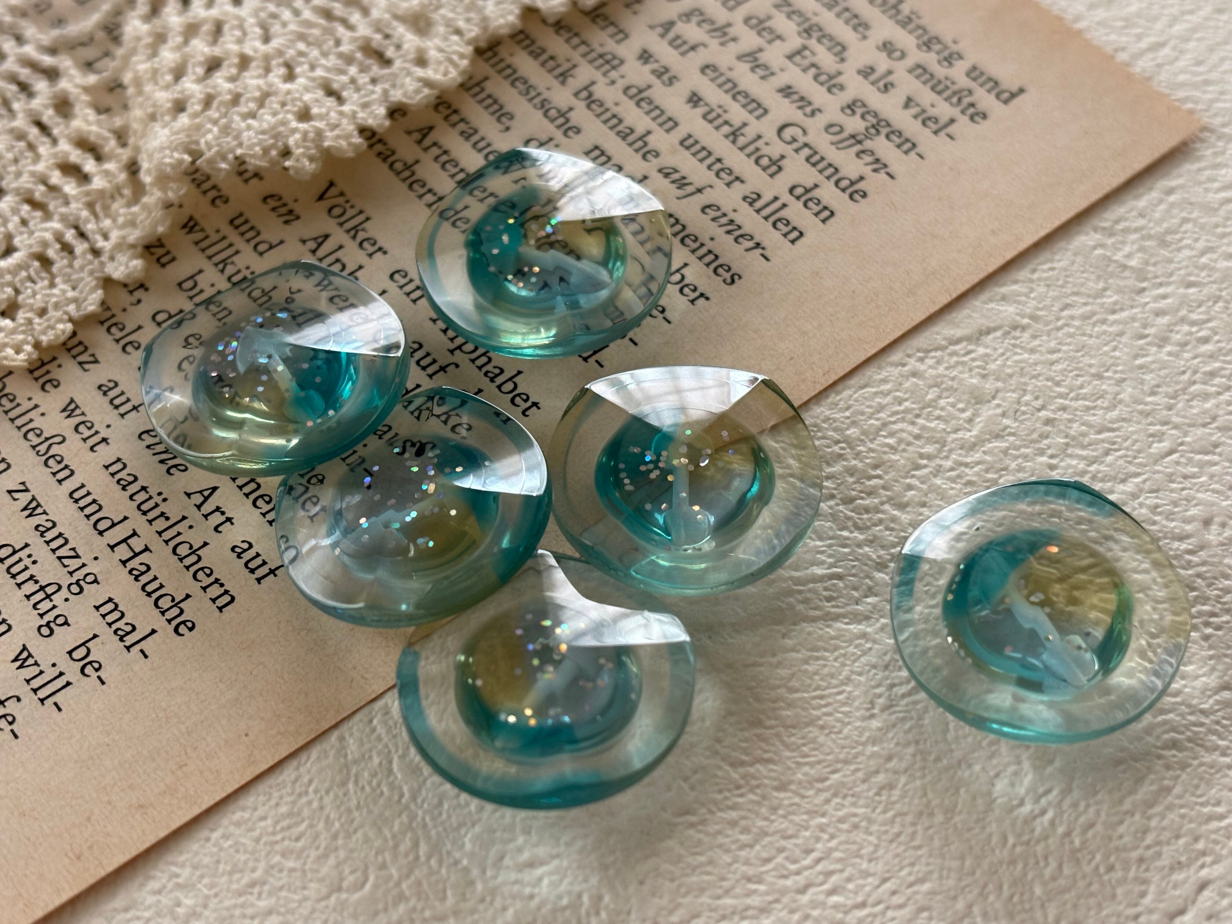 20mm Japanese ヴィンテージボタン ラムネブルー グリッター 樹脂ボタン レトロ アクセサリーパーツ 装飾材 カルトナージュ