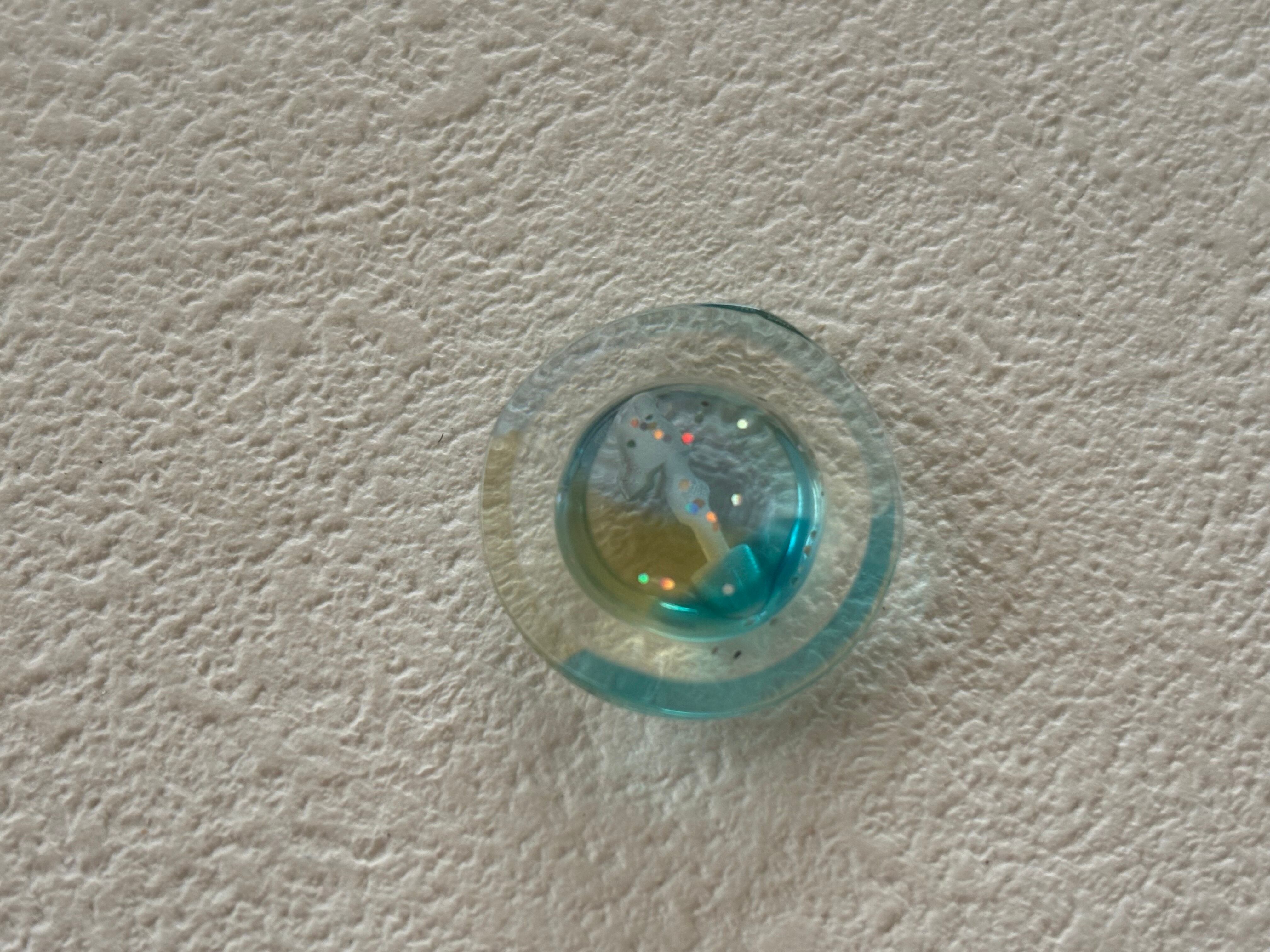 クリアカラーにラムネブルーのキャンディーのようなレトロ可愛いボタンです。