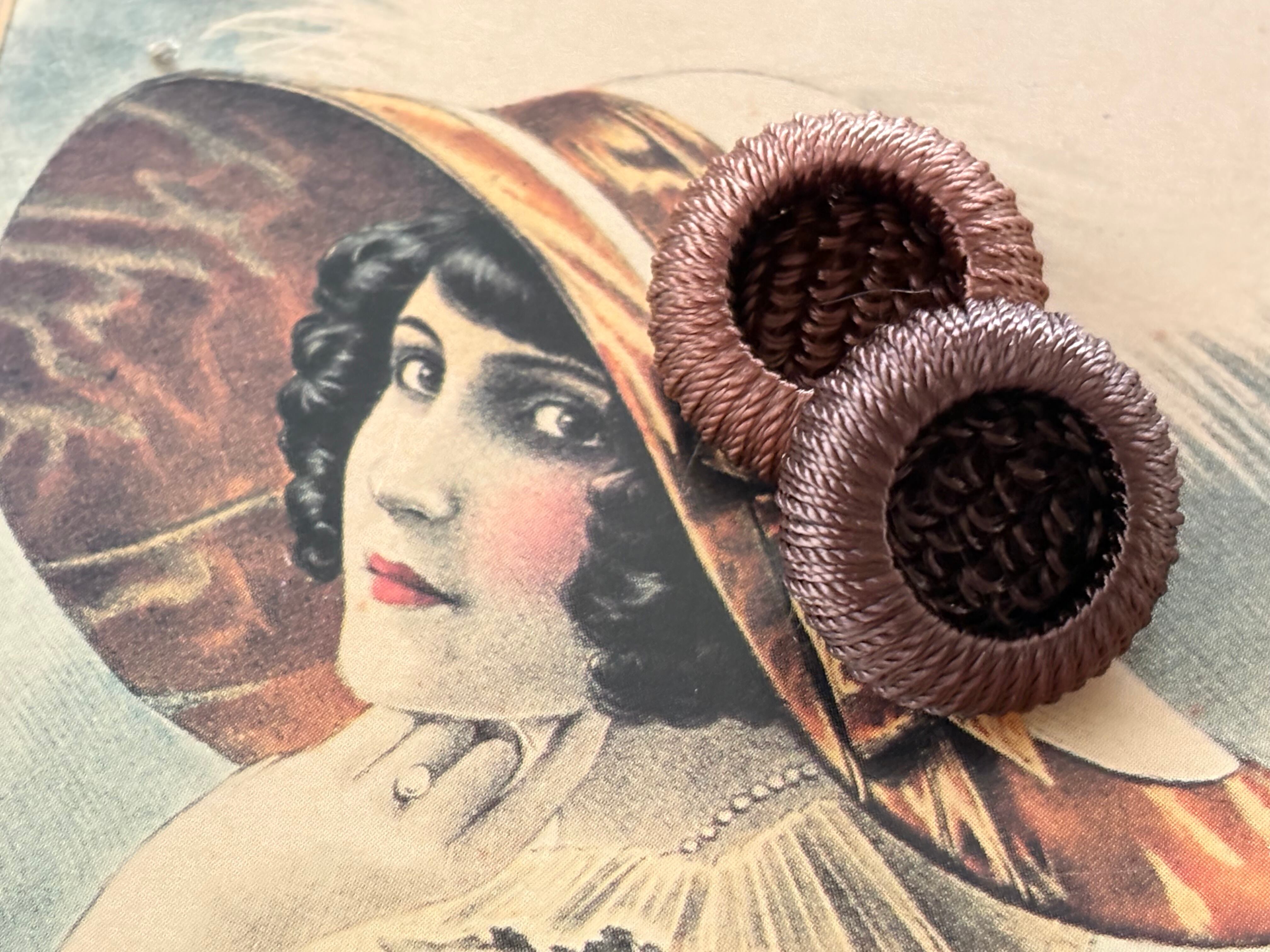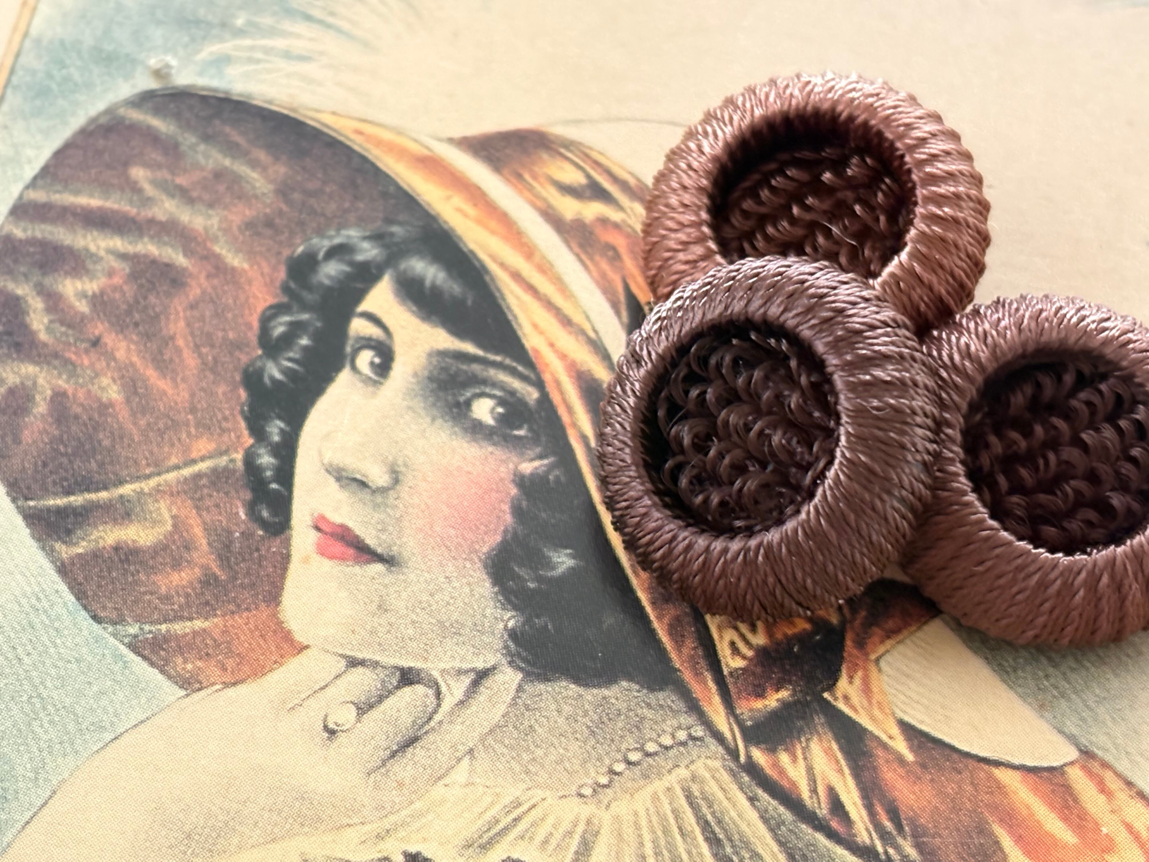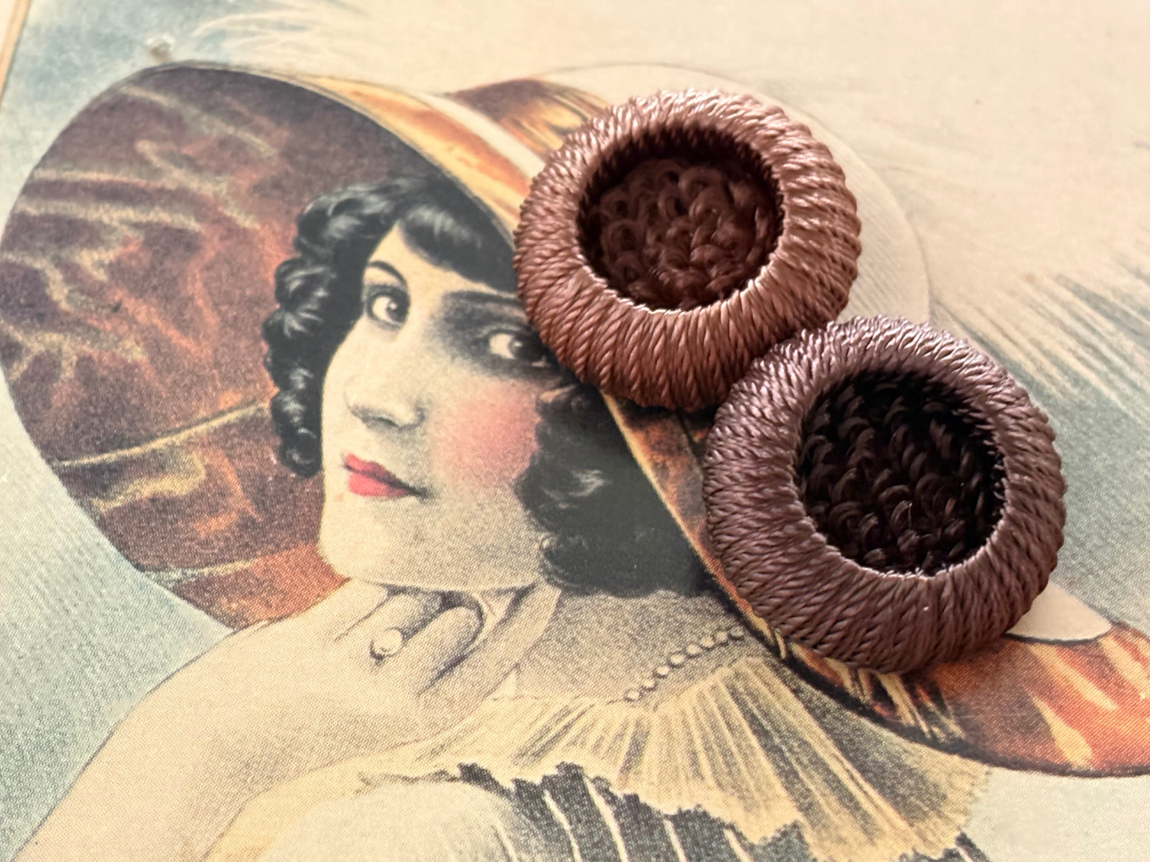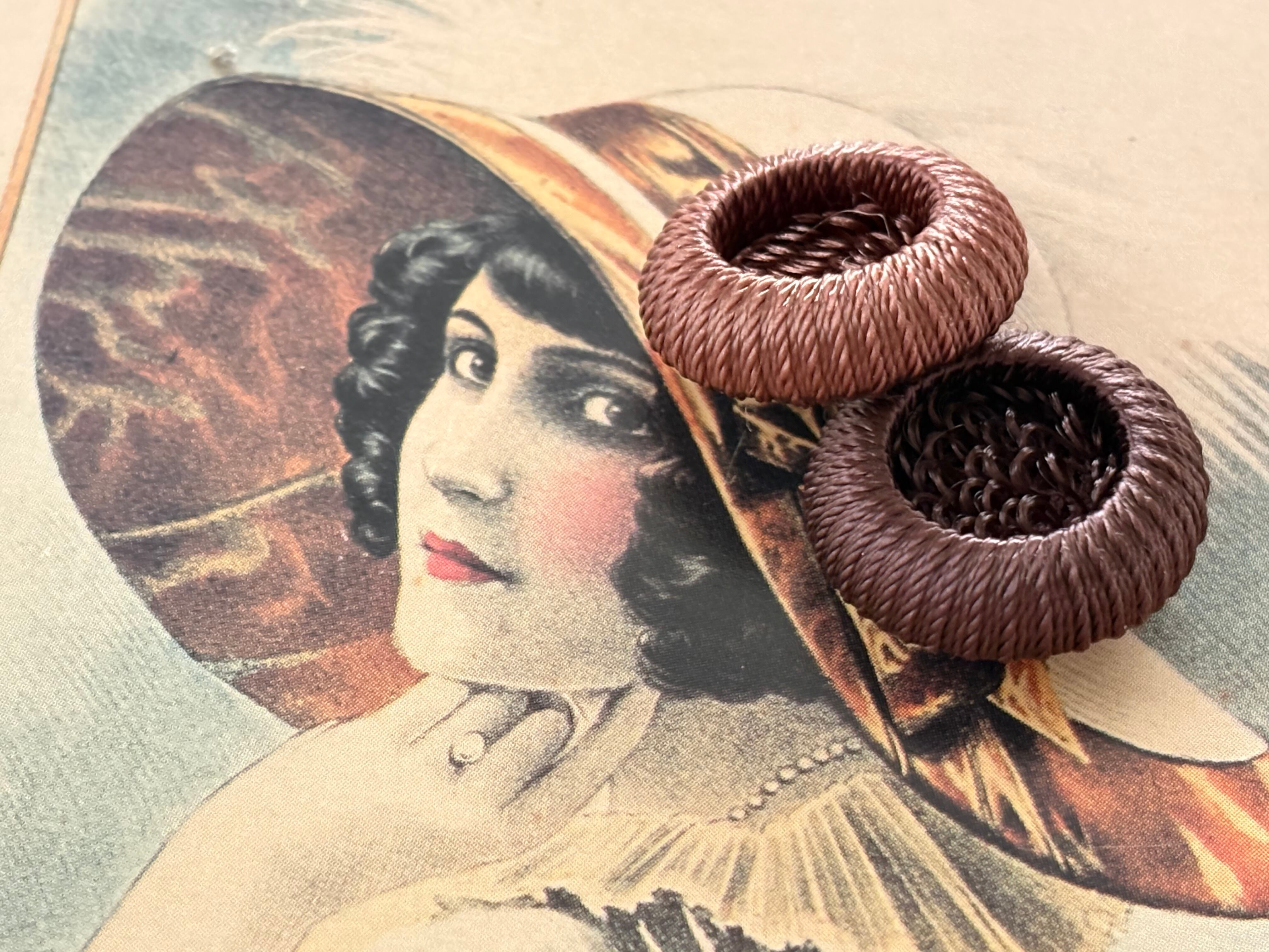 20mm Japanese ヴィンテージボタン コードボタン ライトブラウン/ダークブラウン デッドストック アクセサリーパーツ 装飾材 カルトナージュ
