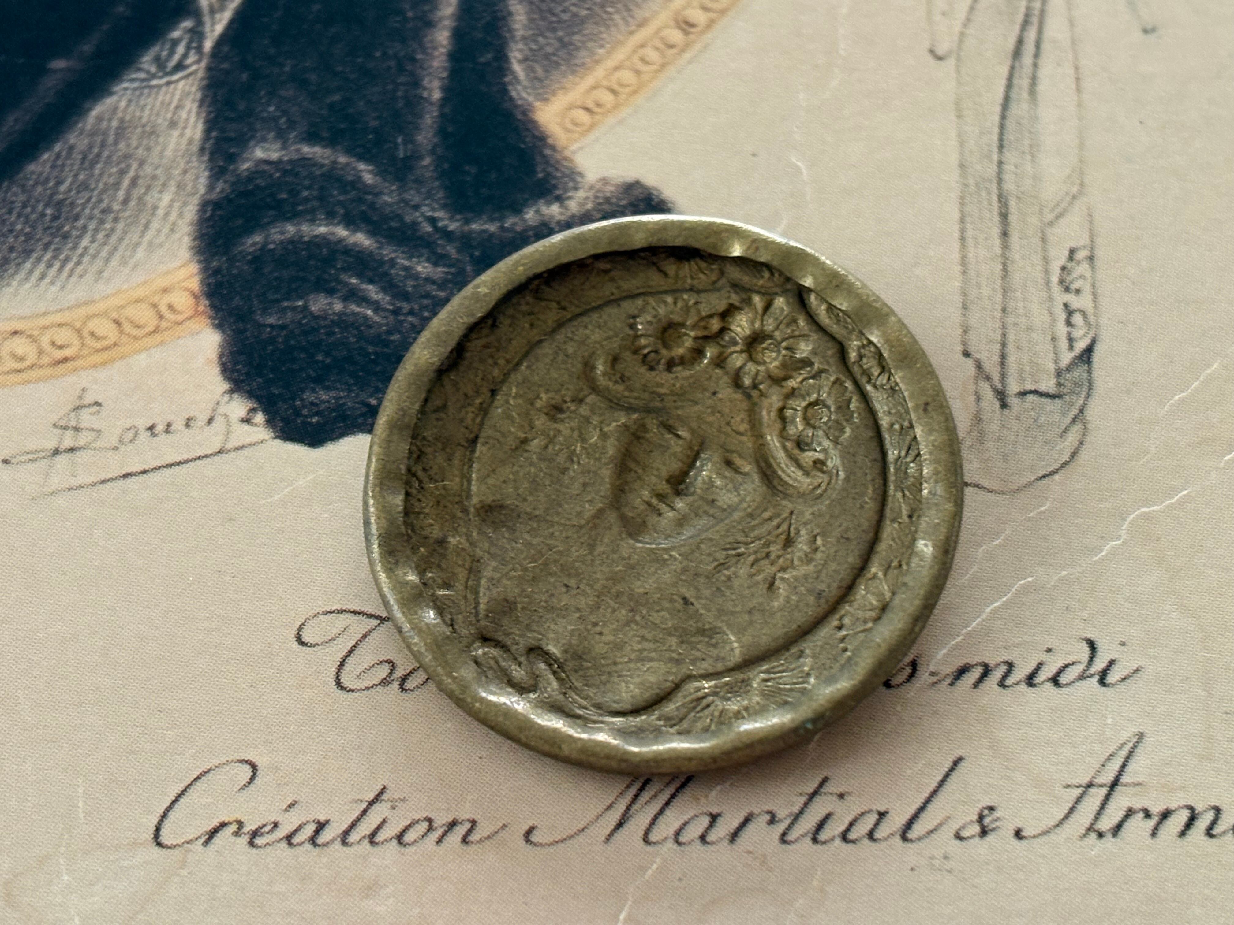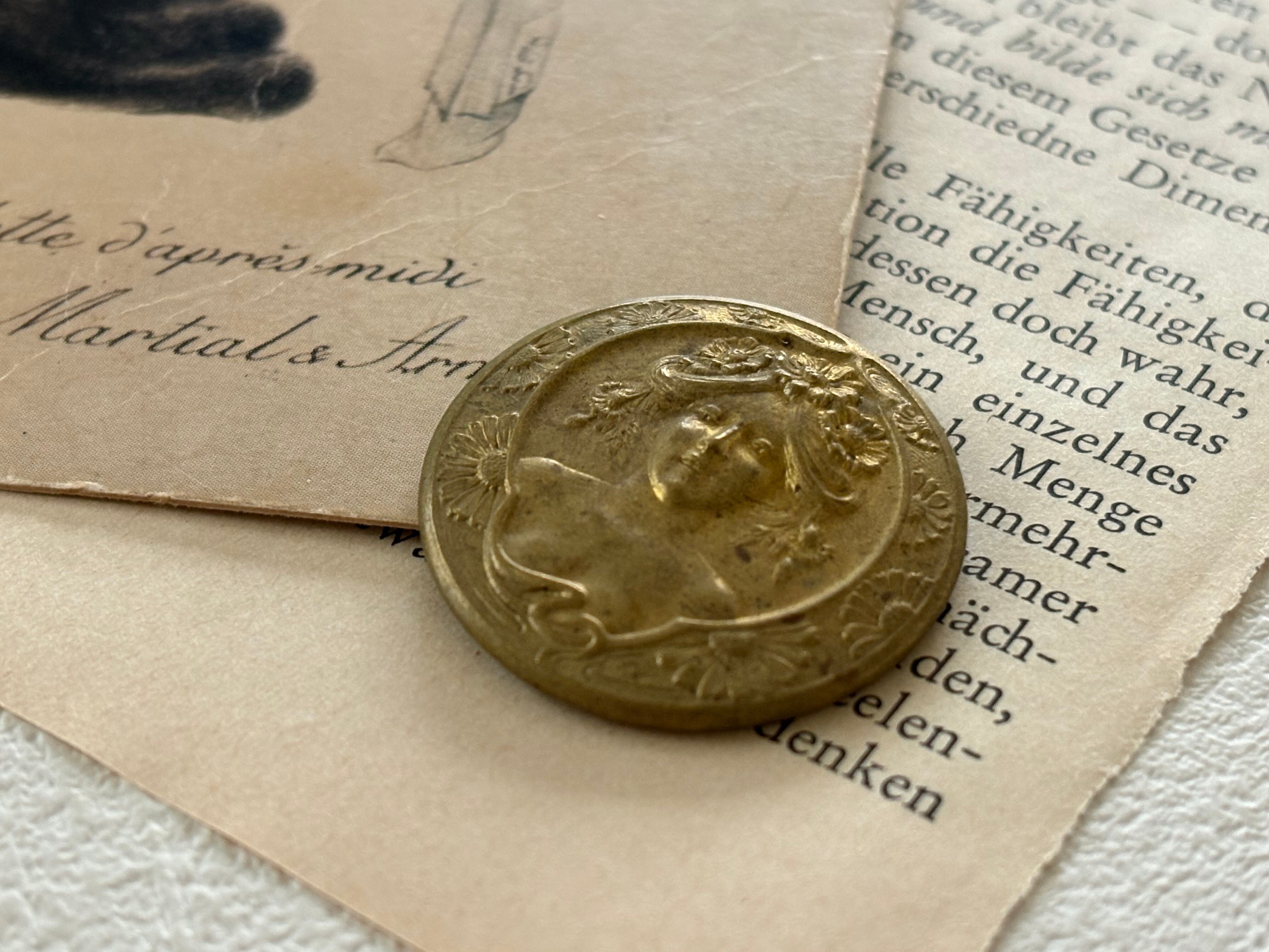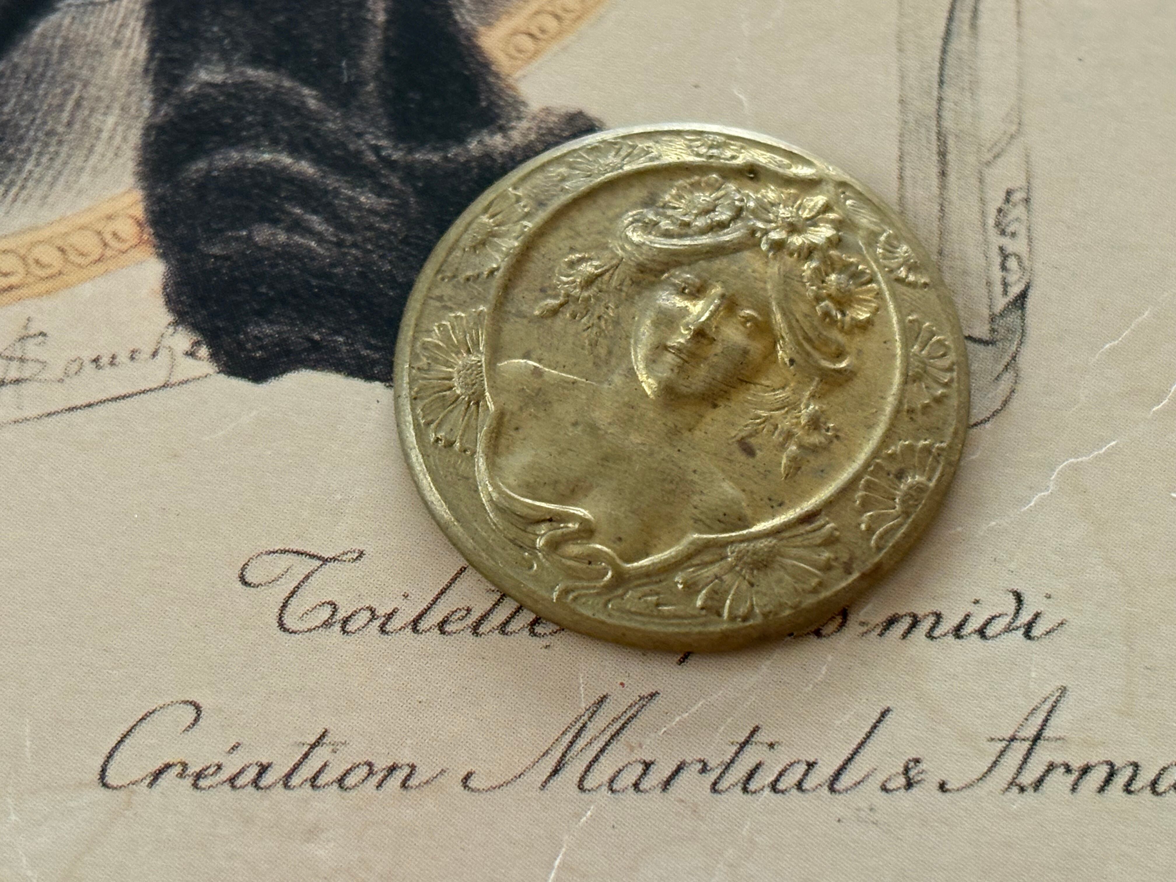 フランスアンティーク ブラス製パーツ マダム 正面 アール・ヌーヴォー スタンピングパーツ 真鍮 27mm アクセサリーパーツ デコレーション材 撮影小物