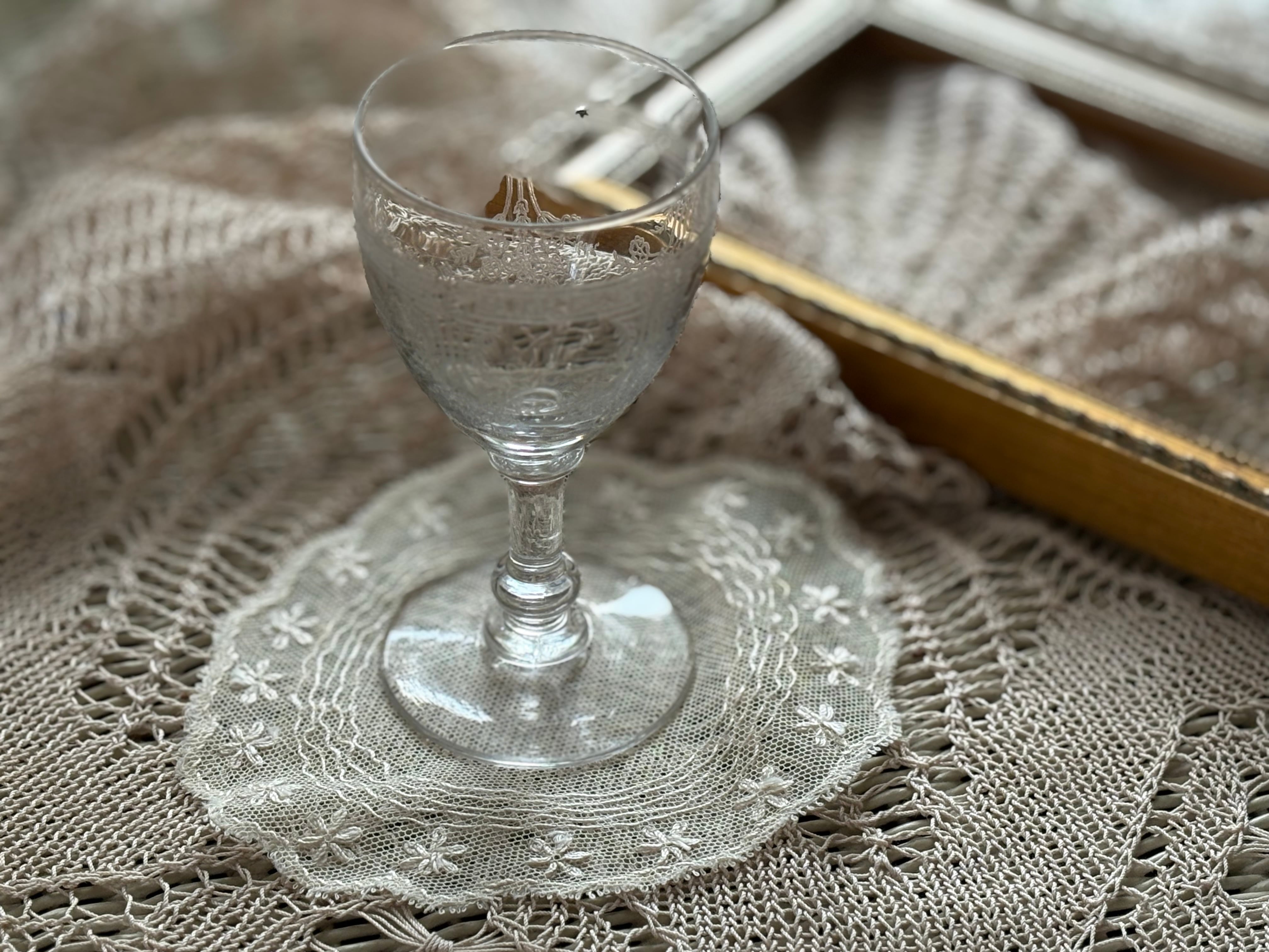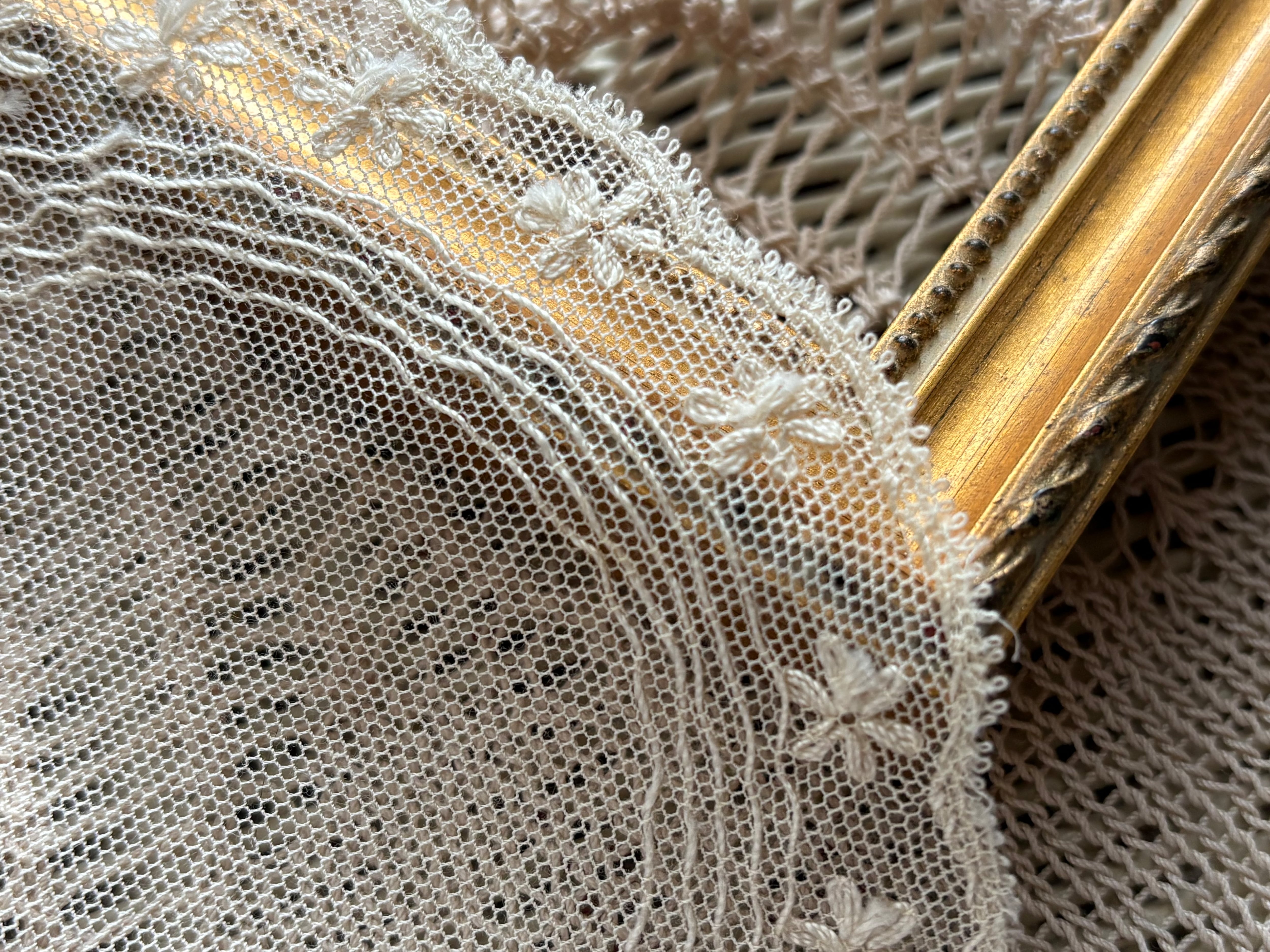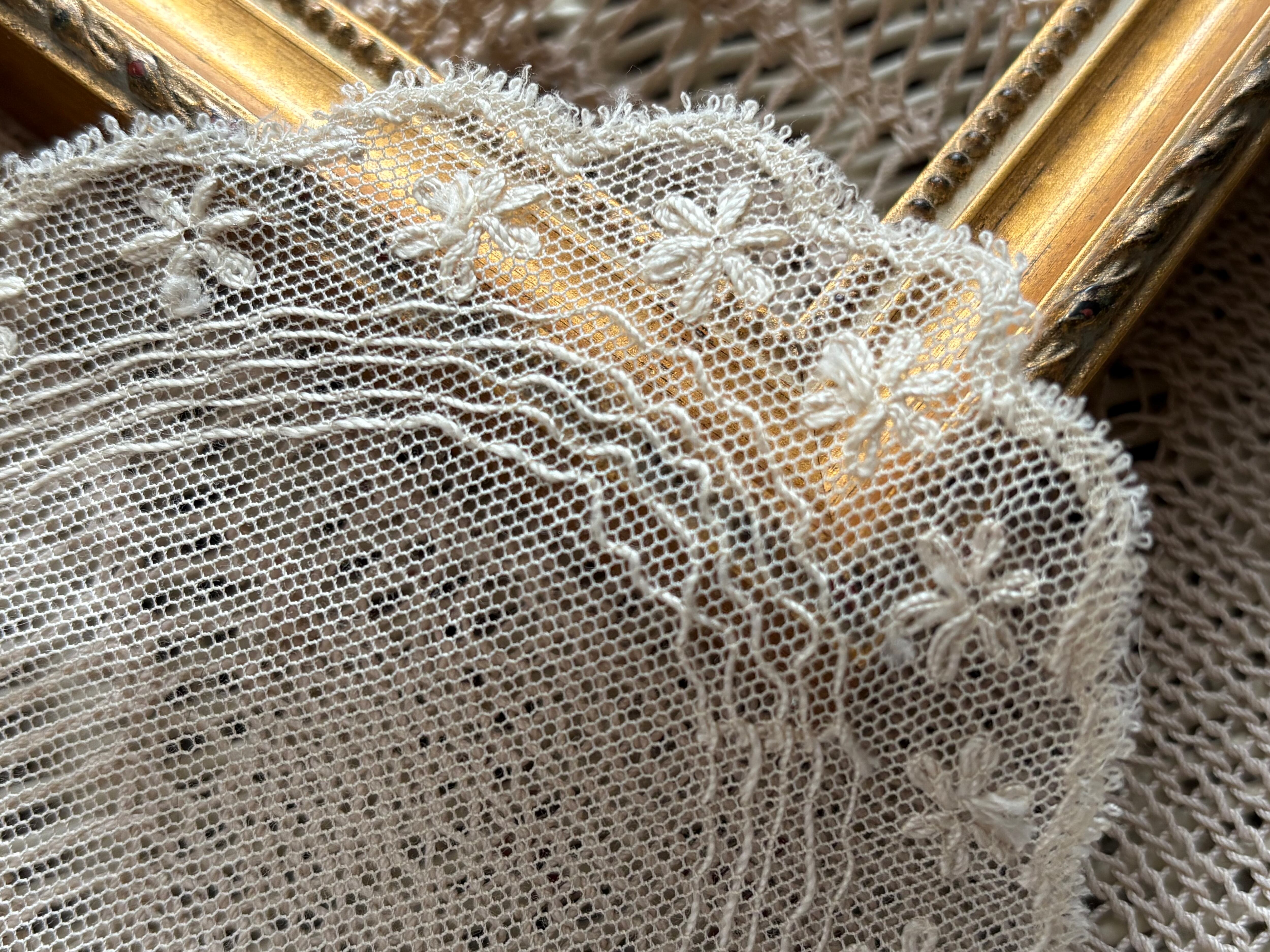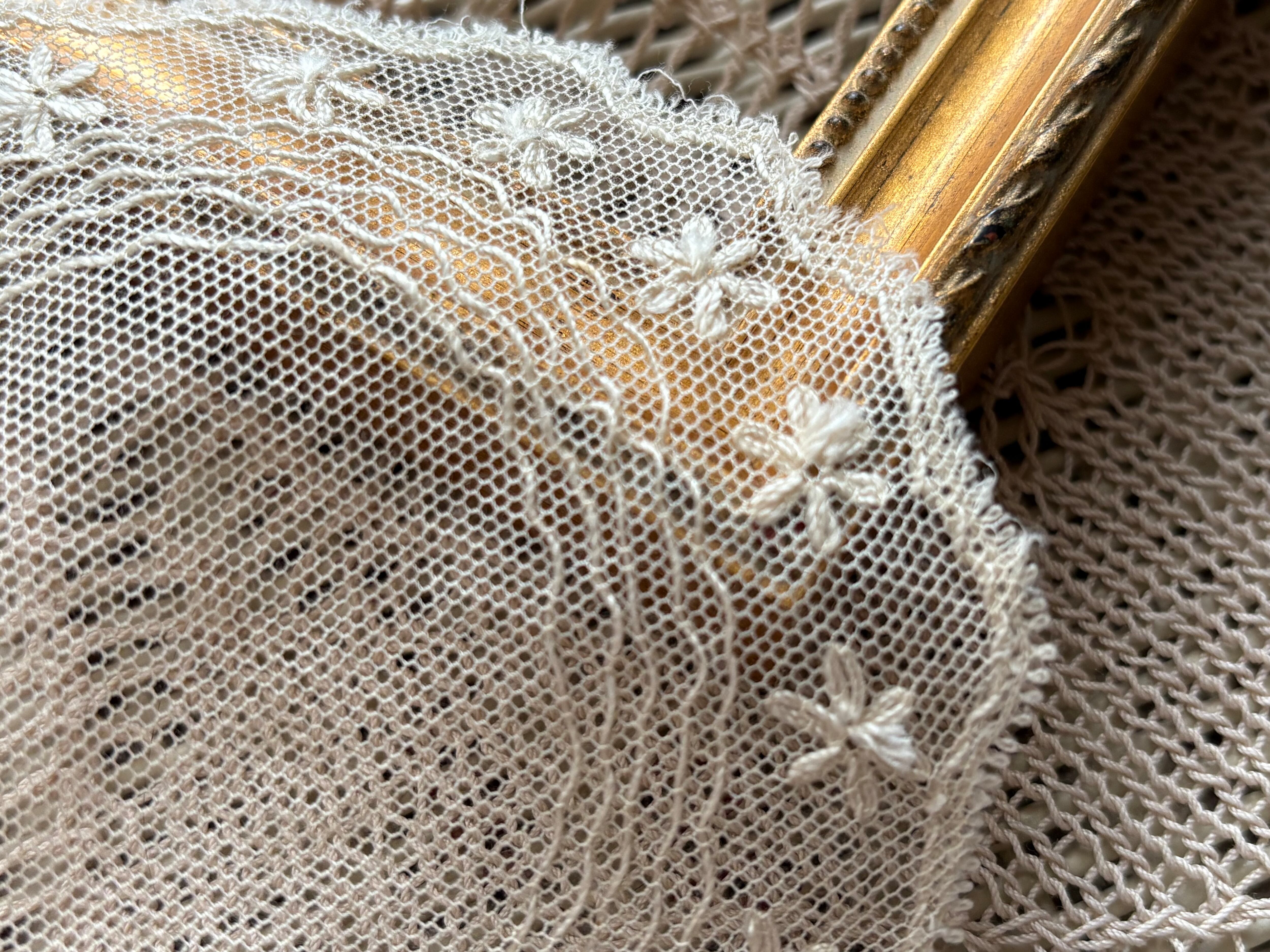 エクリュカラーと時を経た風合いが大変美しく、繊細でエレガントなドイリーです。