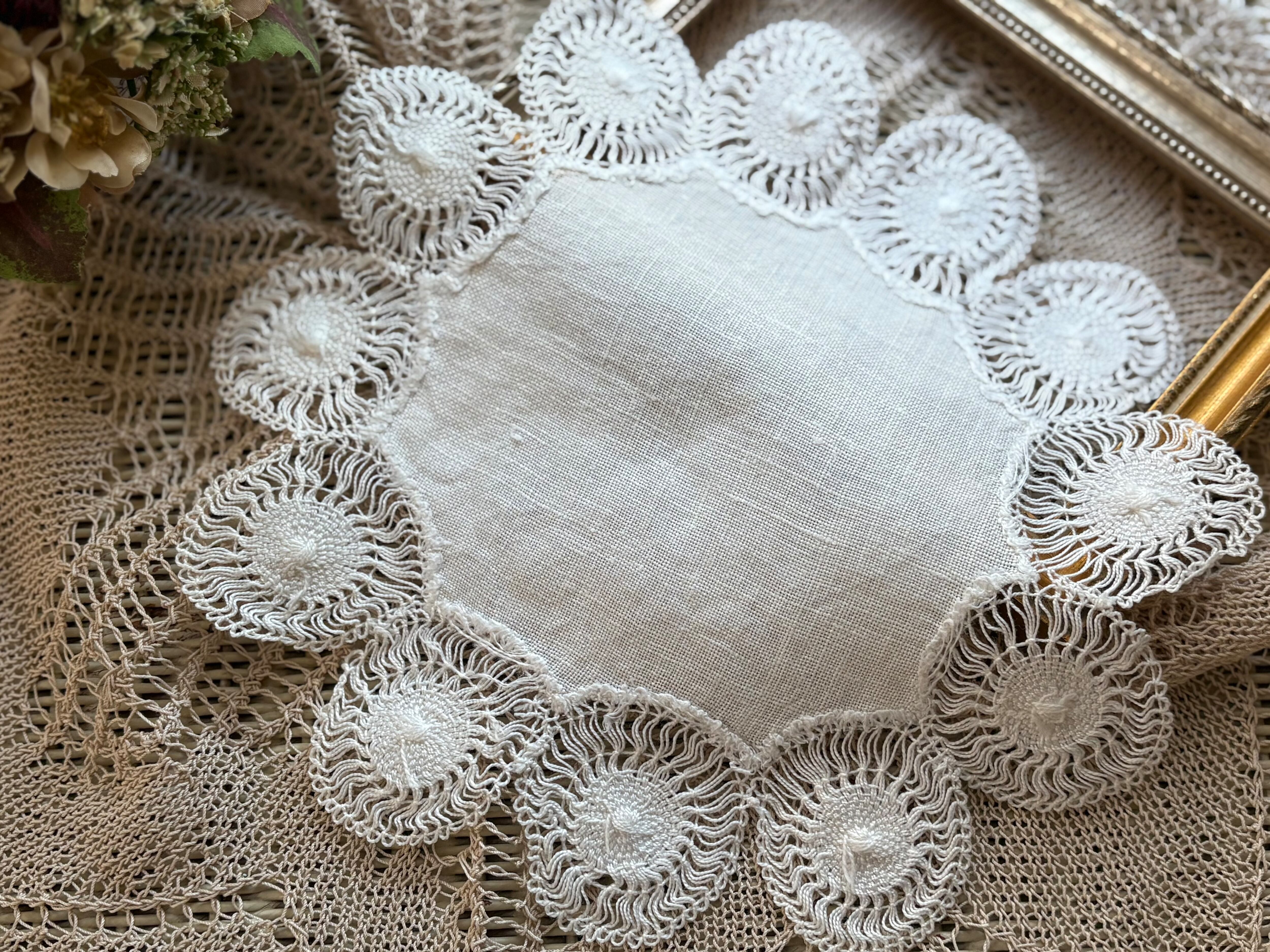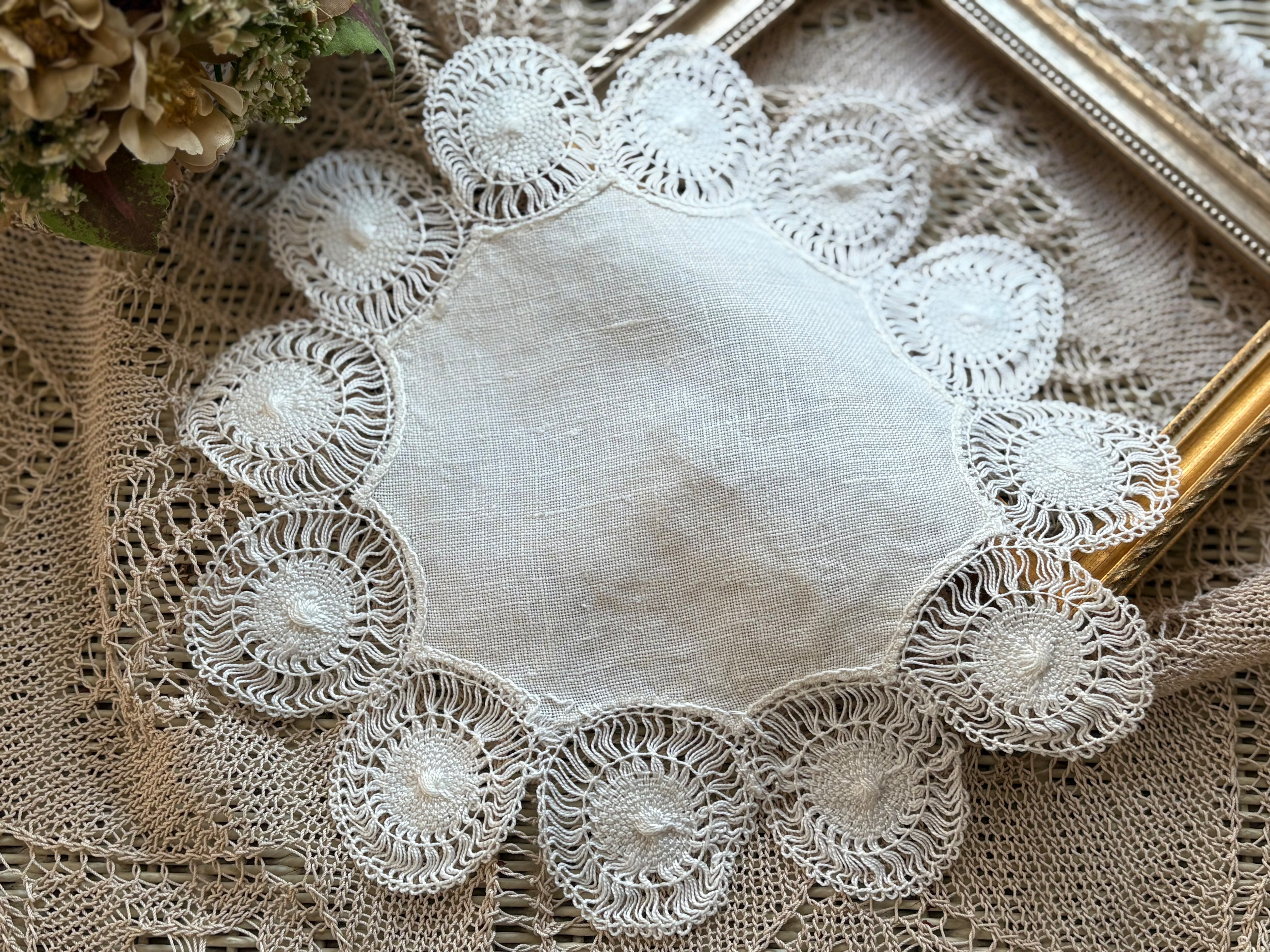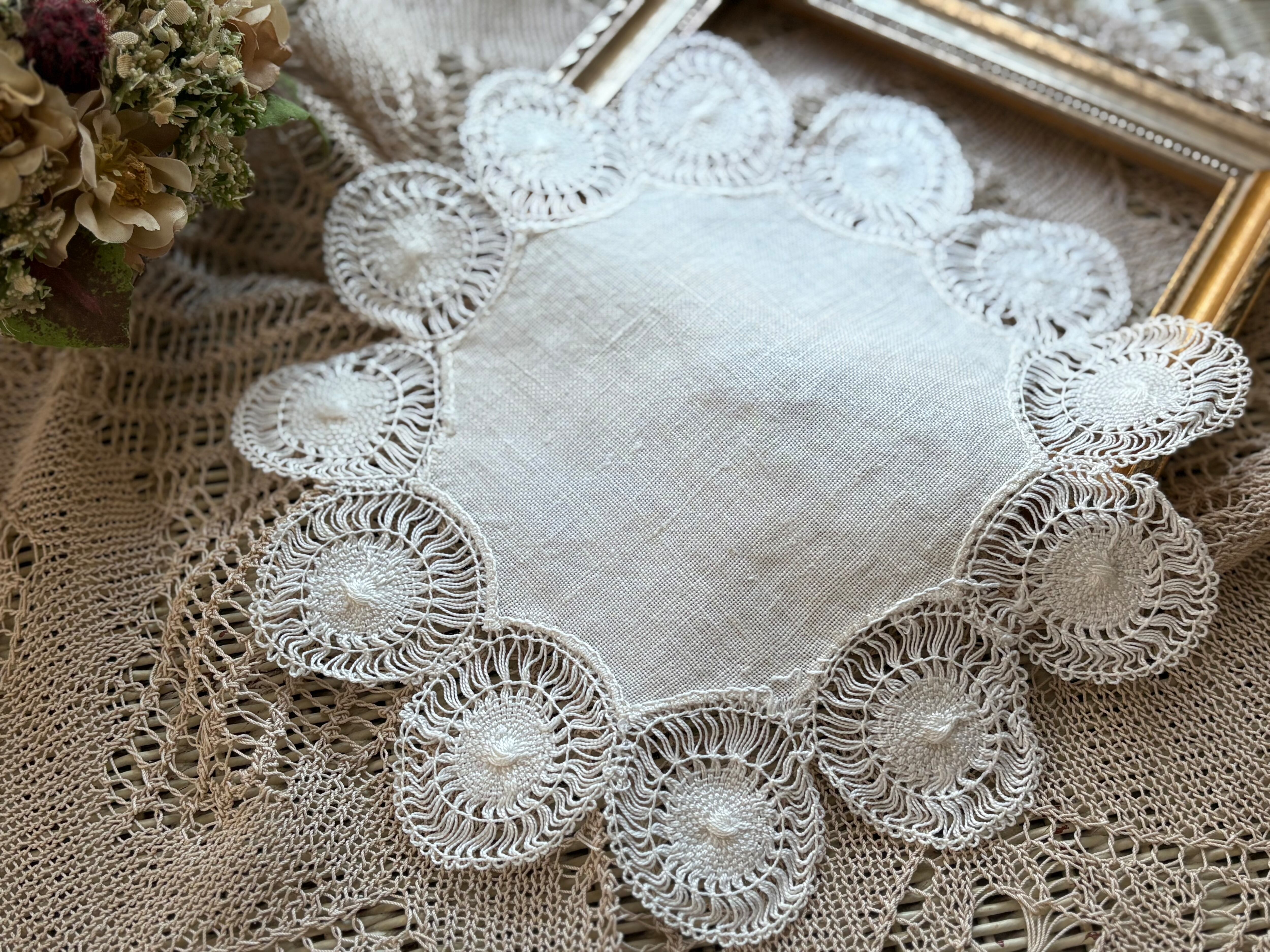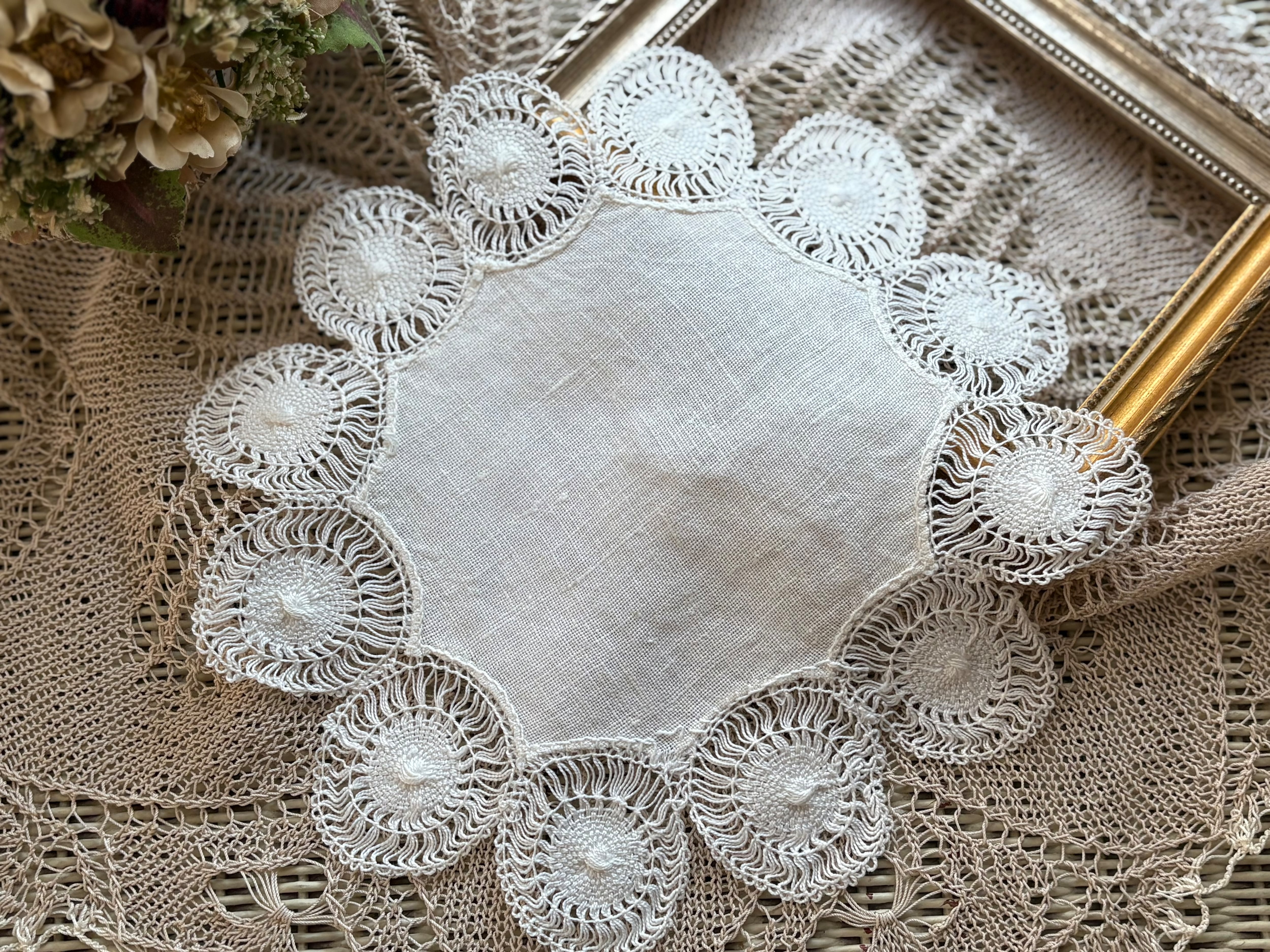 フランス アンティーク ドイリー ヘアピンレース 23.6cm リネン 敷物 インテリア ハンドメイド素材 撮影小物