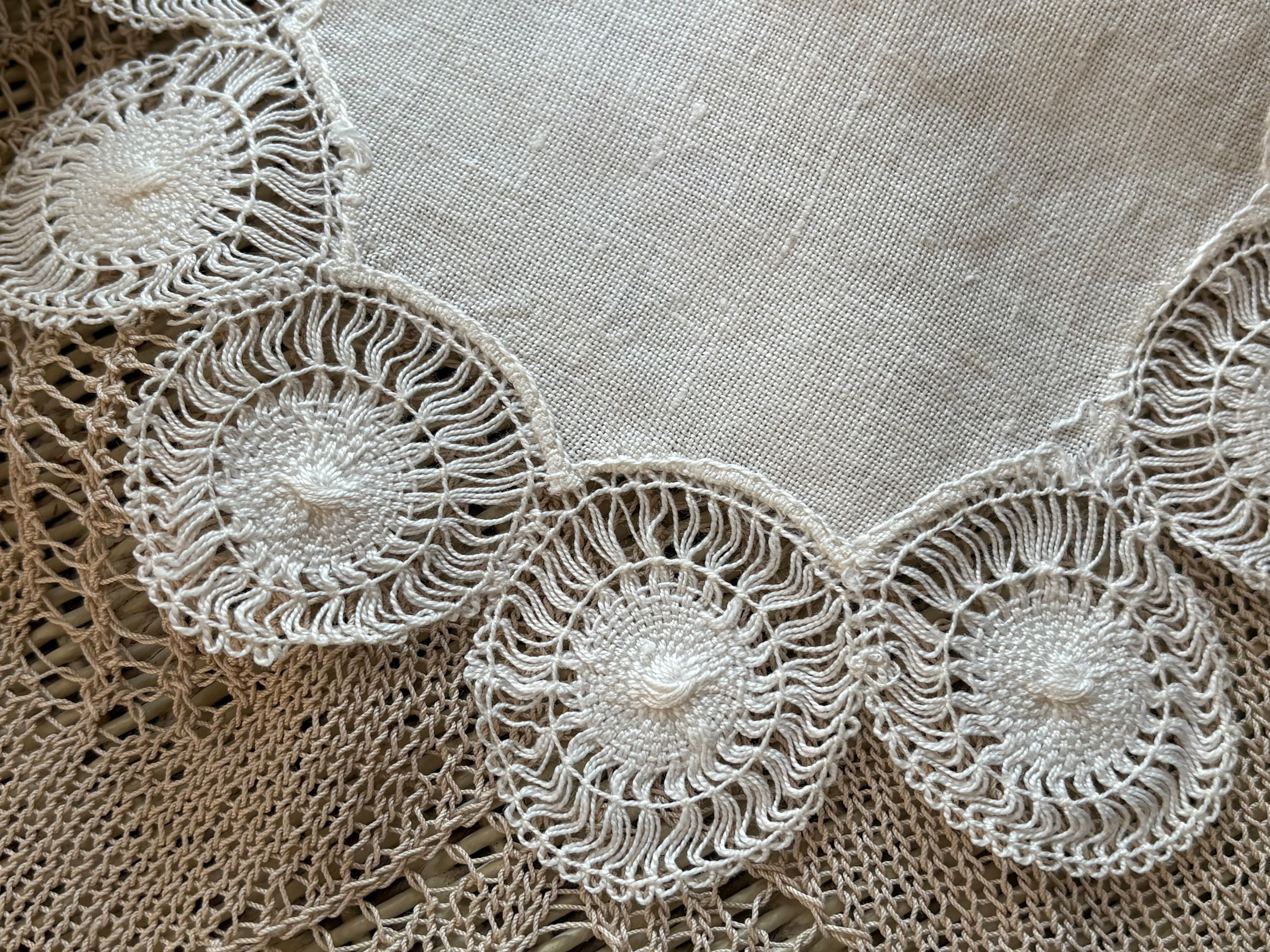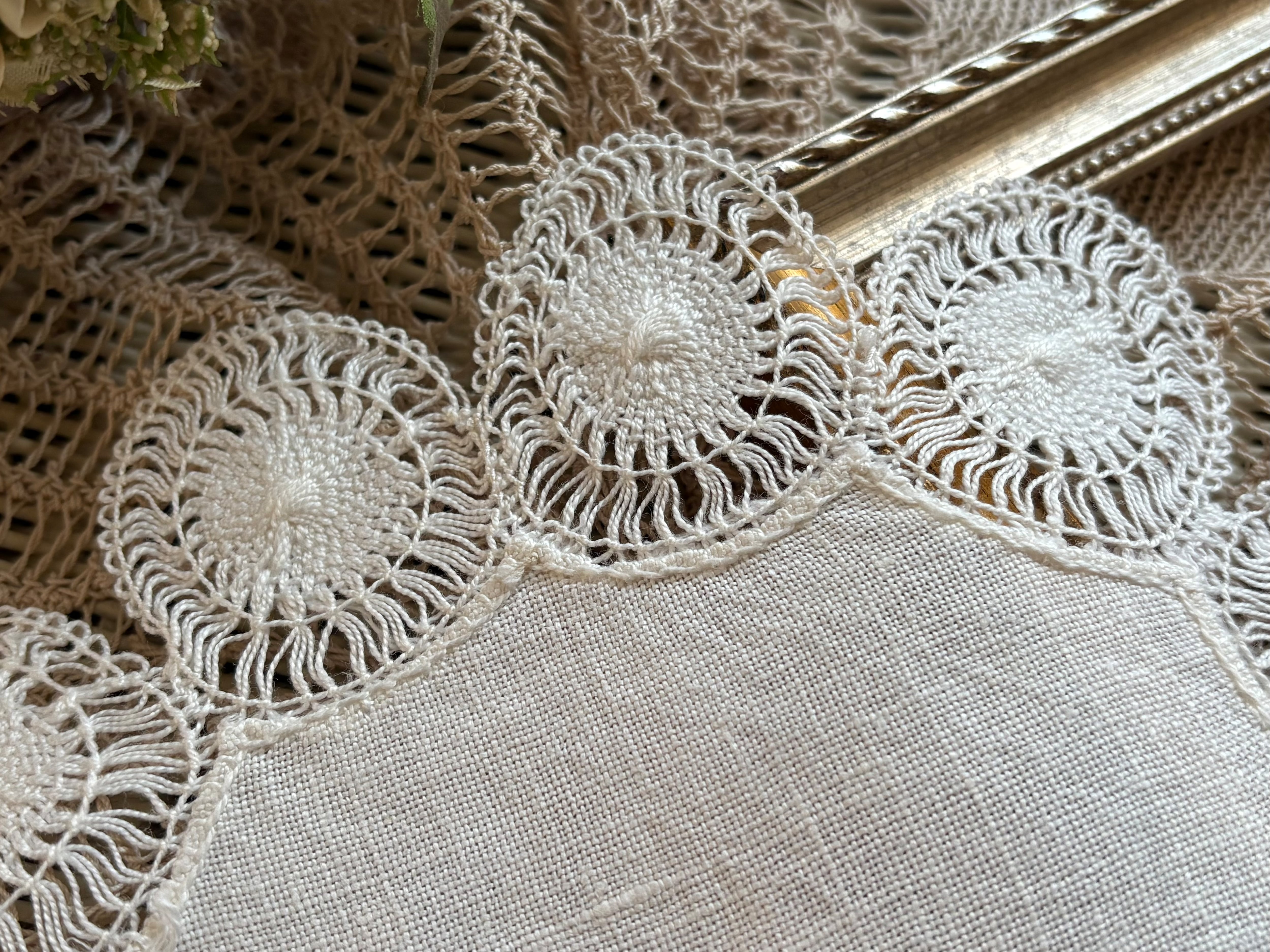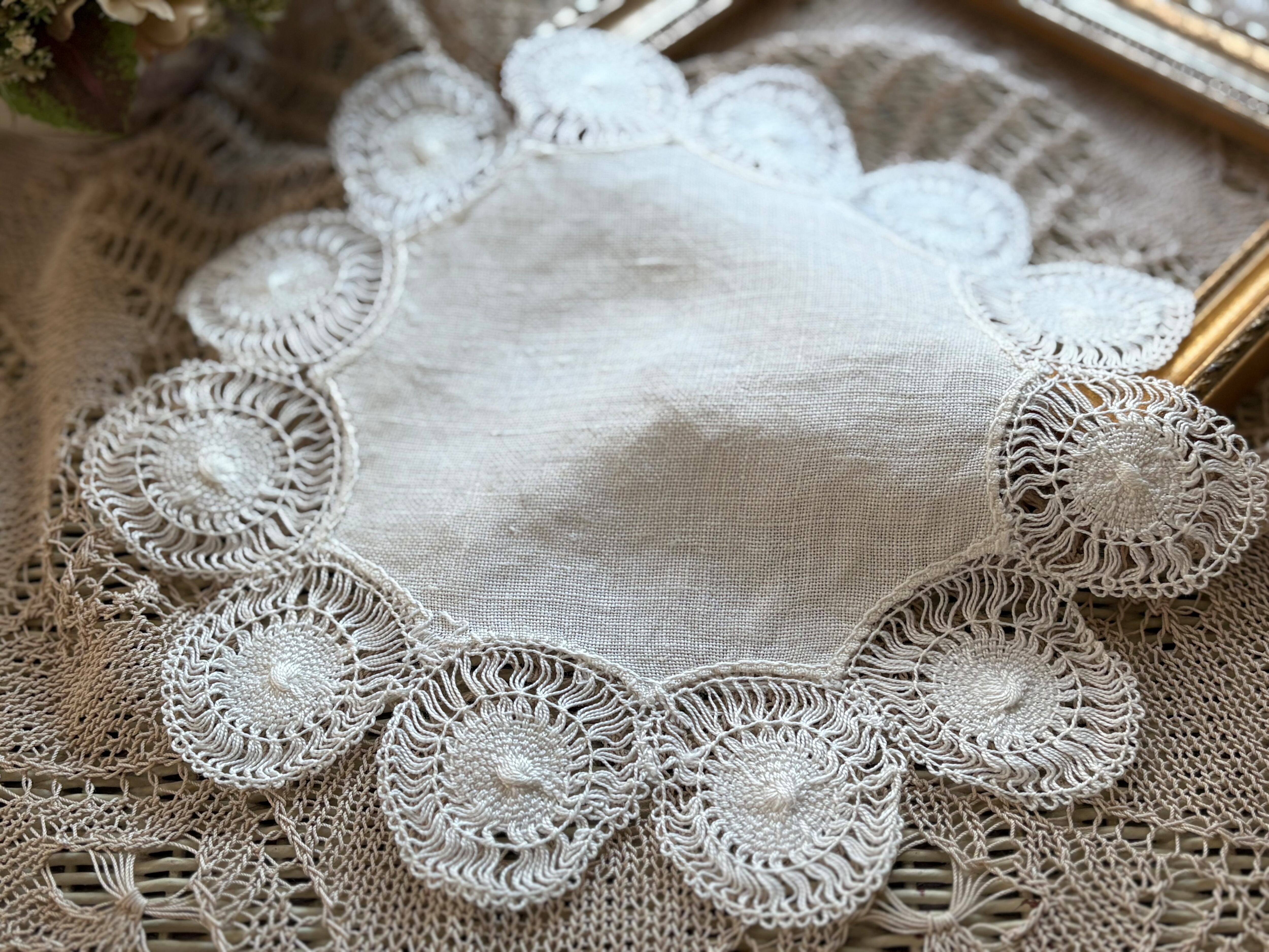 フランス アンティーク ドイリー ヘアピンレース 23.6cm リネン 敷物 インテリア ハンドメイド素材 撮影小物