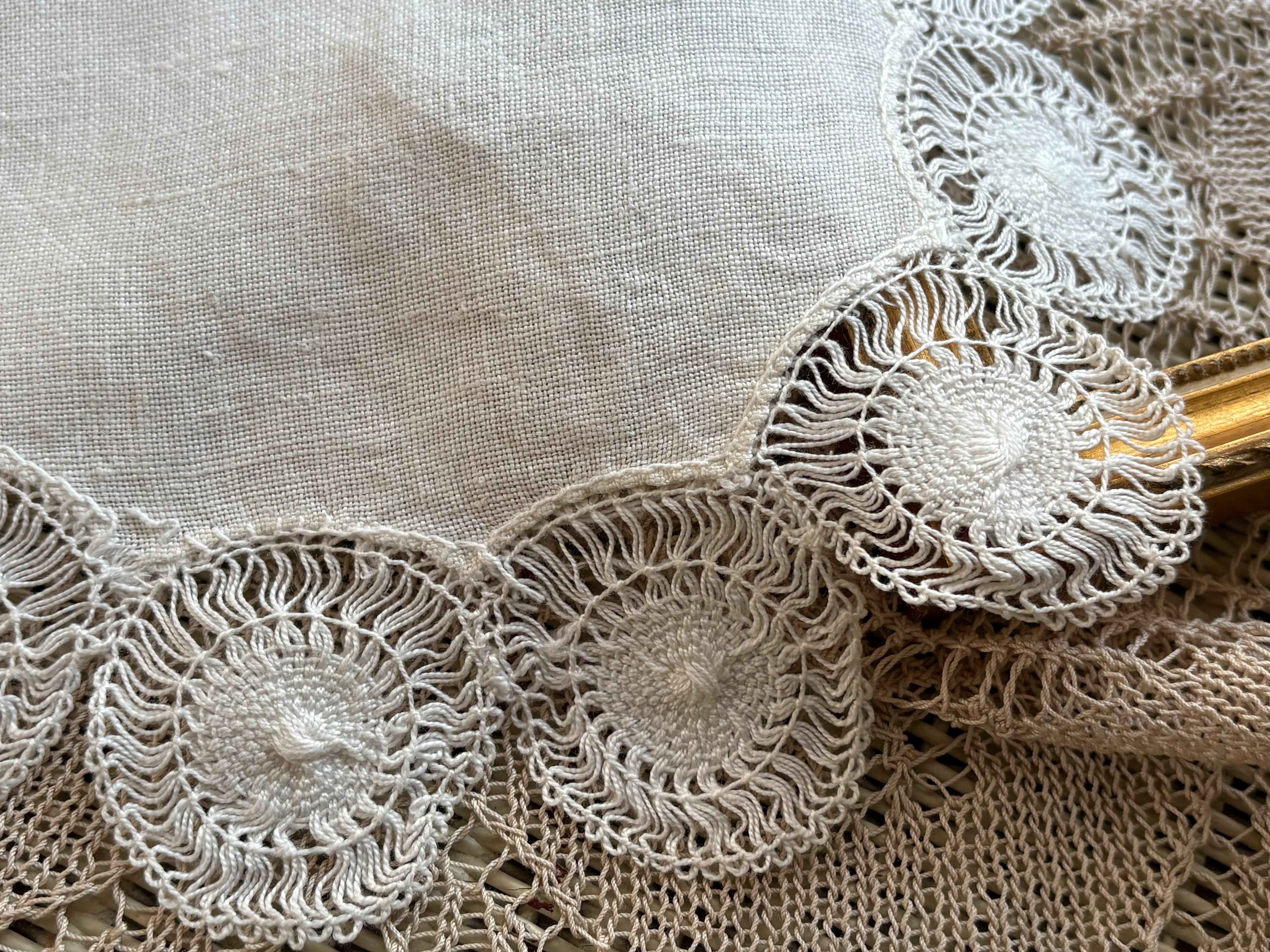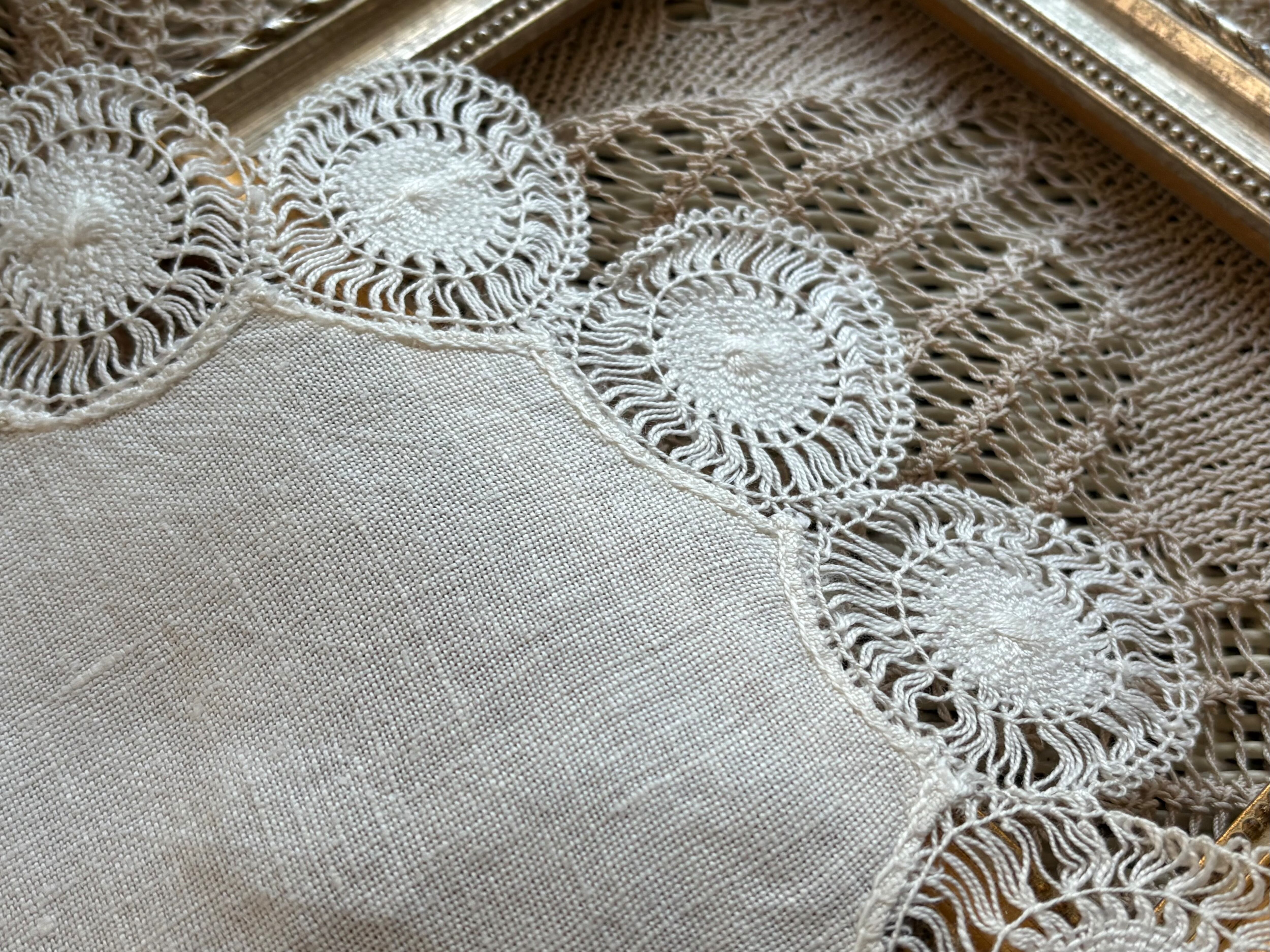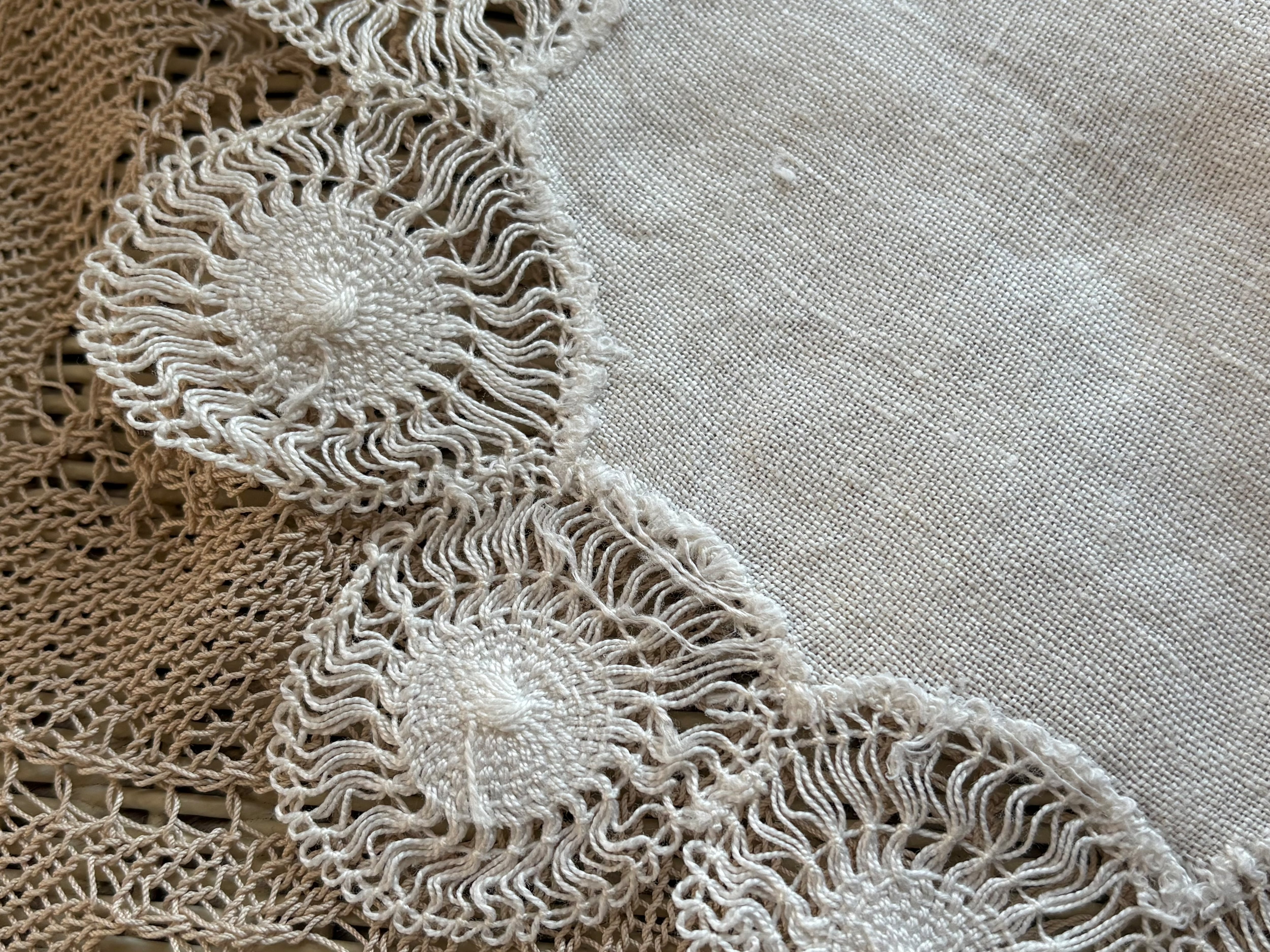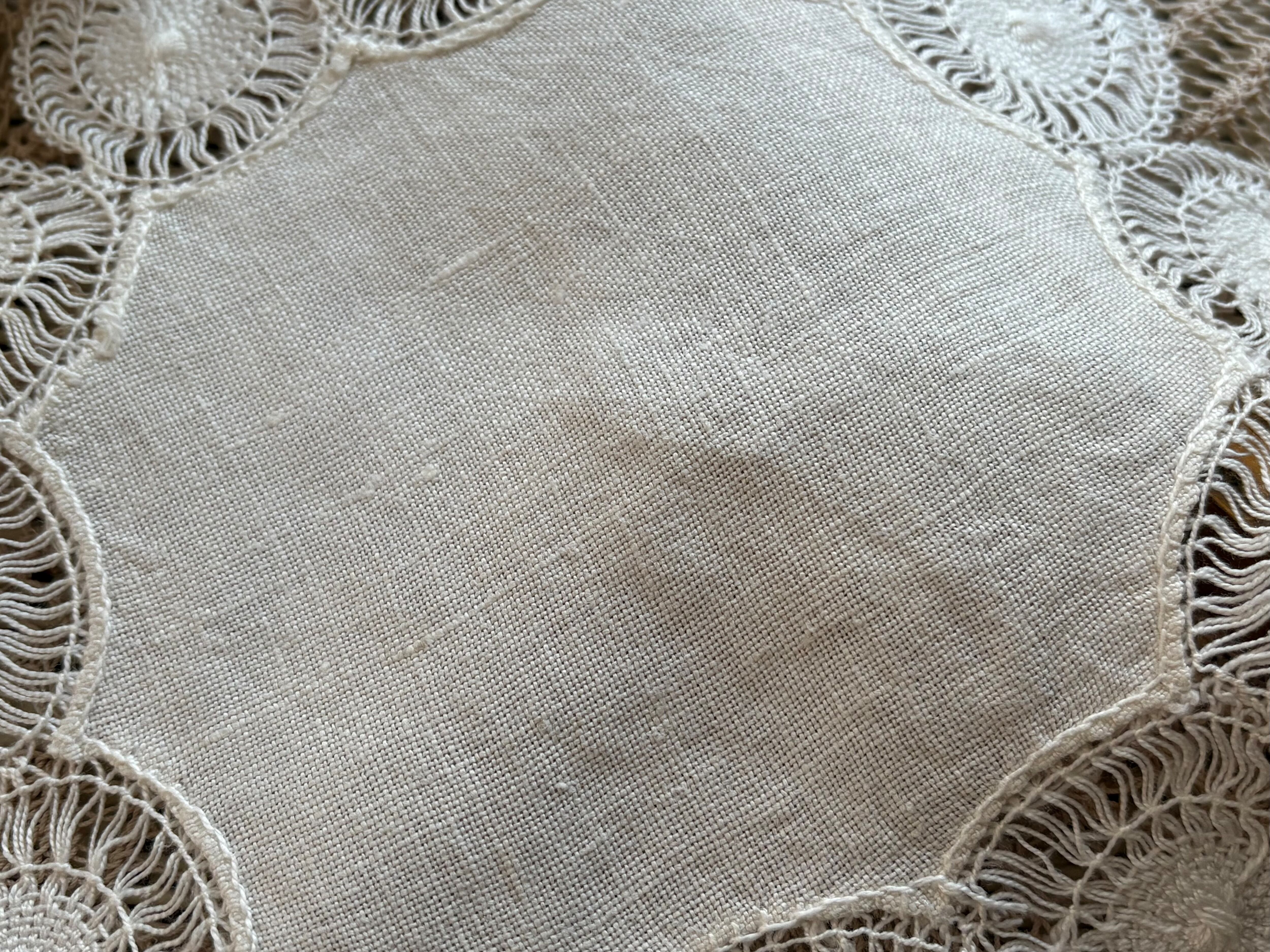 フランス アンティーク ドイリー ヘアピンレース 23.6cm リネン 敷物 インテリア ハンドメイド素材 撮影小物