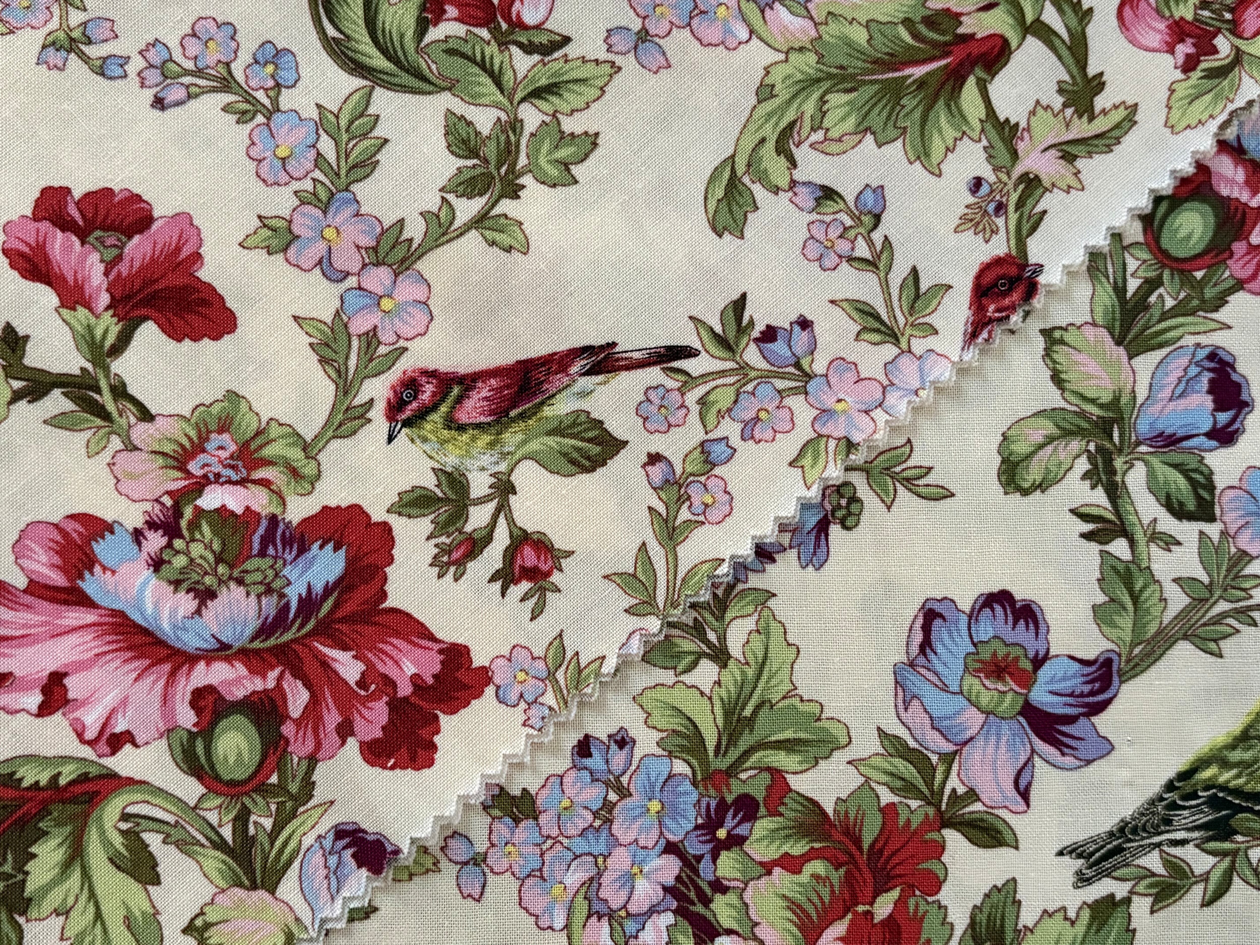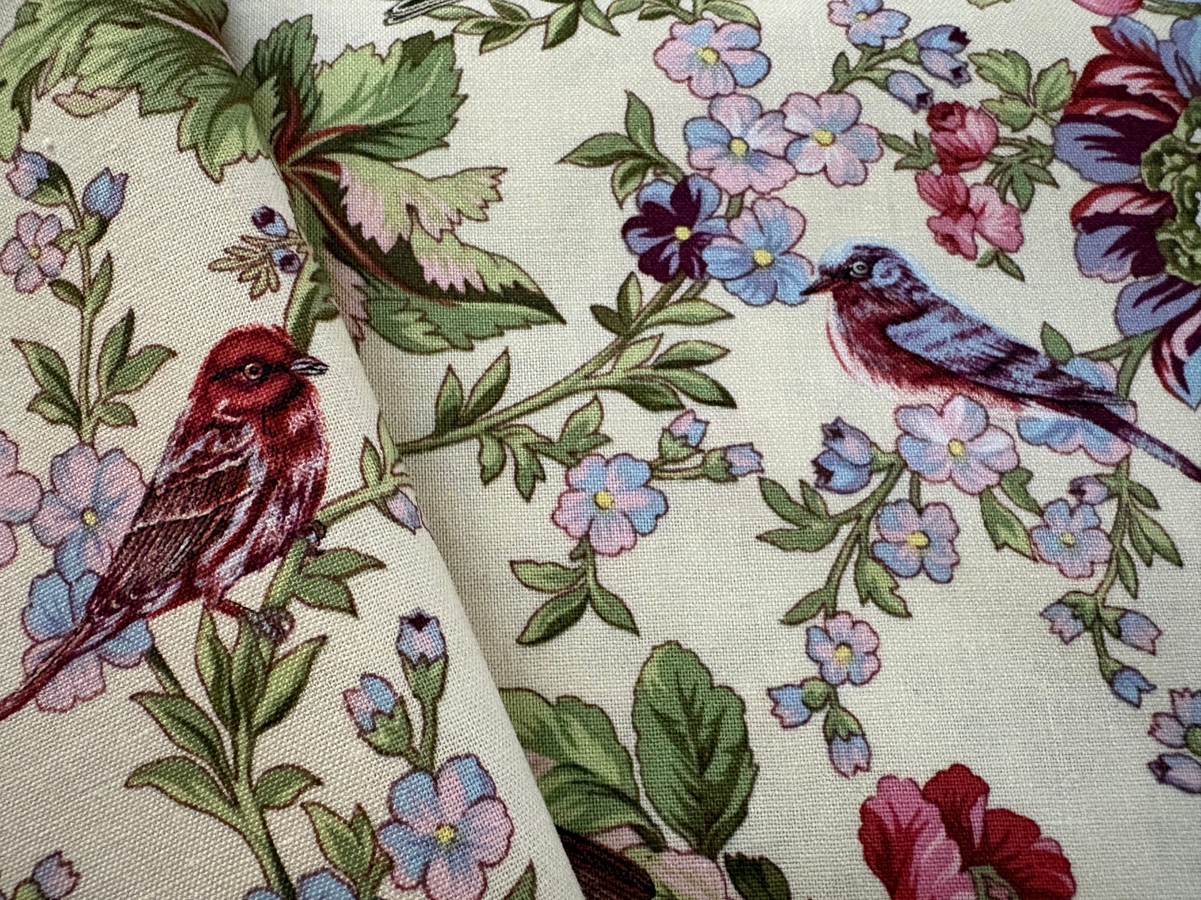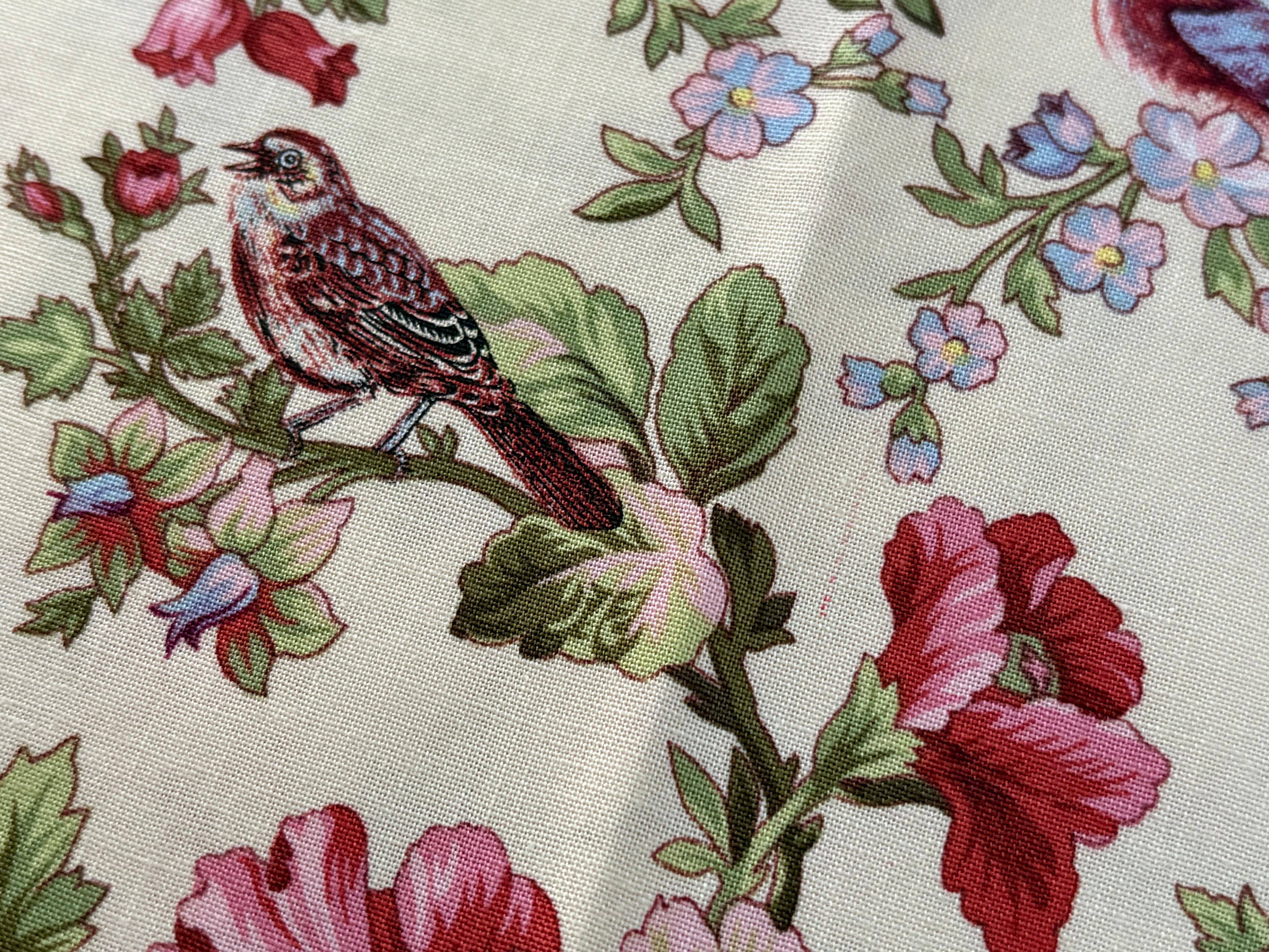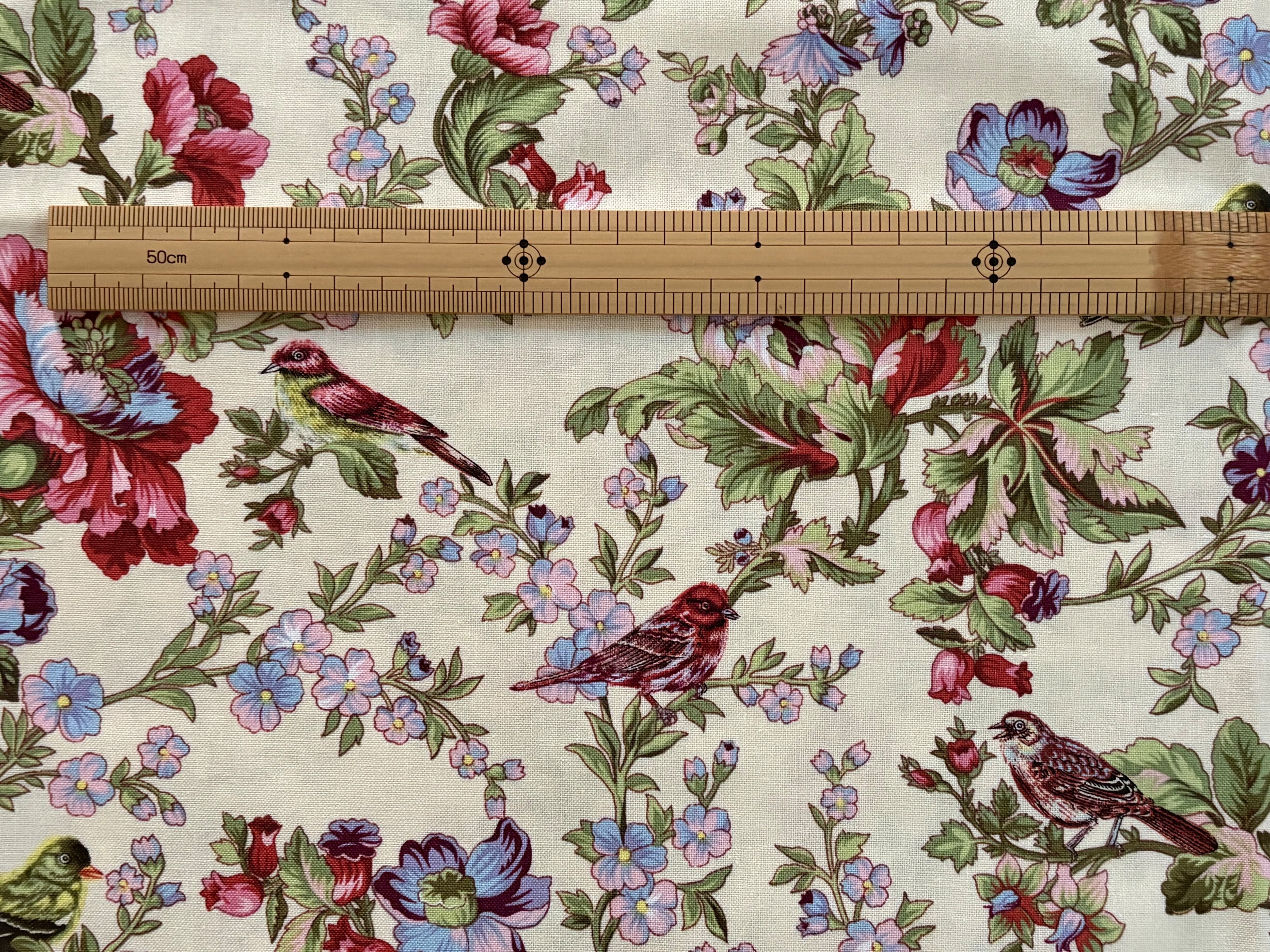 USAファブリック カットファブリック 30cm×107cm 小鳥×フラワー マルチカラー コットンファブリック カルトナージュ