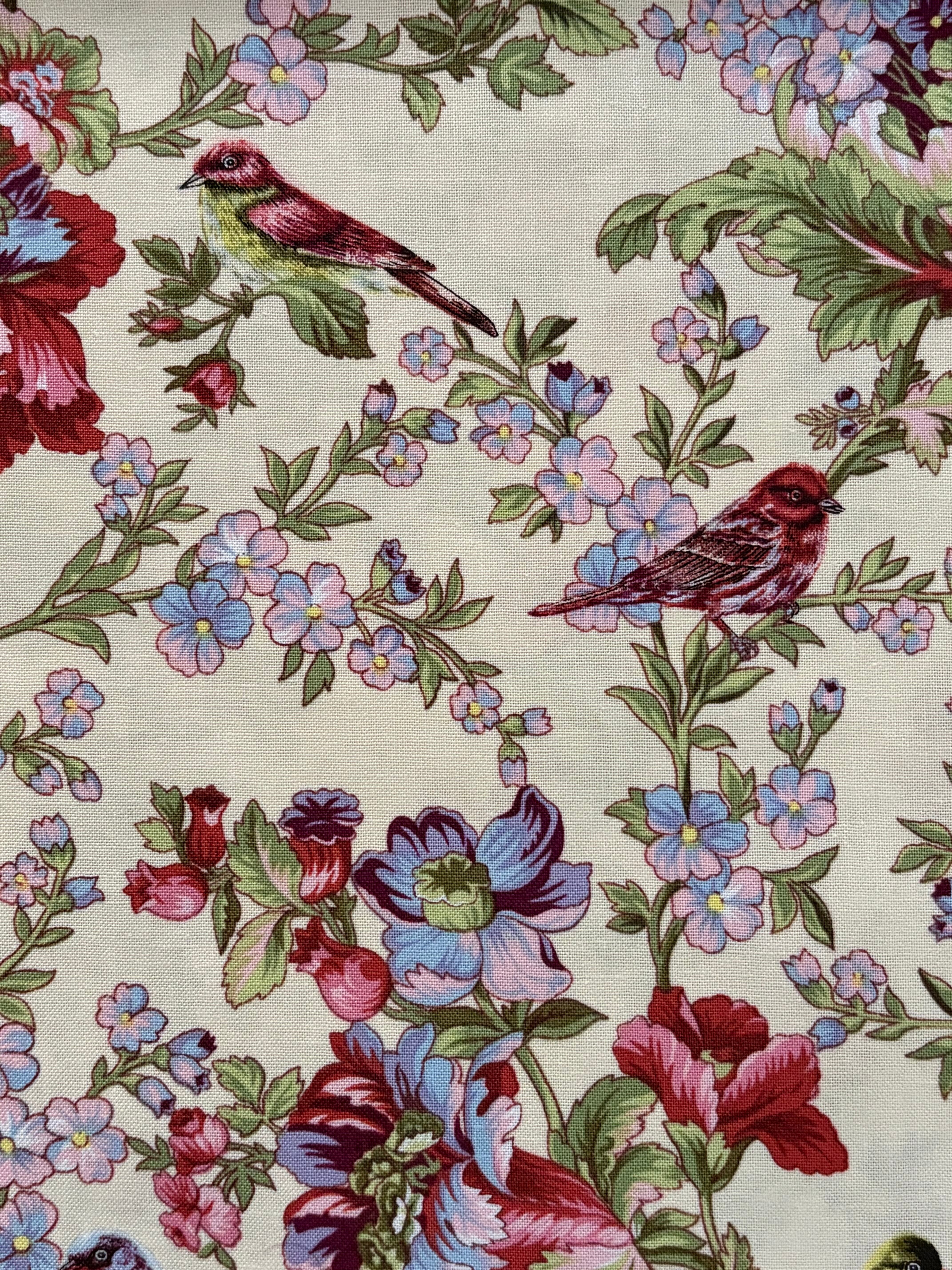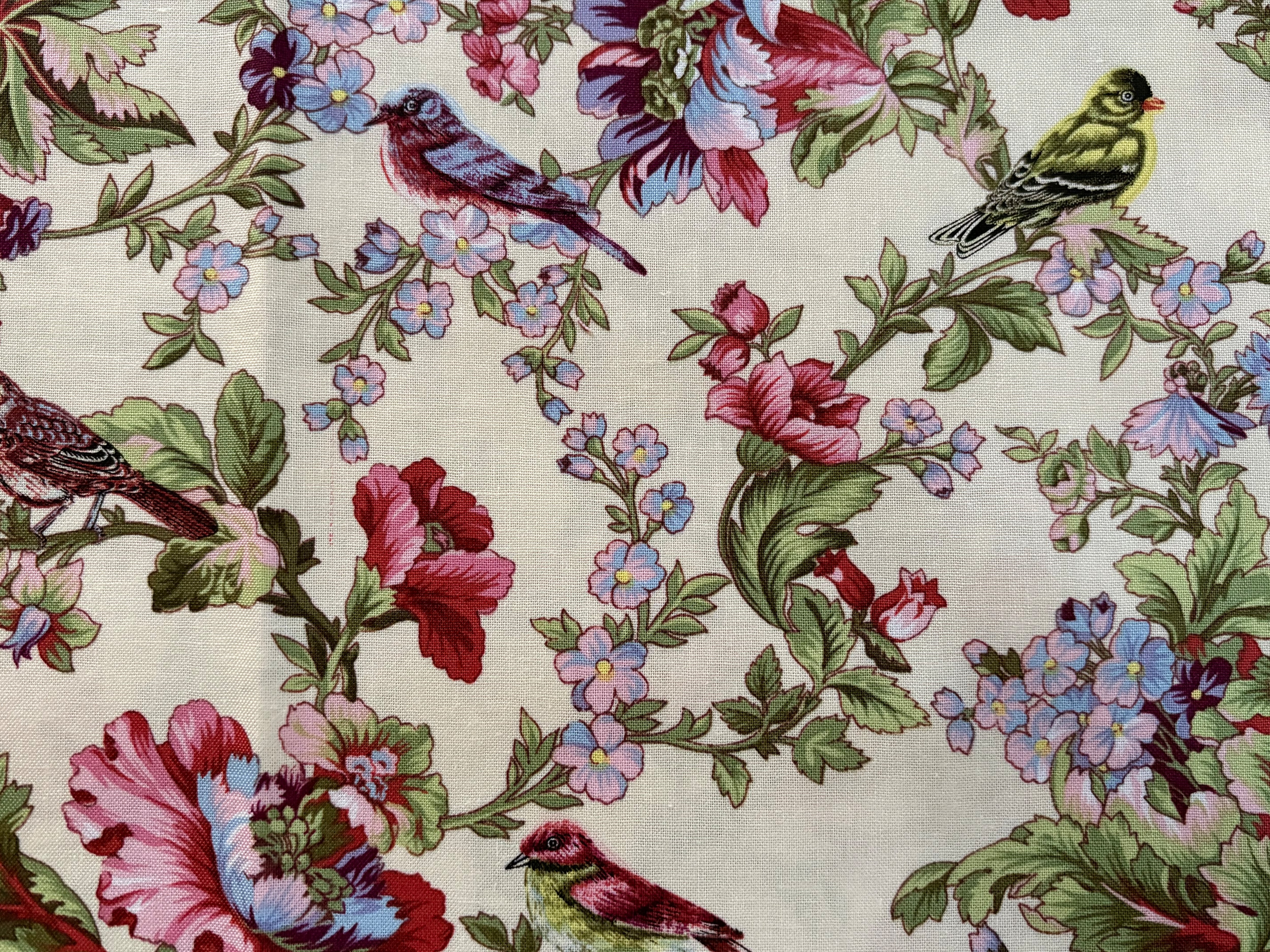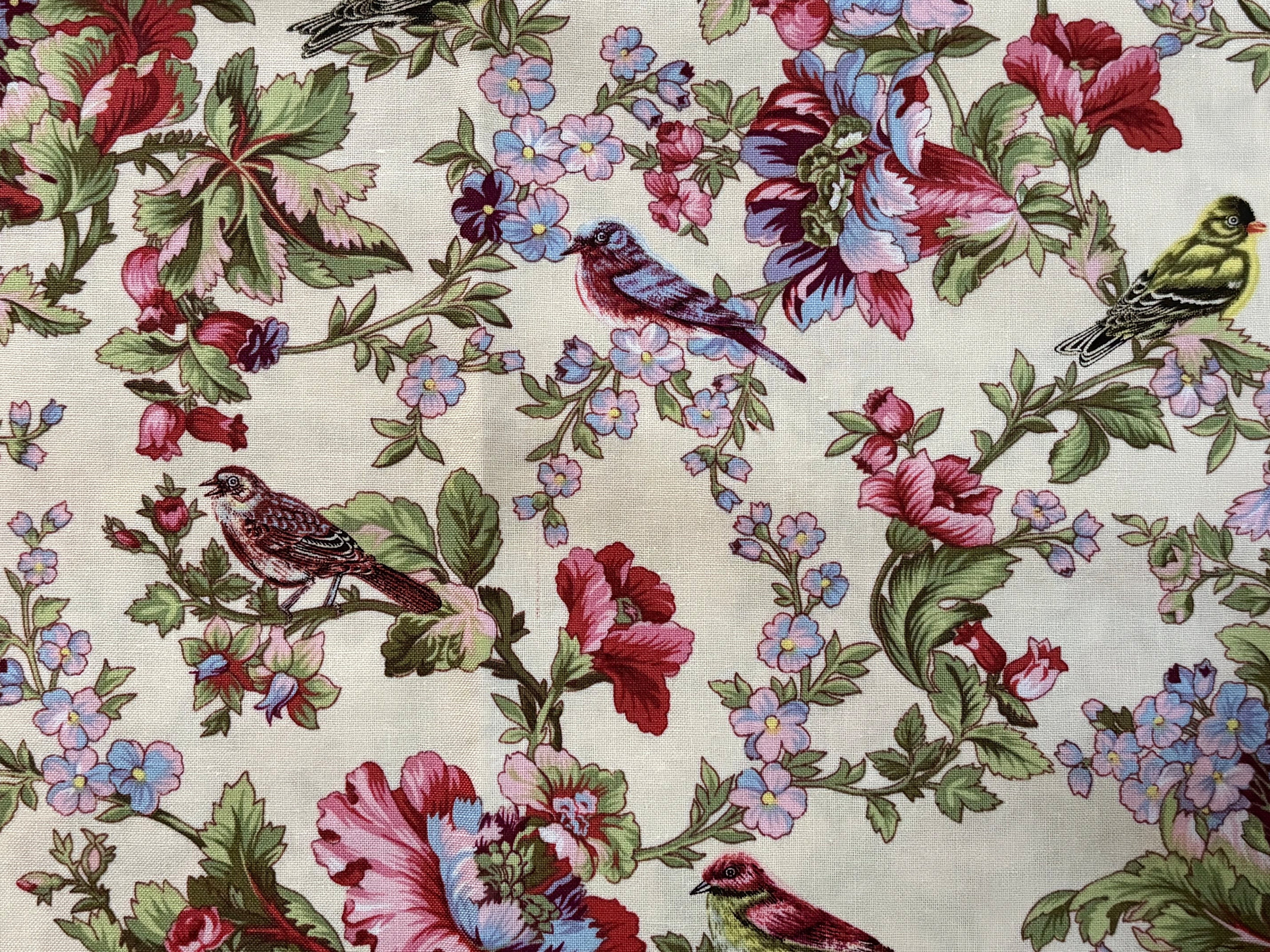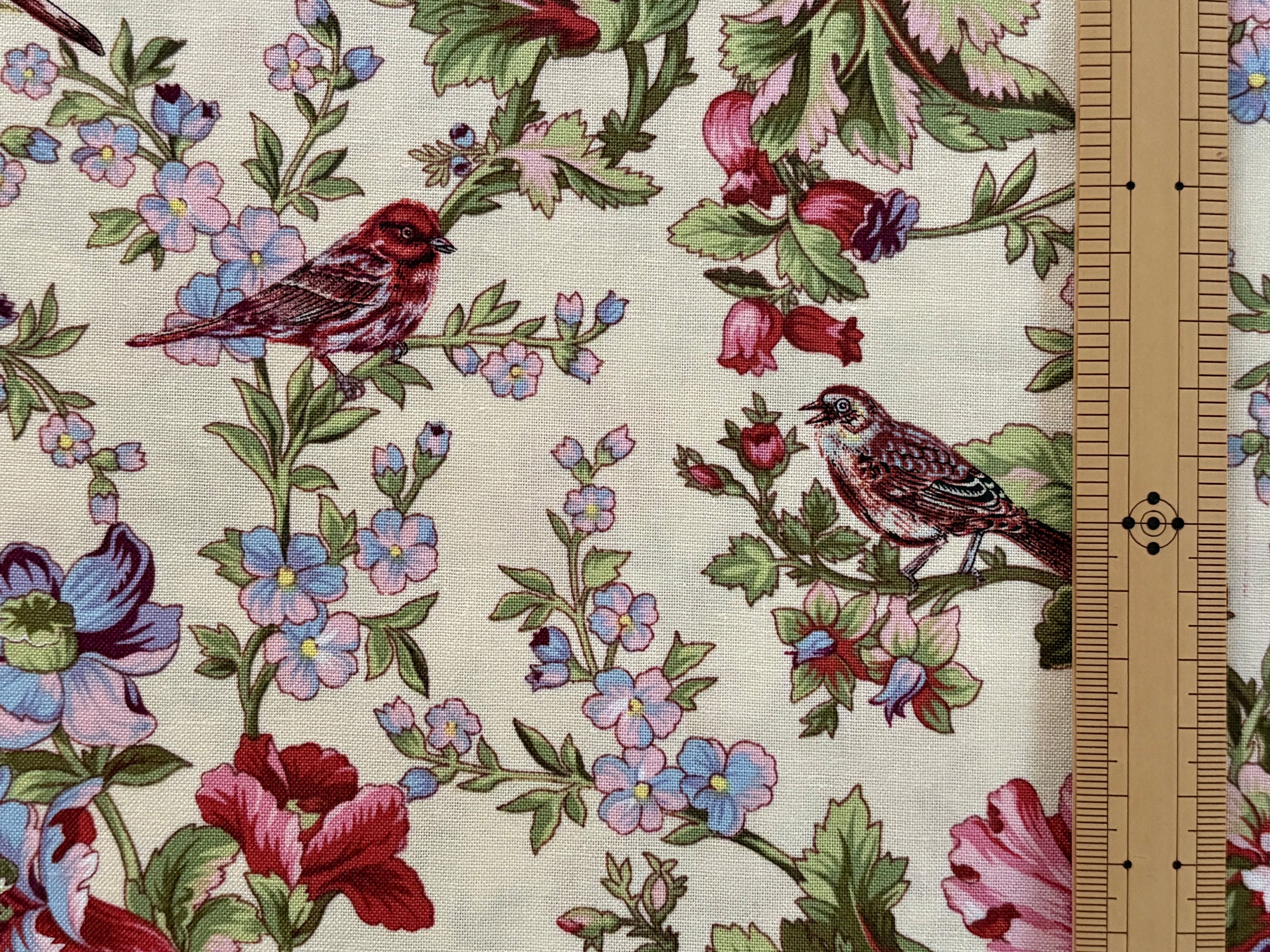 USAファブリック カットファブリック 30cm×107cm 小鳥×フラワー マルチカラー コットンファブリック カルトナージュ