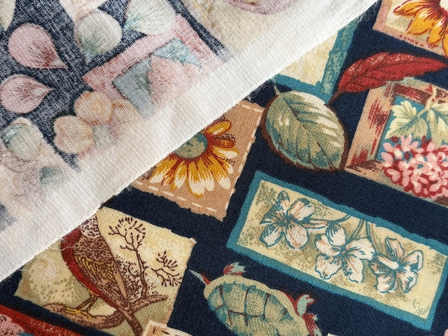 フランス コットンファブリック 鳥 蜜蜂 どんぐり シャンピニオン他 ボタニカル 総柄 カルトナージュ スツール バッグ ポーチ