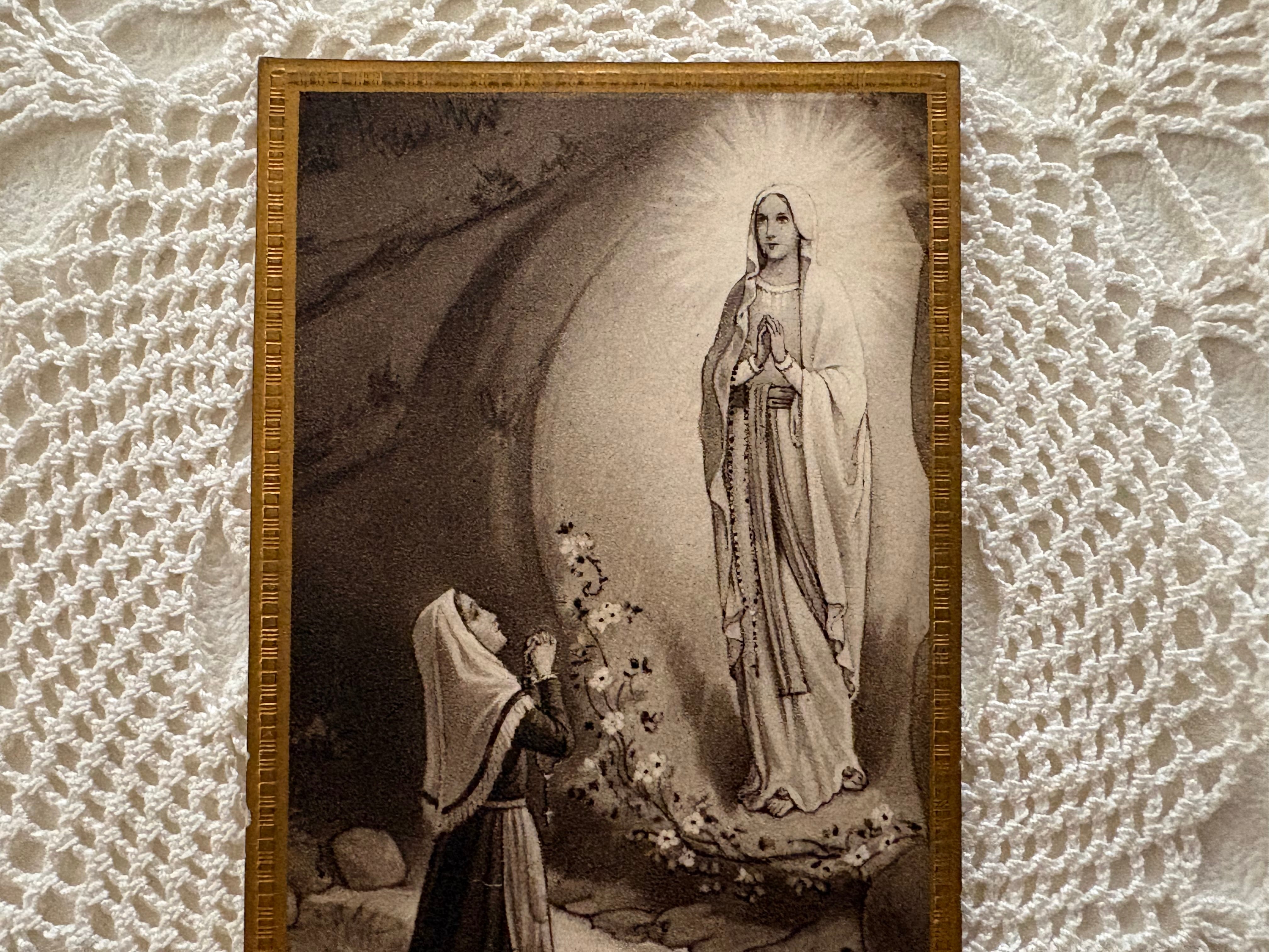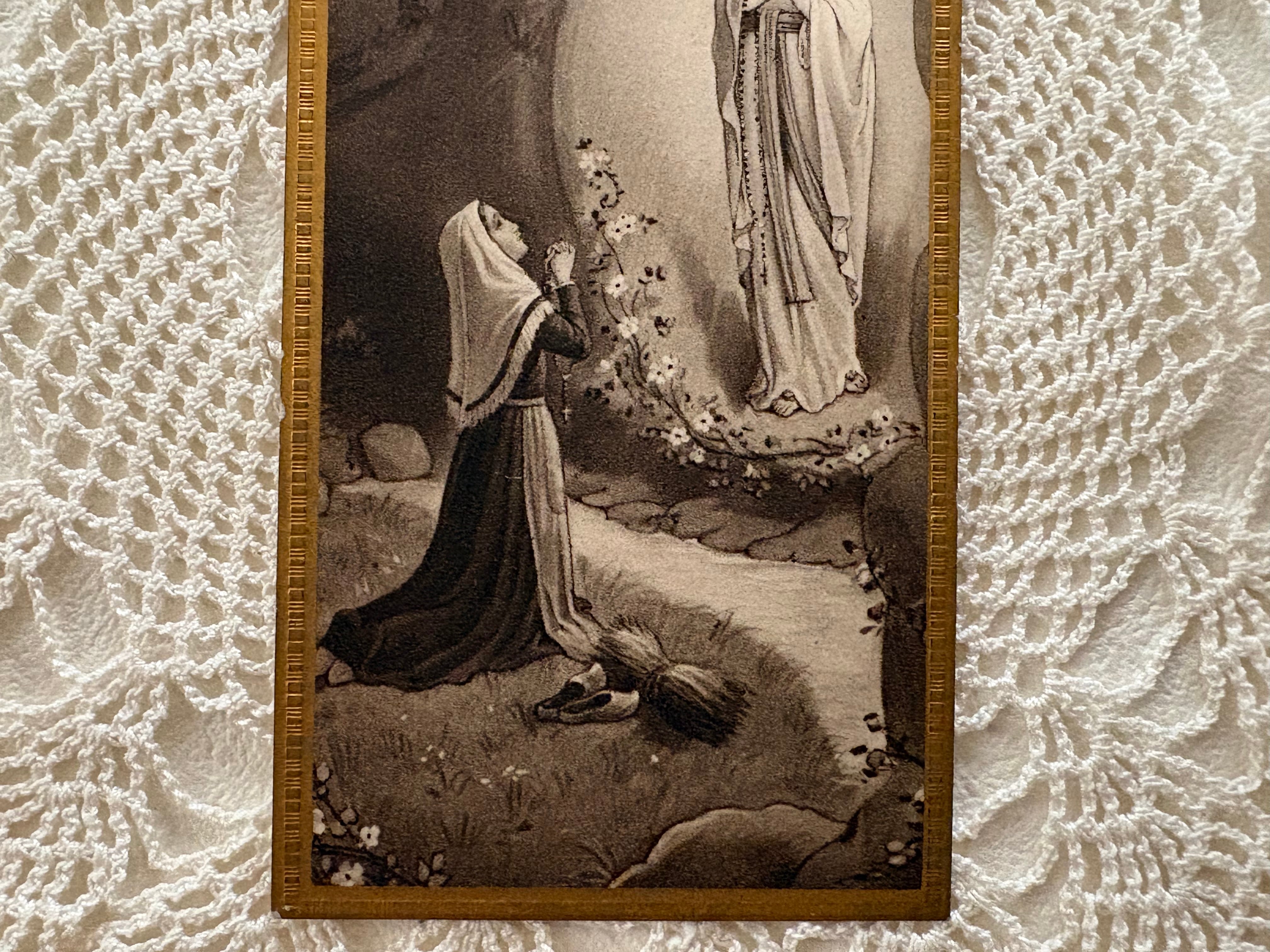 フランスアンティーク Holy Card ホーリーカード ルルドの泉 聖母マリア ベルナデッタ 額装 撮影小物 インテリア コレクション