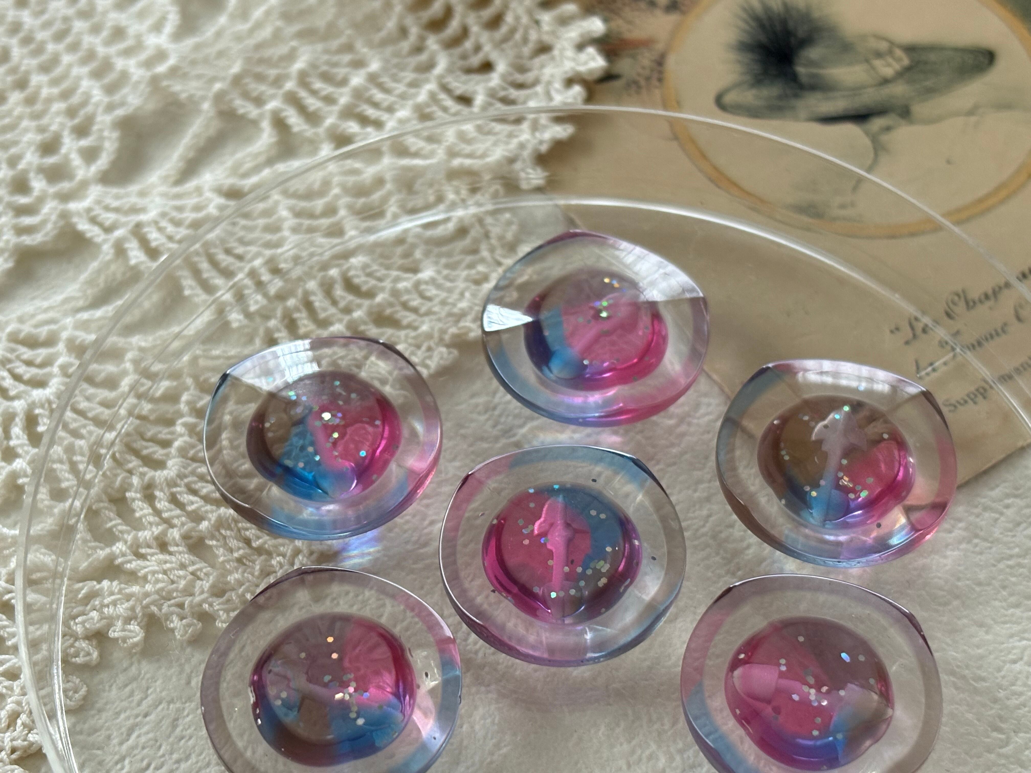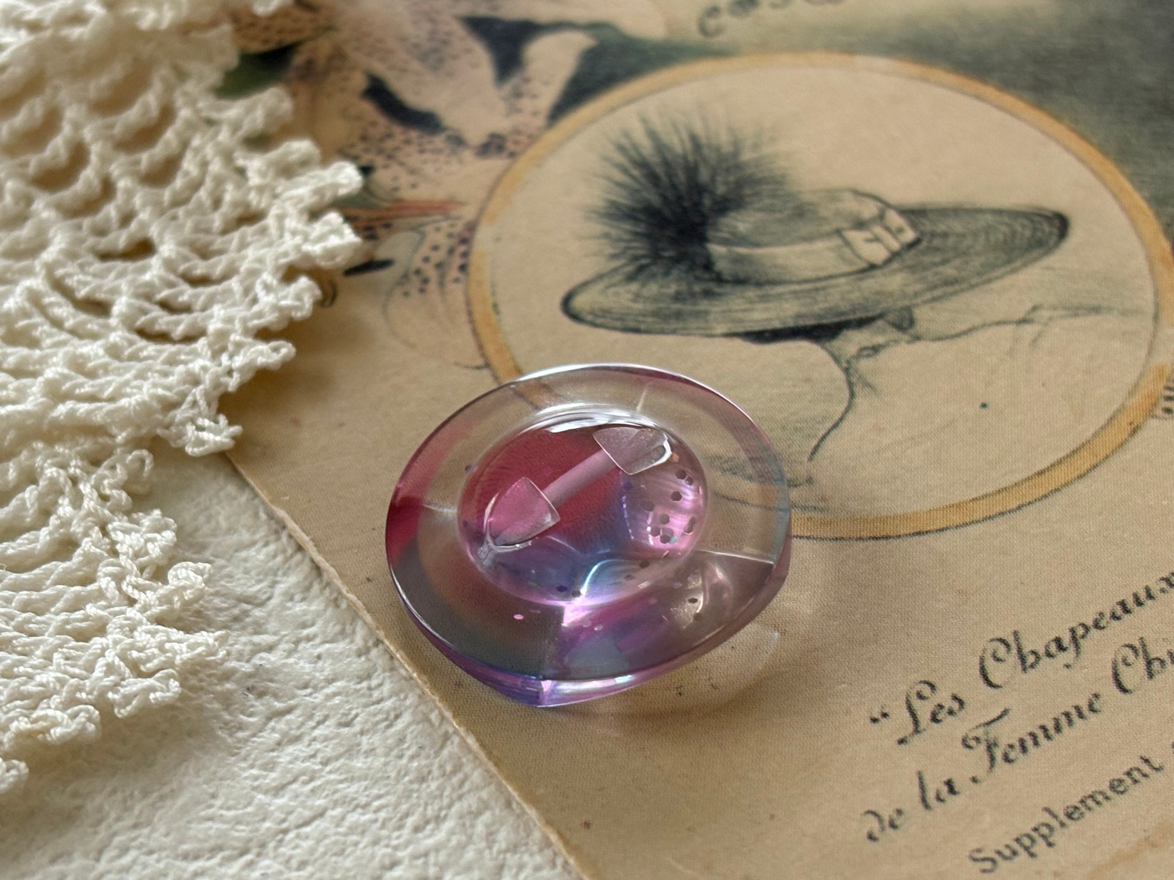 20mm Japanese ヴィンテージボタン キャンディーピンク グリッター 樹脂ボタン レトロ アクセサリーパーツ 装飾材 カルトナージュ